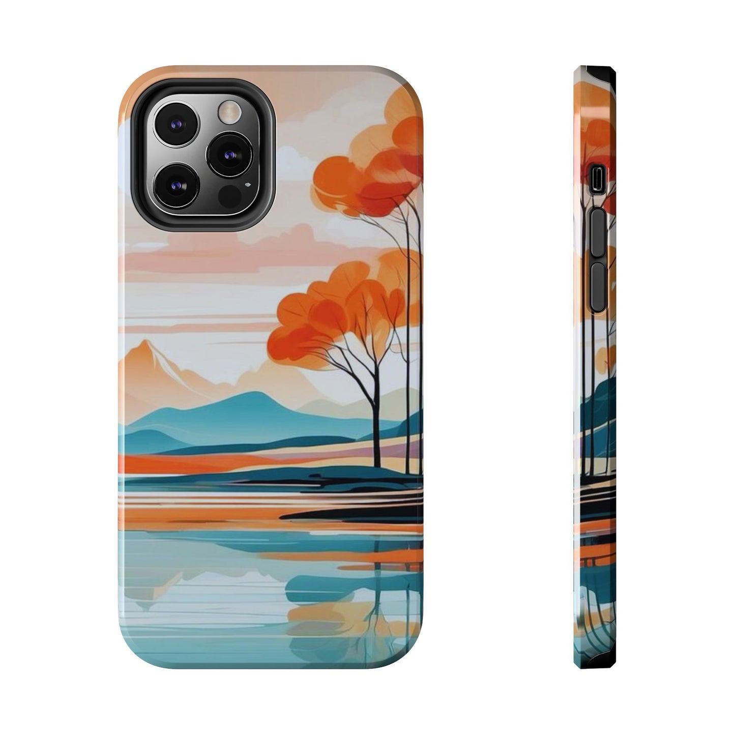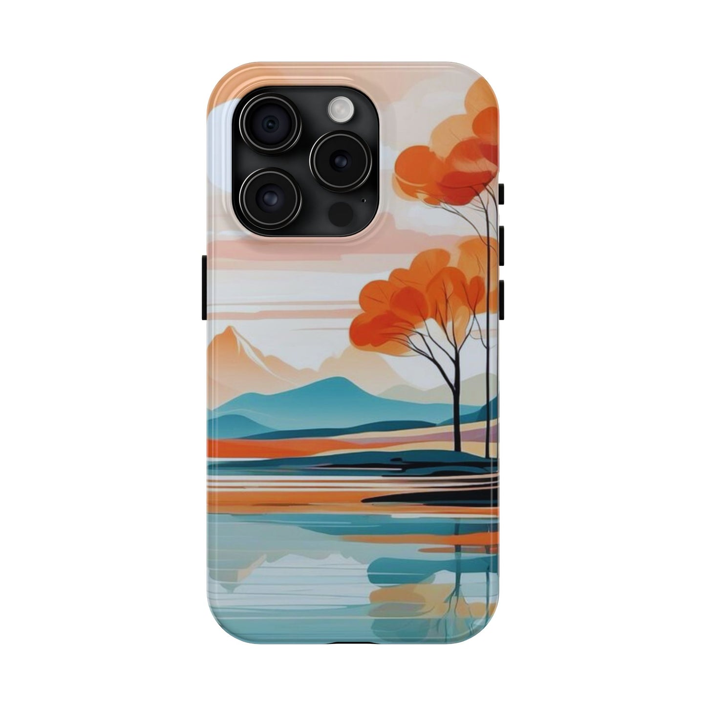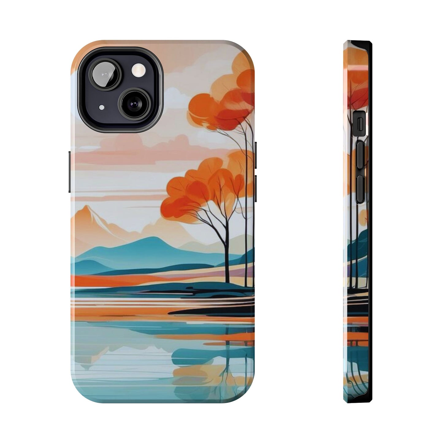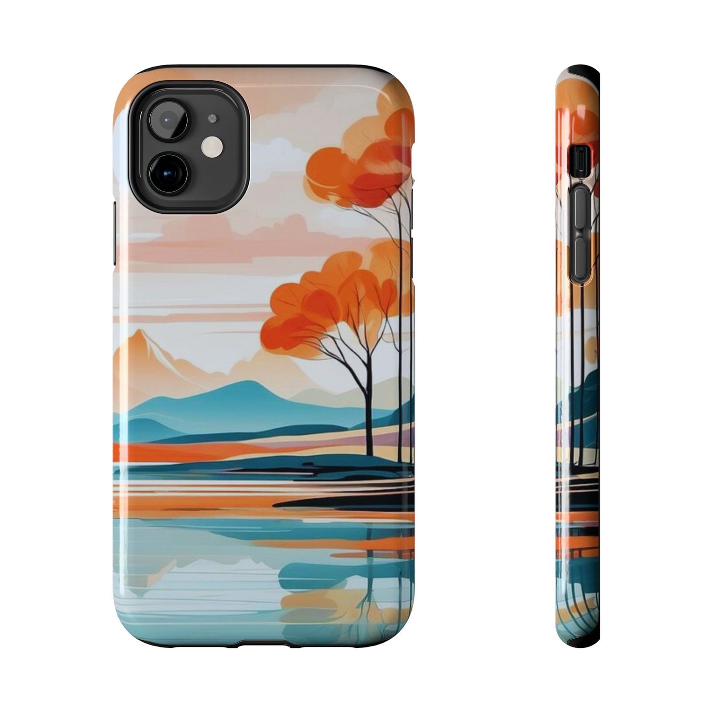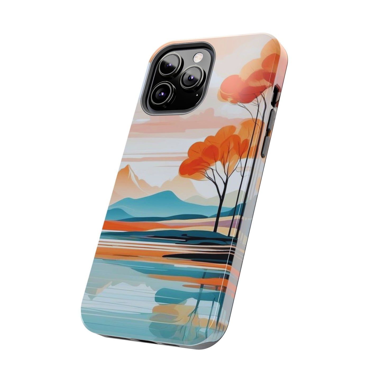 Elevate your phone’s style with the calming beauty of our Serene Sunset Lake iPhone Case. This design features a minimalist landscape of tranquil waters, warm orange trees, and softly glowing mountains, all under a pale sun. The soft pastel colors and clean lines make it perfect for those who appreciate a peaceful, modern aesthetic.
