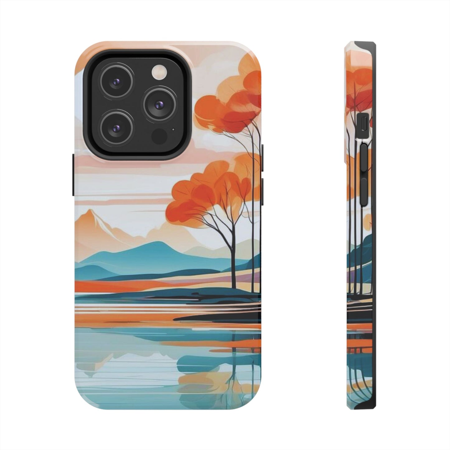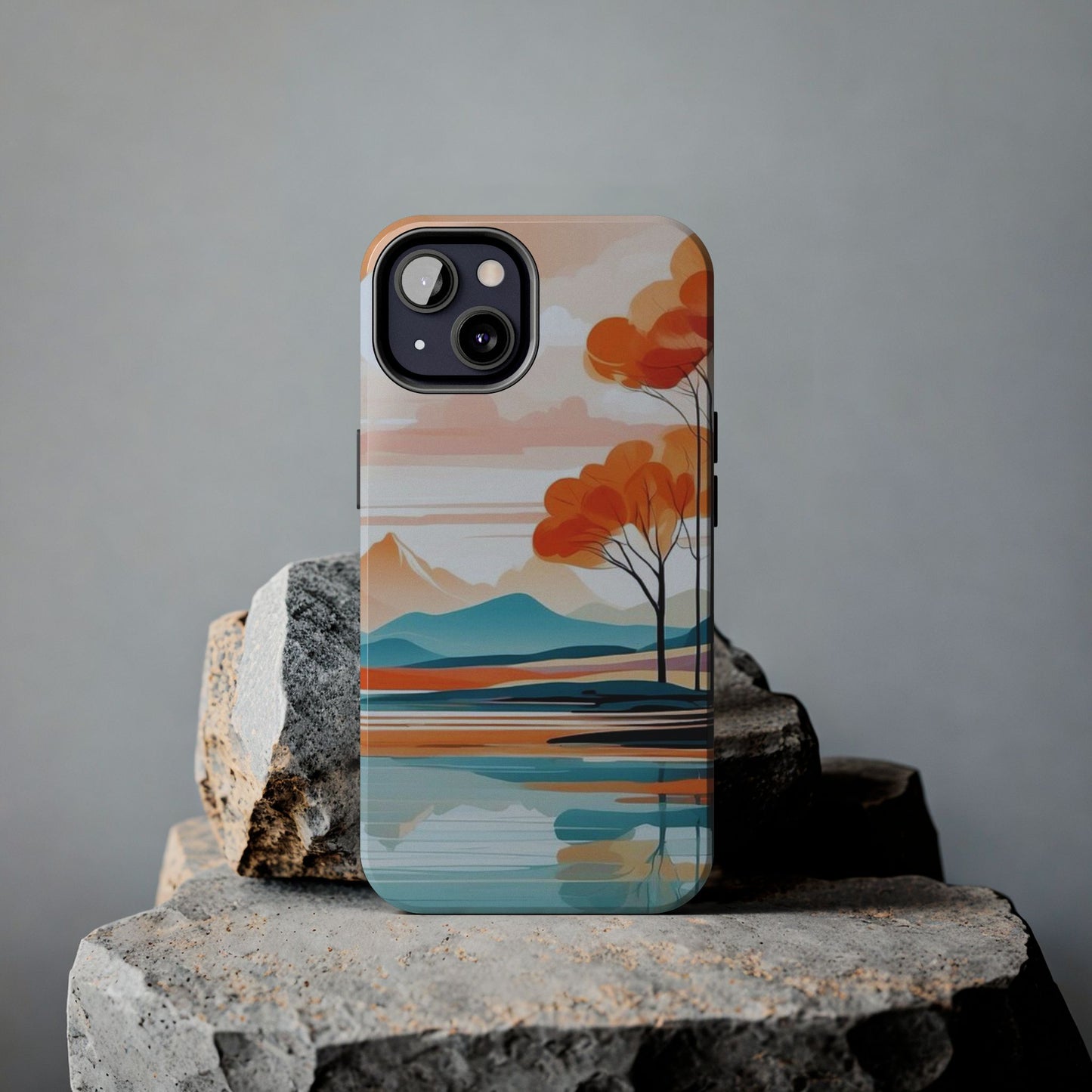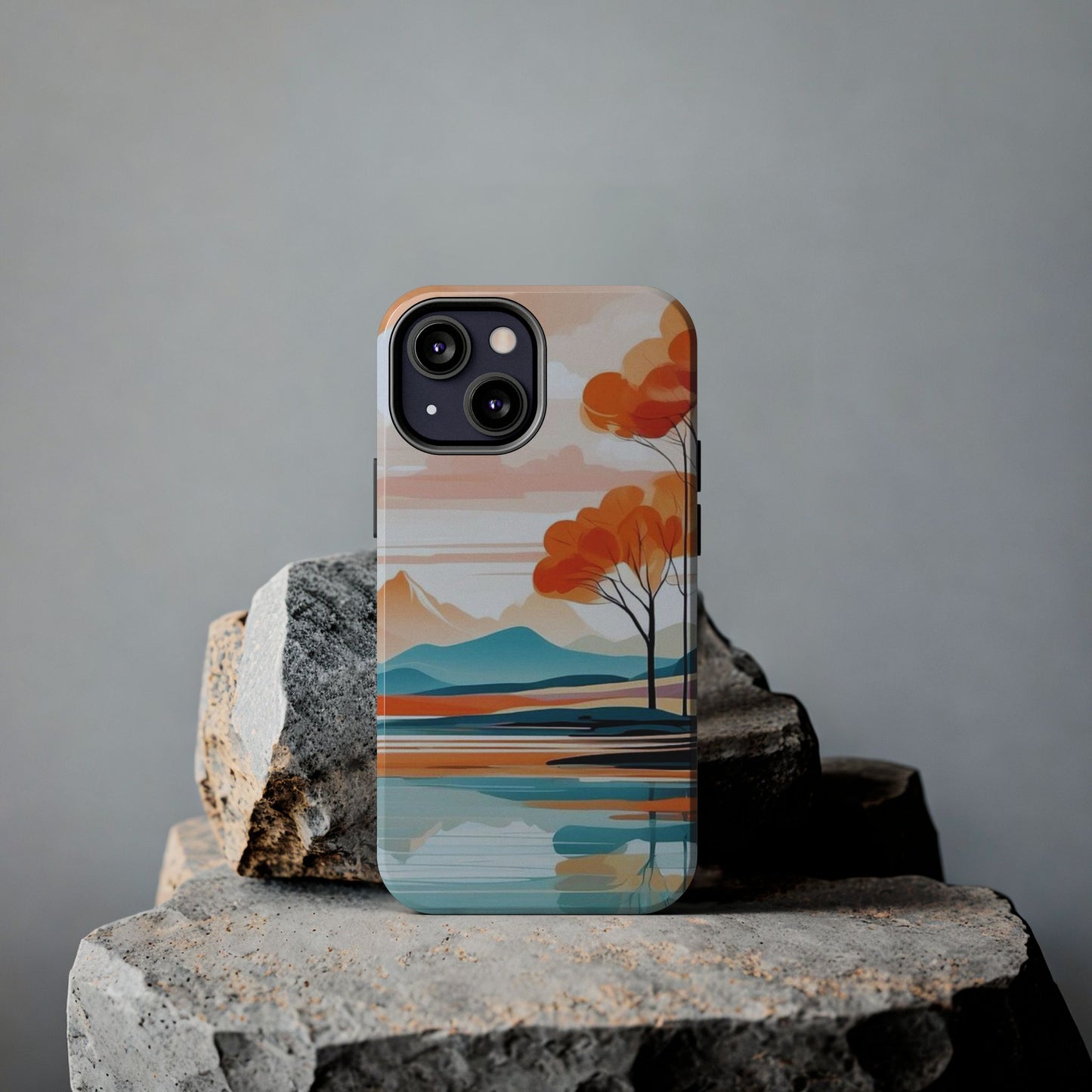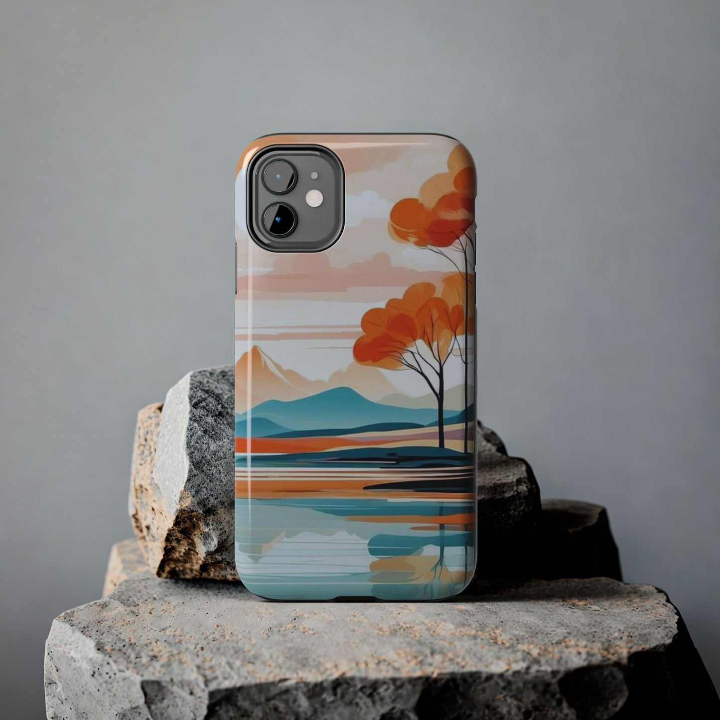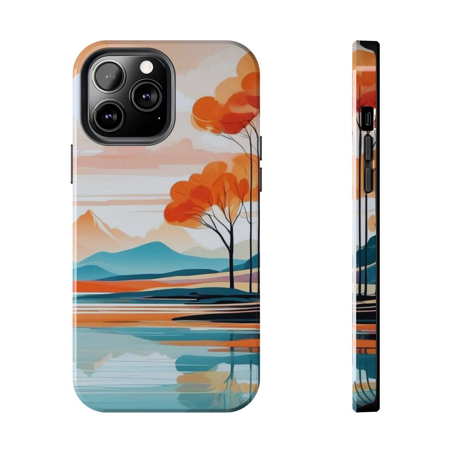 Elevate your phone’s style with the calming beauty of our Serene Sunset Lake iPhone Case. This design features a minimalist landscape of tranquil waters, warm orange trees, and softly glowing mountains, all under a pale sun. The soft pastel colors and clean lines make it perfect for those who appreciate a peaceful, modern aesthetic.