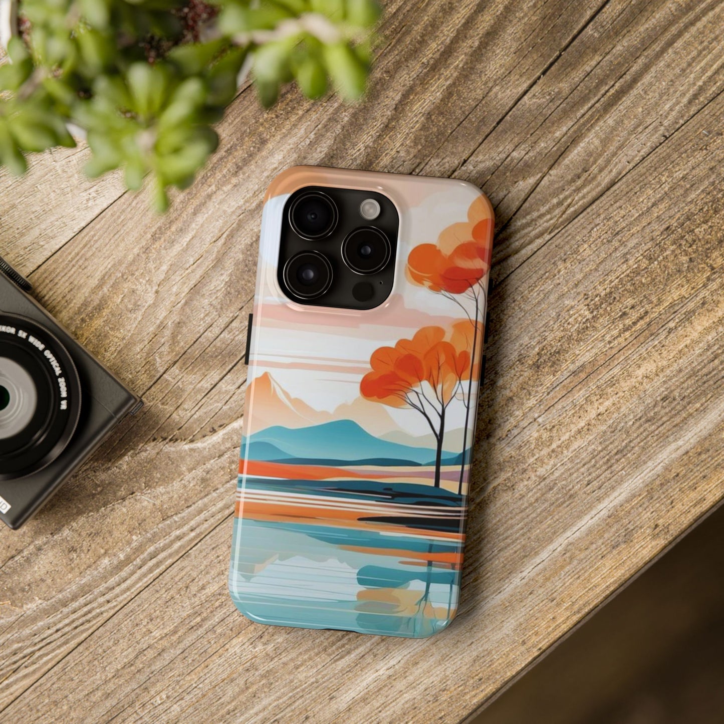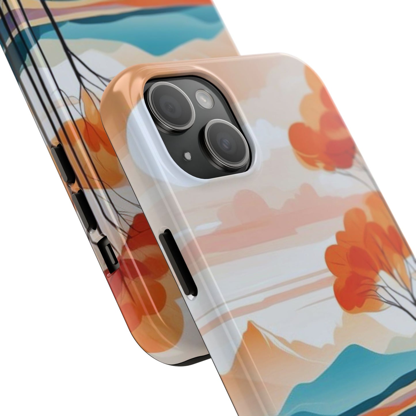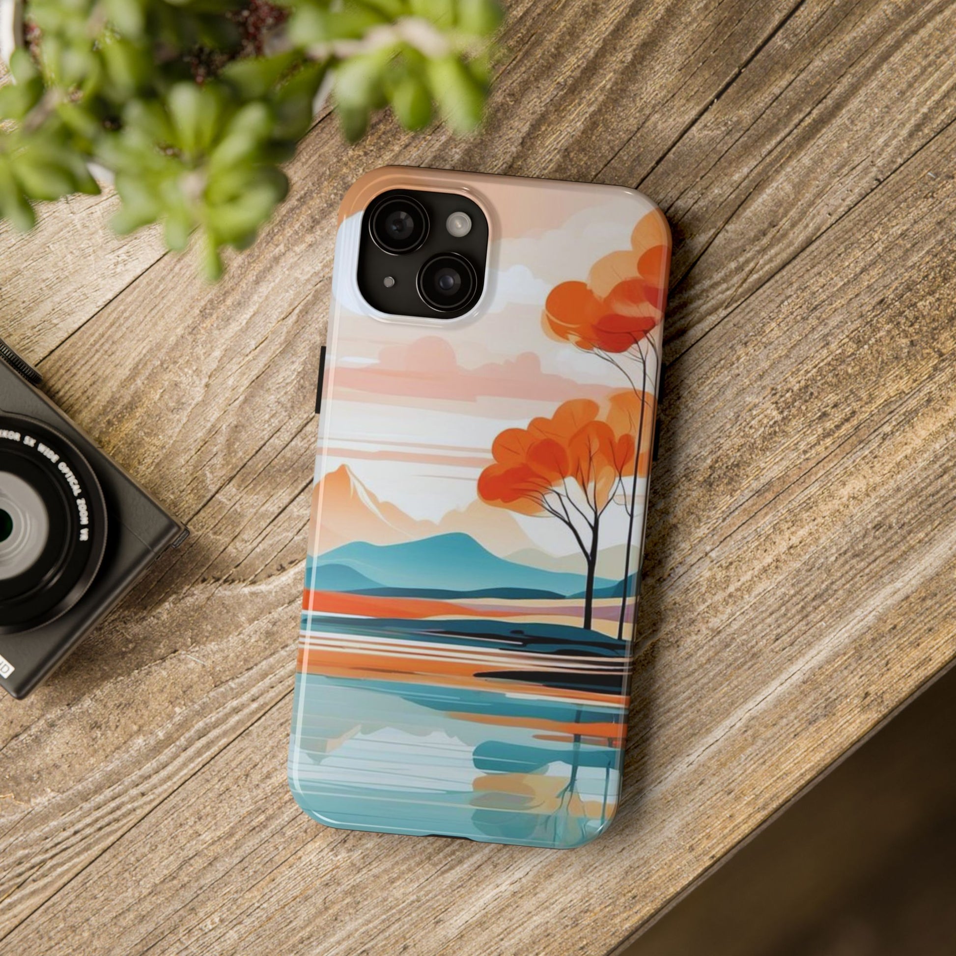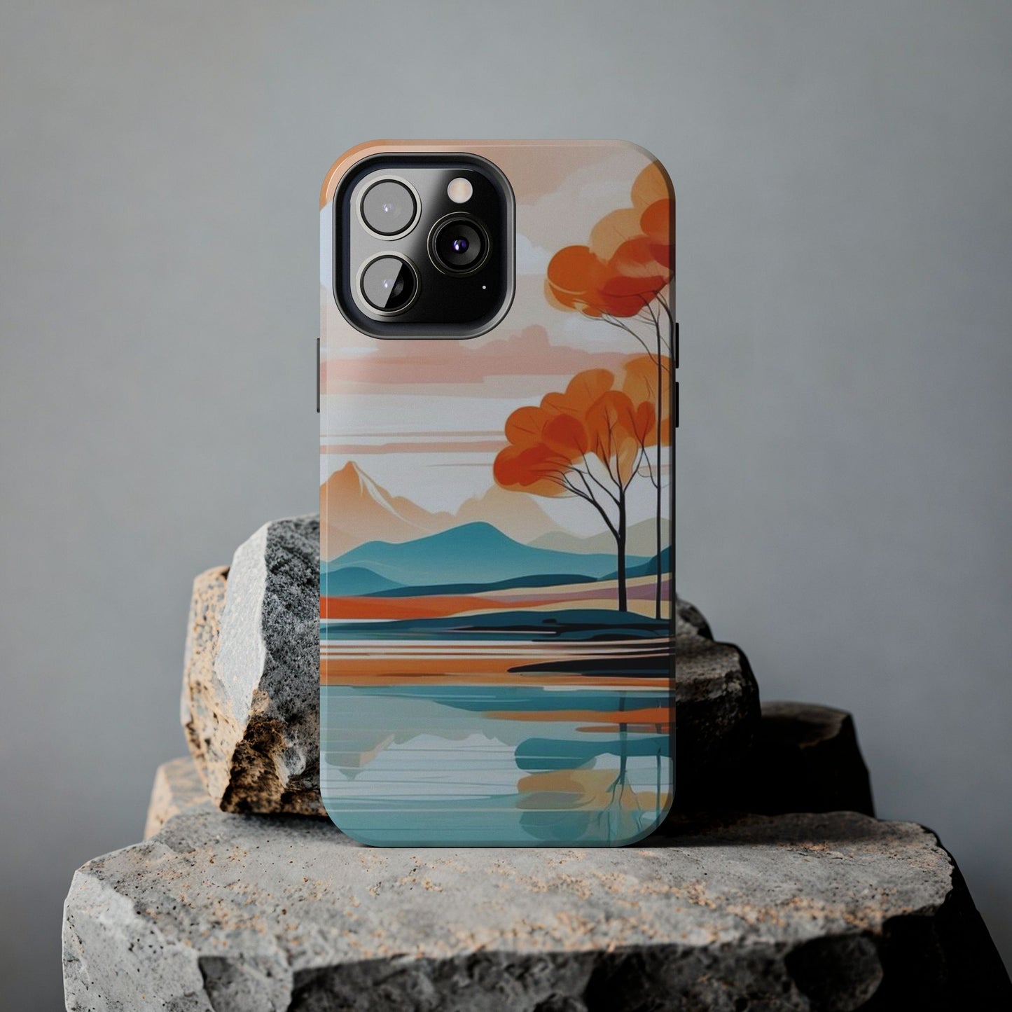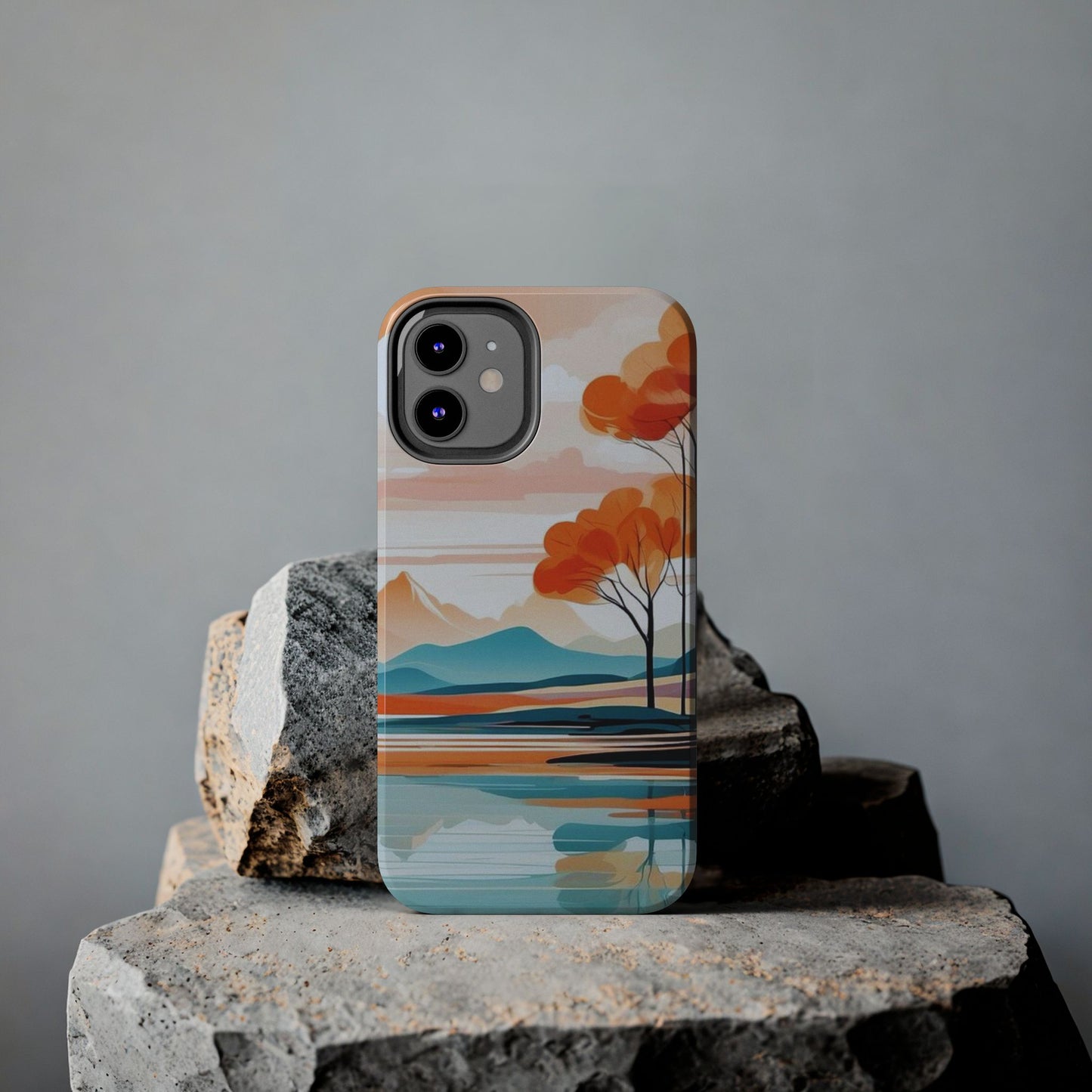 Elevate your phone’s style with the calming beauty of our Serene Sunset Lake iPhone Case. This design features a minimalist landscape of tranquil waters, warm orange trees, and softly glowing mountains, all under a pale sun. The soft pastel colors and clean lines make it perfect for those who appreciate a peaceful, modern aesthetic.