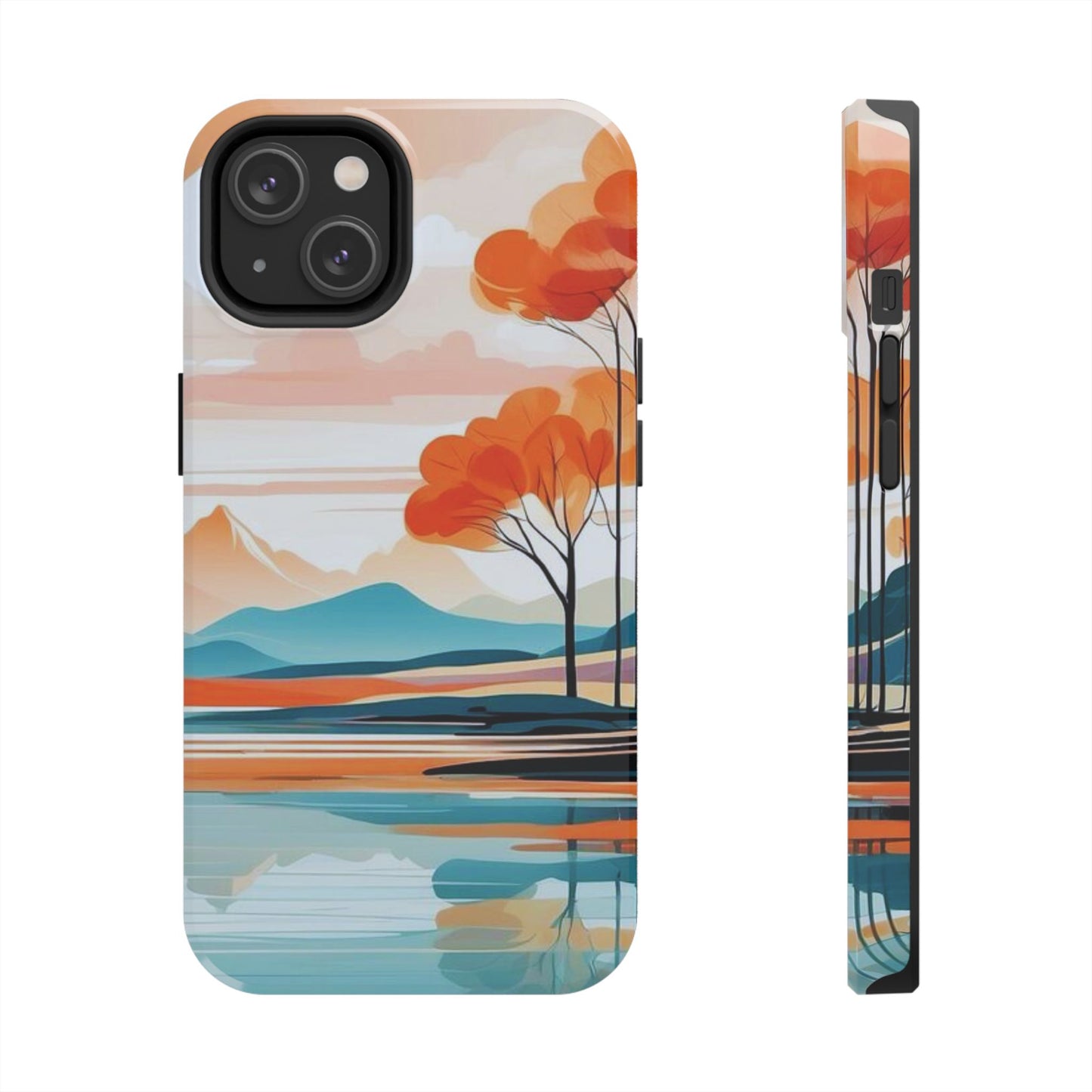 Serene Sunset Lake iPhone Case – Minimalist Landscape Art, Dual-Layer Protection