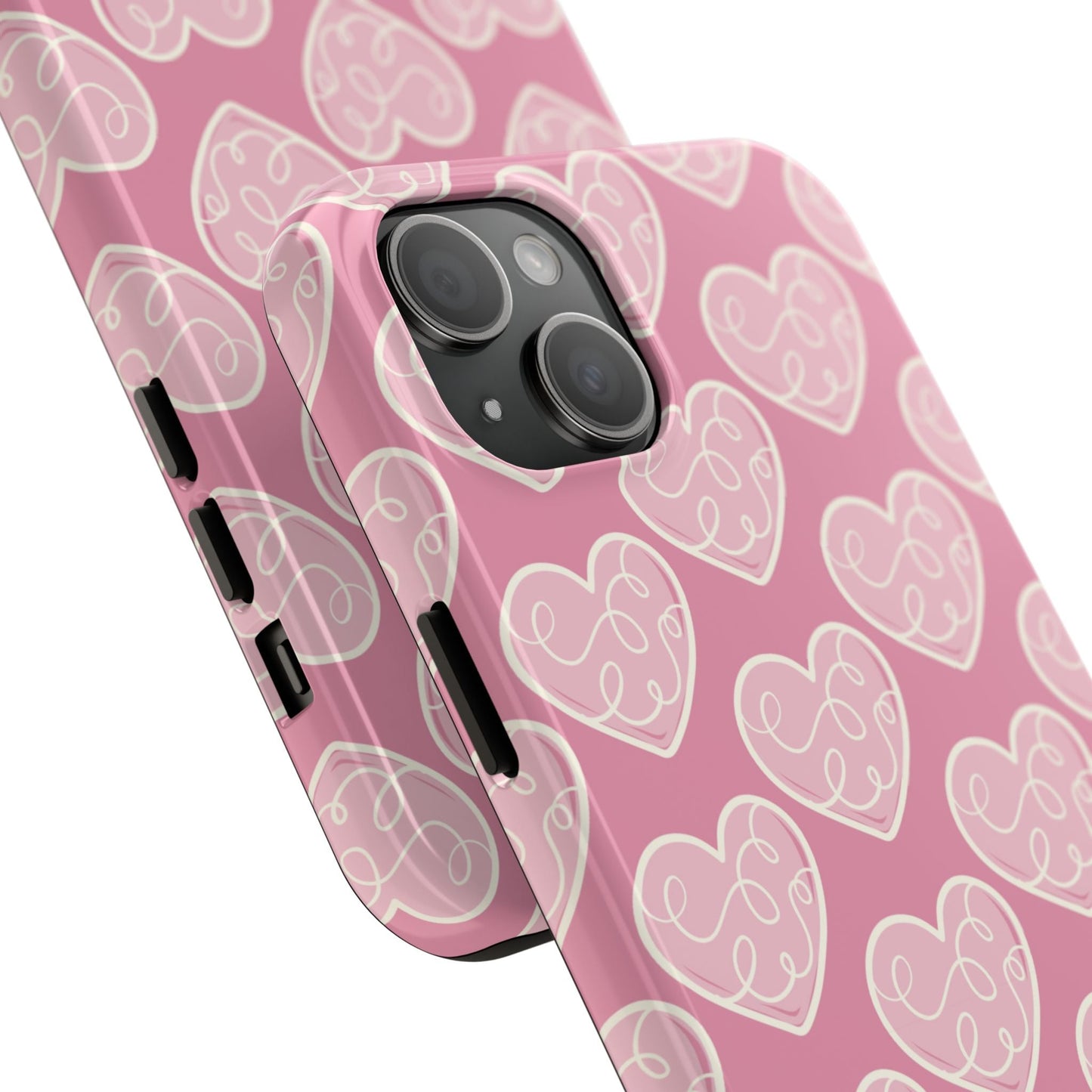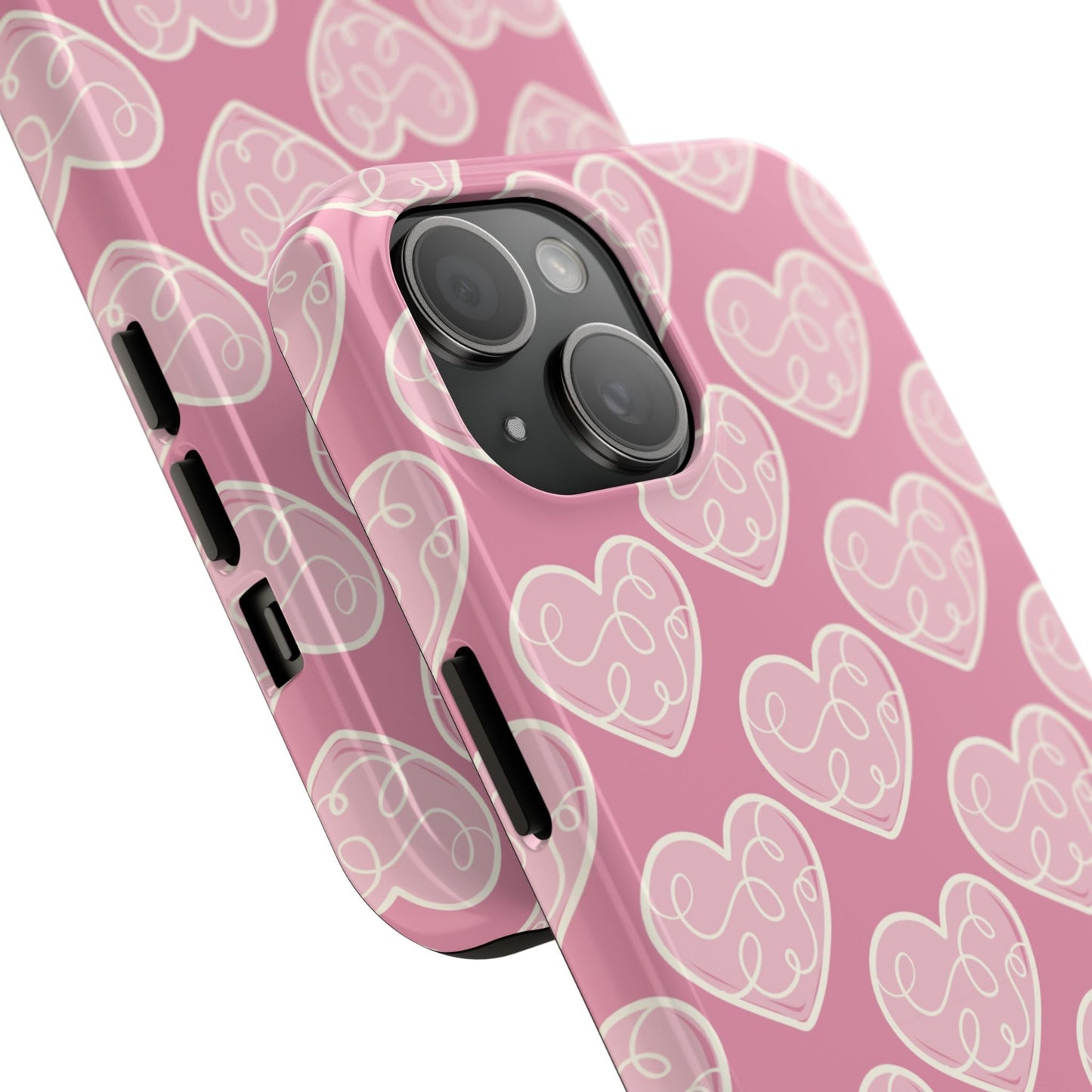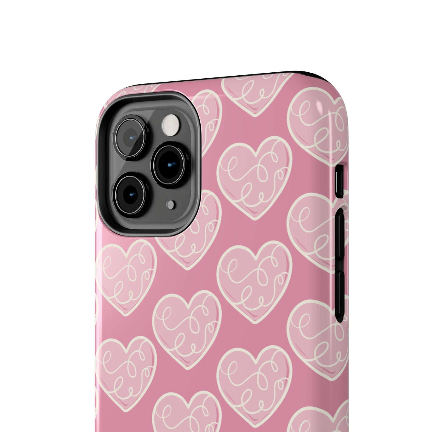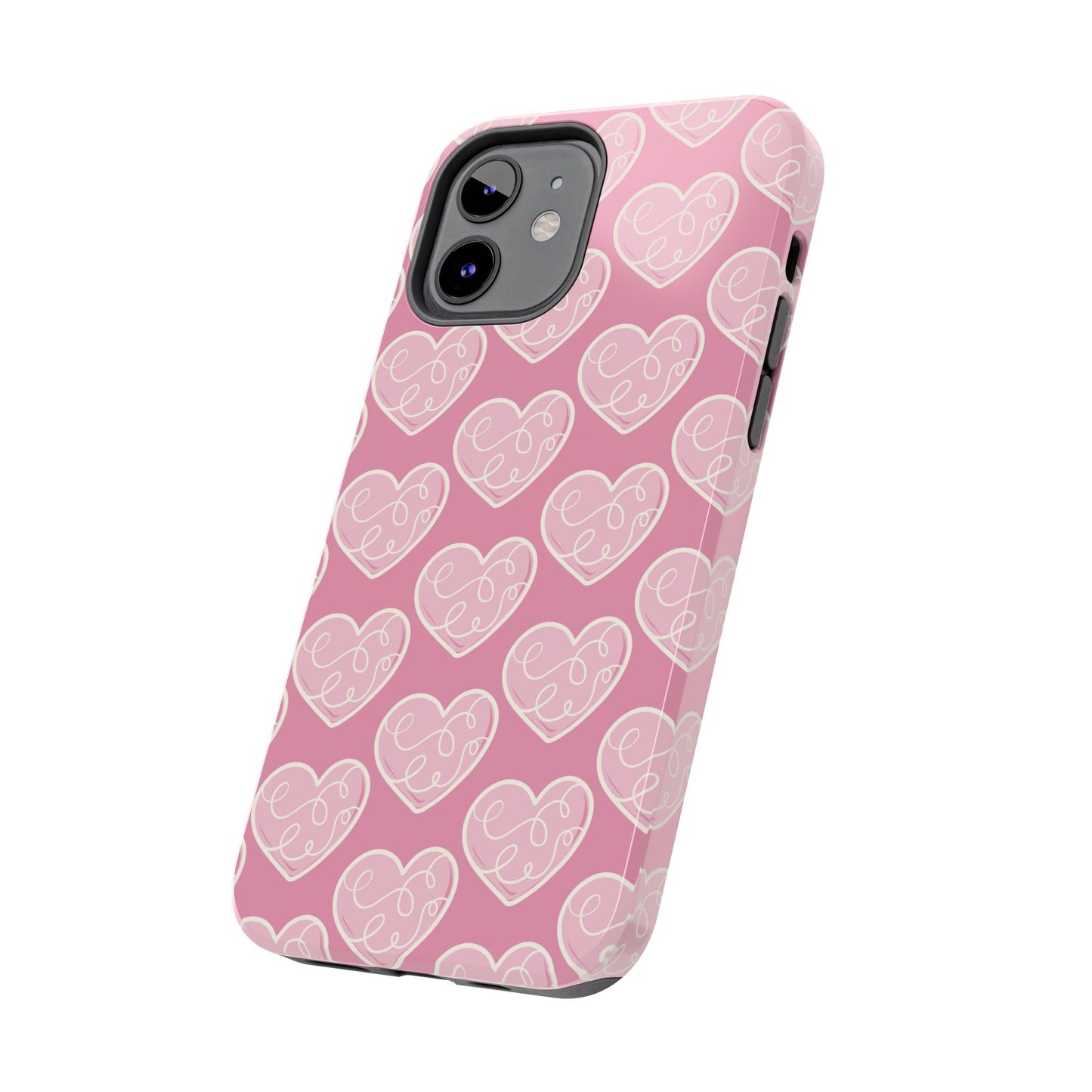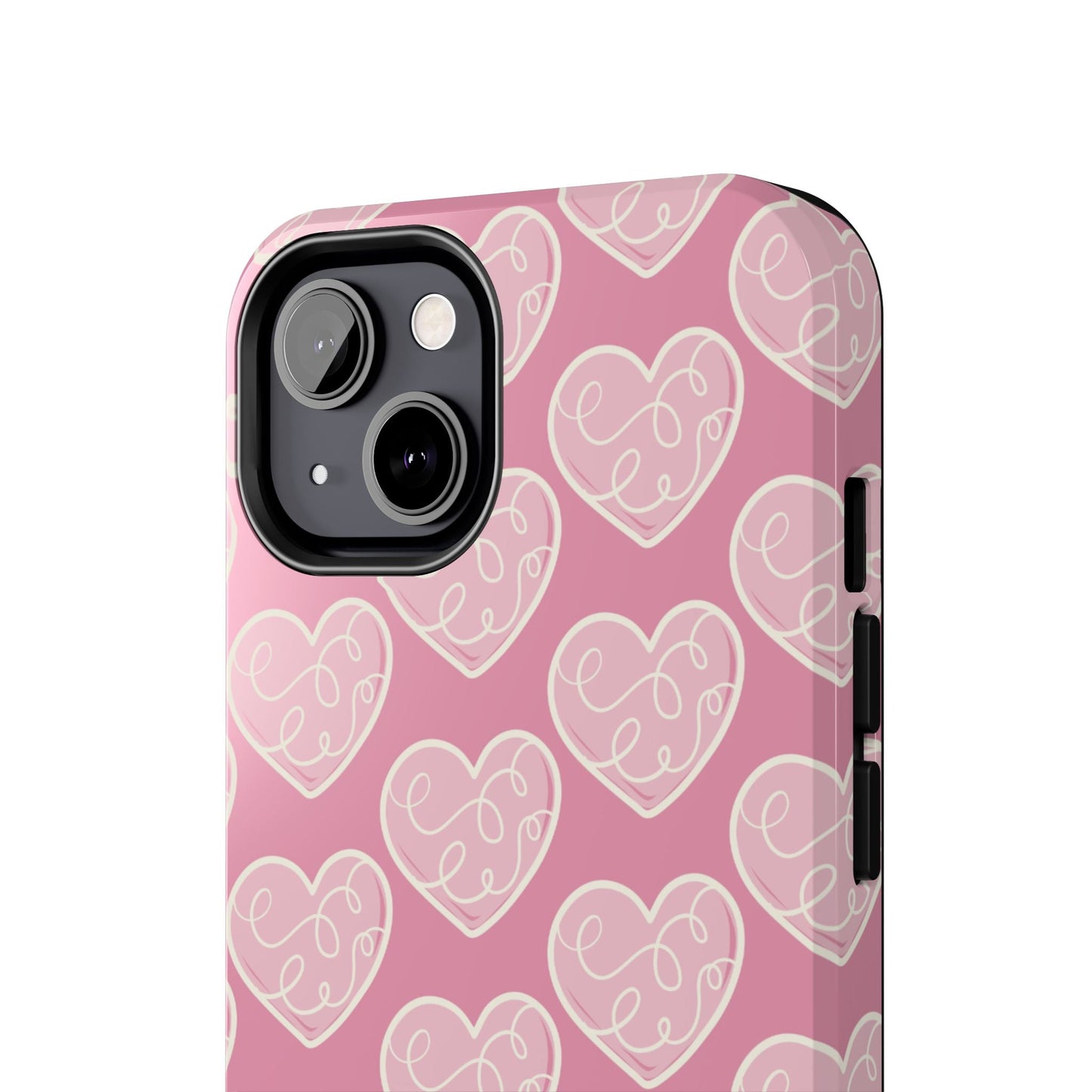 Add a sprinkle of romance to your phone with the Soft Pink Hearts iPhone Case. Featuring an adorable hand-drawn heart design on a soft pink backdrop, this case combines style and dependable protection in one.