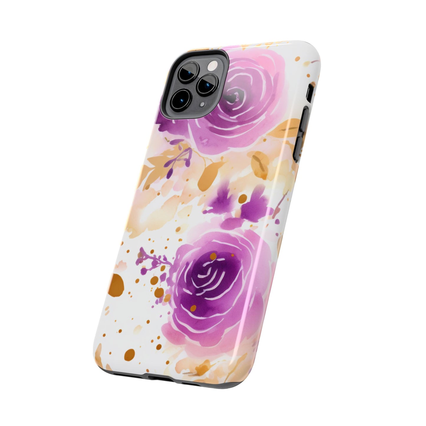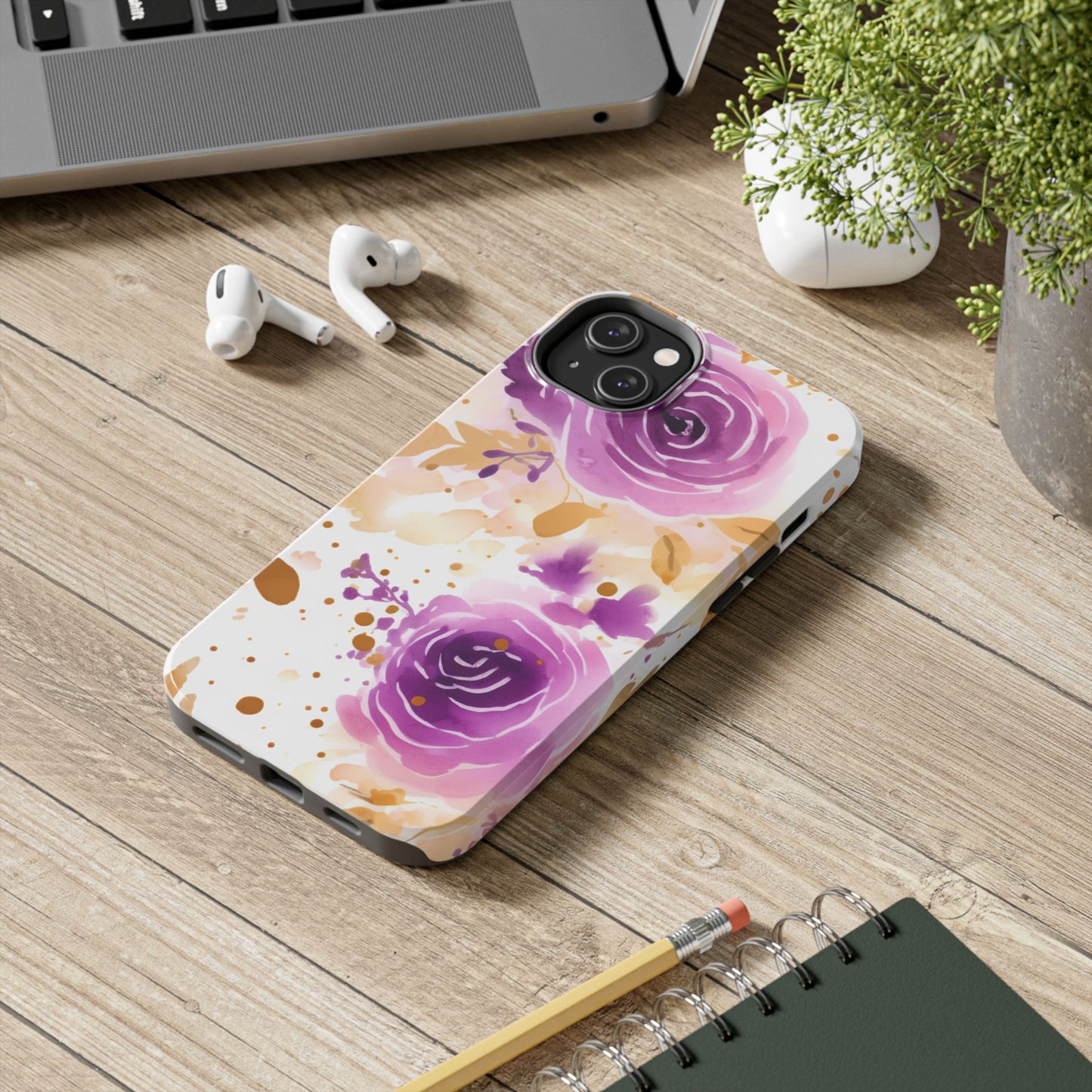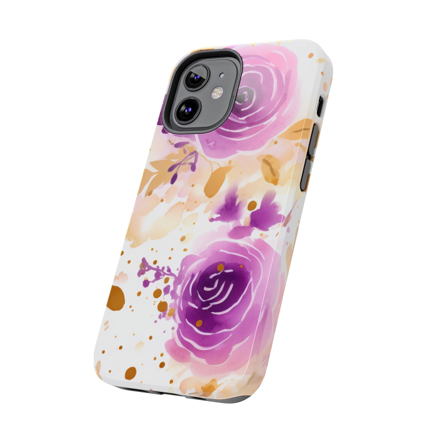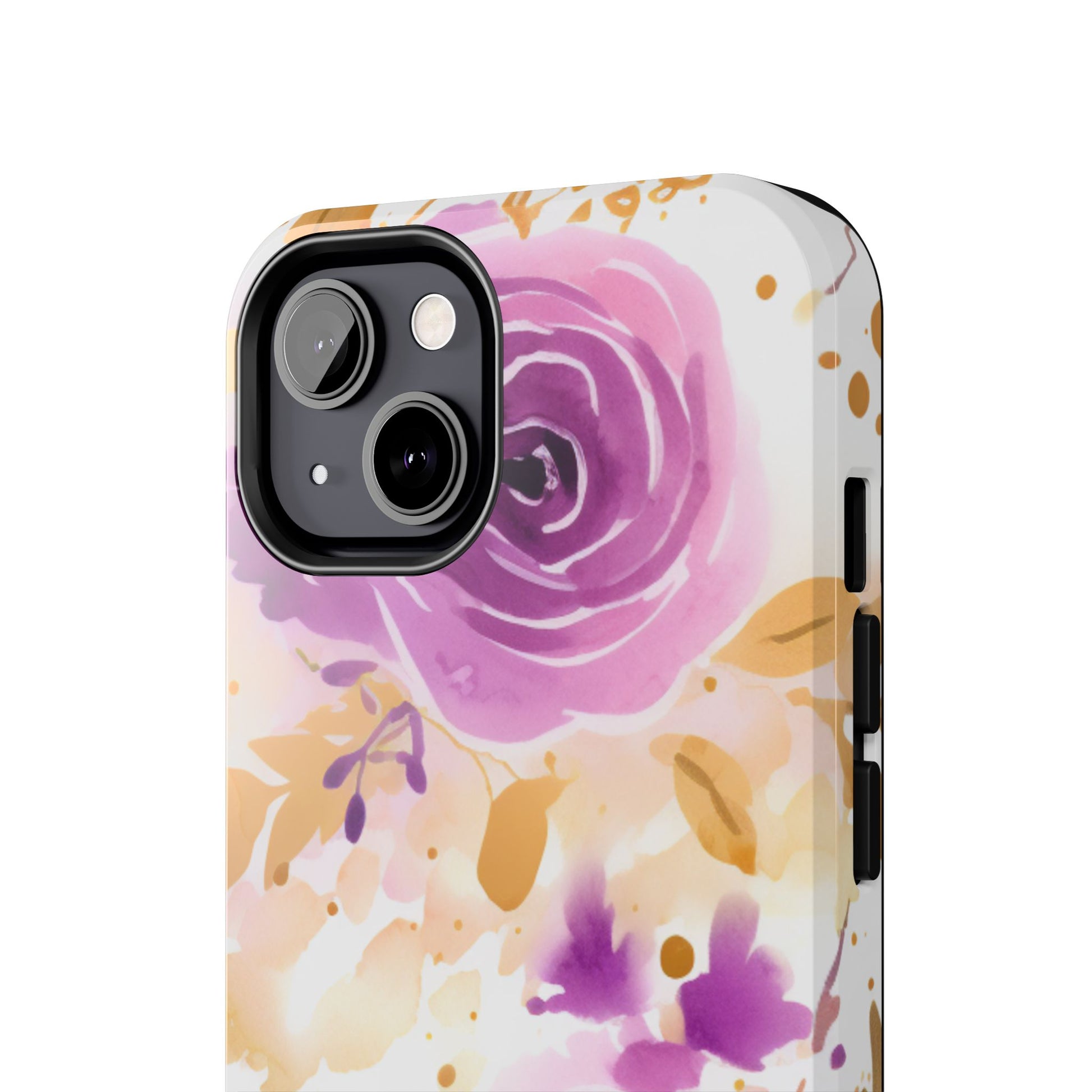 Add a touch of elegance to your phone with this Soft Purple & Gold Floral Splash iPhone case. Featuring a whimsical watercolor design of soft purple roses blended with delicate gold leaves and splatter accents, this case creates a dreamy, artistic look. Perfect for flower lovers and those with an eye for gentle, feminine designs, this case enhances your iPhone’s style while providing robust protection. The delicate blend of lilac, violet, and blush tones with gold details makes this case a standout accessory for any occasion.