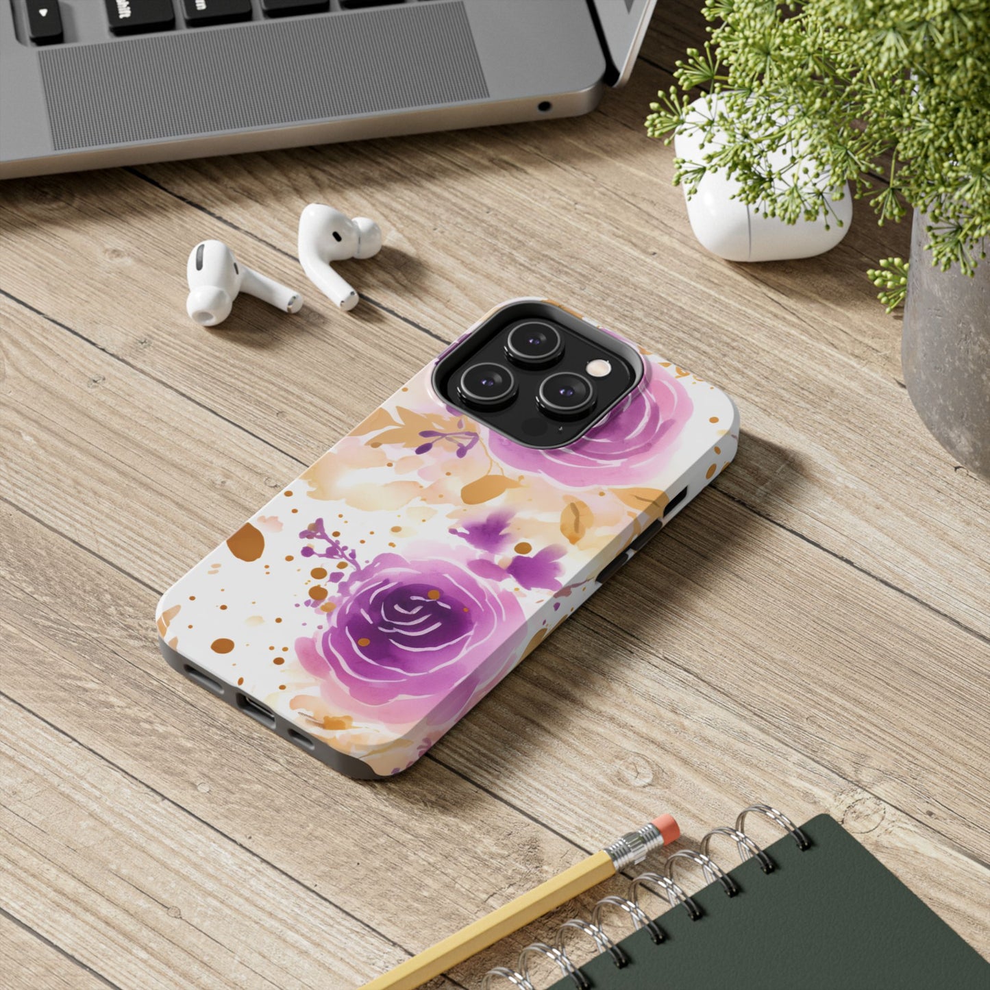 Soft Purple & Gold Floral Splash - iPhone Series Case