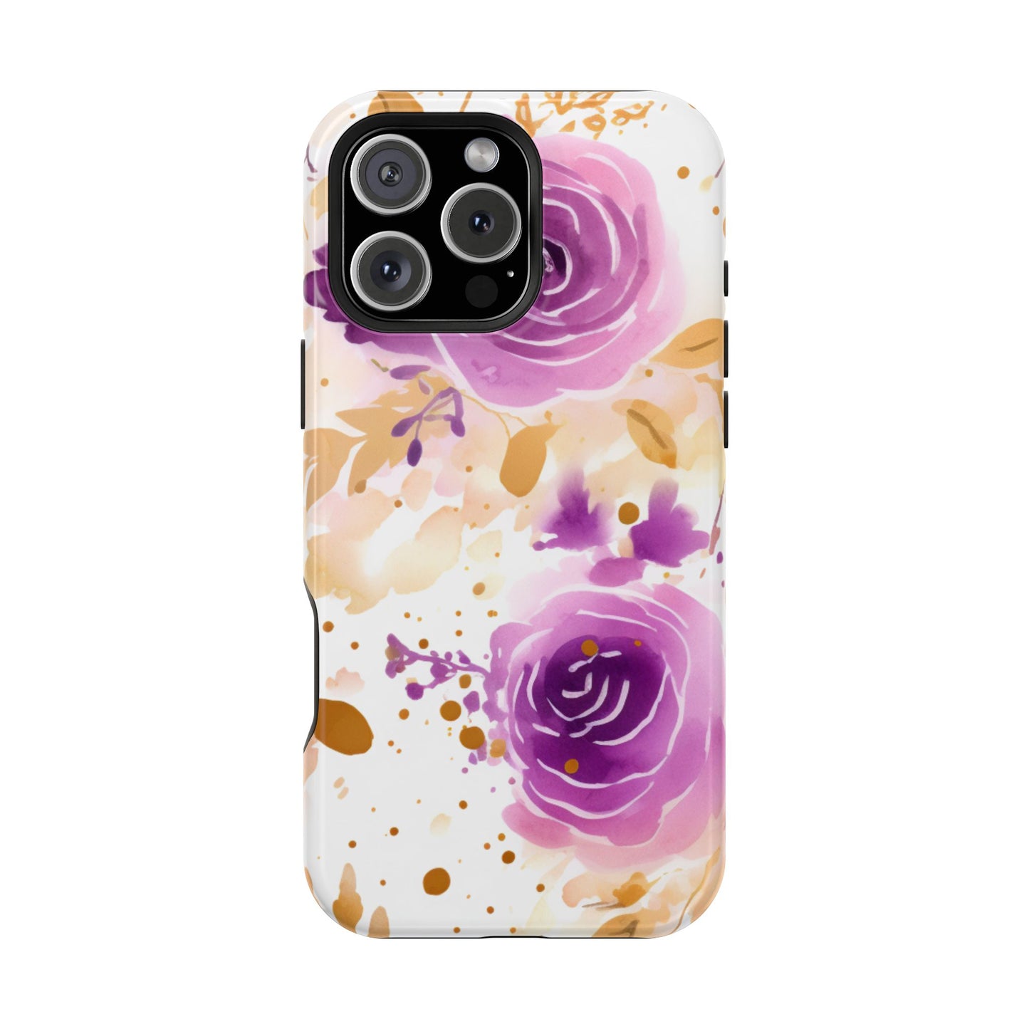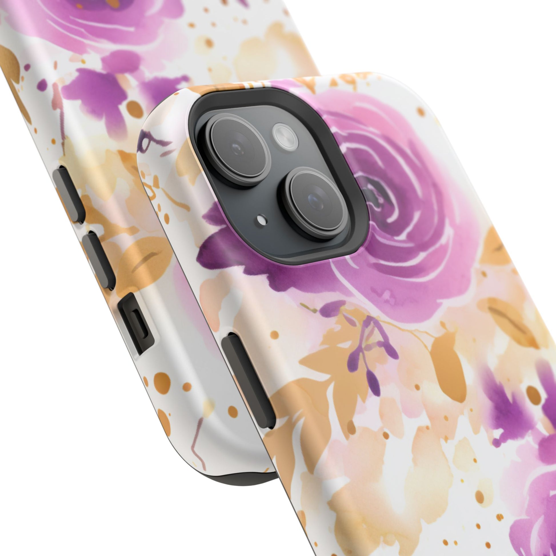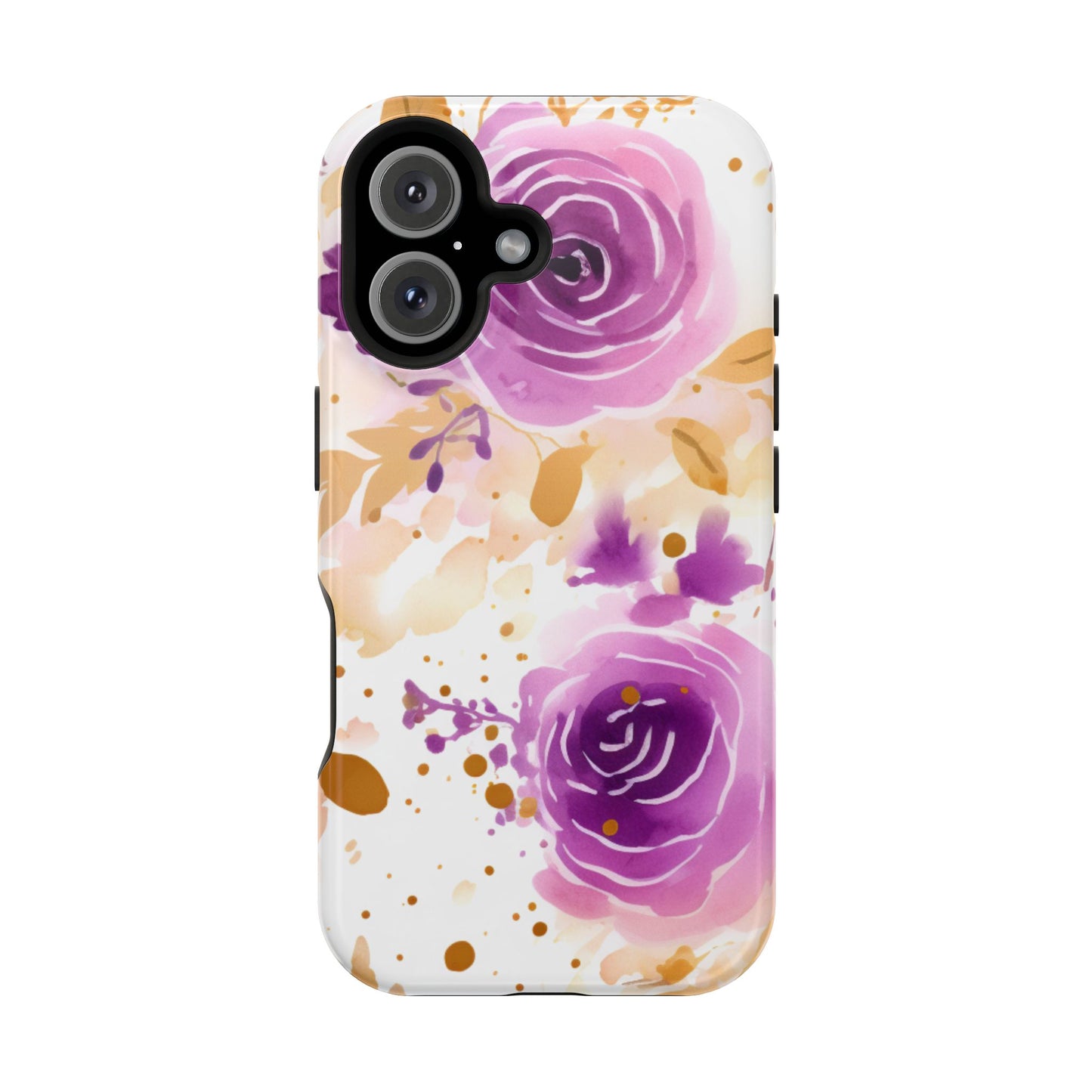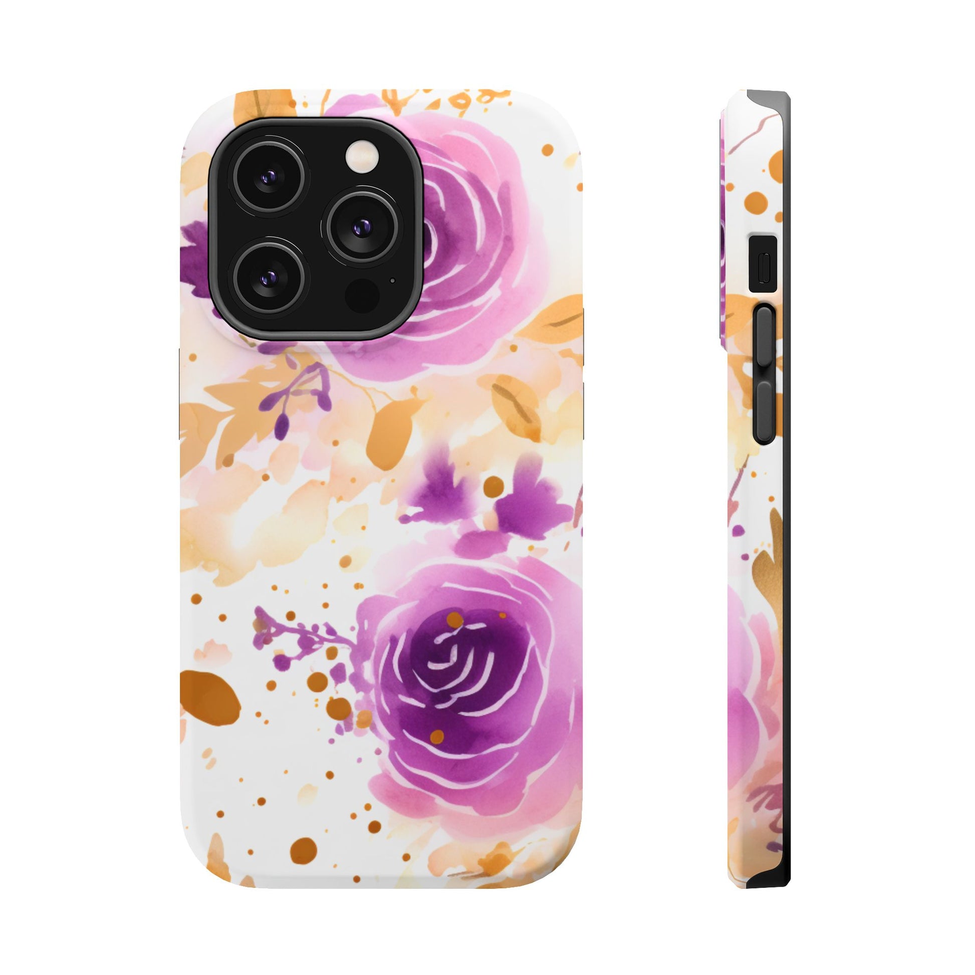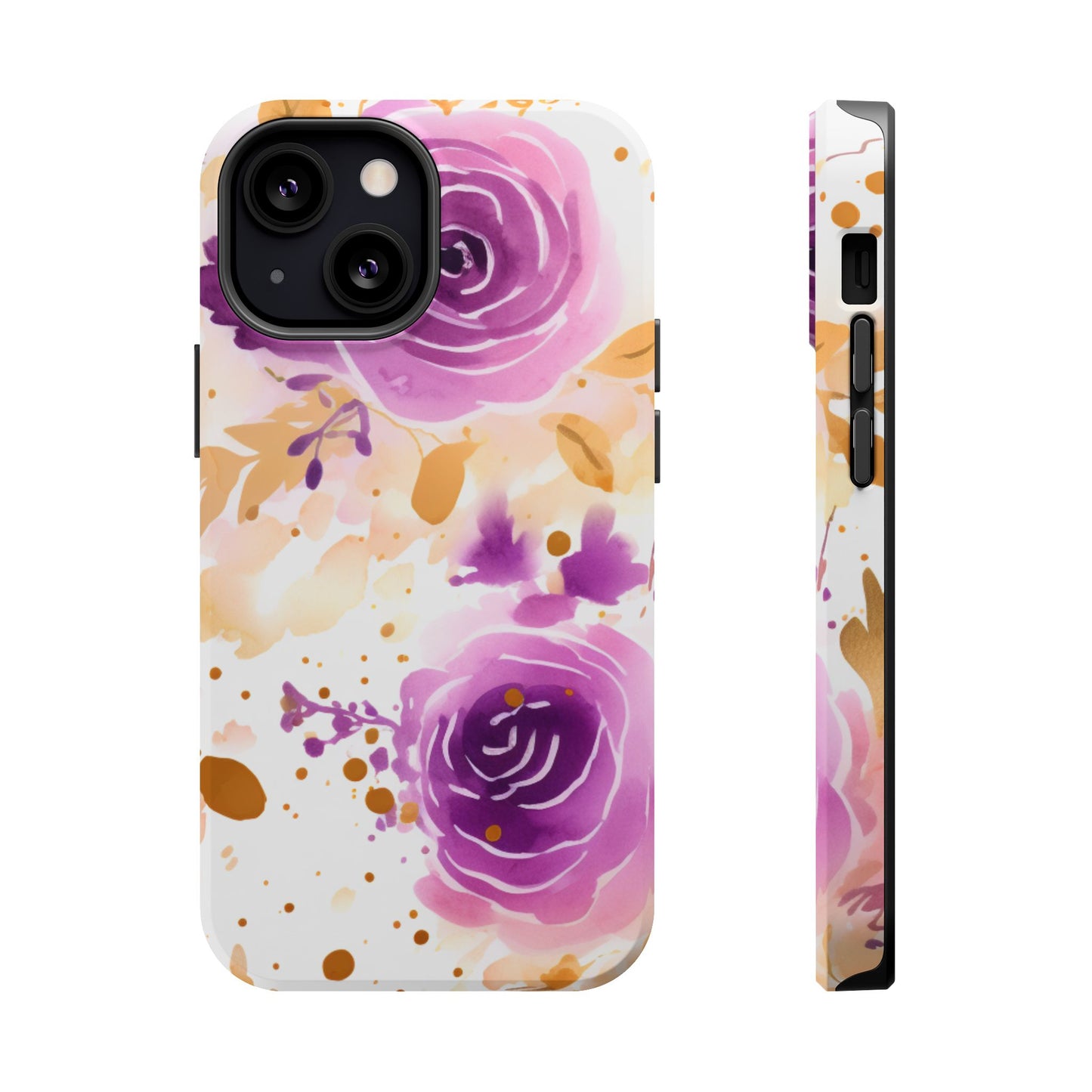 Add a touch of elegance to your phone with this Soft Purple & Gold Floral Splash MagSafe iPhone case. Featuring a whimsical watercolor design of soft purple roses blended with delicate gold leaves and splatter accents, this case creates a dreamy, artistic look. Perfect for flower lovers and those with an eye for gentle, feminine designs, this case enhances your iPhone’s style while providing robust protection. The delicate blend of lilac, violet, and blush tones with gold details makes this case a standout accessory for any occasion.