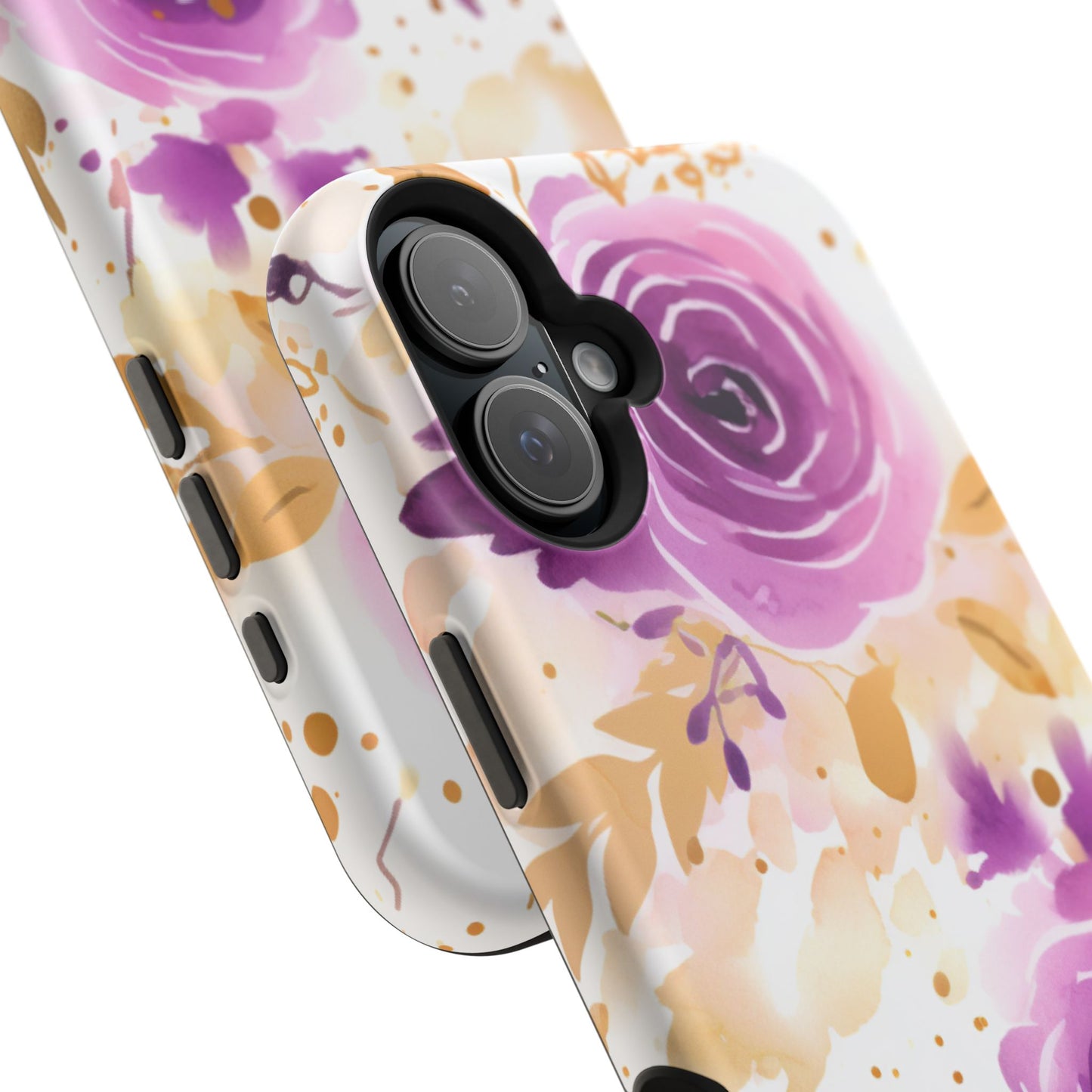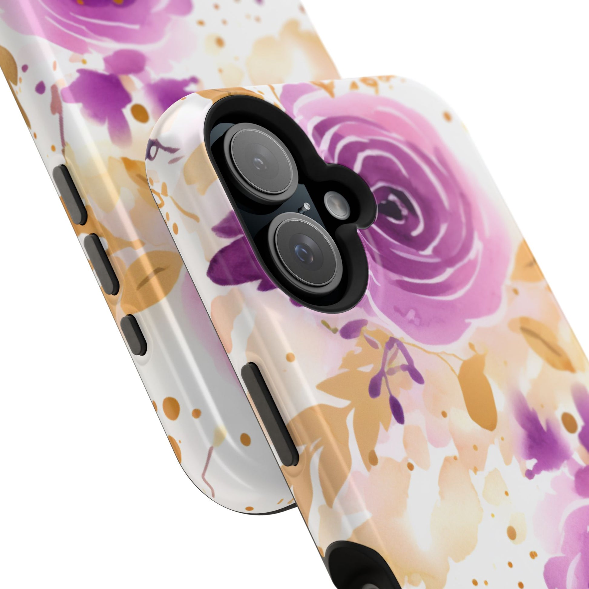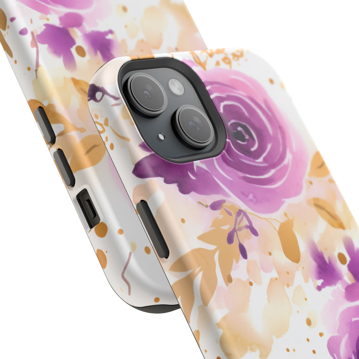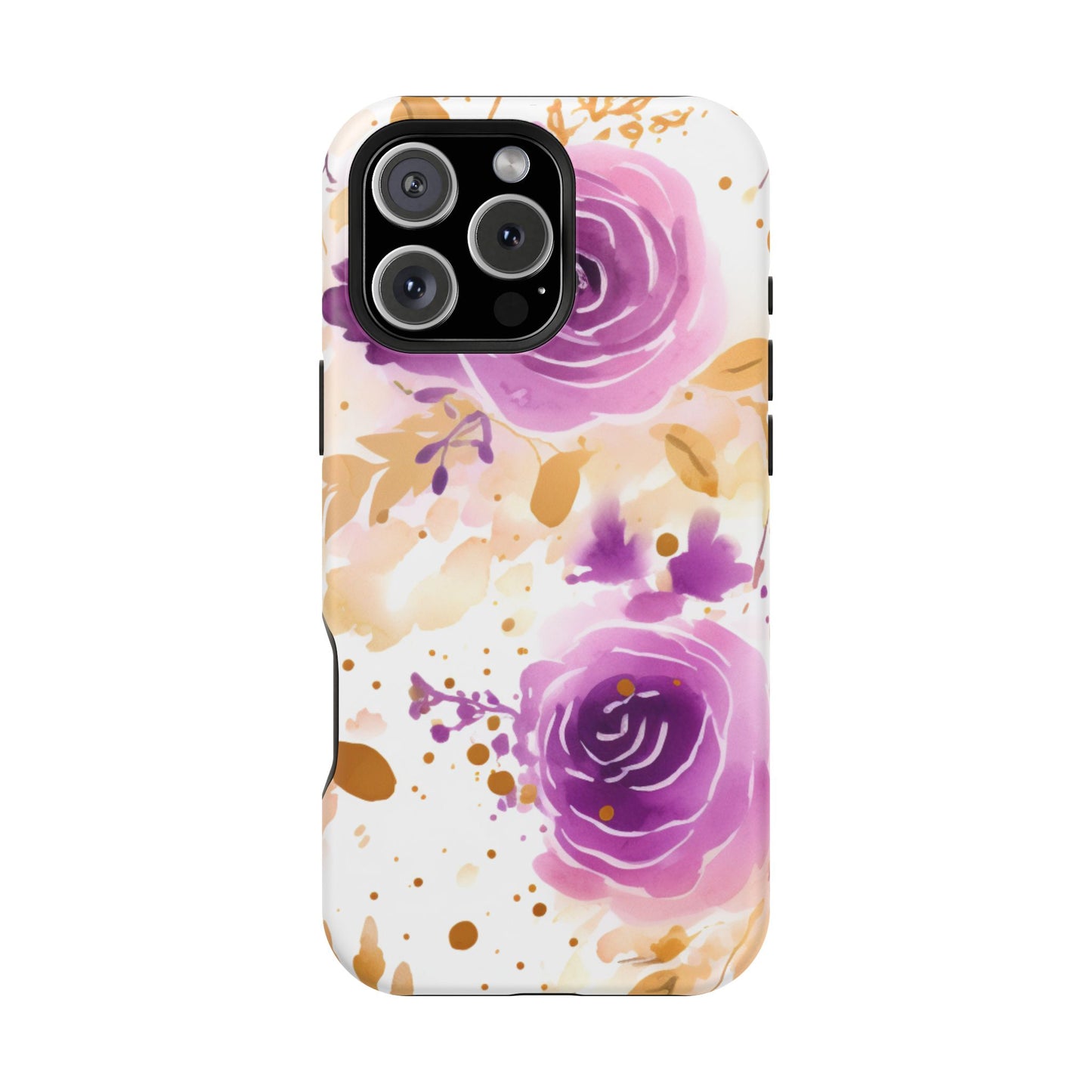 Add a touch of elegance to your phone with this Soft Purple & Gold Floral Splash MagSafe iPhone case. Featuring a whimsical watercolor design of soft purple roses blended with delicate gold leaves and splatter accents, this case creates a dreamy, artistic look. Perfect for flower lovers and those with an eye for gentle, feminine designs, this case enhances your iPhone’s style while providing robust protection. The delicate blend of lilac, violet, and blush tones with gold details makes this case a standout accessory for any occasion.