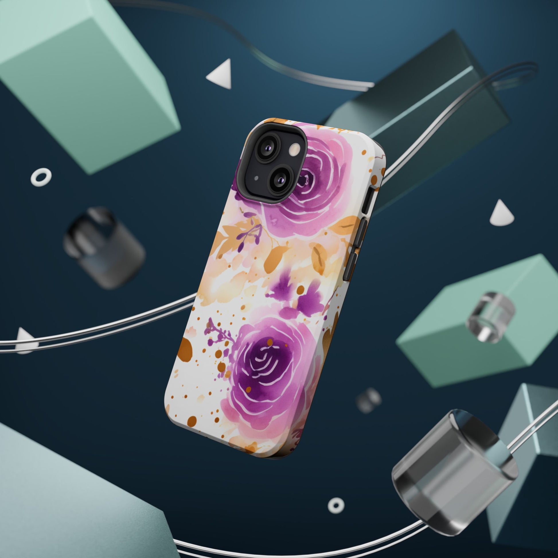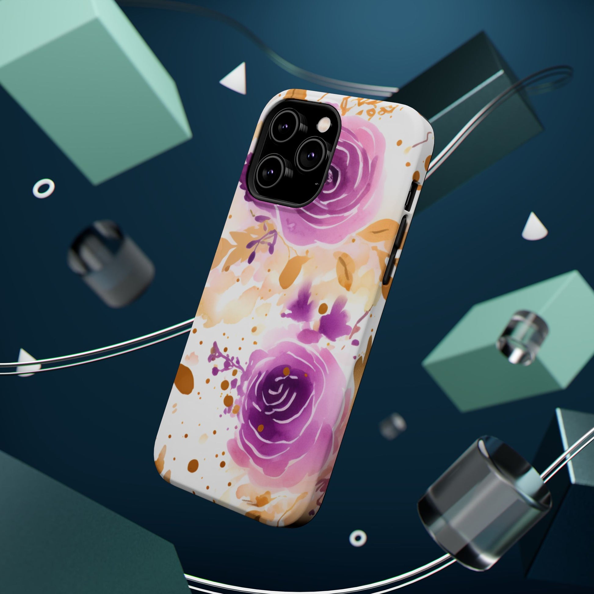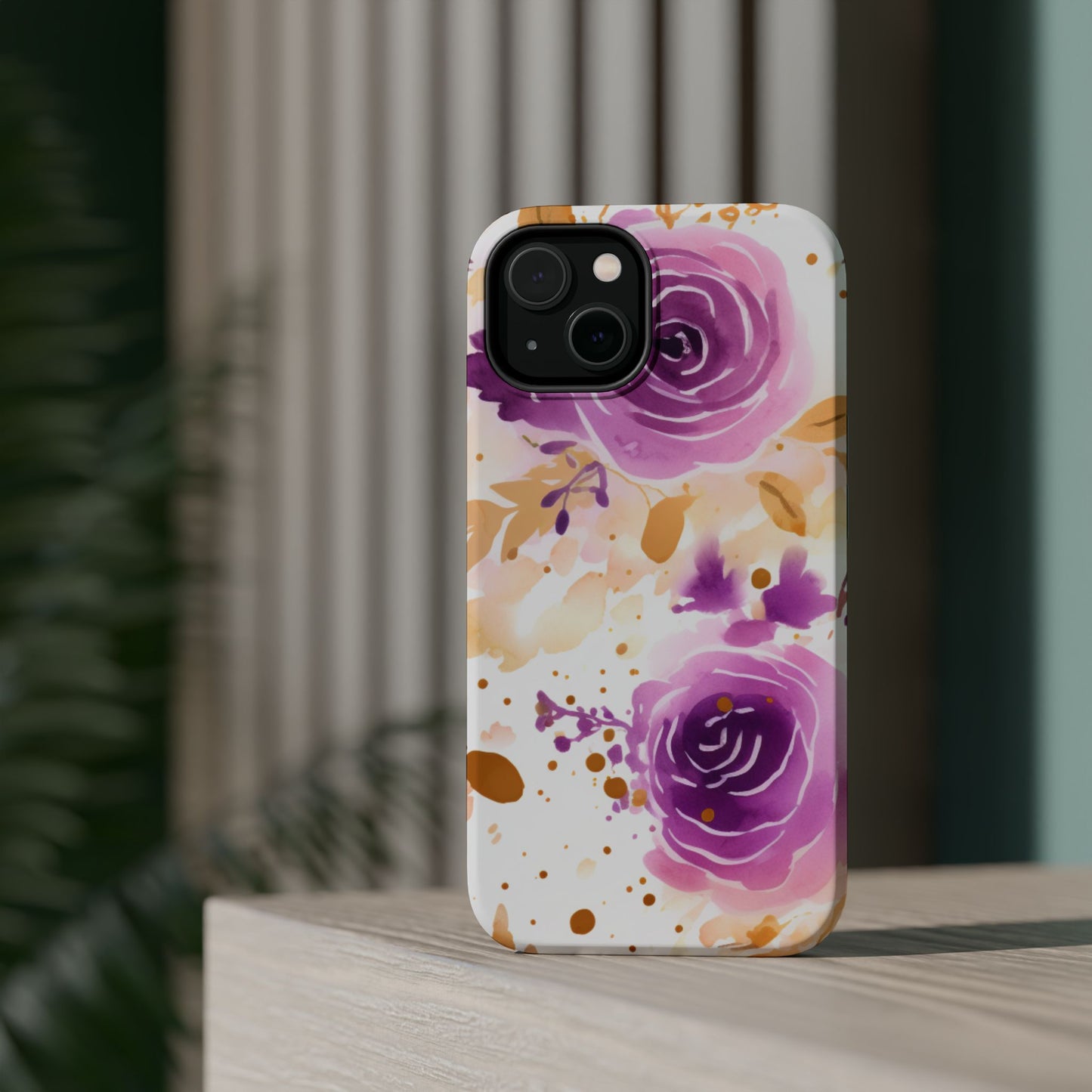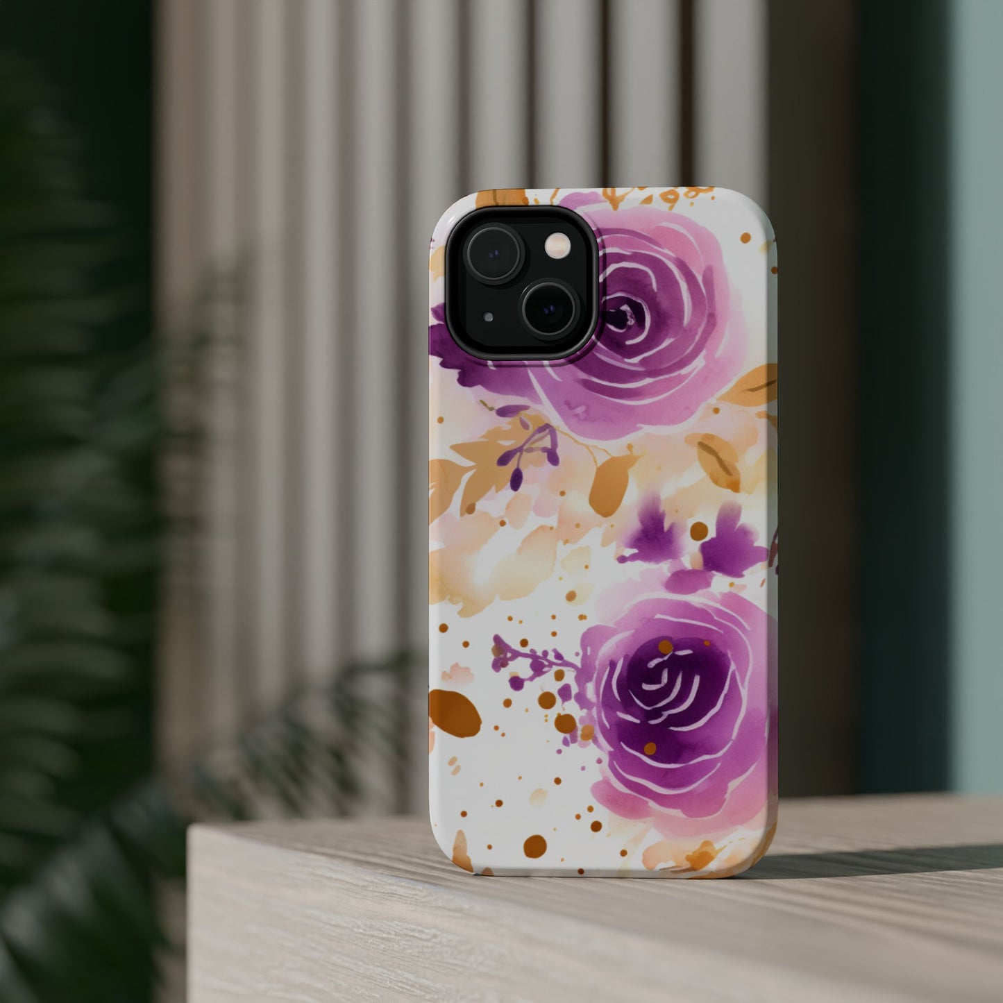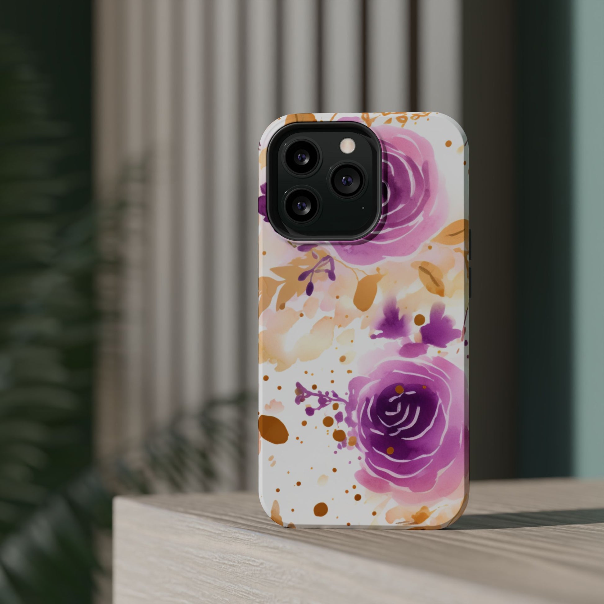 Add a touch of elegance to your phone with this Soft Purple & Gold Floral Splash MagSafe iPhone case. Featuring a whimsical watercolor design of soft purple roses blended with delicate gold leaves and splatter accents, this case creates a dreamy, artistic look. Perfect for flower lovers and those with an eye for gentle, feminine designs, this case enhances your iPhone’s style while providing robust protection. The delicate blend of lilac, violet, and blush tones with gold details makes this case a standout accessory for any occasion.
