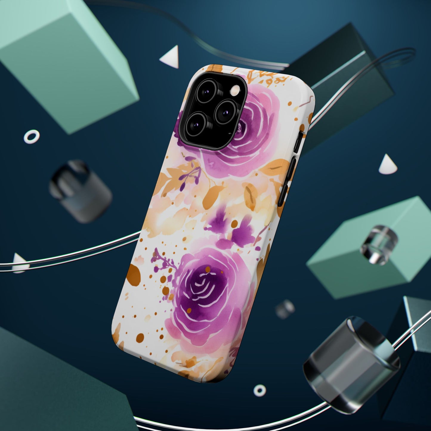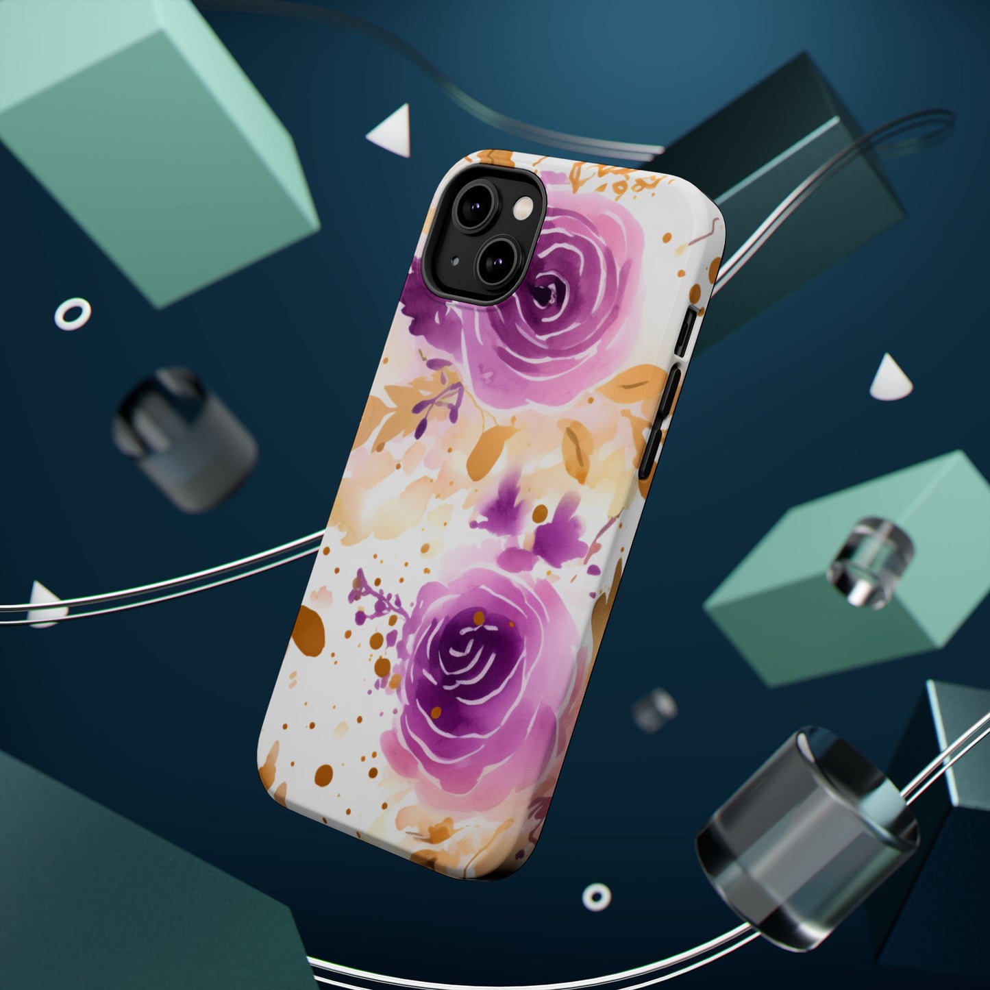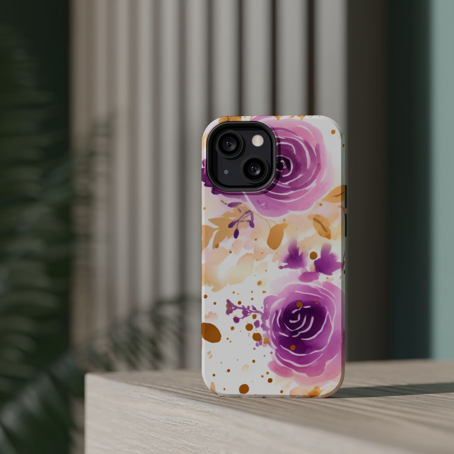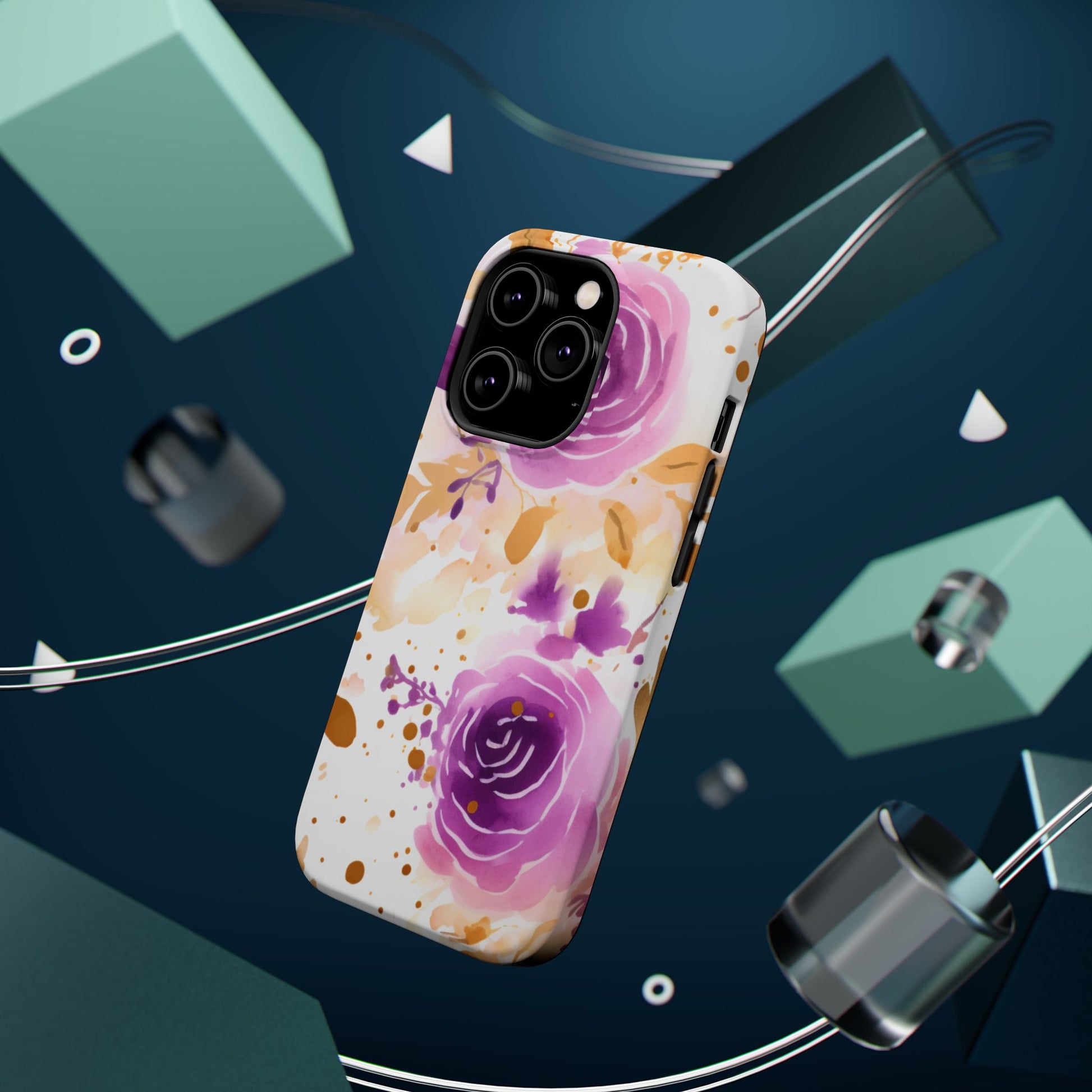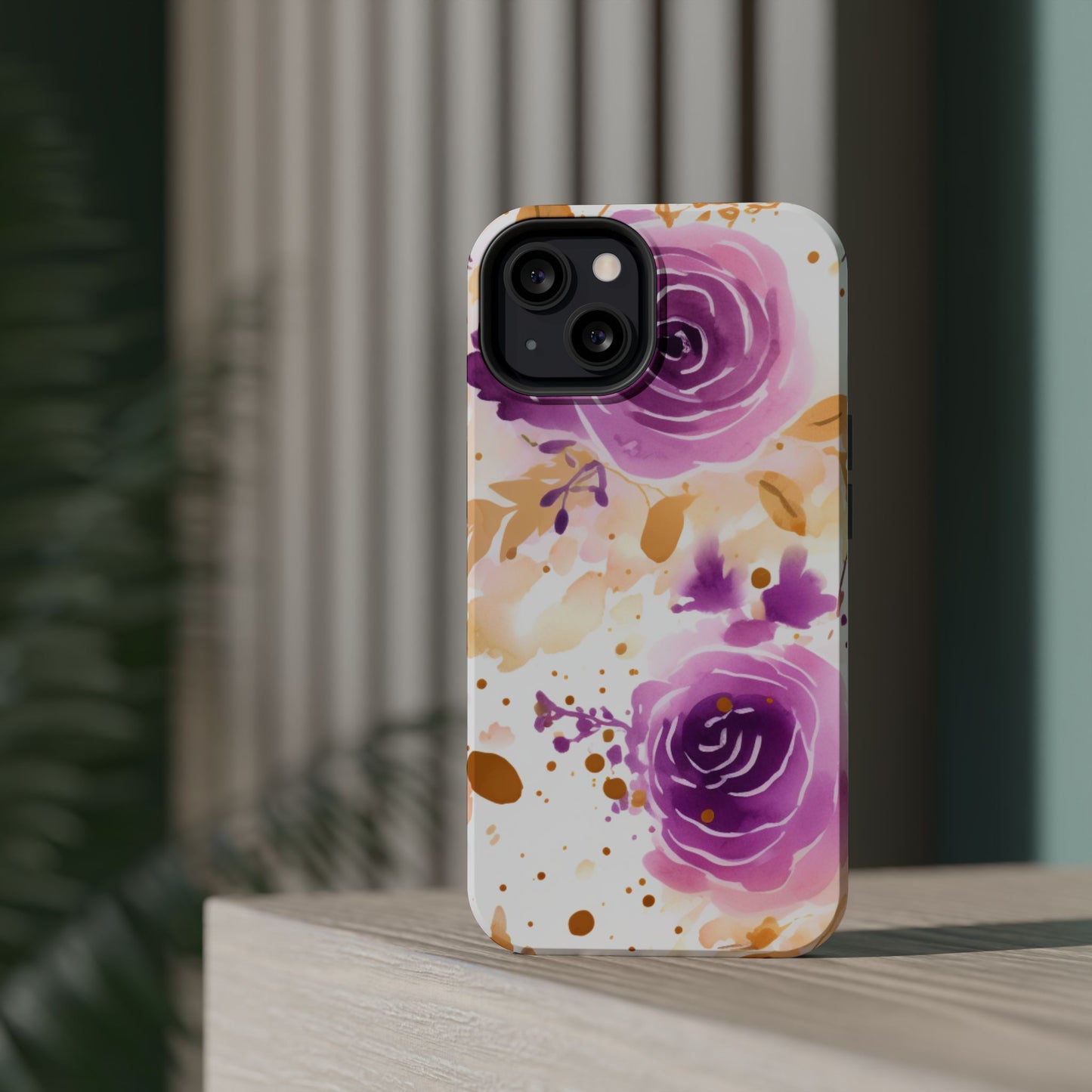 Add a touch of elegance to your phone with this Soft Purple & Gold Floral Splash MagSafe iPhone case. Featuring a whimsical watercolor design of soft purple roses blended with delicate gold leaves and splatter accents, this case creates a dreamy, artistic look. Perfect for flower lovers and those with an eye for gentle, feminine designs, this case enhances your iPhone’s style while providing robust protection. The delicate blend of lilac, violet, and blush tones with gold details makes this case a standout accessory for any occasion.