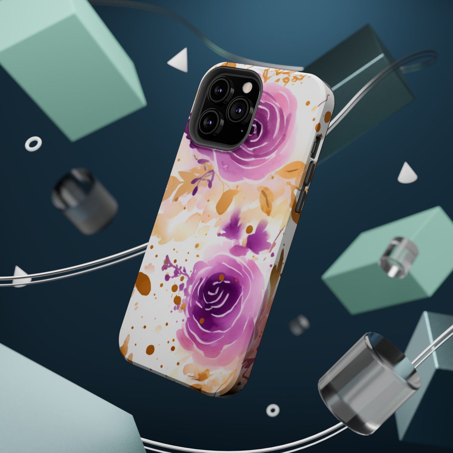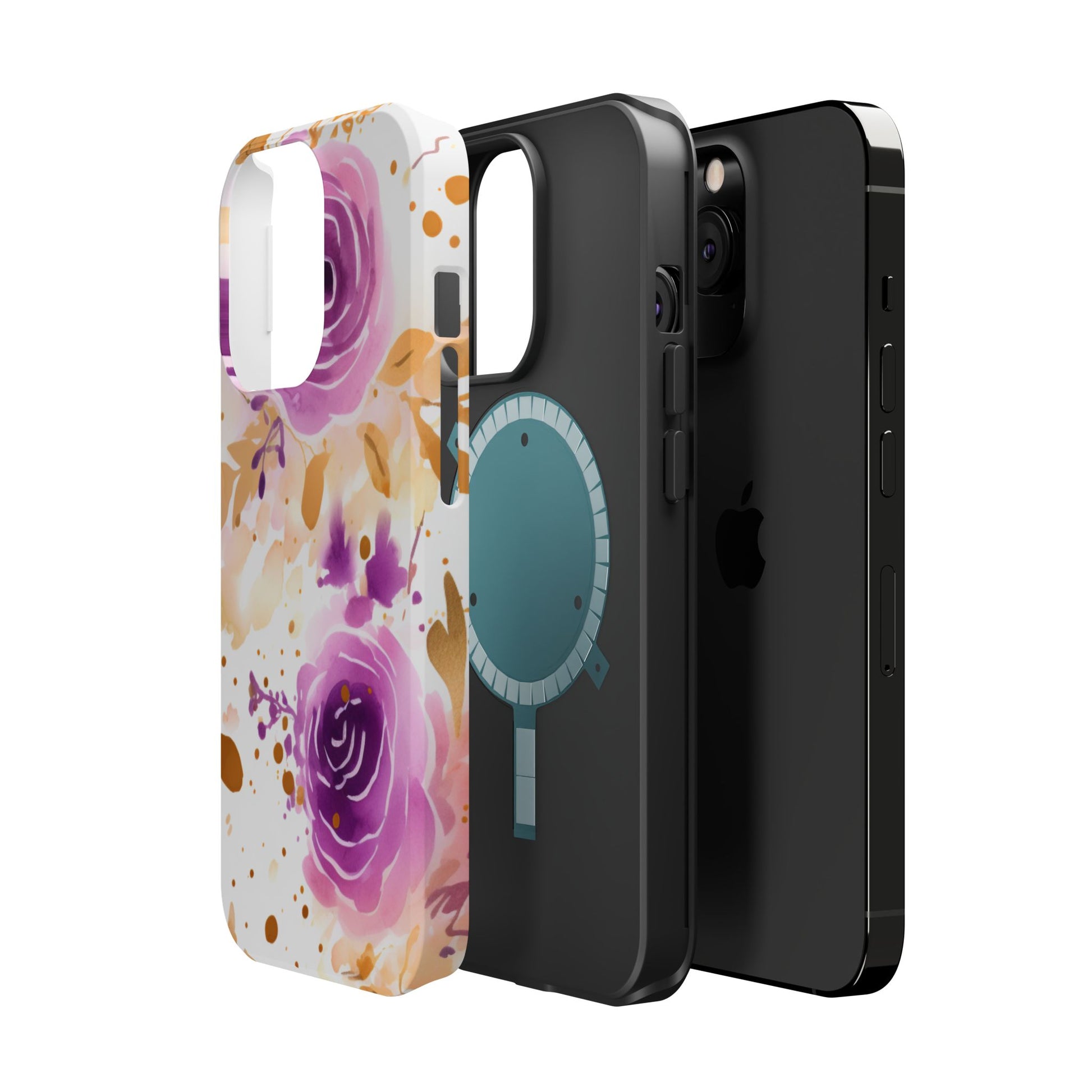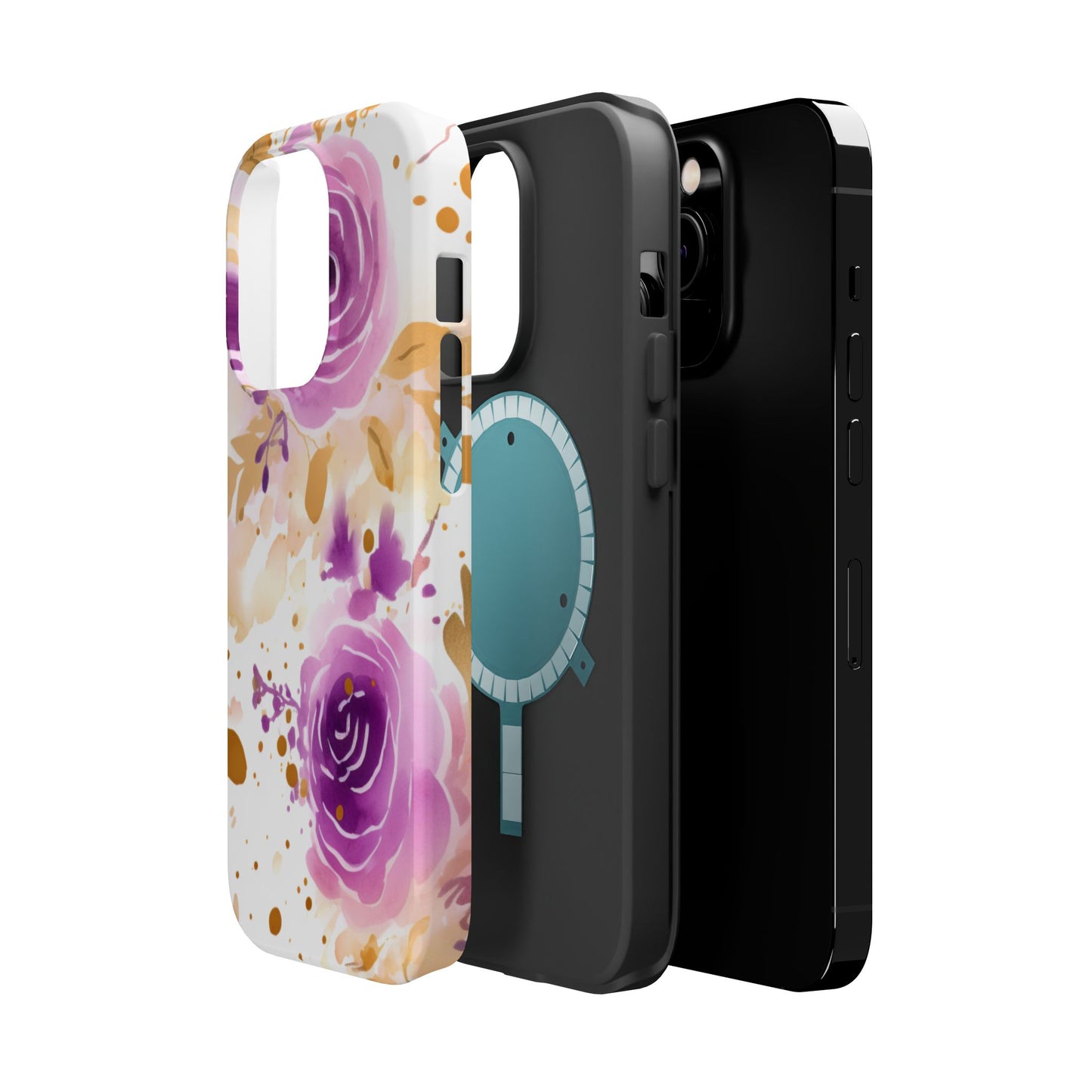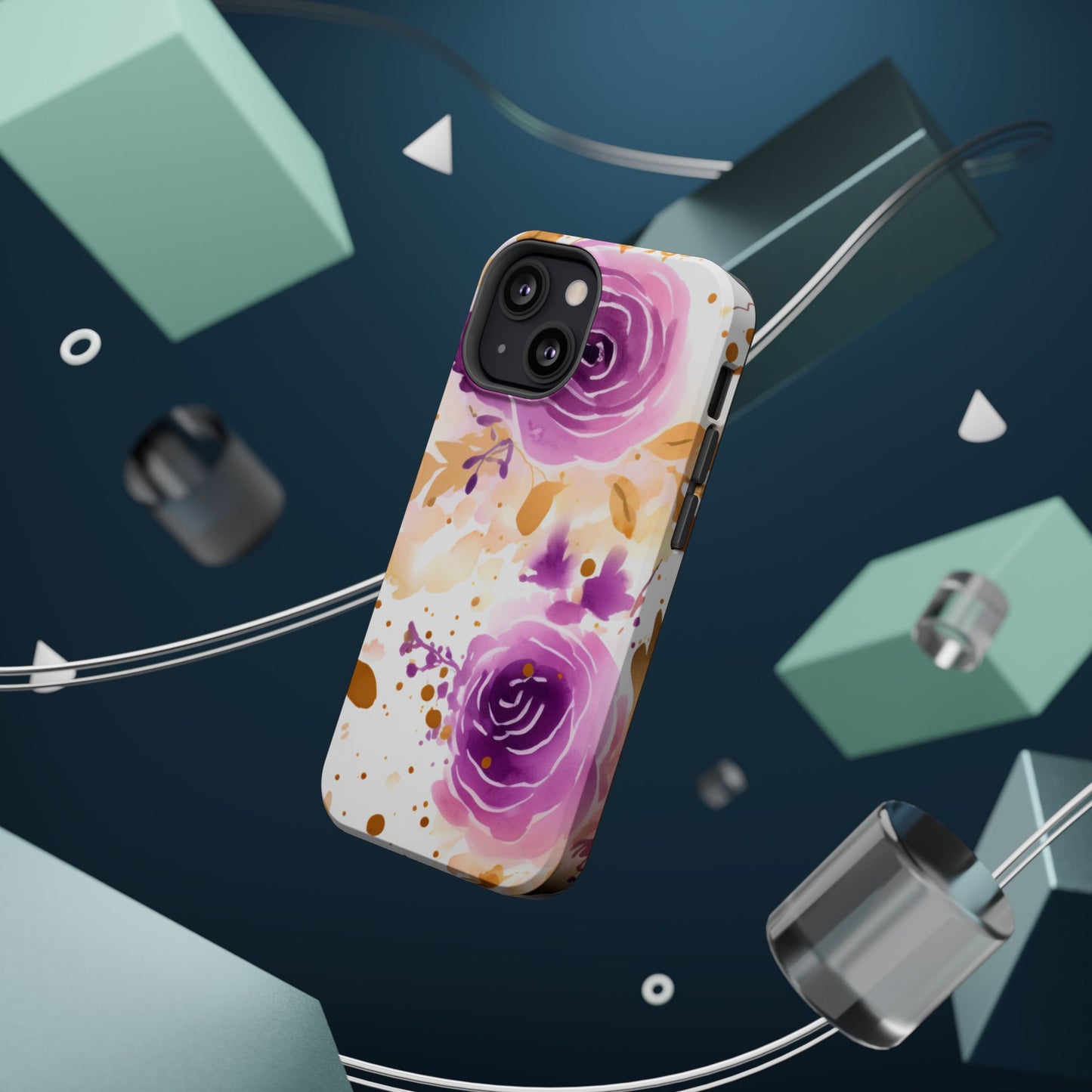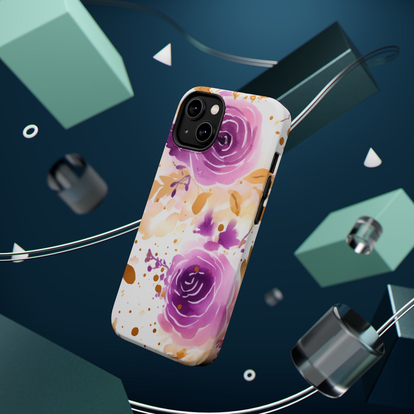 Add a touch of elegance to your phone with this Soft Purple & Gold Floral Splash MagSafe iPhone case. Featuring a whimsical watercolor design of soft purple roses blended with delicate gold leaves and splatter accents, this case creates a dreamy, artistic look. Perfect for flower lovers and those with an eye for gentle, feminine designs, this case enhances your iPhone’s style while providing robust protection. The delicate blend of lilac, violet, and blush tones with gold details makes this case a standout accessory for any occasion.