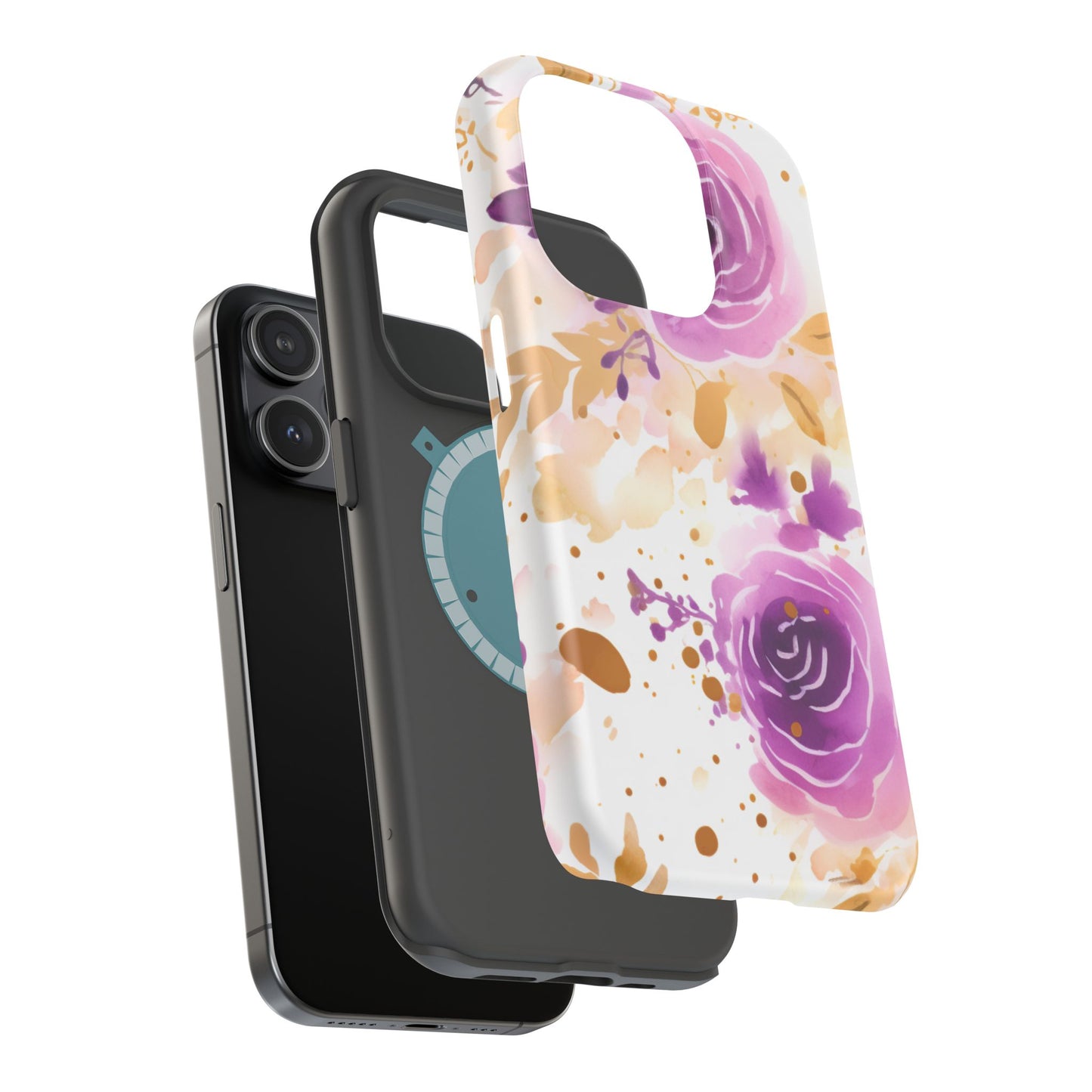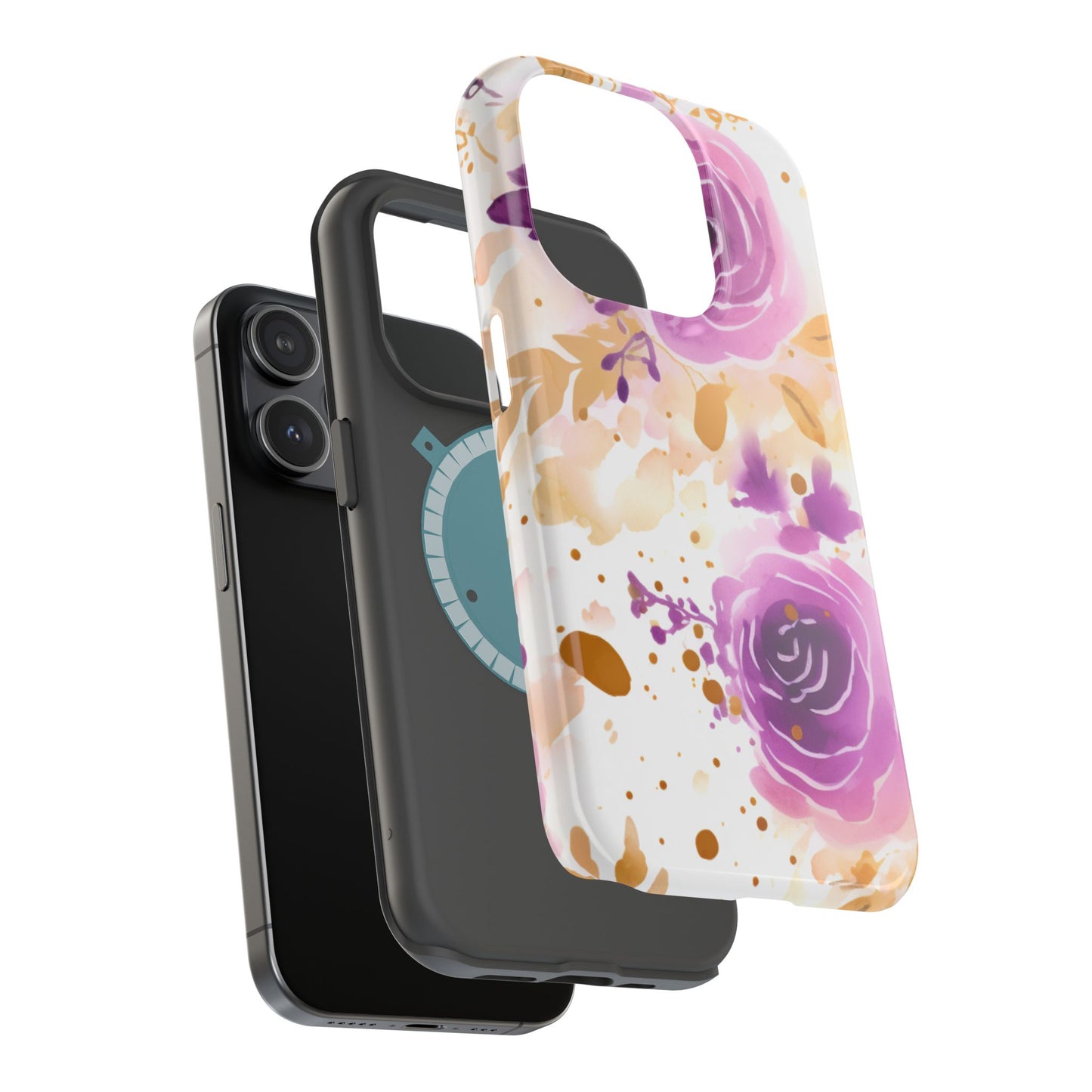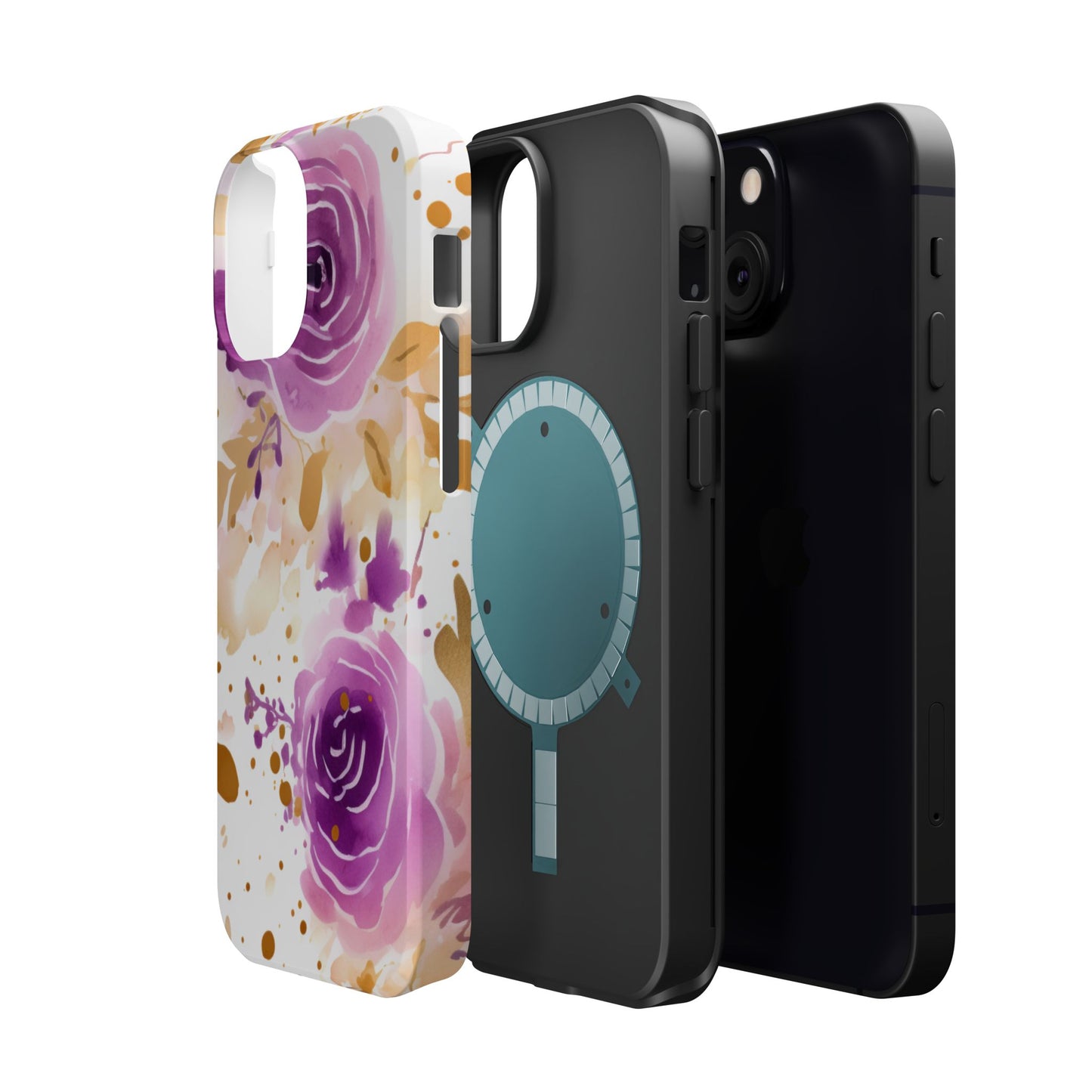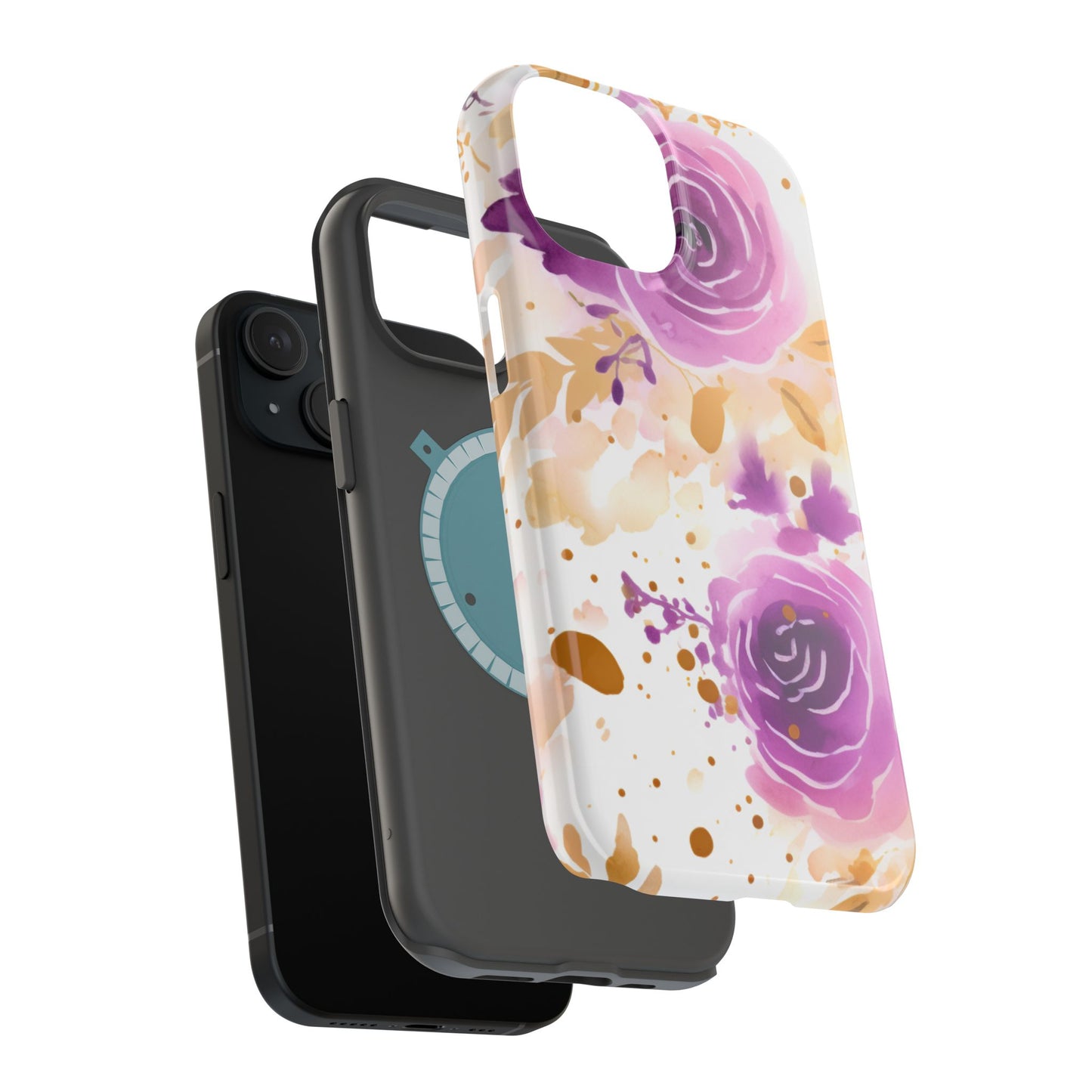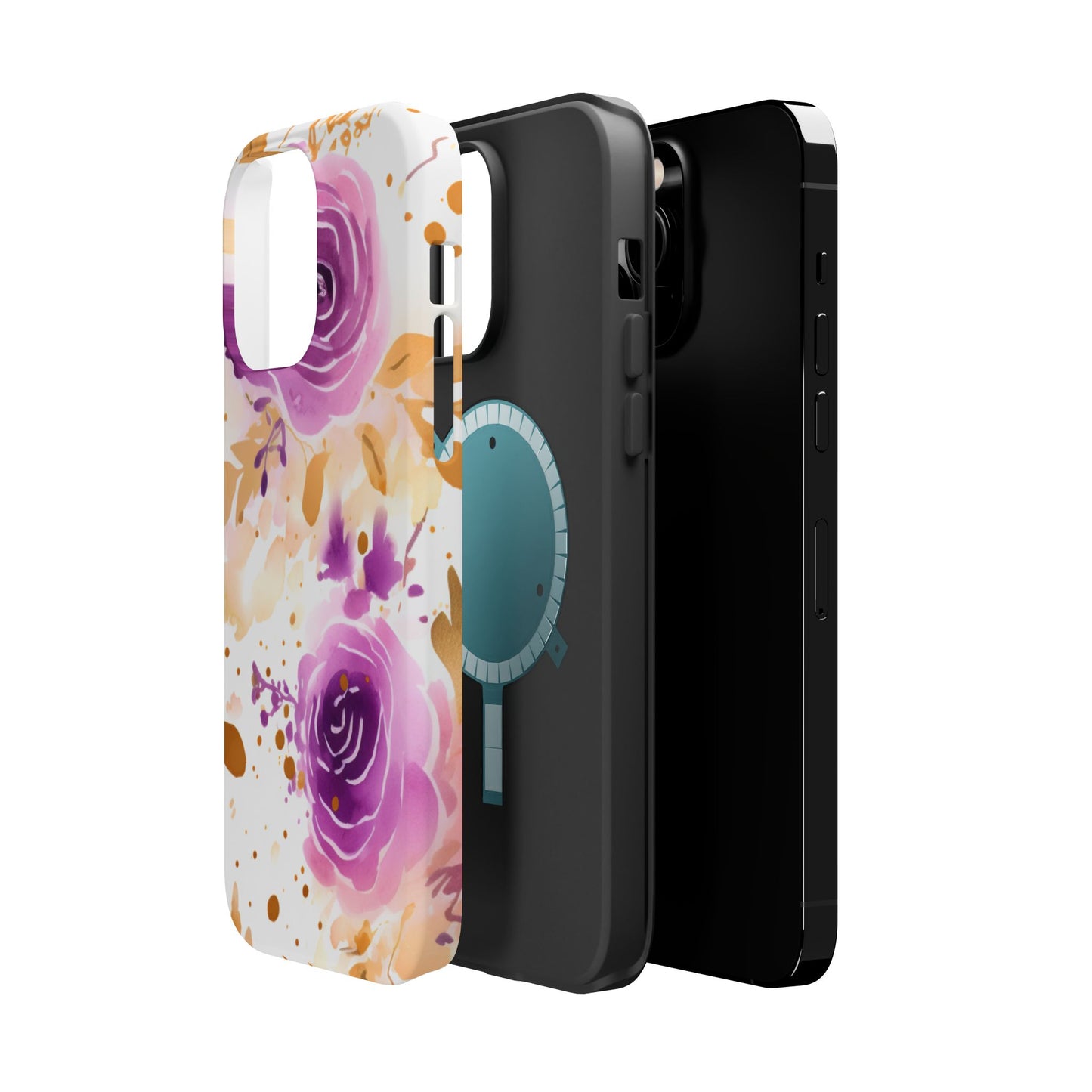 Add a touch of elegance to your phone with this Soft Purple & Gold Floral Splash MagSafe iPhone case. Featuring a whimsical watercolor design of soft purple roses blended with delicate gold leaves and splatter accents, this case creates a dreamy, artistic look. Perfect for flower lovers and those with an eye for gentle, feminine designs, this case enhances your iPhone’s style while providing robust protection. The delicate blend of lilac, violet, and blush tones with gold details makes this case a standout accessory for any occasion.