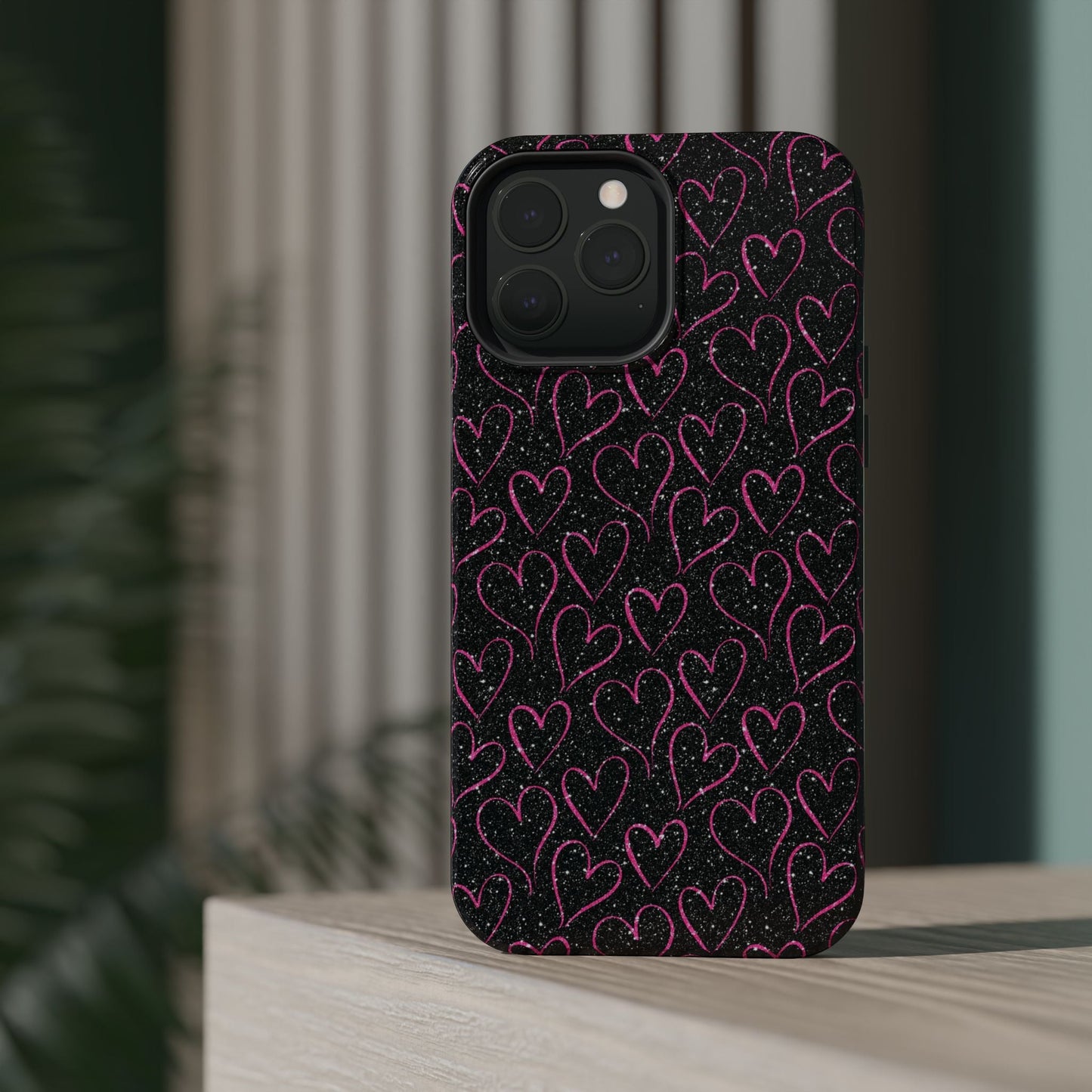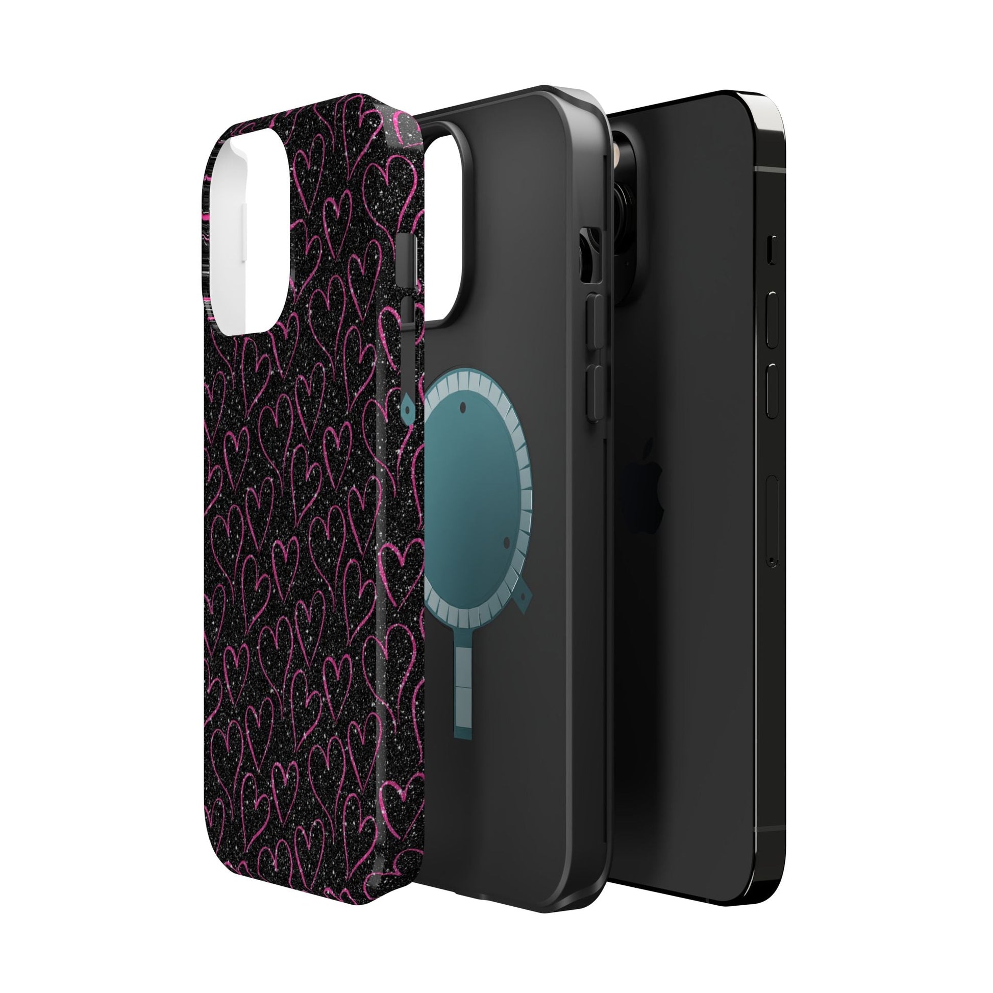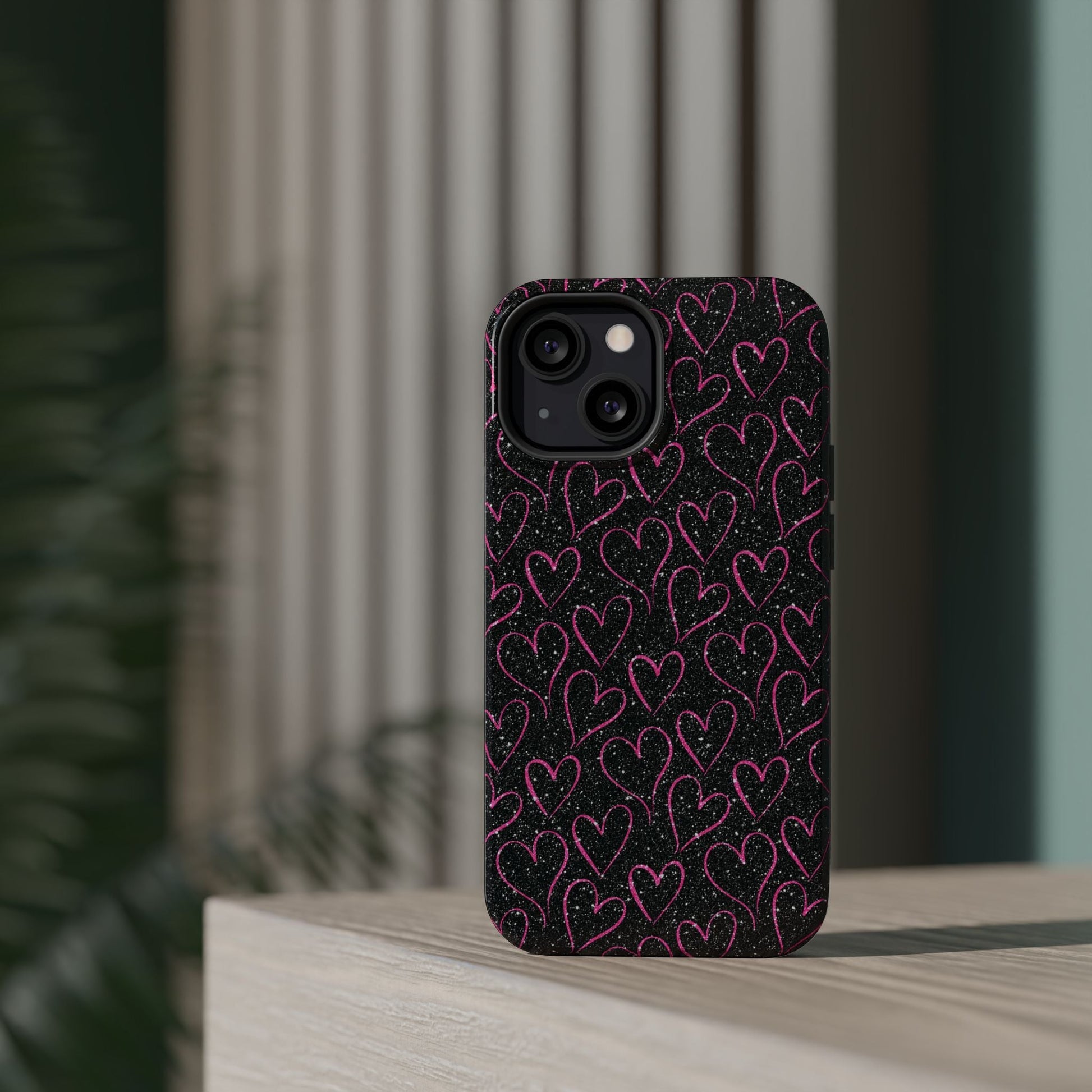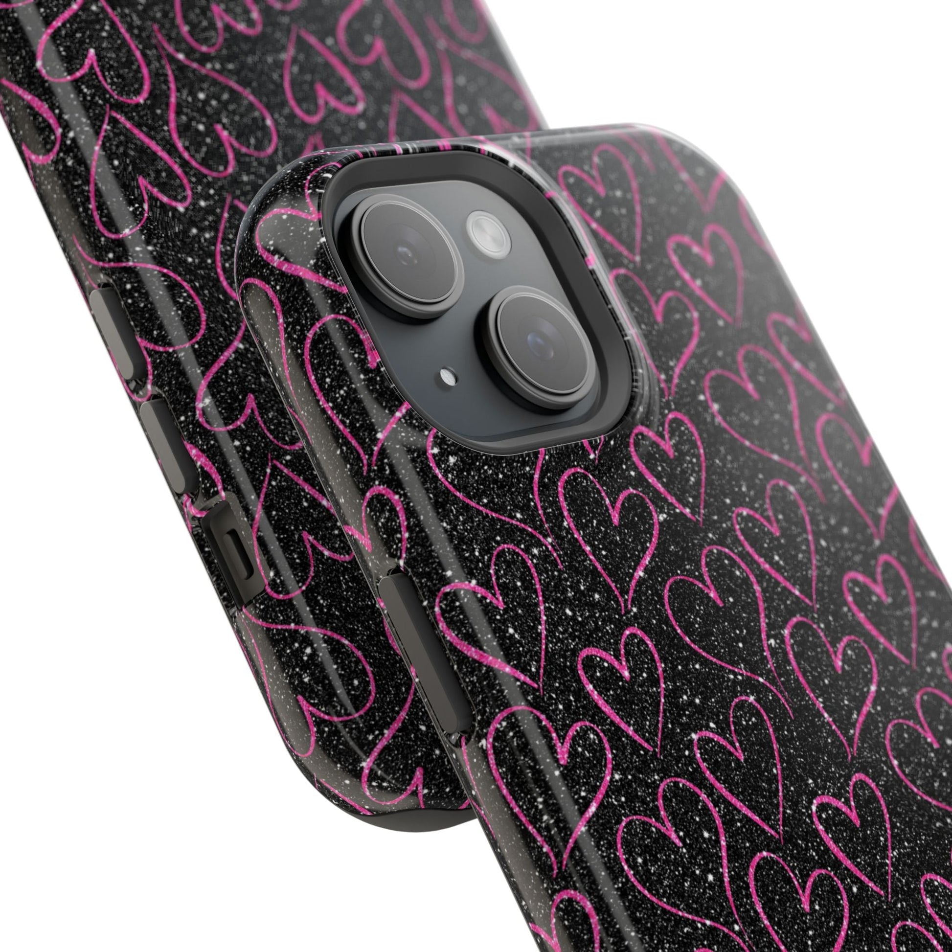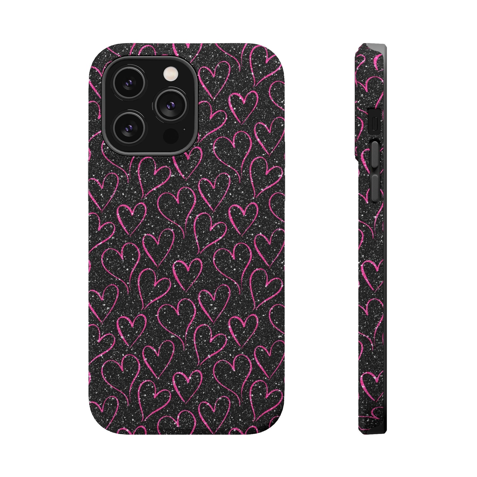 Sparkle and shine with our Sparkling Pink Hearts MagSafe iPhone Case! This dazzling design features a playful pattern of pink glitter hearts on a black background, creating a glamorous and romantic vibe. It's the perfect case for those who love to sparkle and shin...