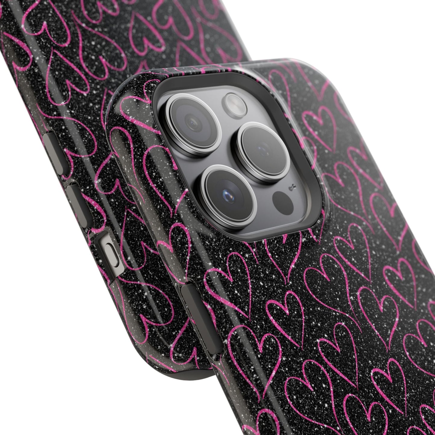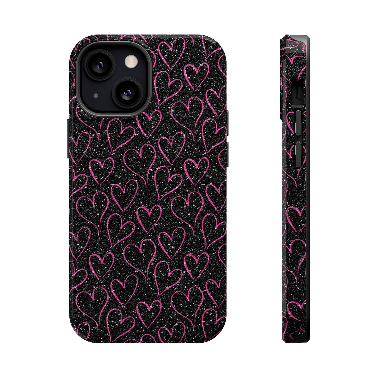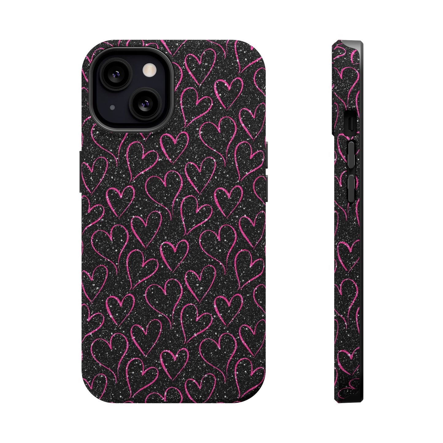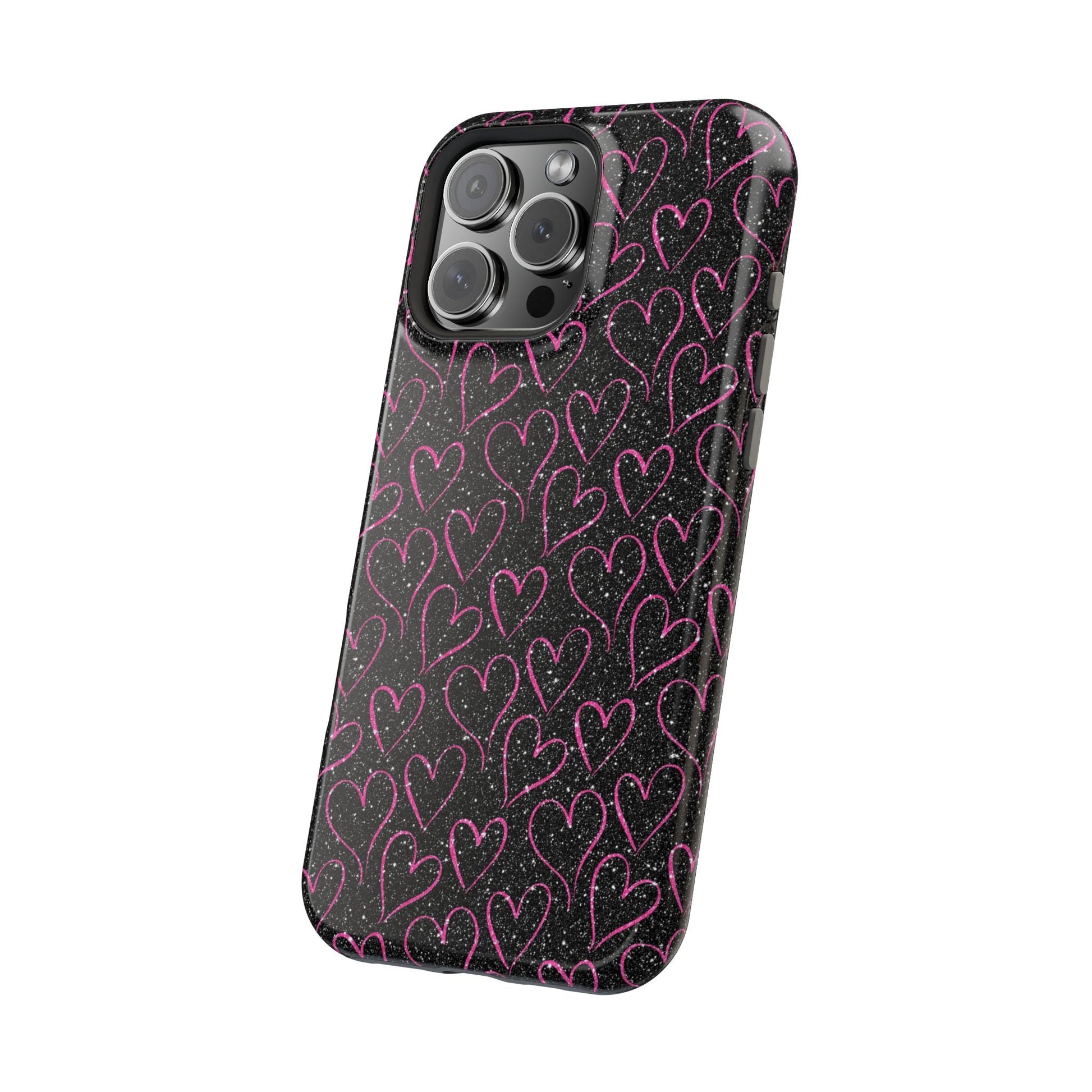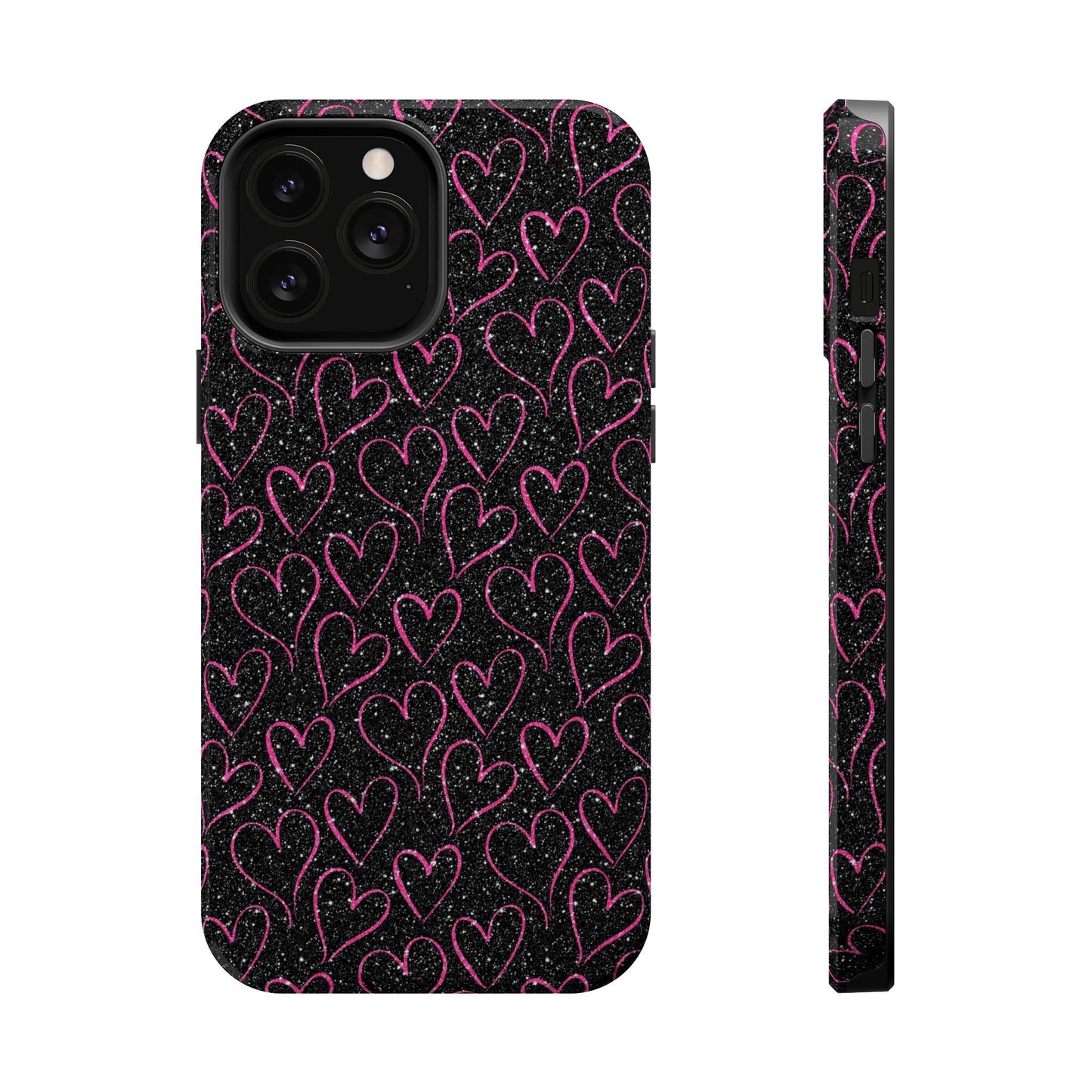Sparkle and shine with our Sparkling Pink Hearts MagSafe iPhone Case! This dazzling design features a playful pattern of pink glitter hearts on a black background, creating a glamorous and romantic vibe. It's the perfect case for those who love to sparkle and shin...