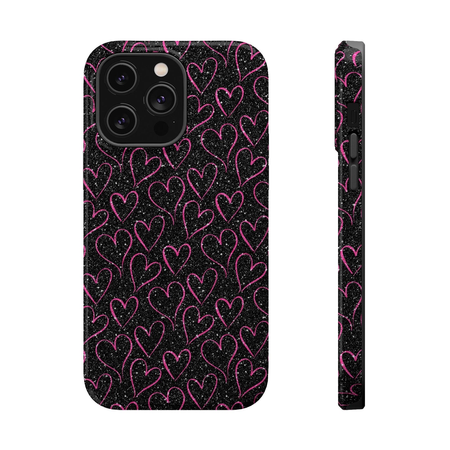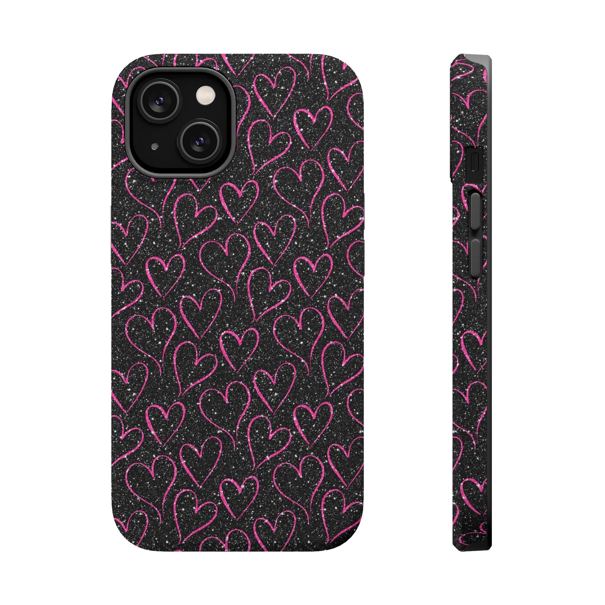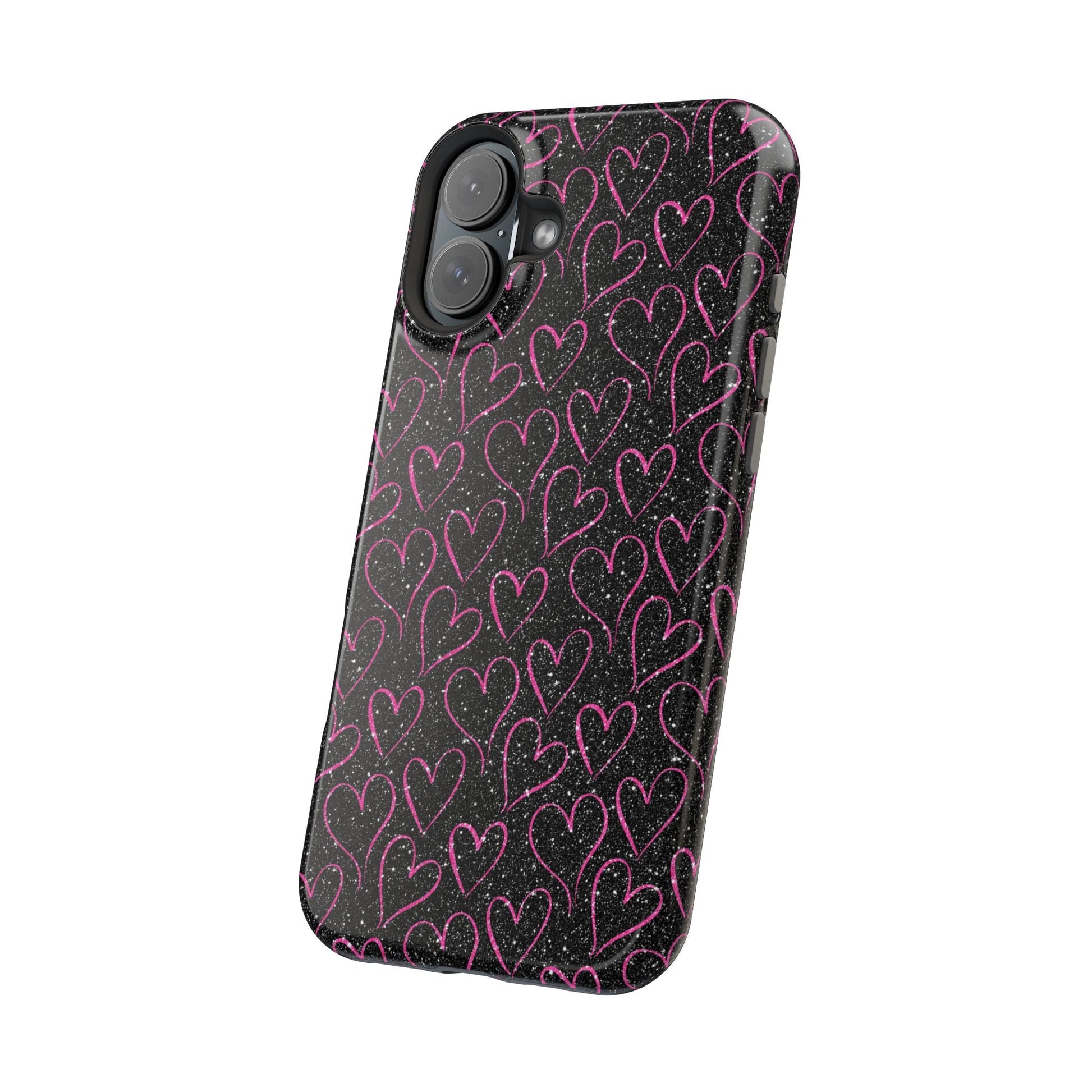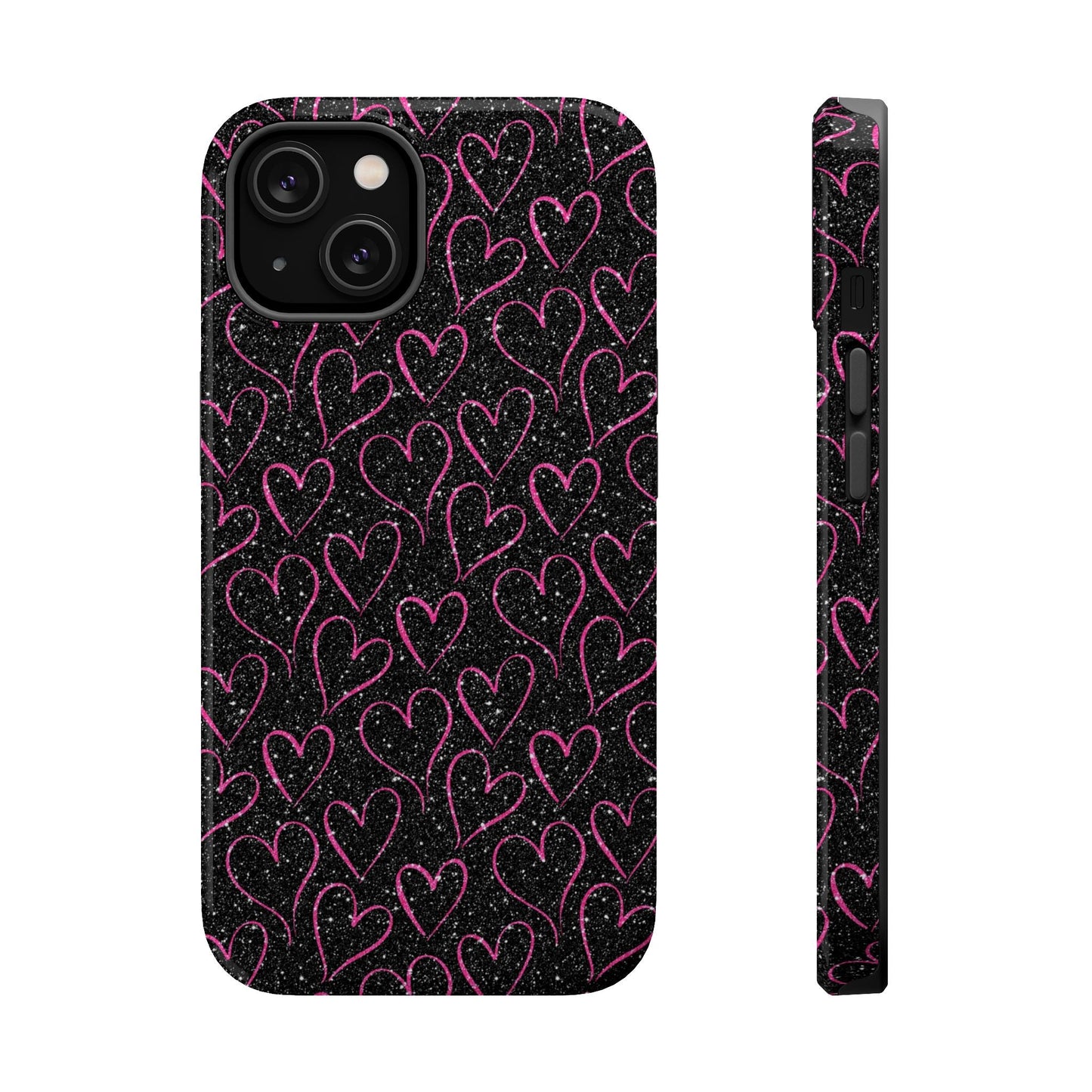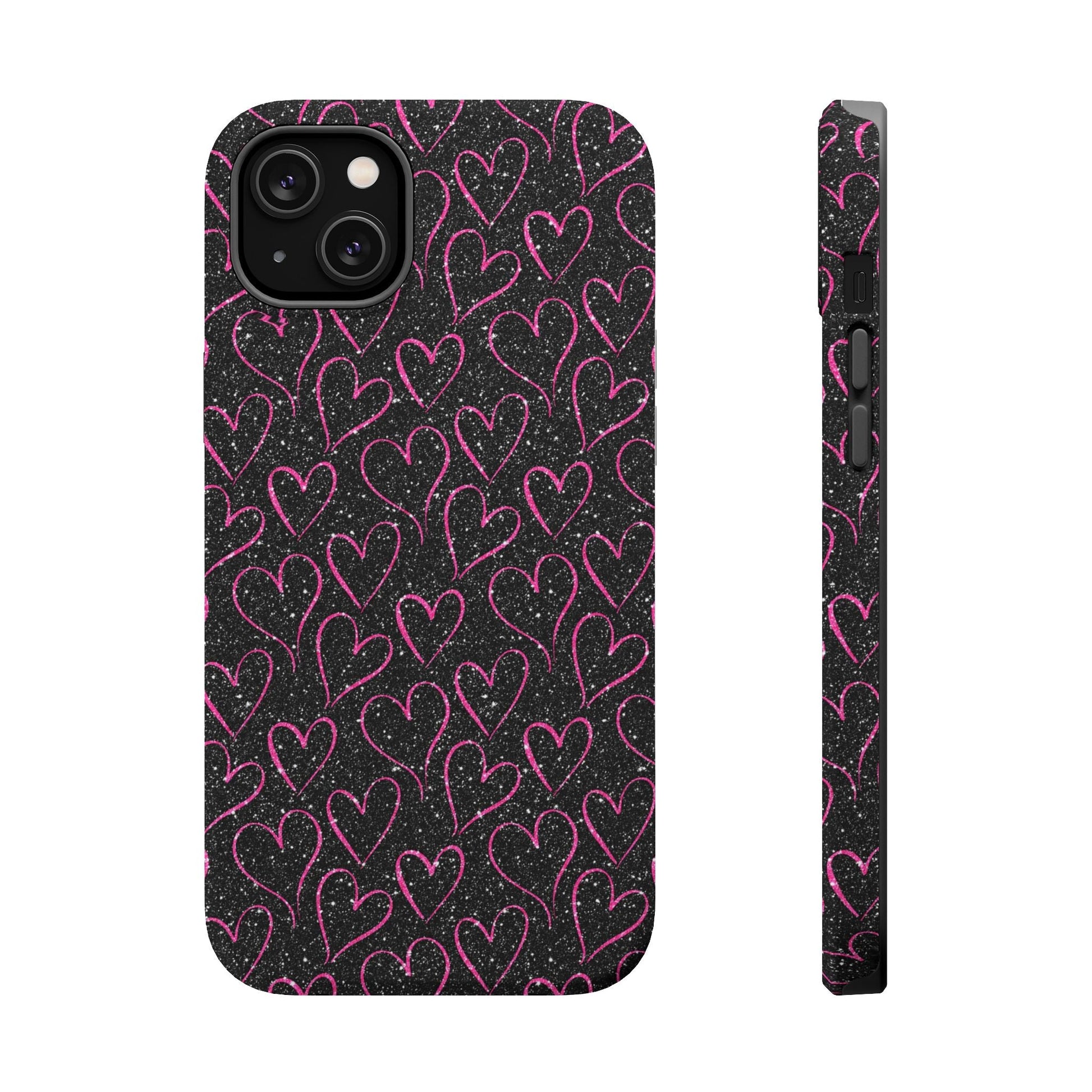 Sparkle and shine with our Sparkling Pink Hearts MagSafe iPhone Case! This dazzling design features a playful pattern of pink glitter hearts on a black background, creating a glamorous and romantic vibe. It's the perfect case for those who love to sparkle and shin...