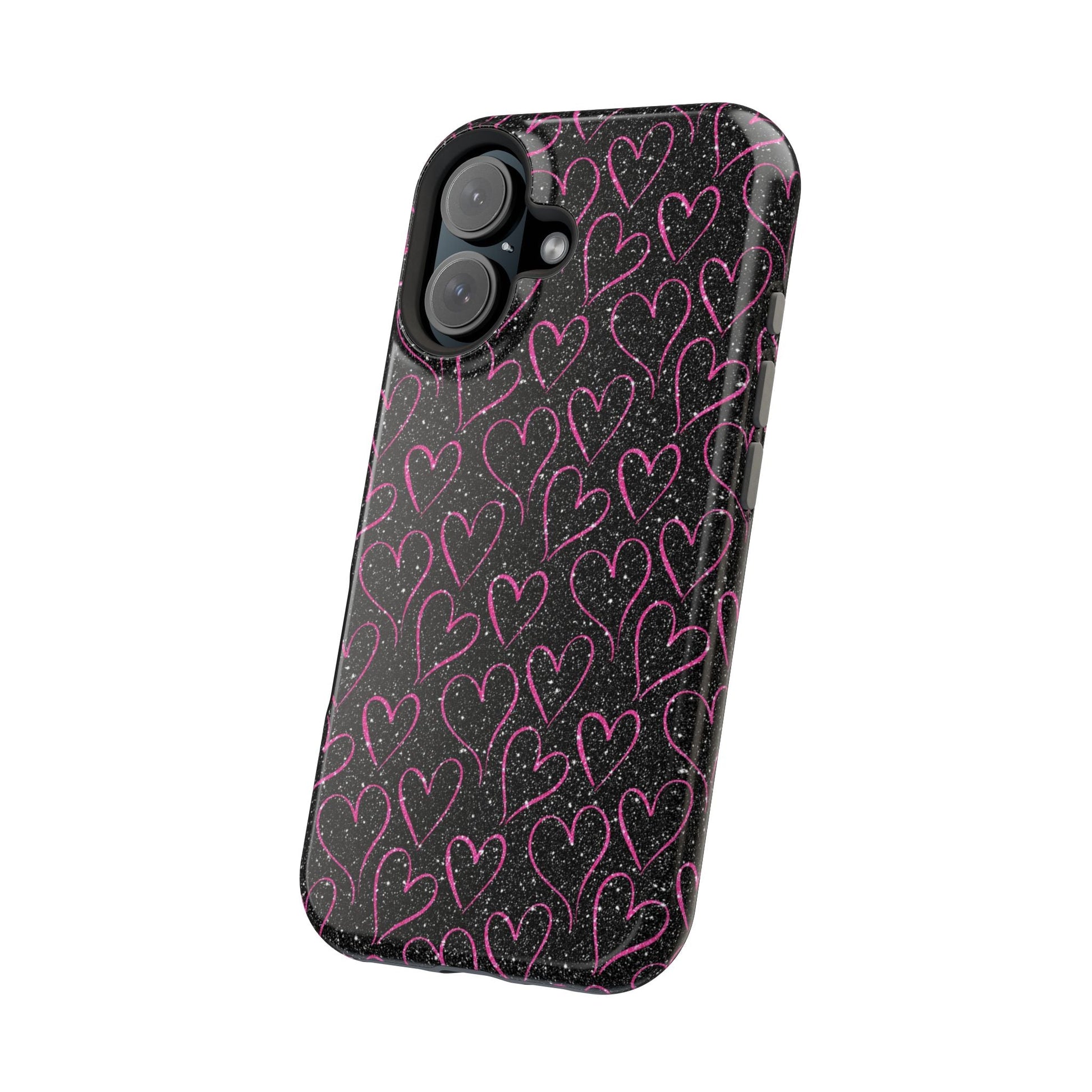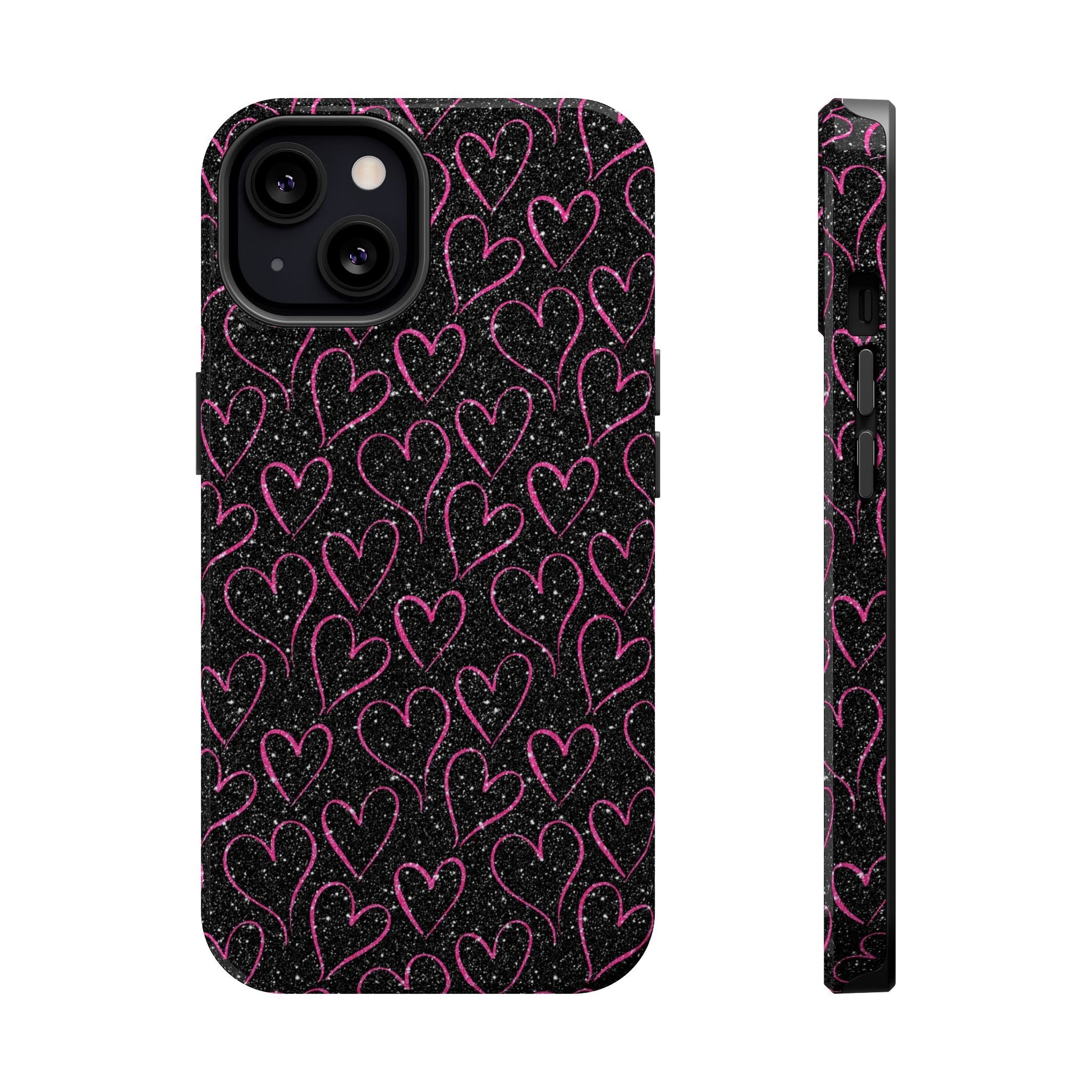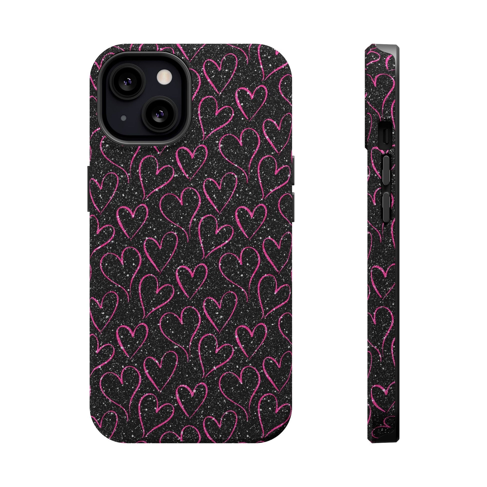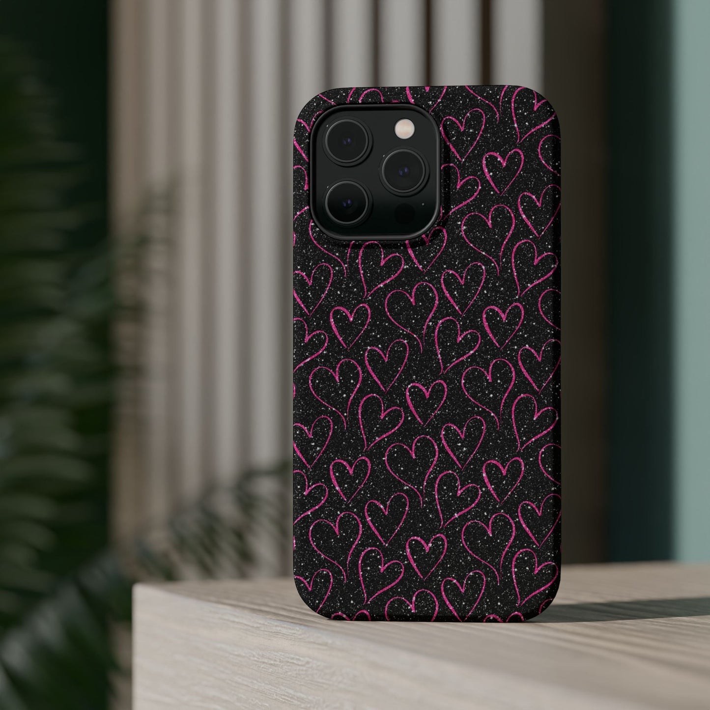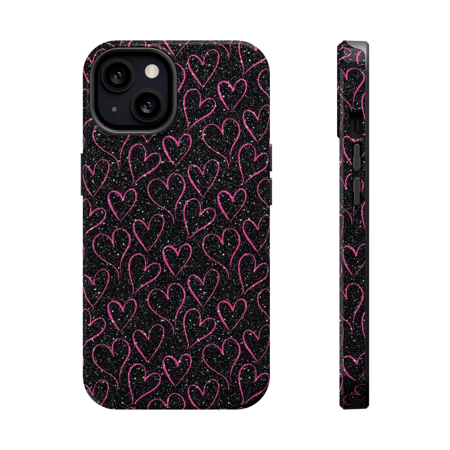 Sparkle and shine with our Sparkling Pink Hearts MagSafe iPhone Case! This dazzling design features a playful pattern of pink glitter hearts on a black background, creating a glamorous and romantic vibe. It's the perfect case for those who love to sparkle and shin...