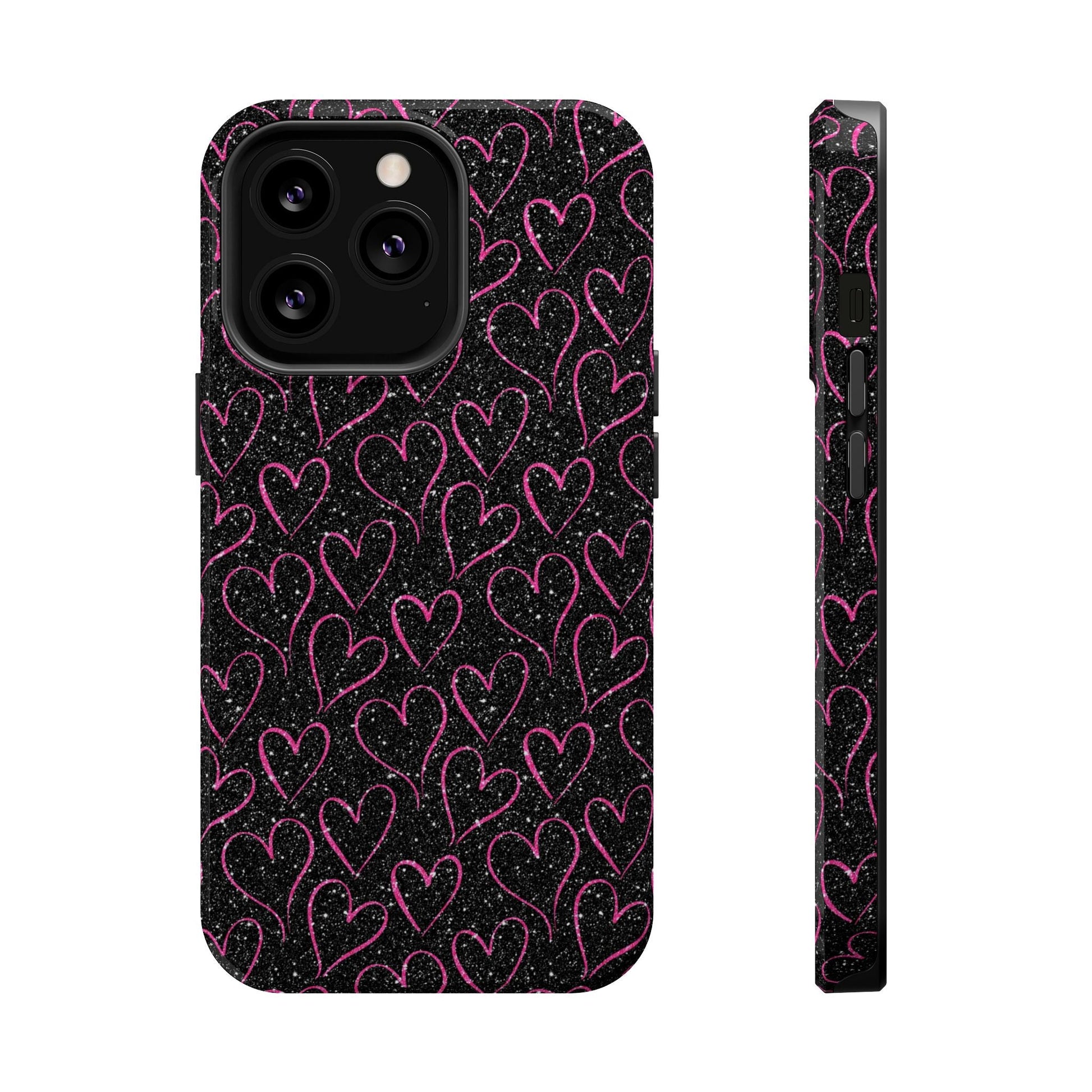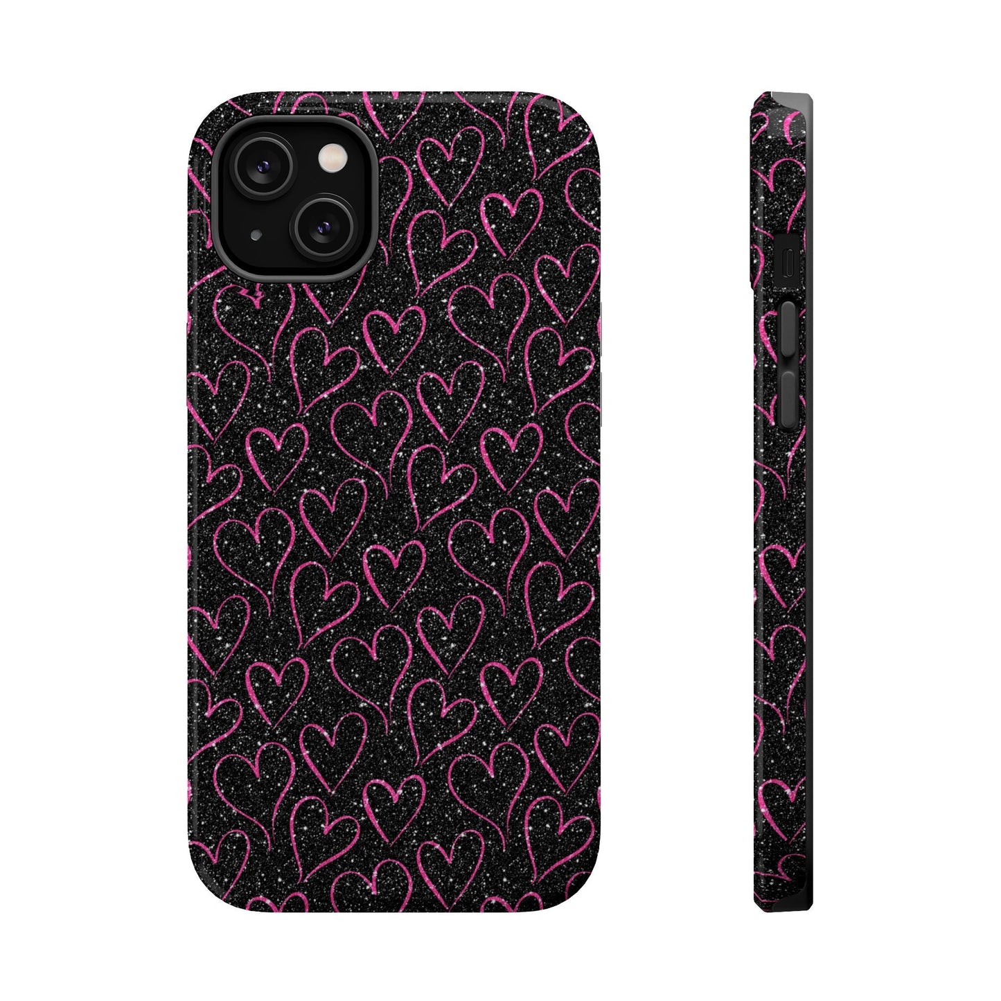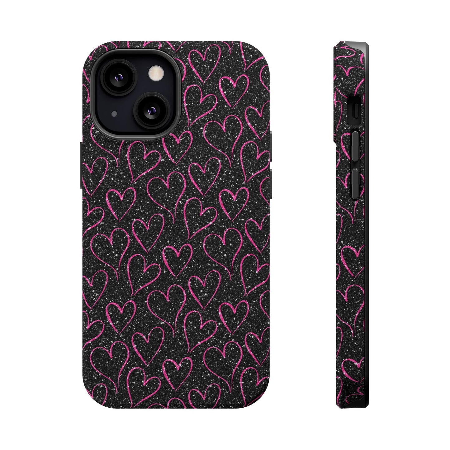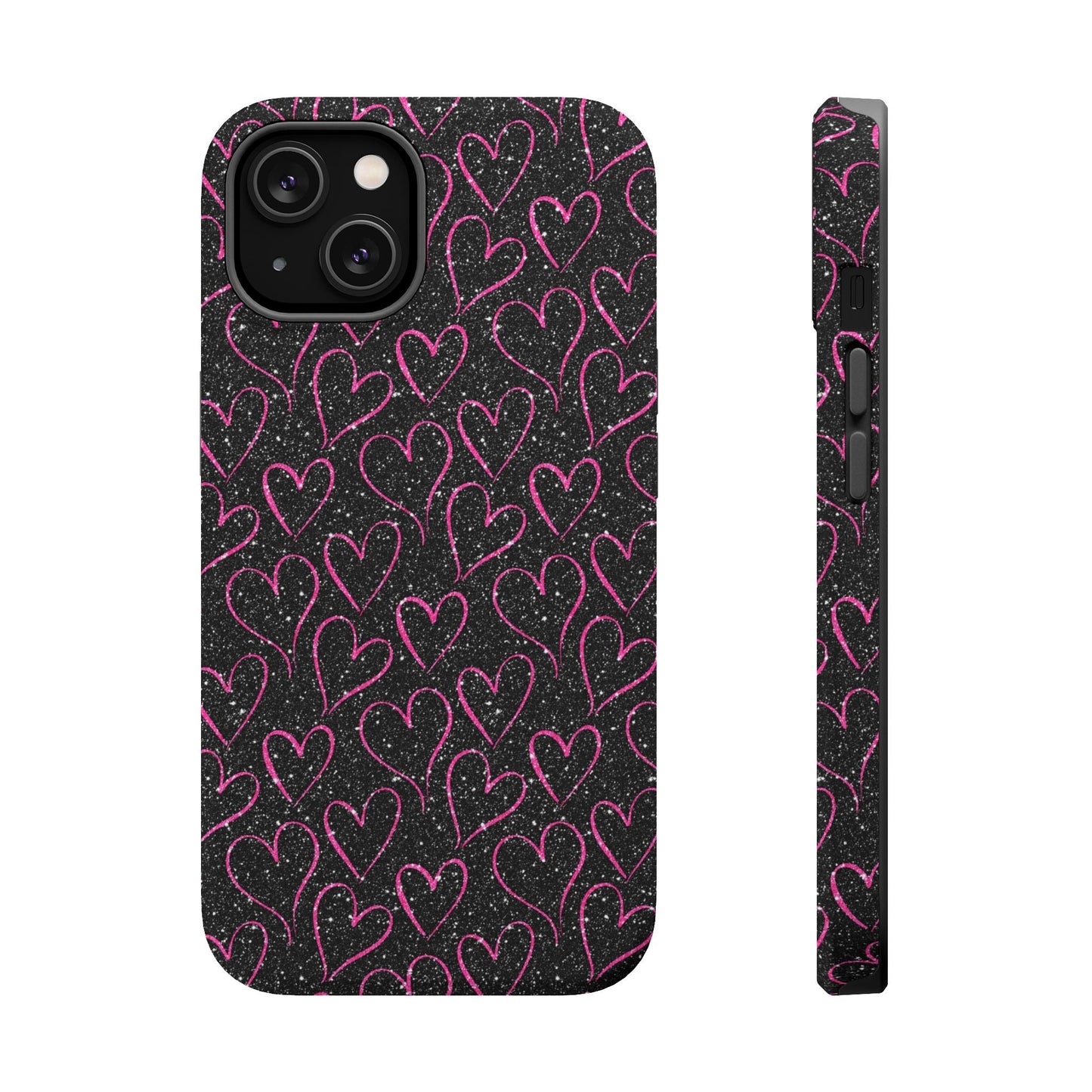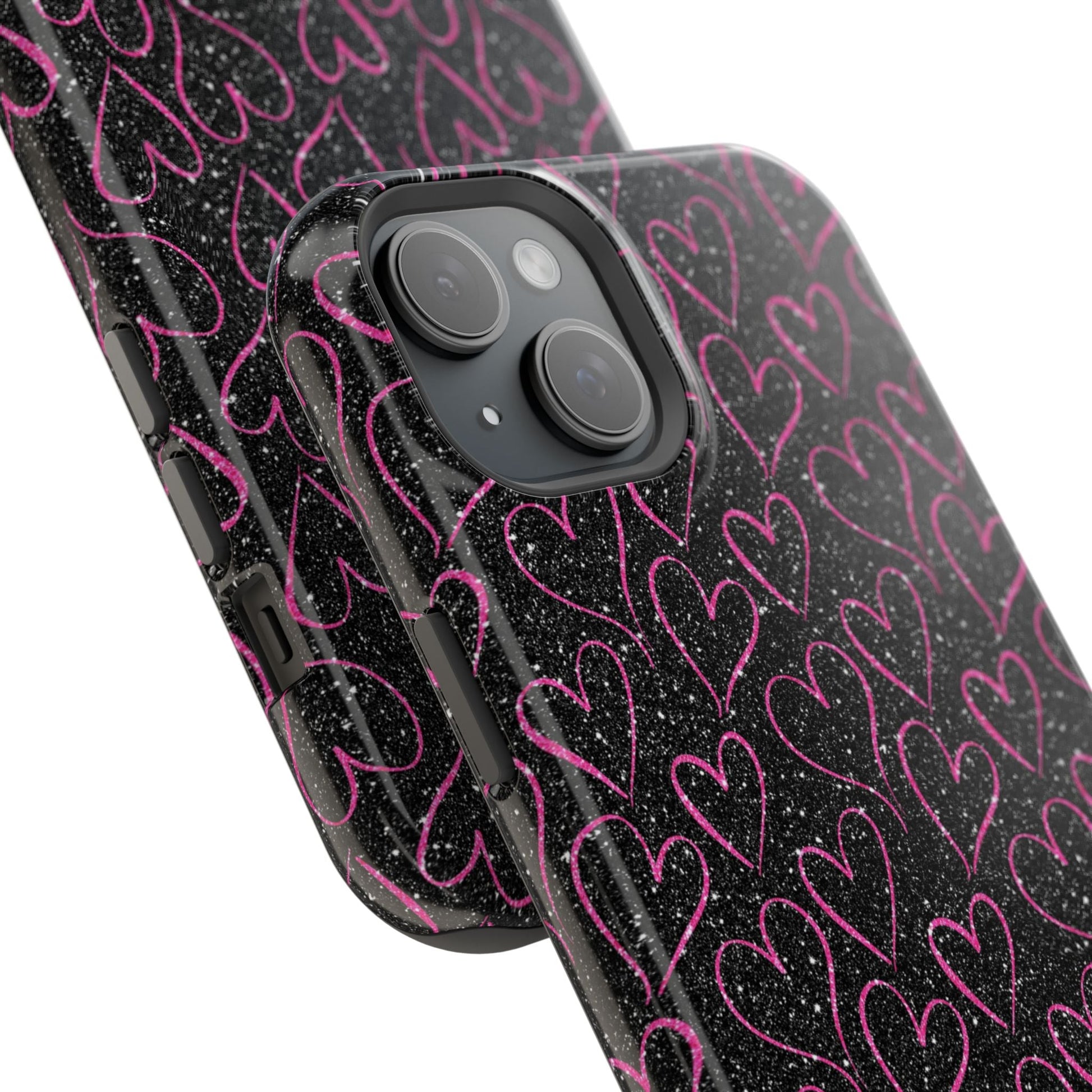 Sparkle and shine with our Sparkling Pink Hearts MagSafe iPhone Case! This dazzling design features a playful pattern of pink glitter hearts on a black background, creating a glamorous and romantic vibe. It's the perfect case for those who love to sparkle and shin...