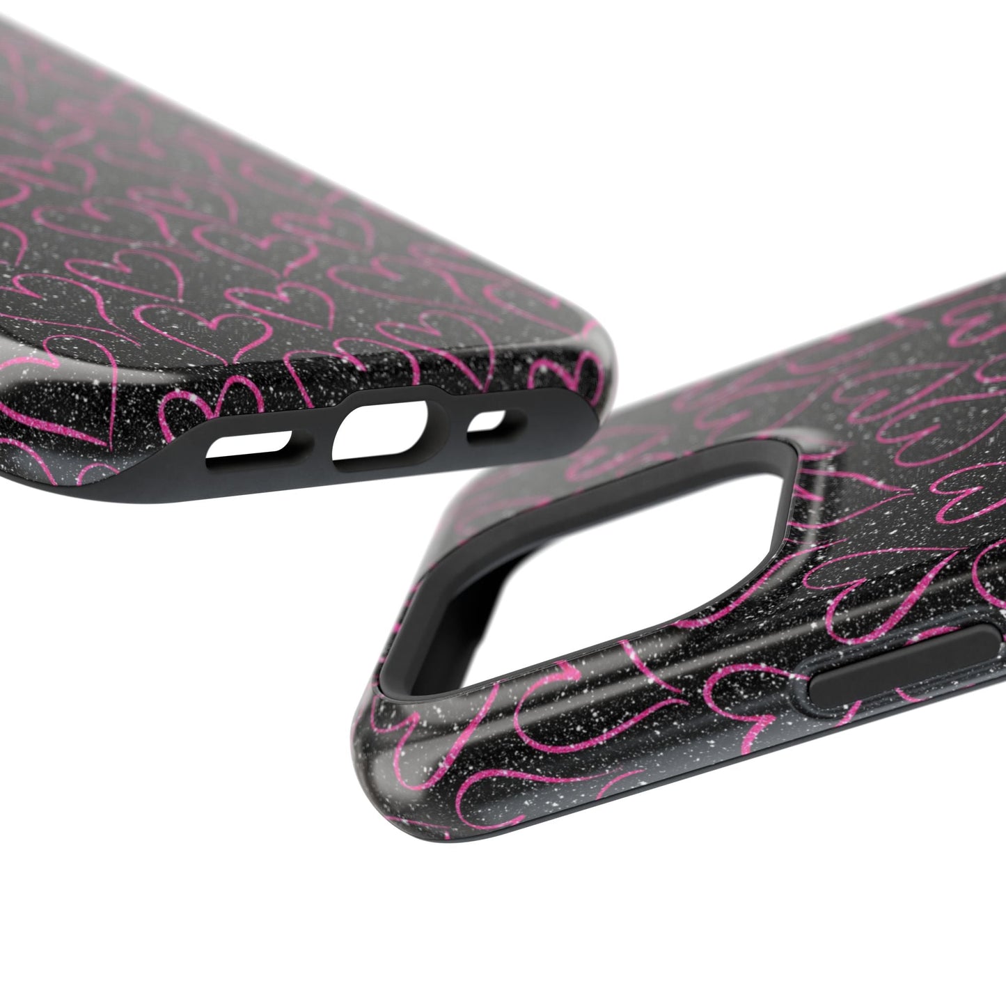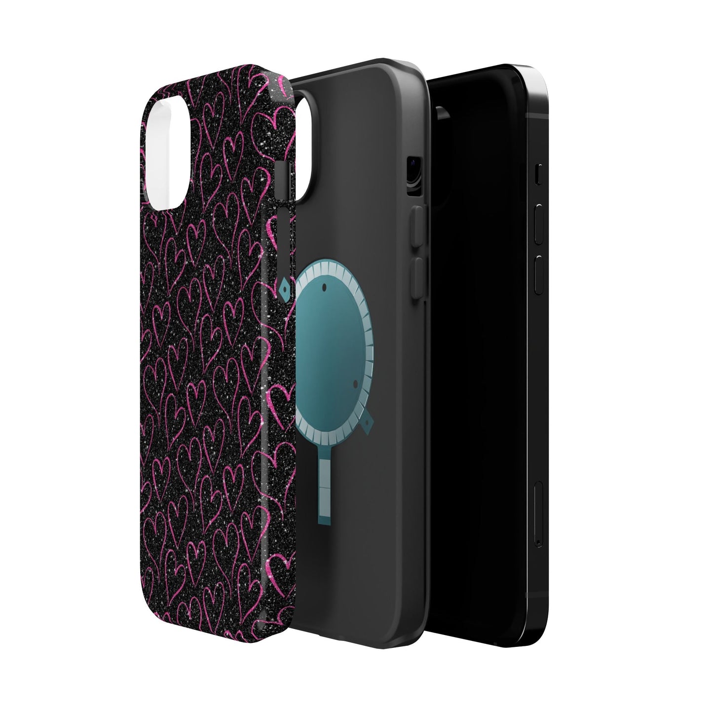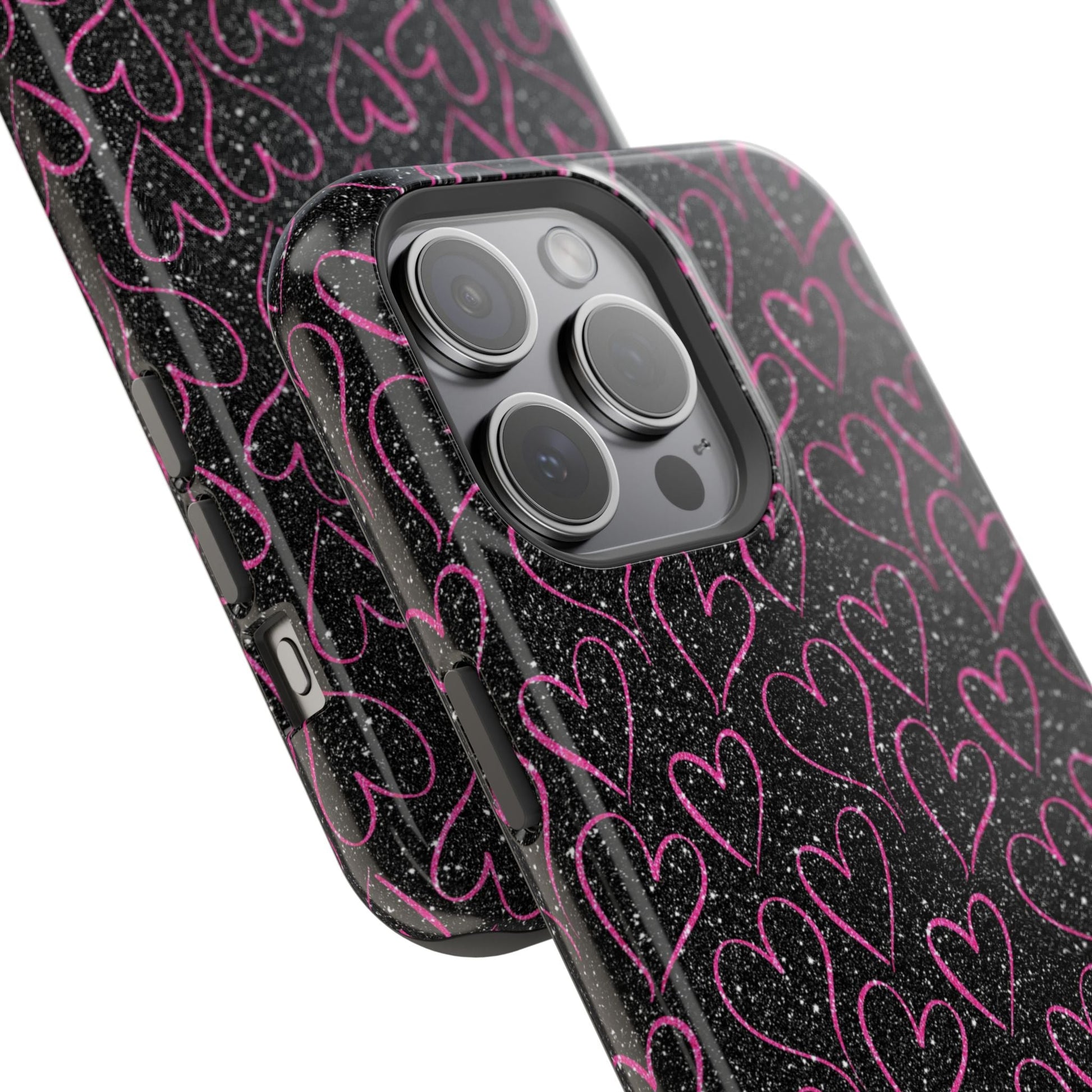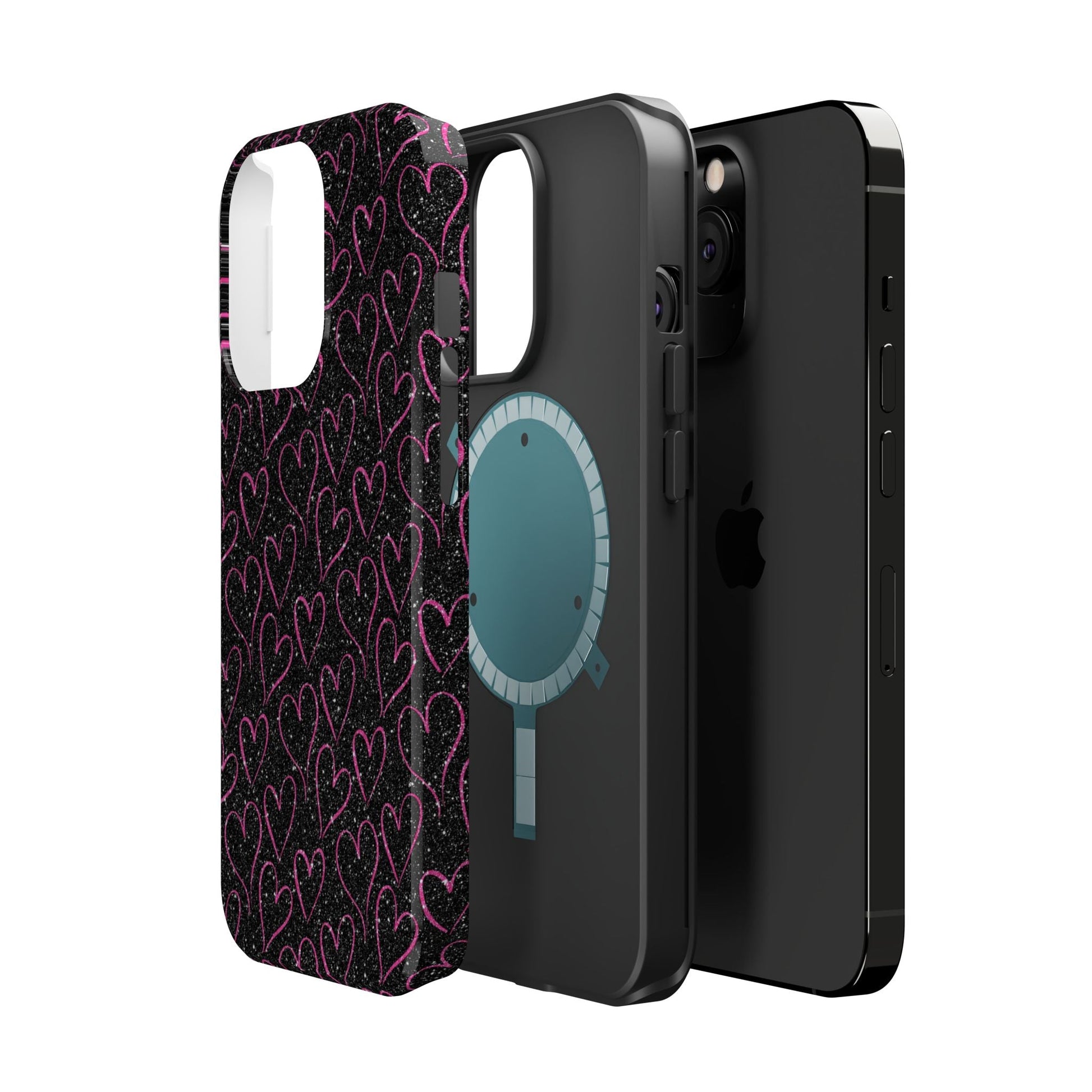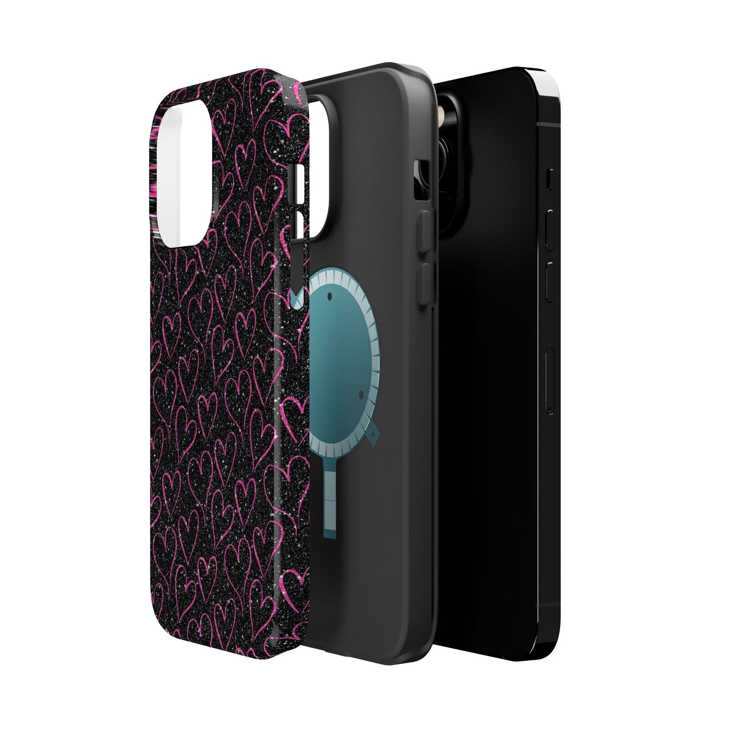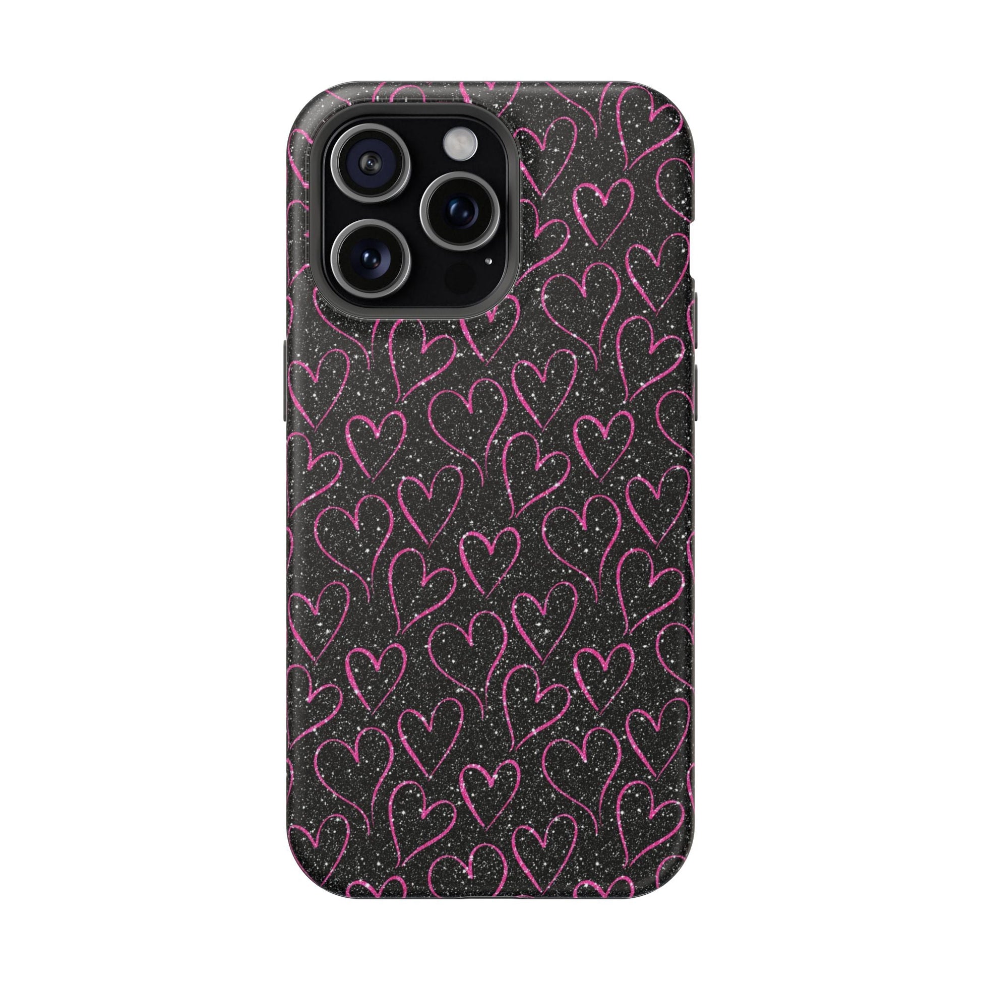 Sparkle and shine with our Sparkling Pink Hearts MagSafe iPhone Case! This dazzling design features a playful pattern of pink glitter hearts on a black background, creating a glamorous and romantic vibe. It's the perfect case for those who love to sparkle and shin...