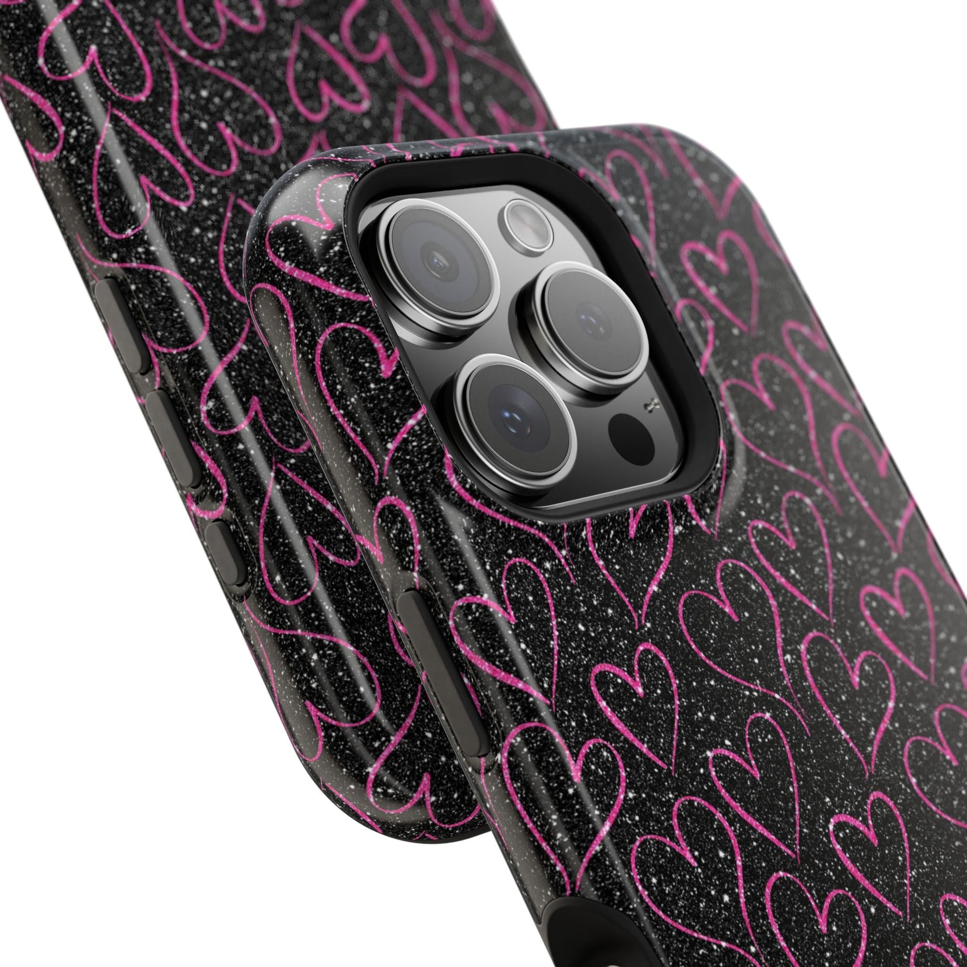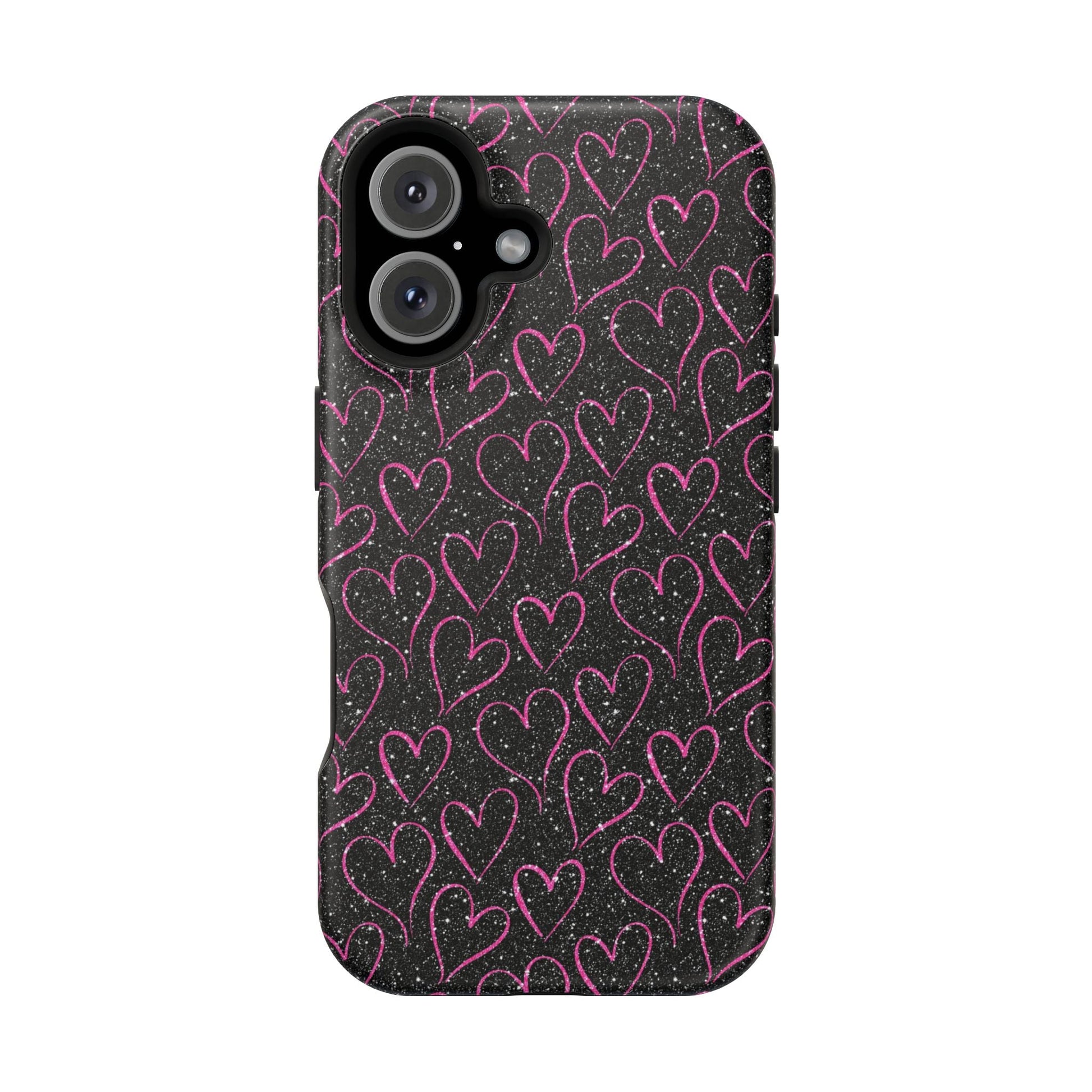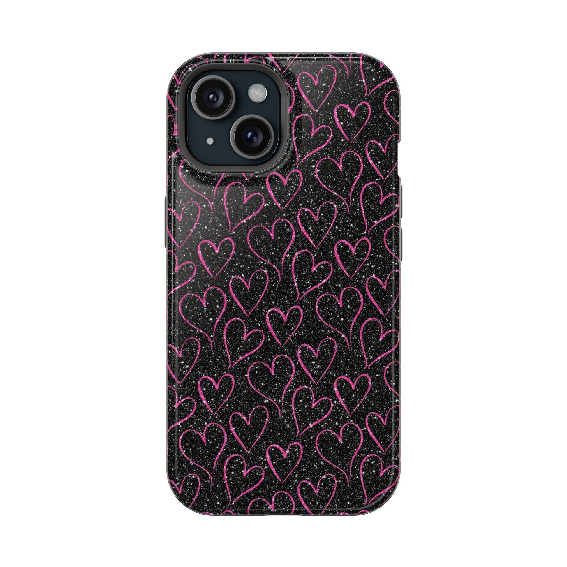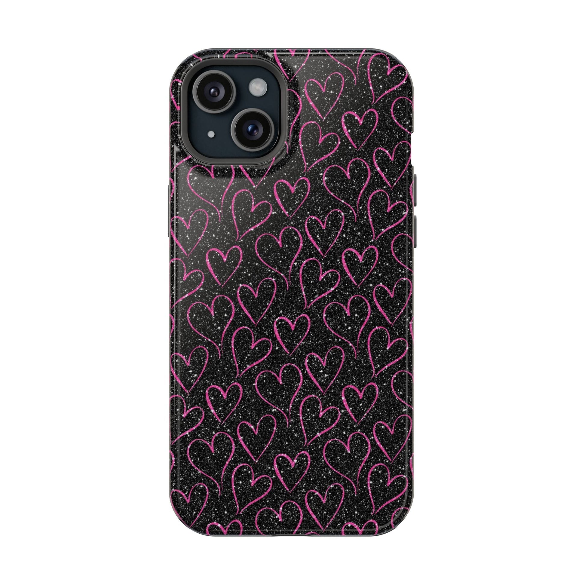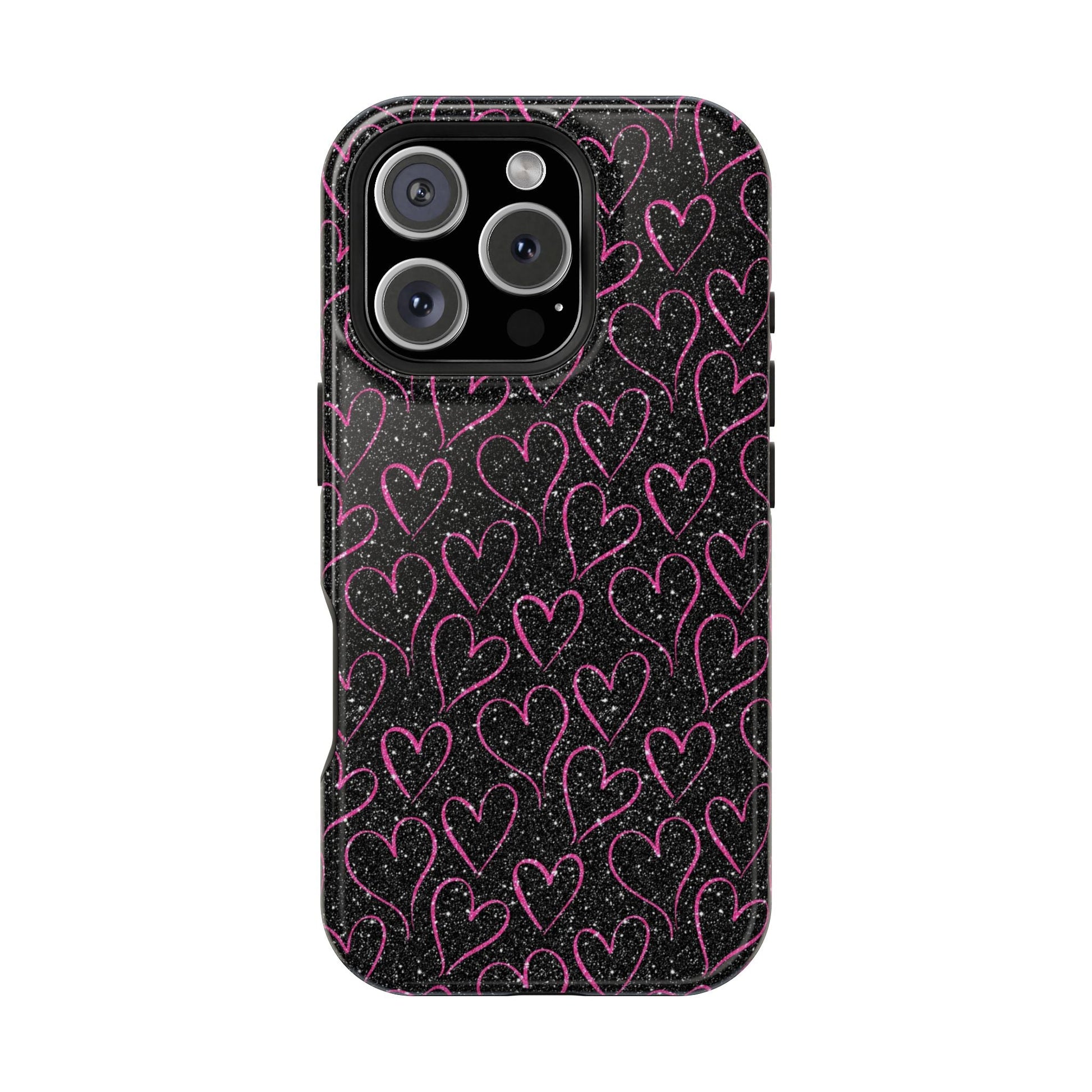 Sparkle and shine with our Sparkling Pink Hearts MagSafe iPhone Case! This dazzling design features a playful pattern of pink glitter hearts on a black background, creating a glamorous and romantic vibe. It's the perfect case for those who love to sparkle and shin...