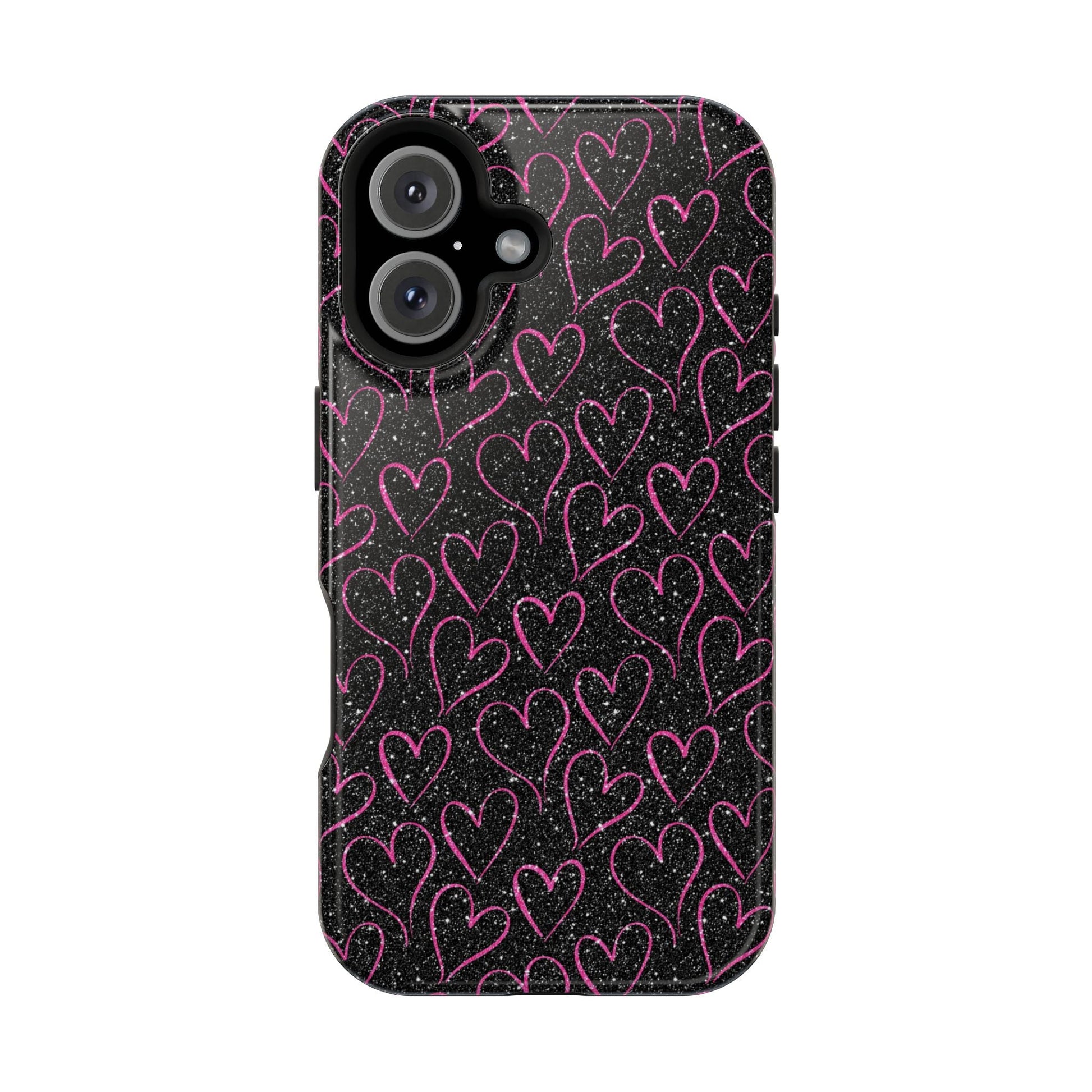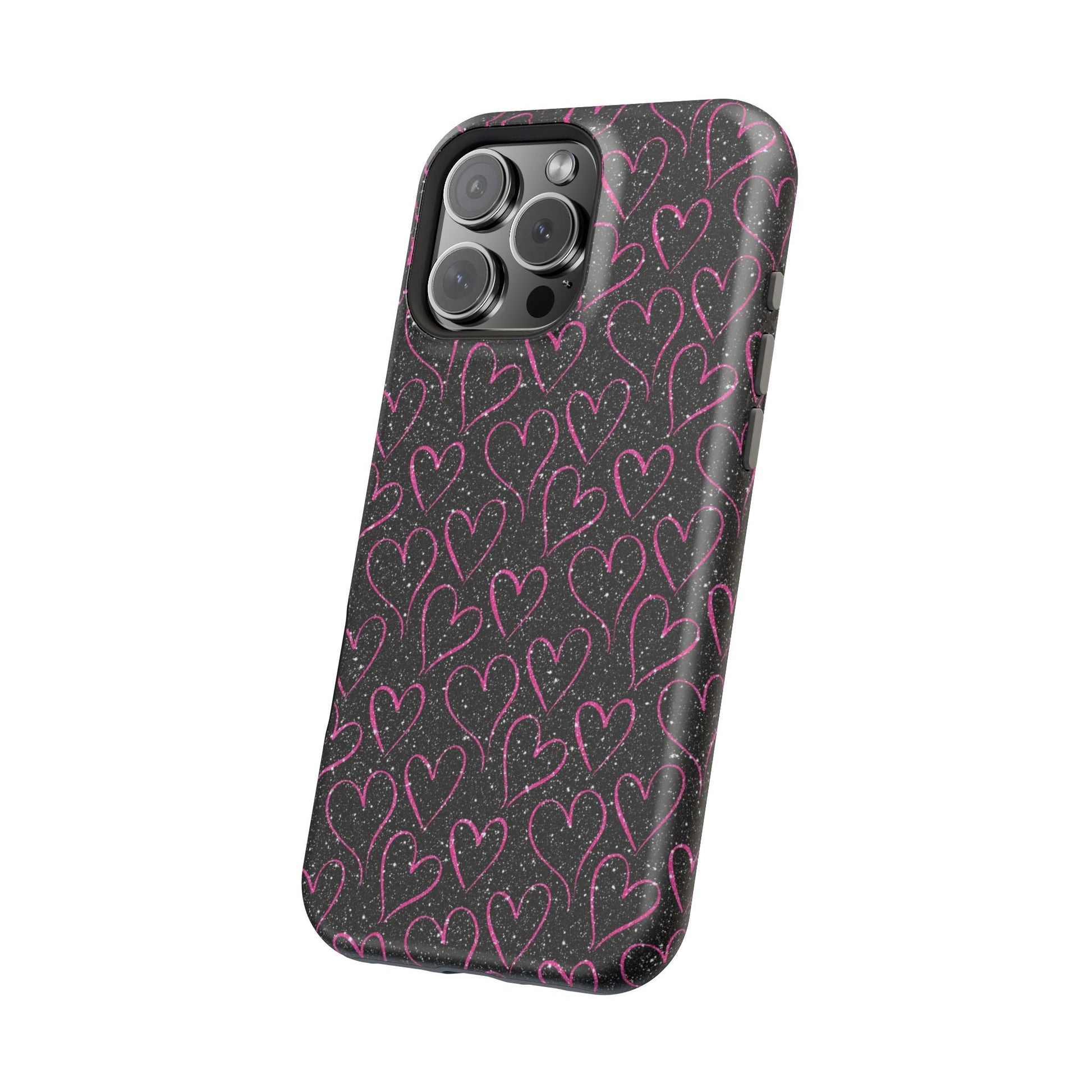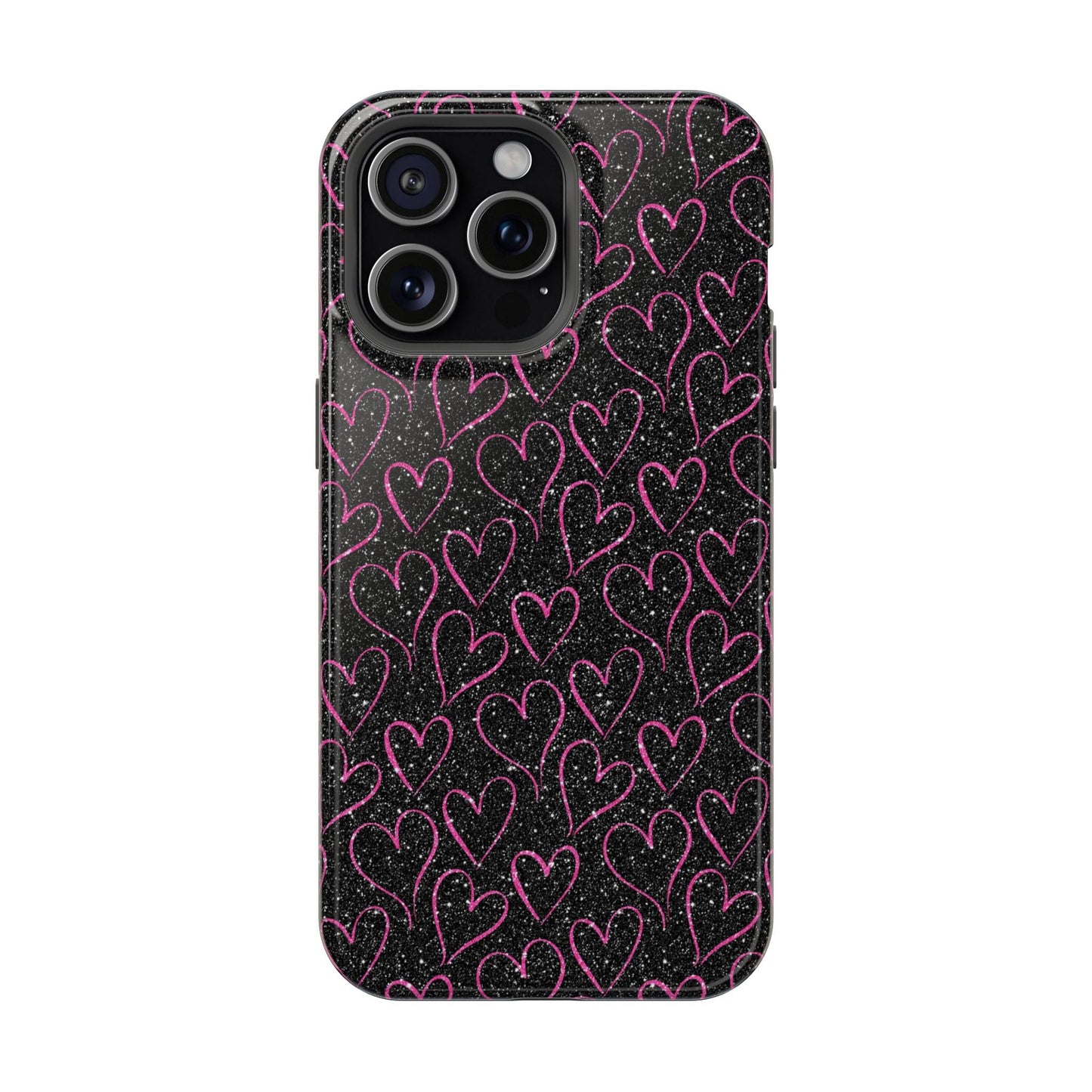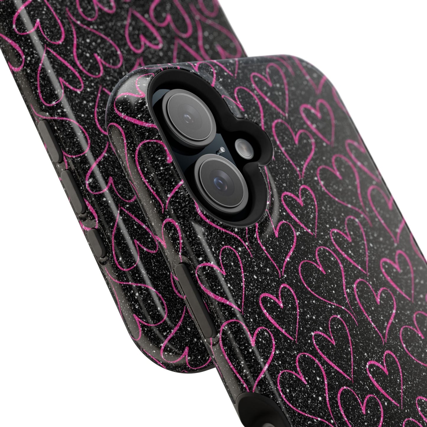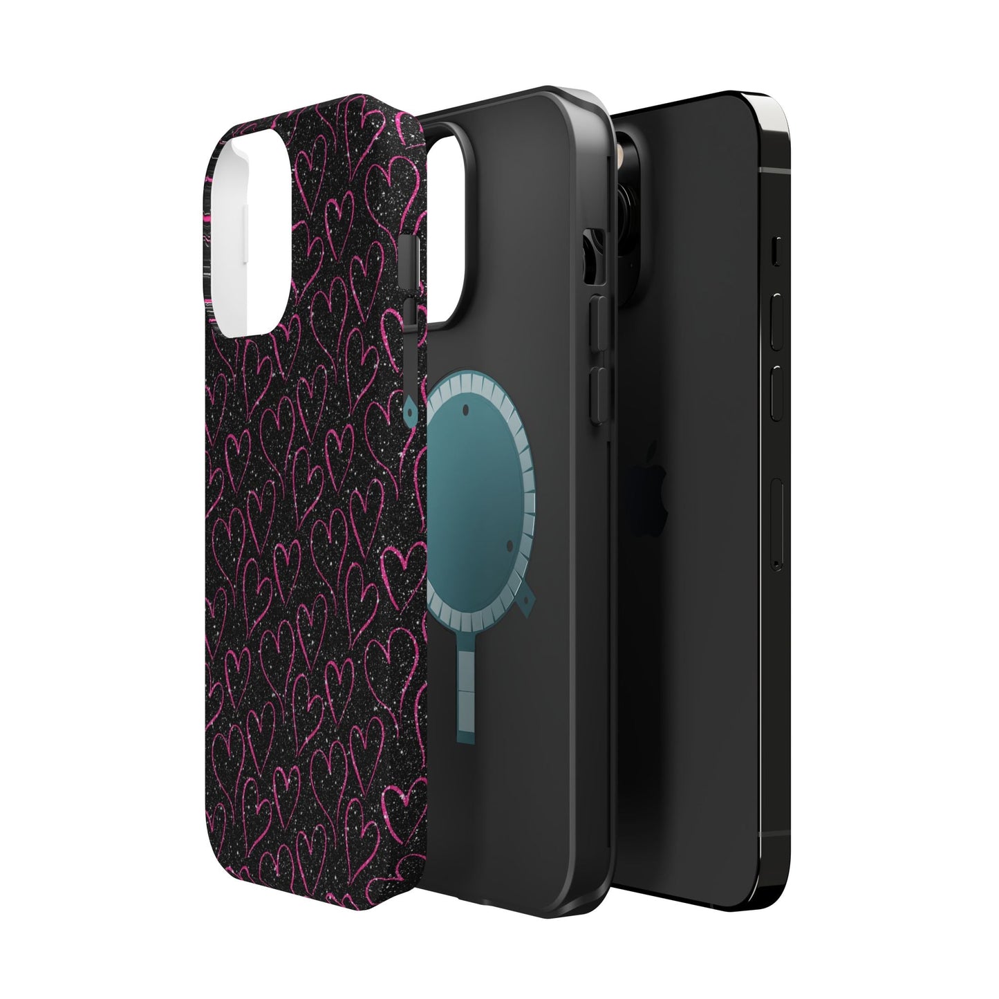 Sparkle and shine with our Sparkling Pink Hearts MagSafe iPhone Case! This dazzling design features a playful pattern of pink glitter hearts on a black background, creating a glamorous and romantic vibe. It's the perfect case for those who love to sparkle and shin...