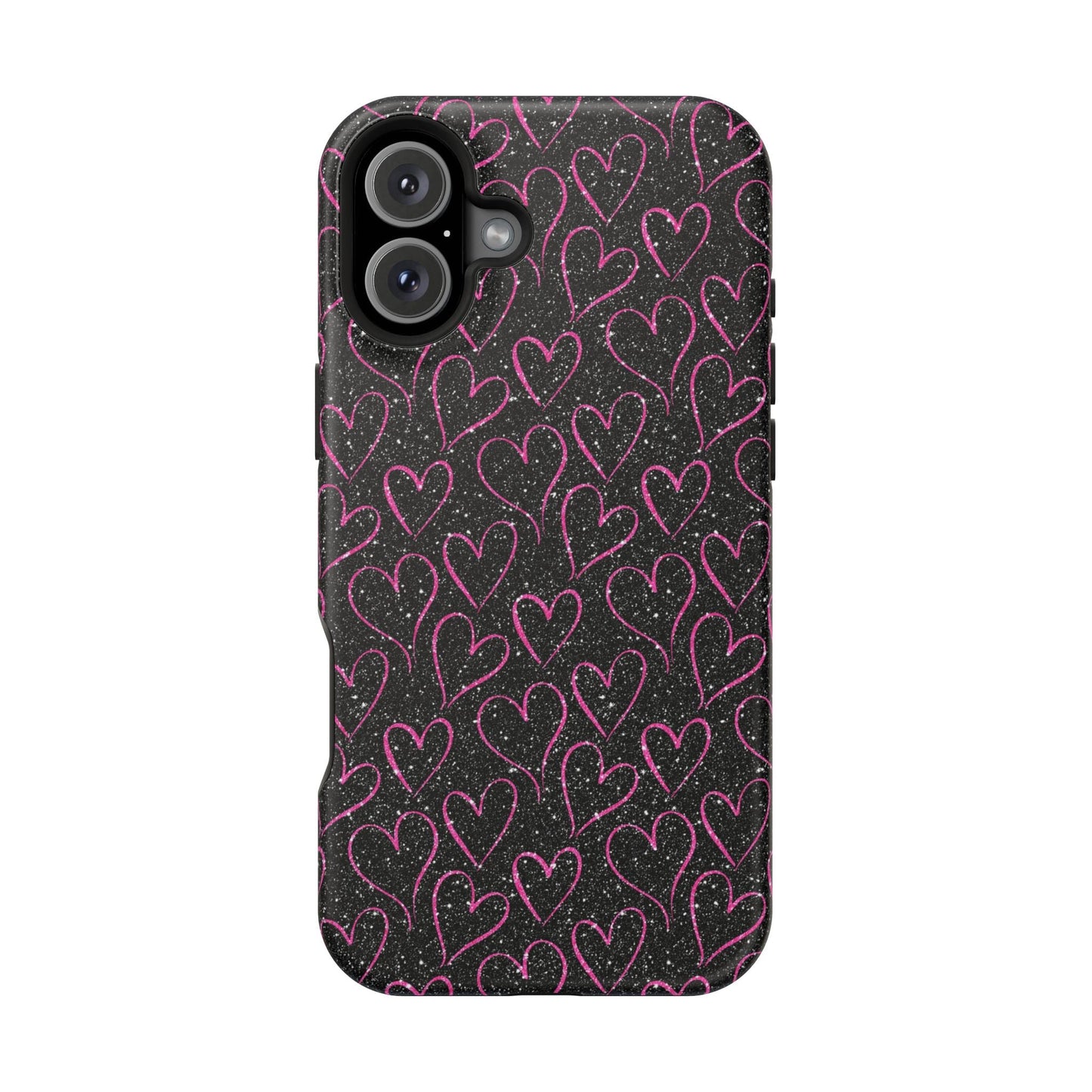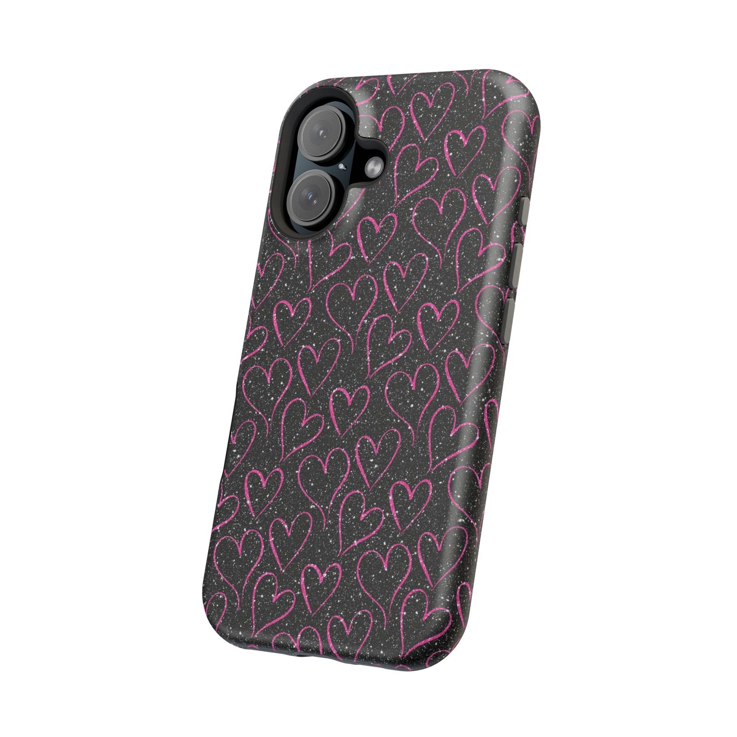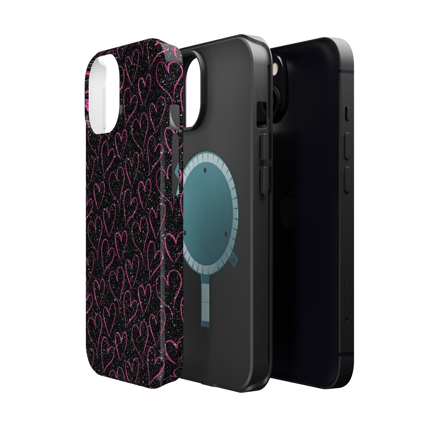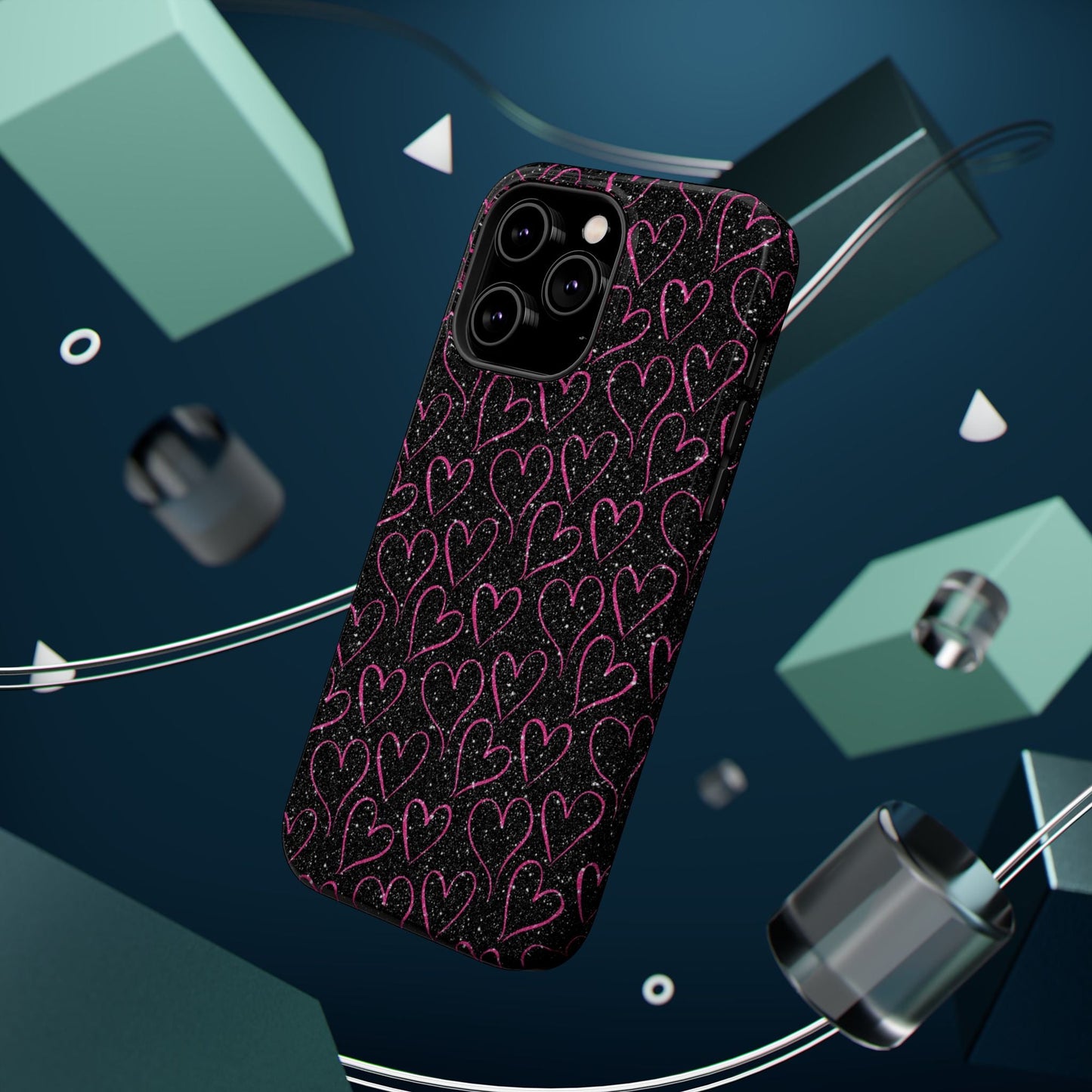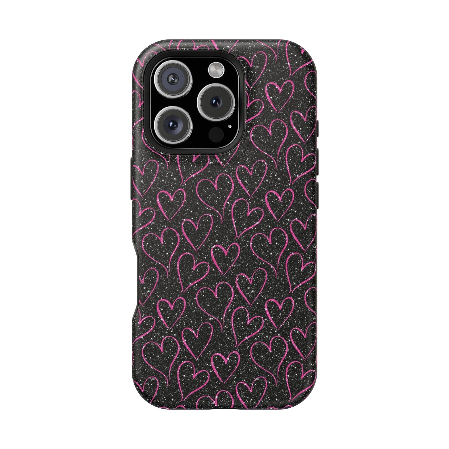 Sparkle and shine with our Sparkling Pink Hearts MagSafe iPhone Case! This dazzling design features a playful pattern of pink glitter hearts on a black background, creating a glamorous and romantic vibe. It's the perfect case for those who love to sparkle and shin...