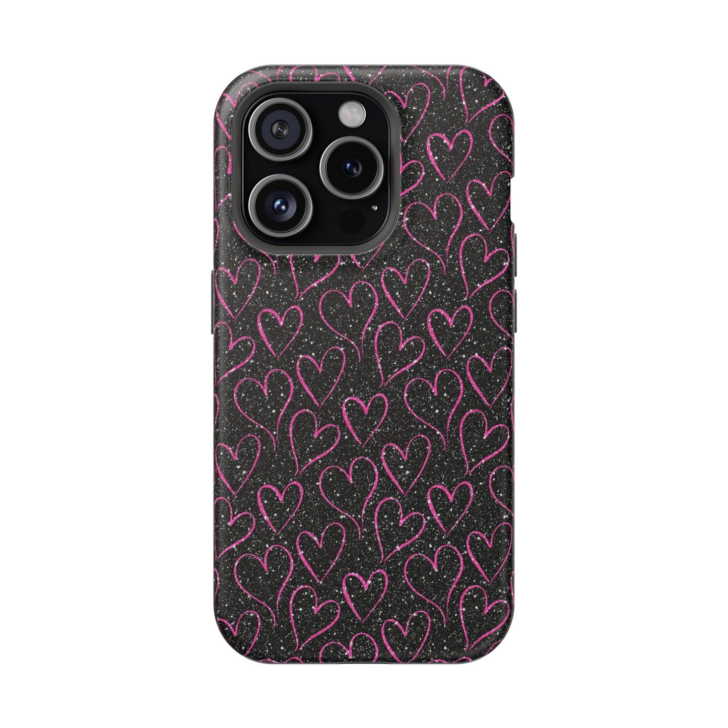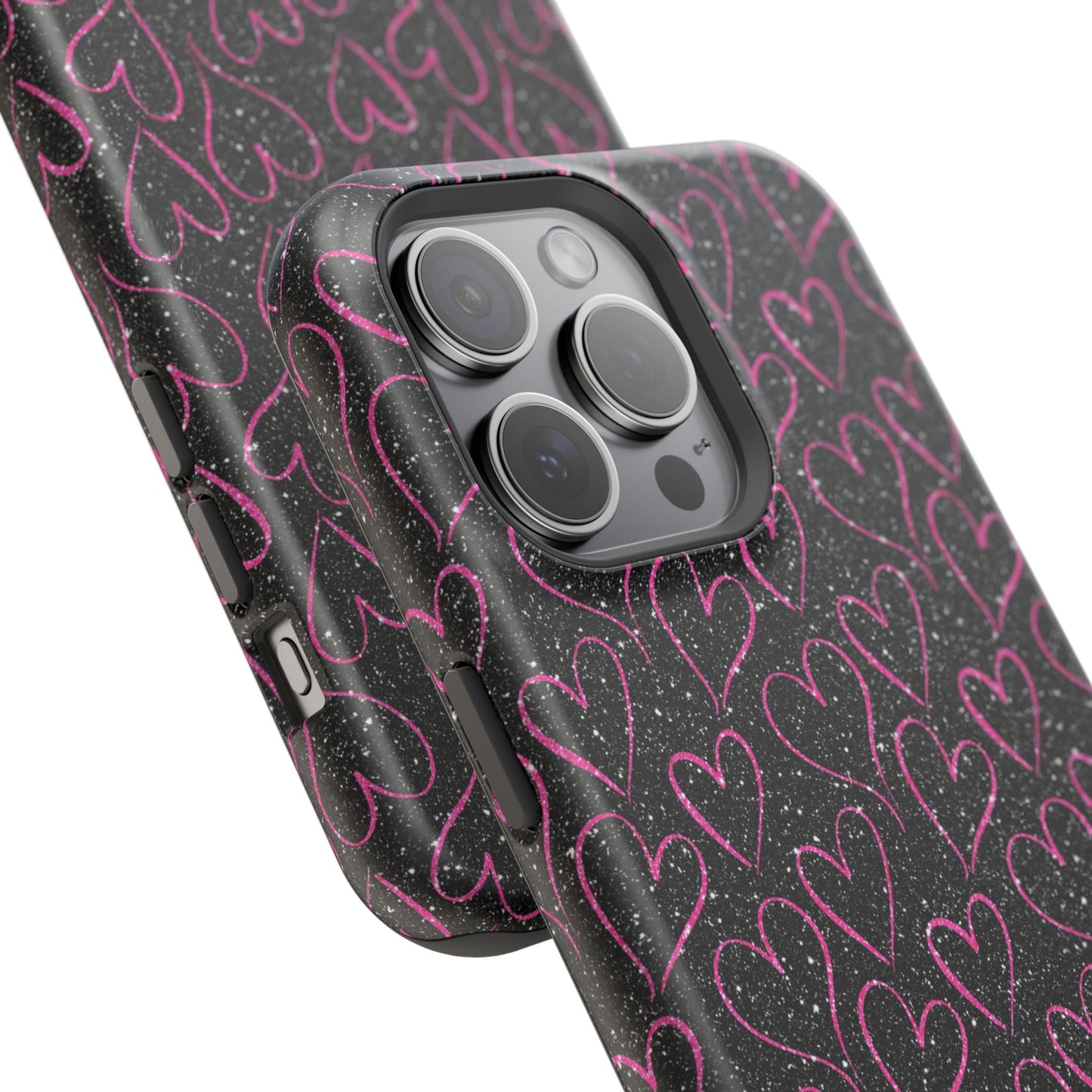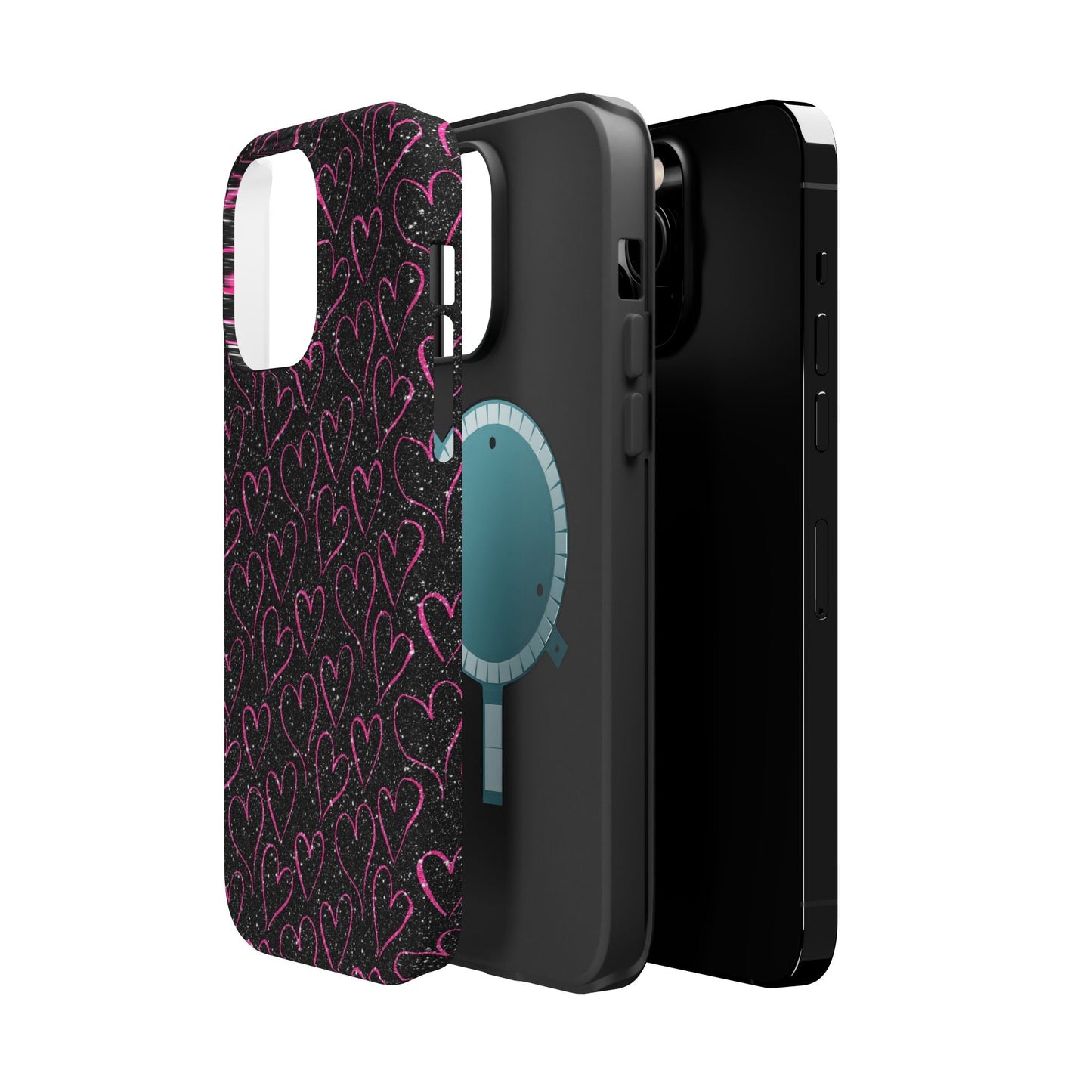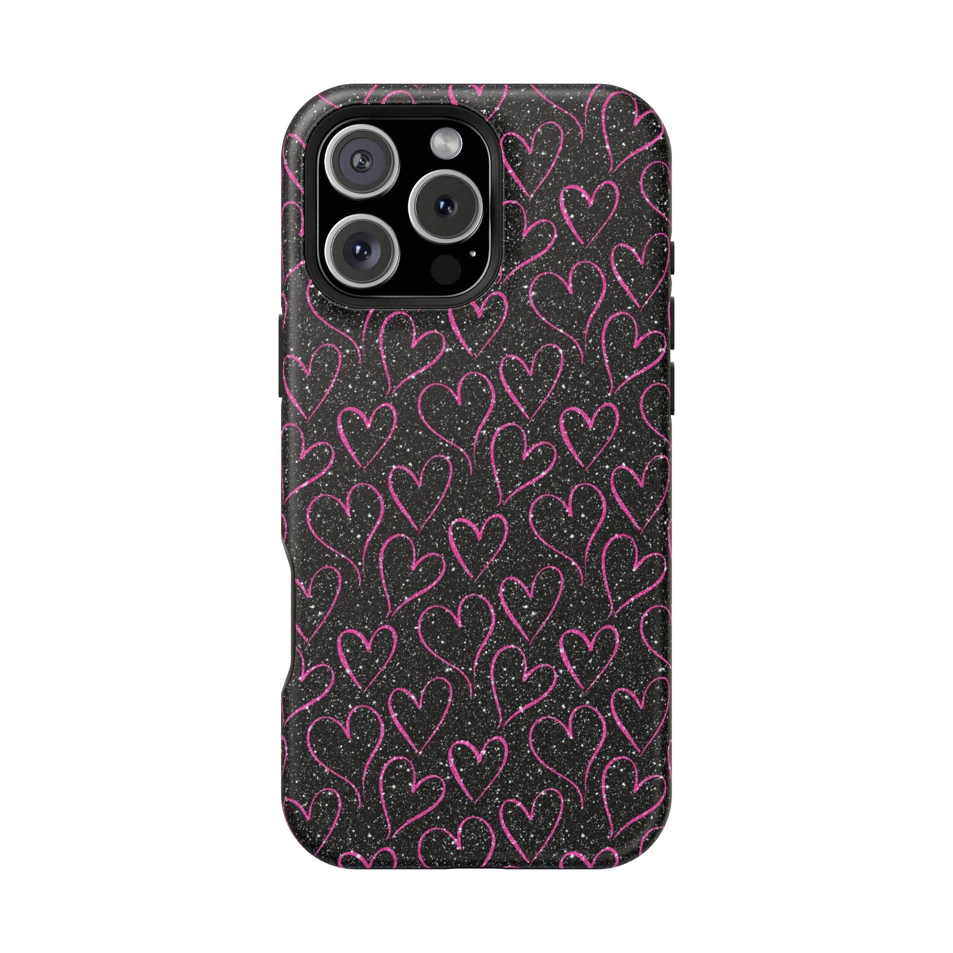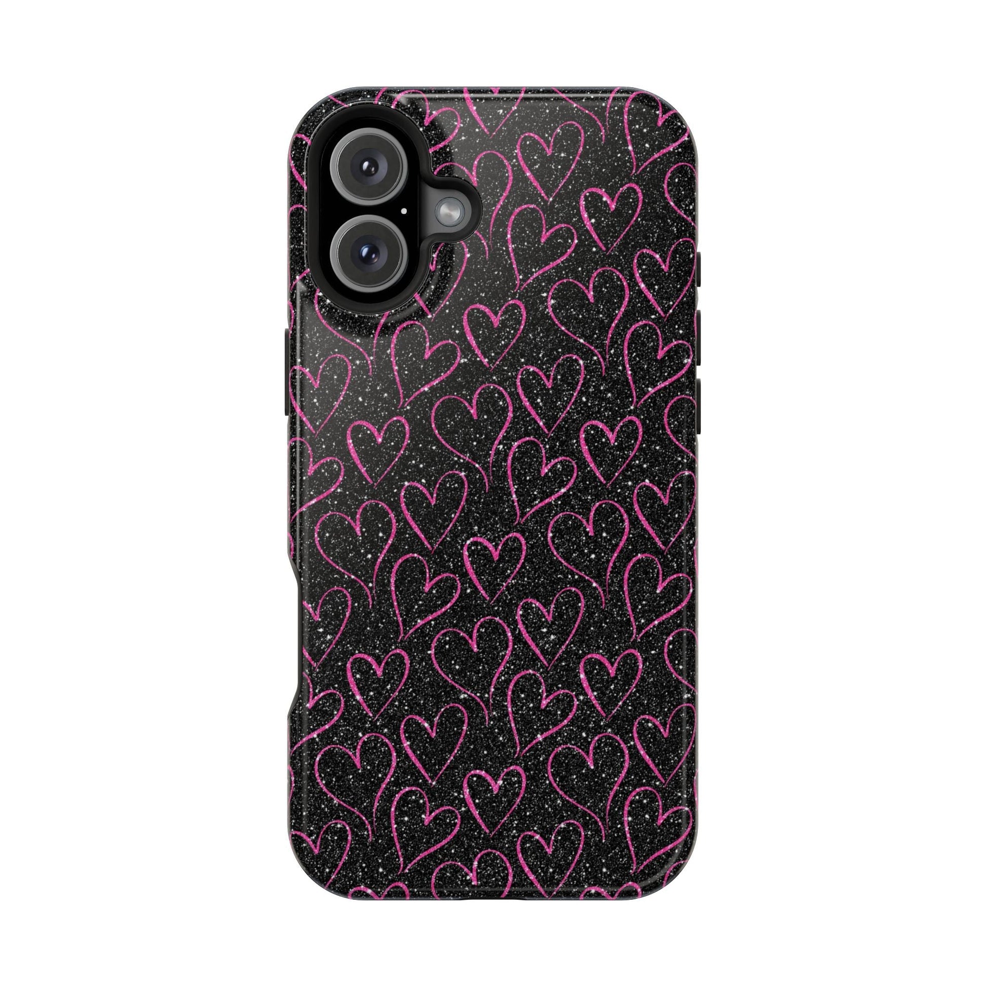Sparkle and shine with our Sparkling Pink Hearts MagSafe iPhone Case! This dazzling design features a playful pattern of pink glitter hearts on a black background, creating a glamorous and romantic vibe. It's the perfect case for those who love to sparkle and shin...