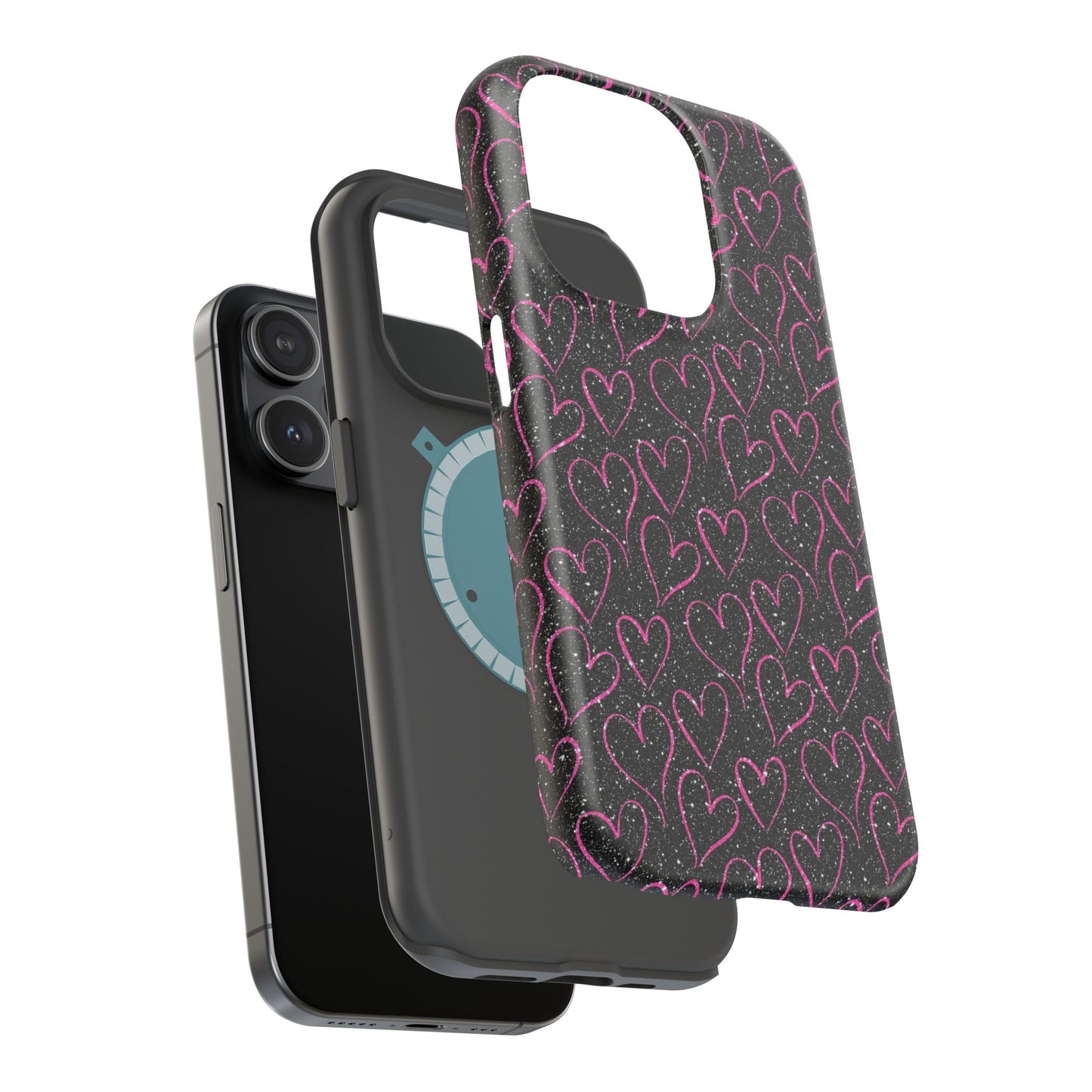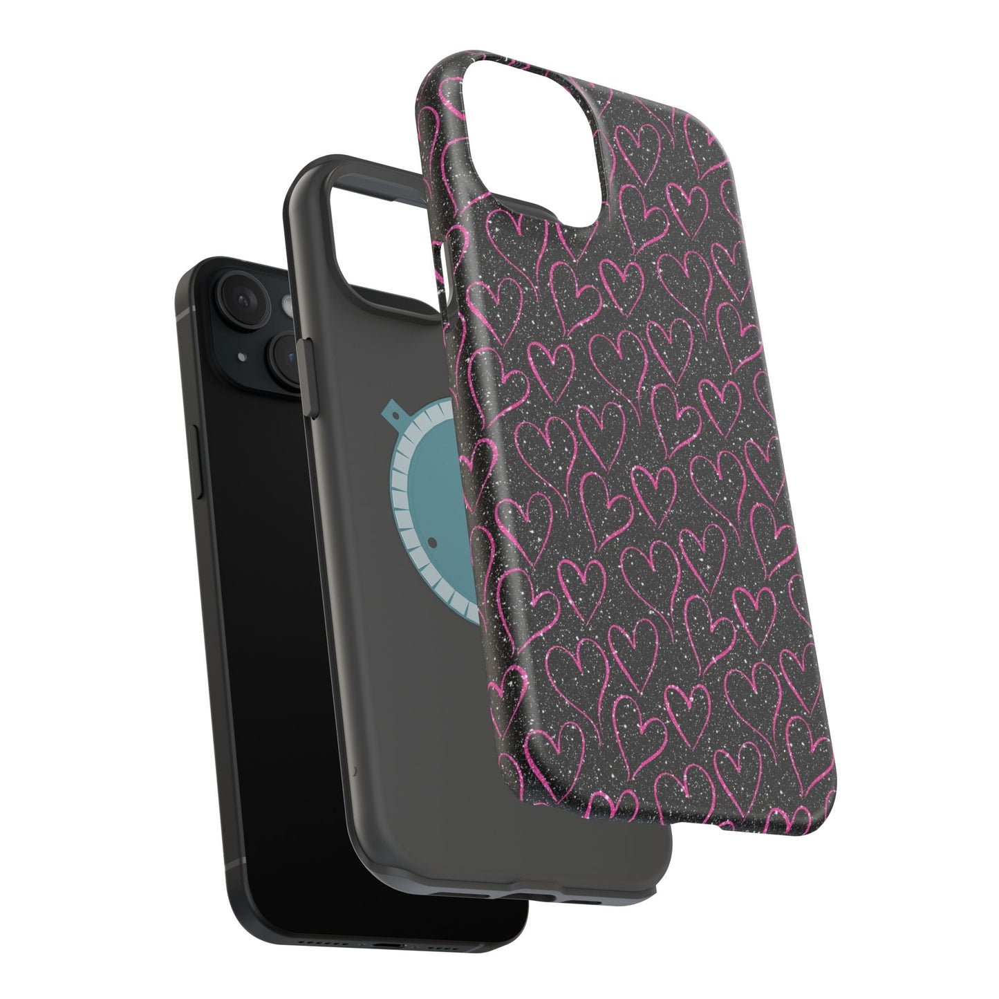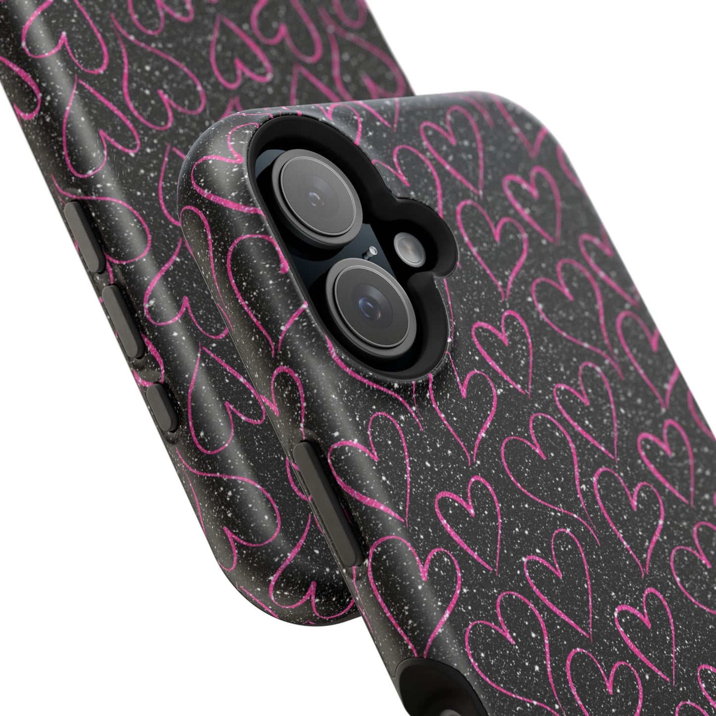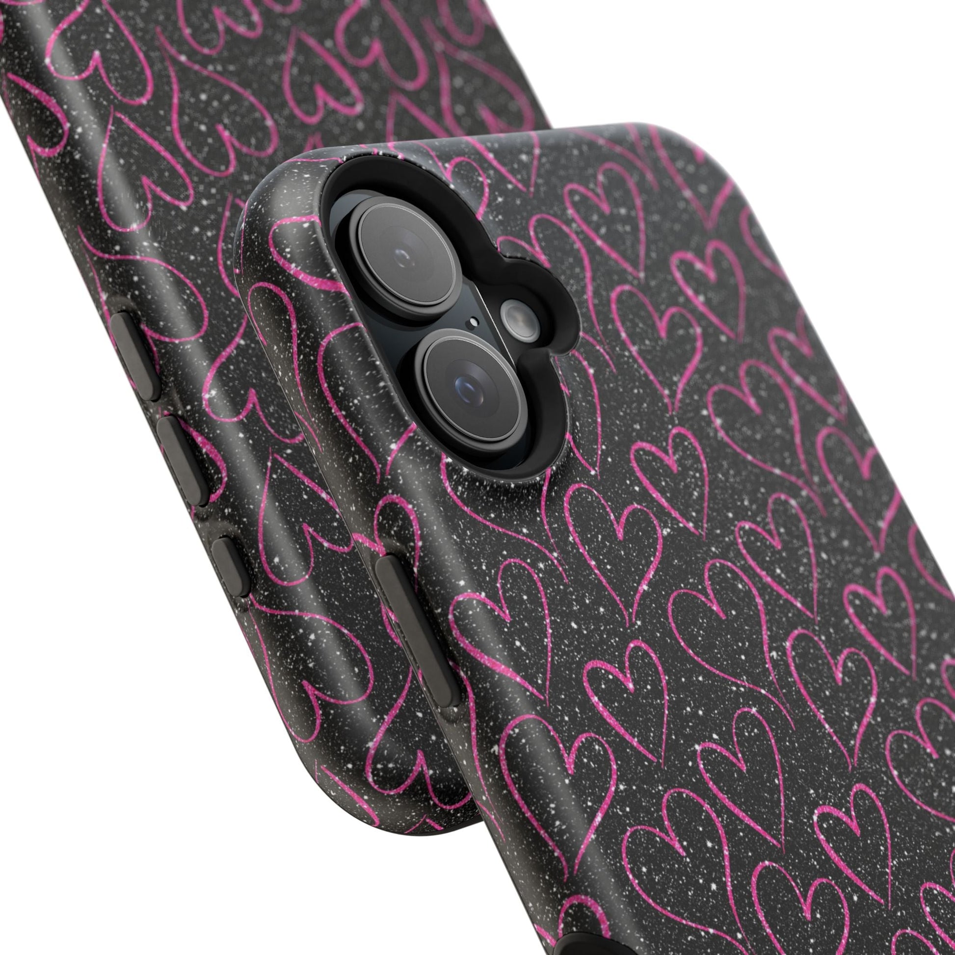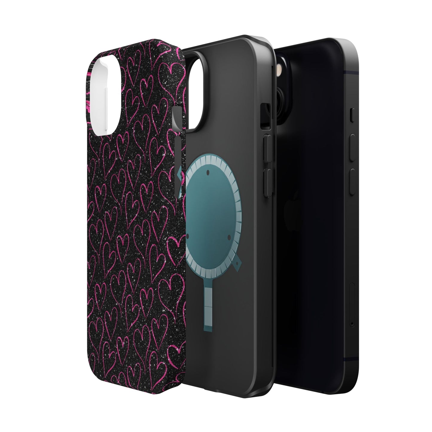 Sparkle and shine with our Sparkling Pink Hearts MagSafe iPhone Case! This dazzling design features a playful pattern of pink glitter hearts on a black background, creating a glamorous and romantic vibe. It's the perfect case for those who love to sparkle and shin...