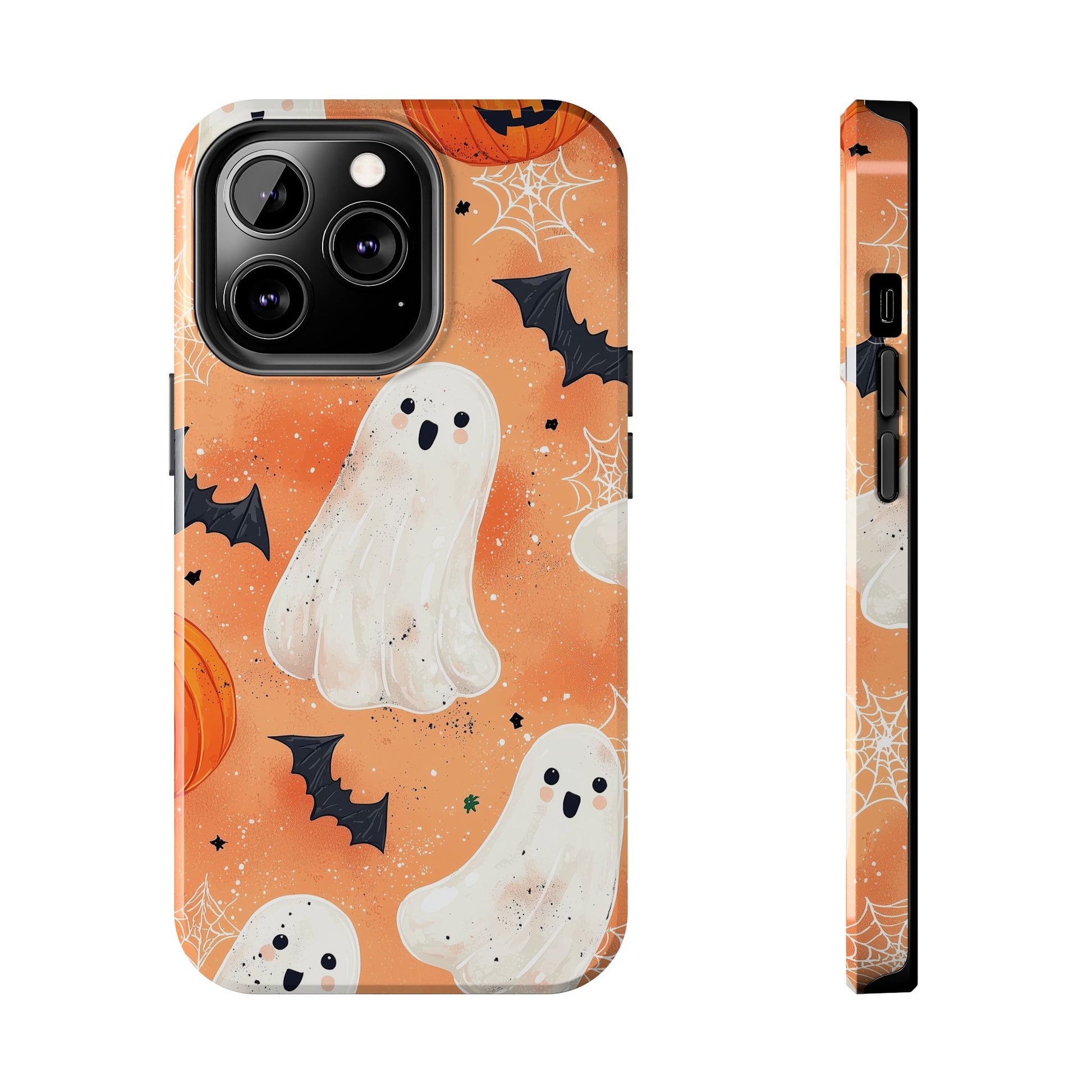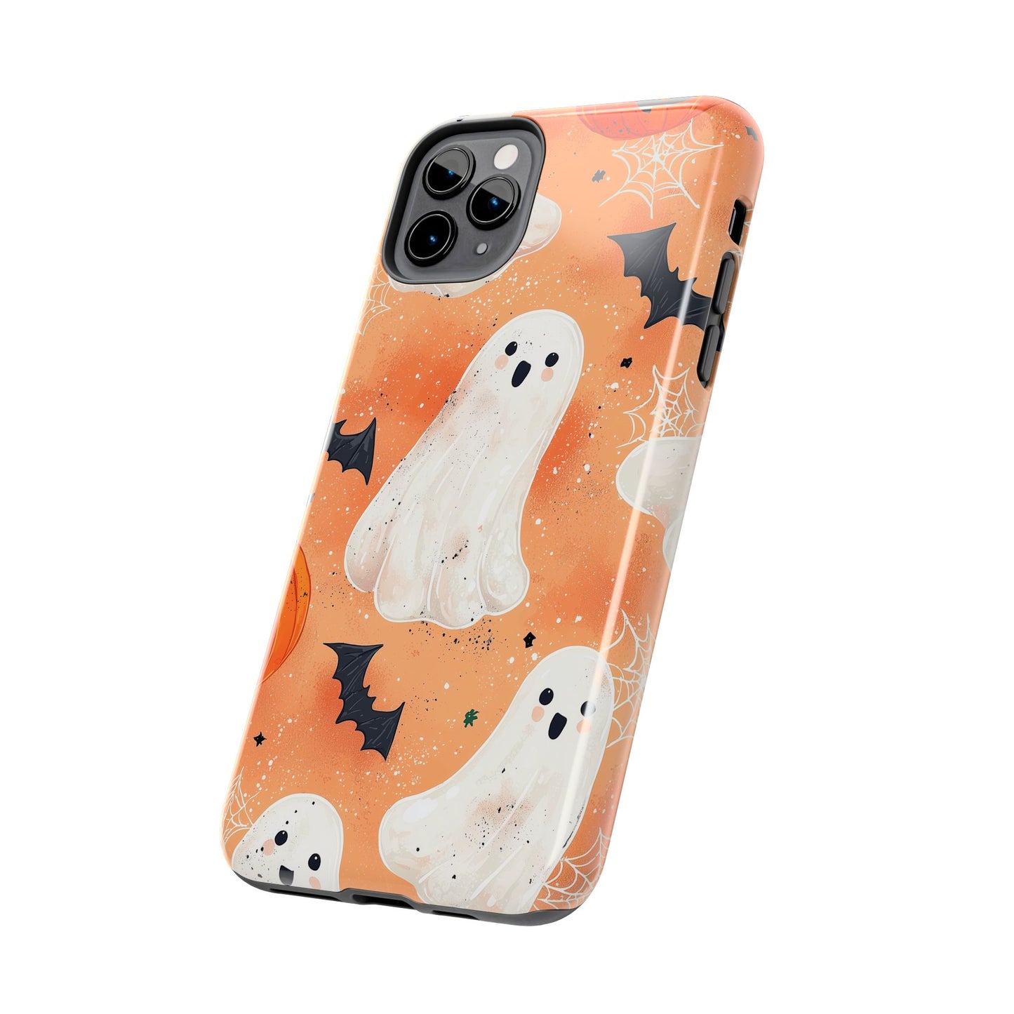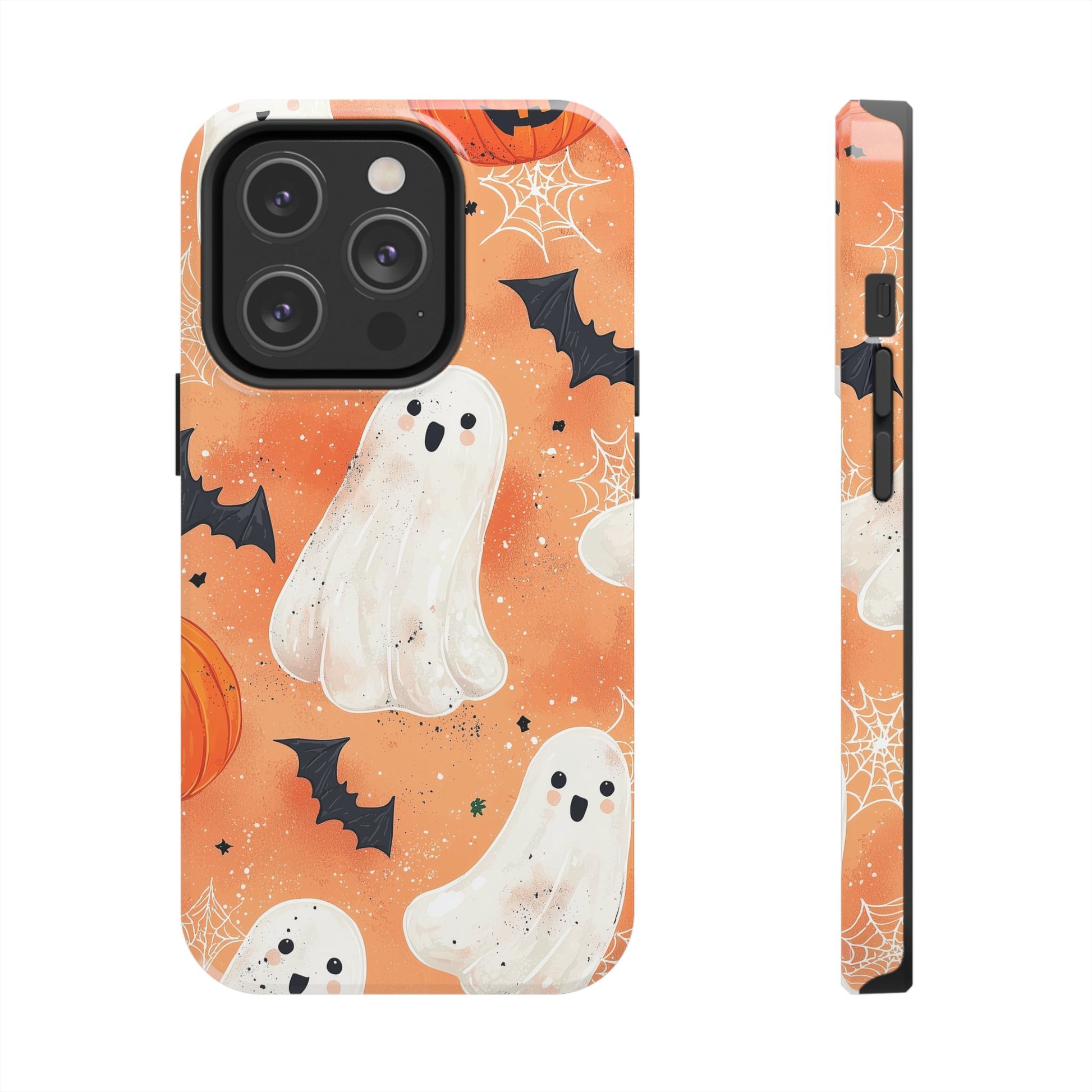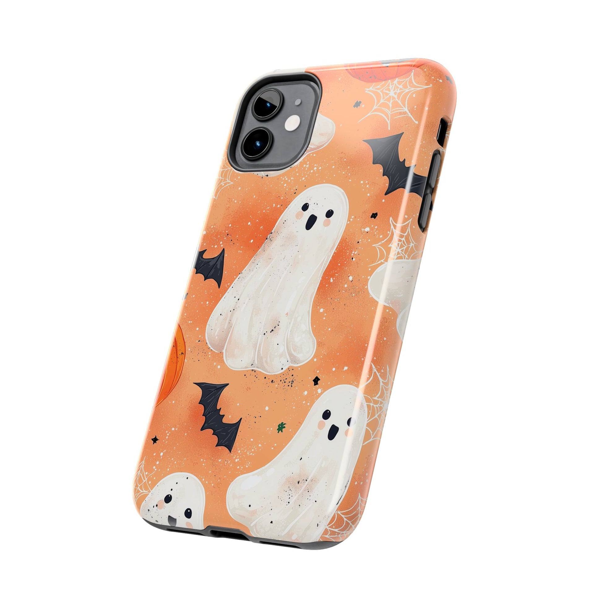 Spooky Cute Ghost iPhone Case – Halloween Ghosts, Pumpkins, Bats & Cobwebs Design
