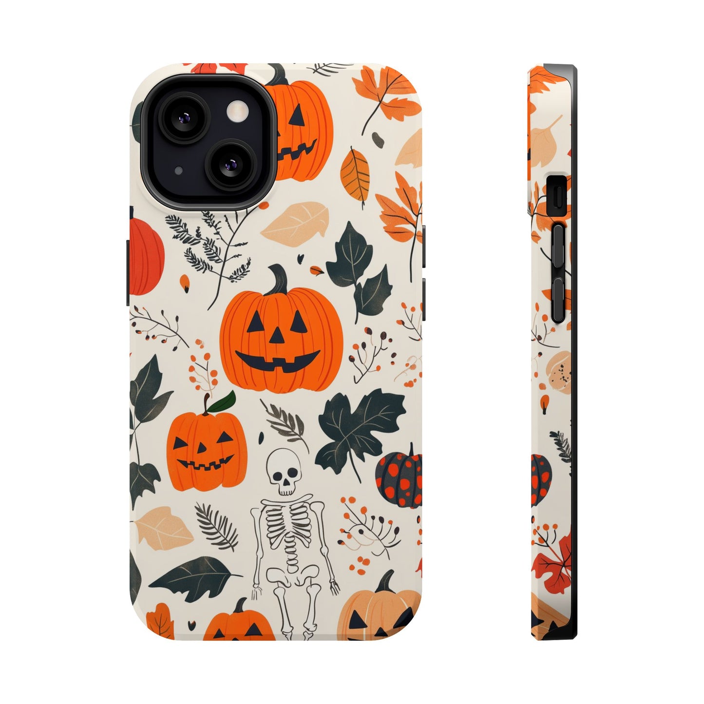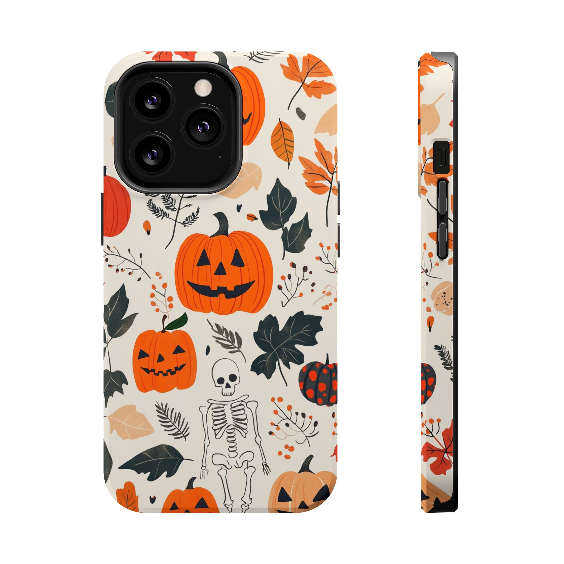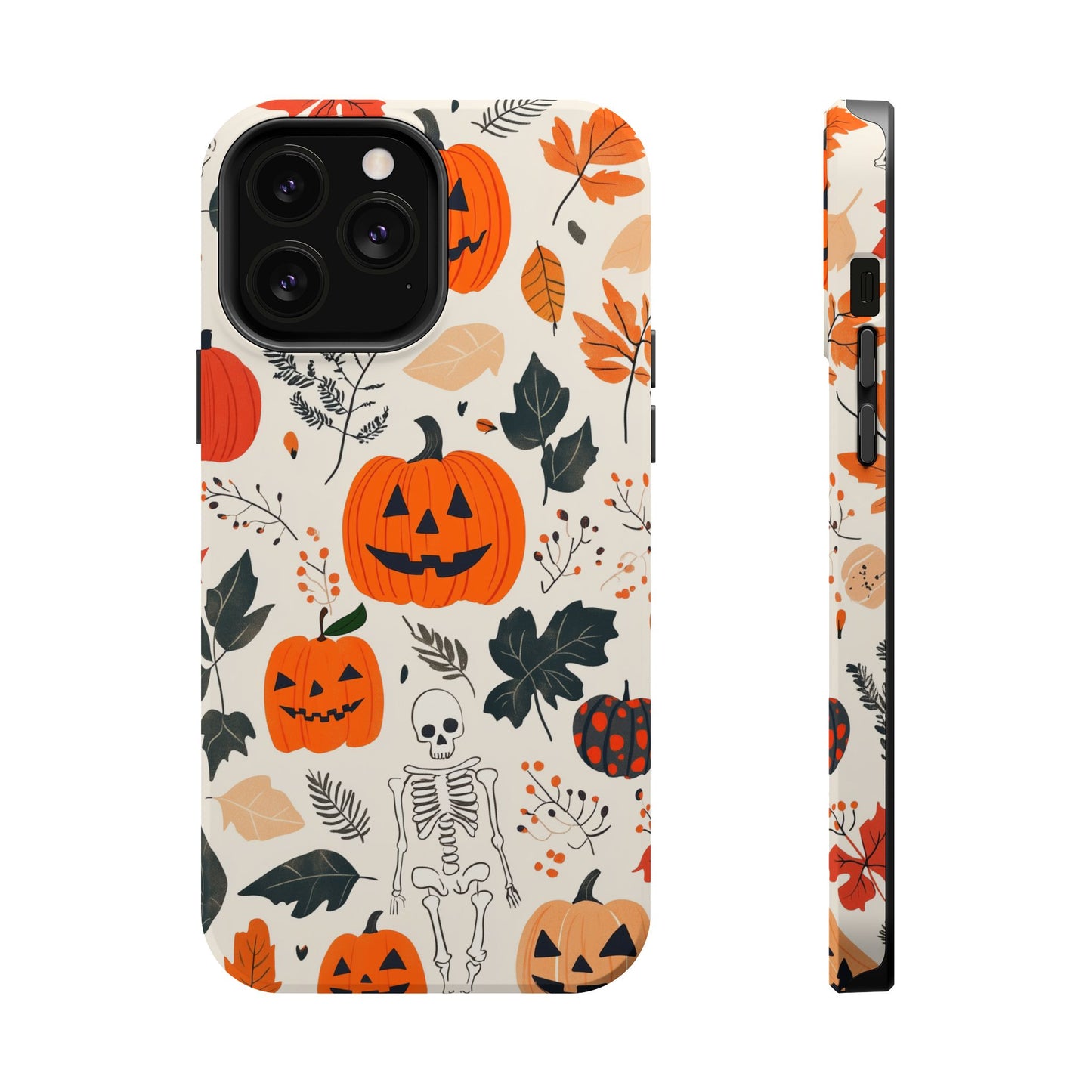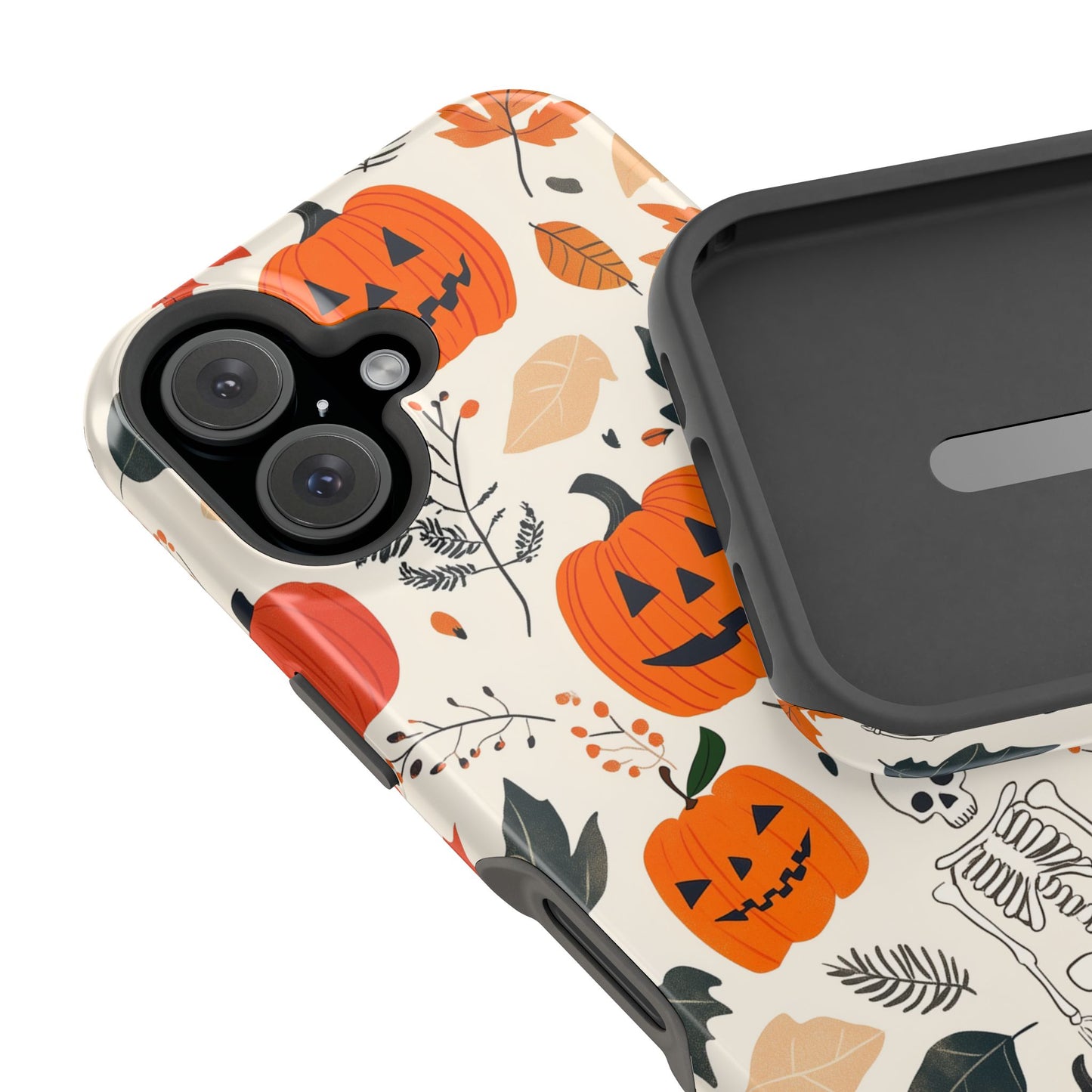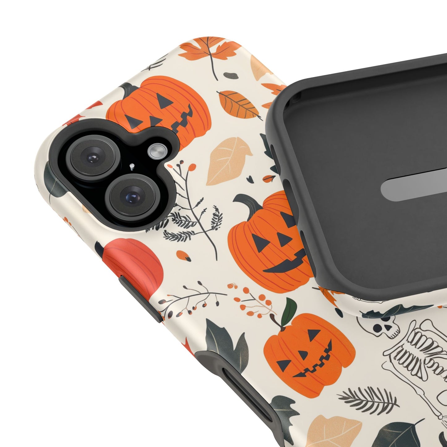 Spooky Pumpkin & Skeleton MagSafe iPhone Case – Halloween Jack-O'-Lantern Design