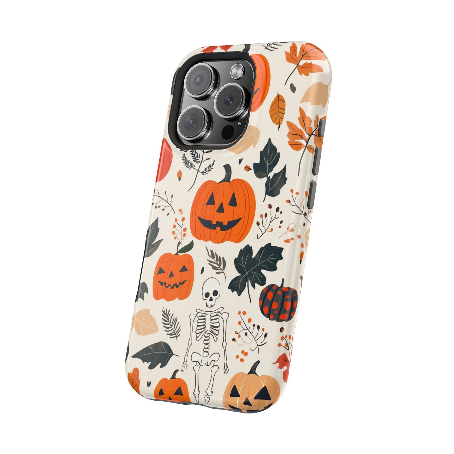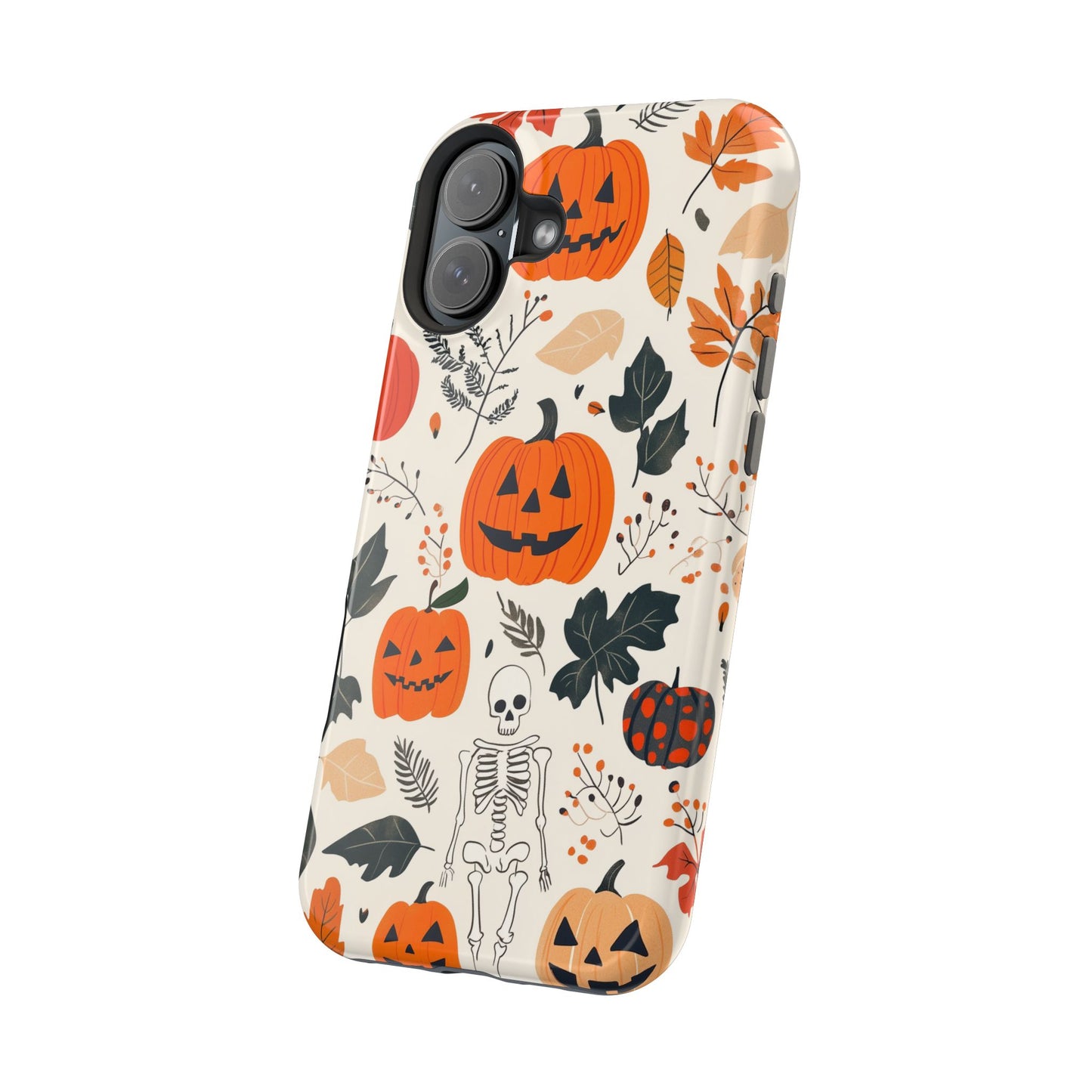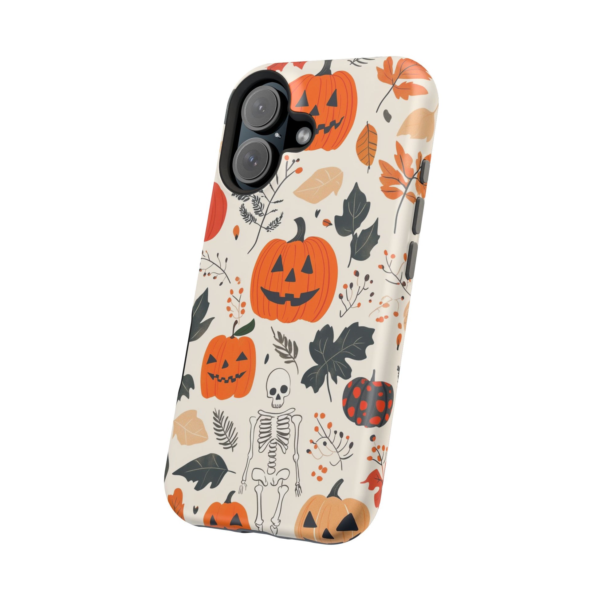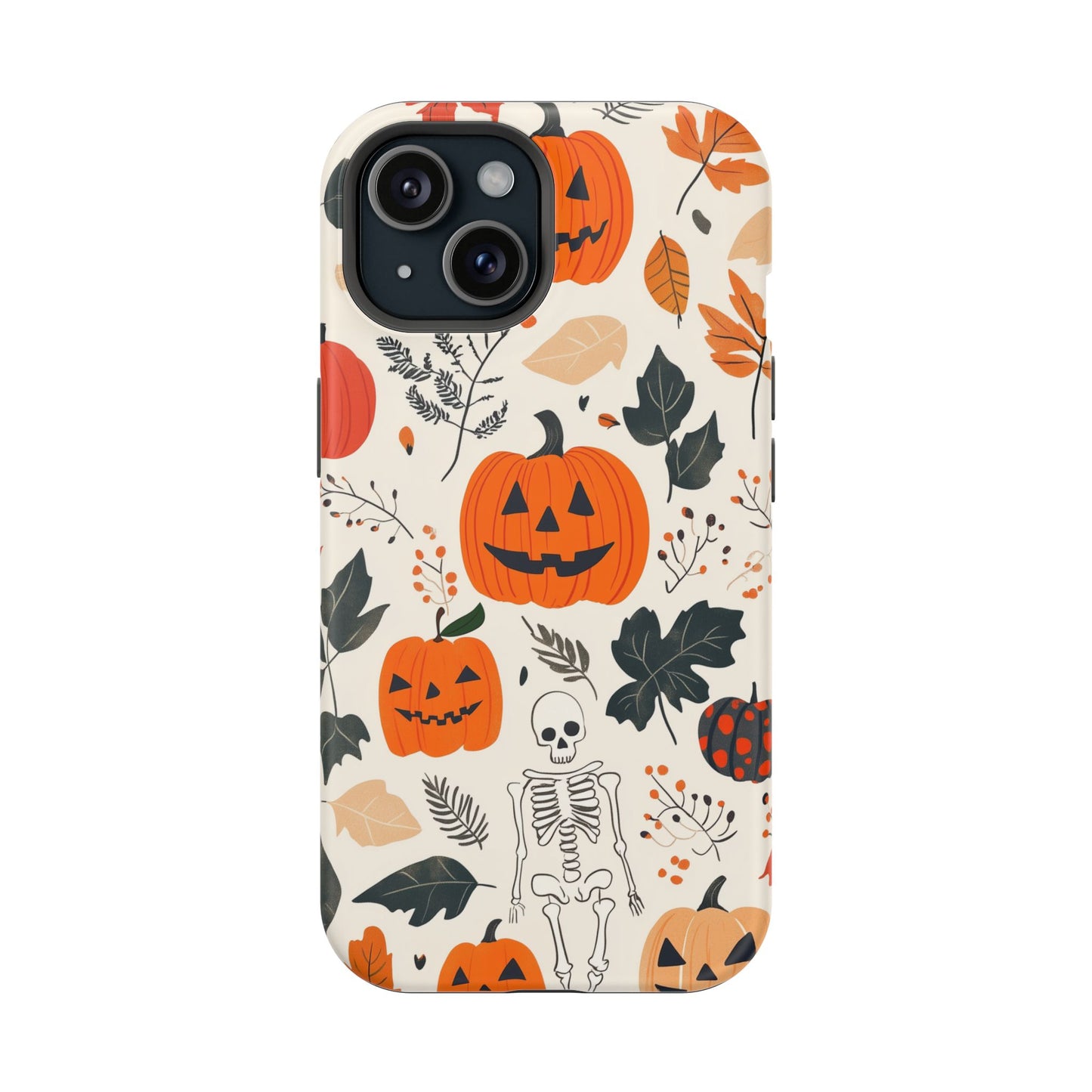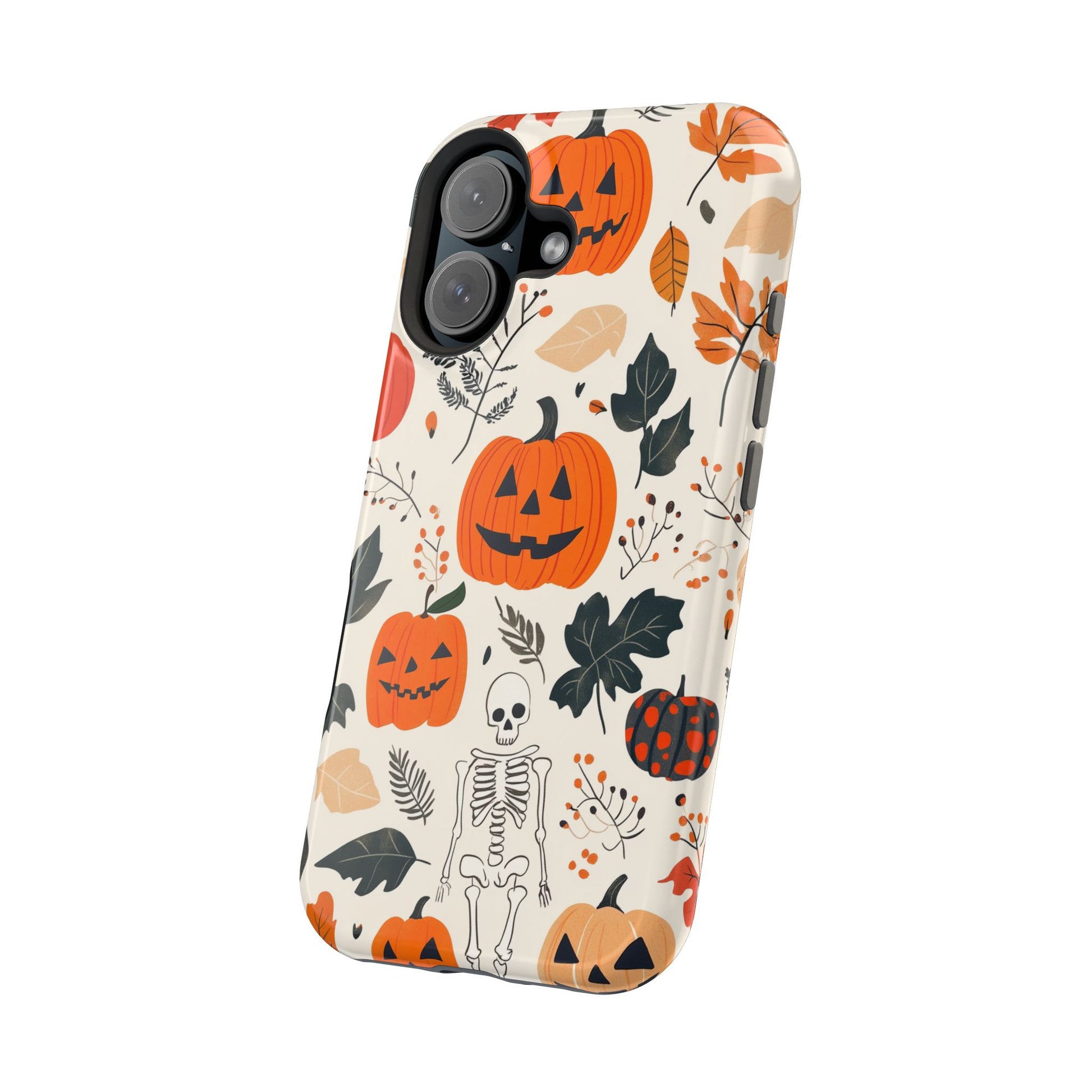 Spooky Pumpkin & Skeleton MagSafe iPhone Case – Halloween Jack-O'-Lantern Design