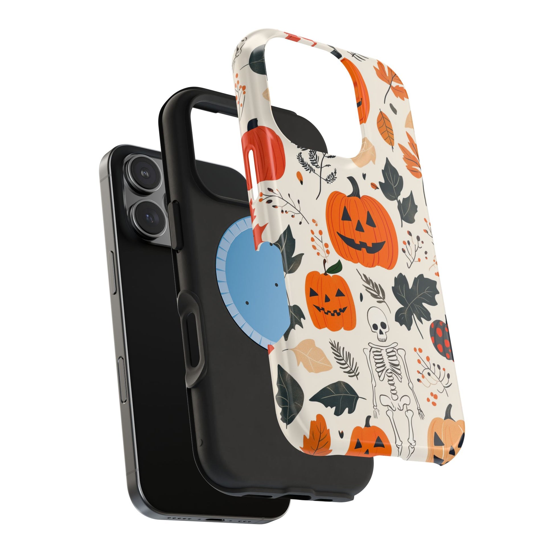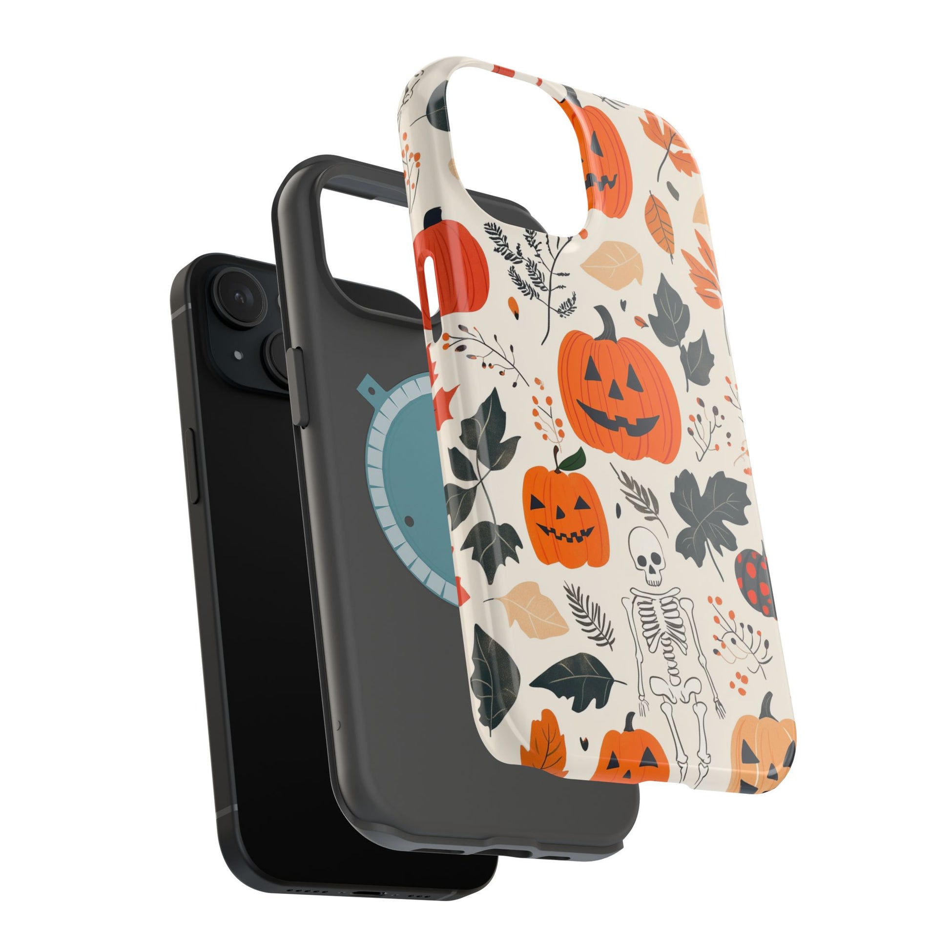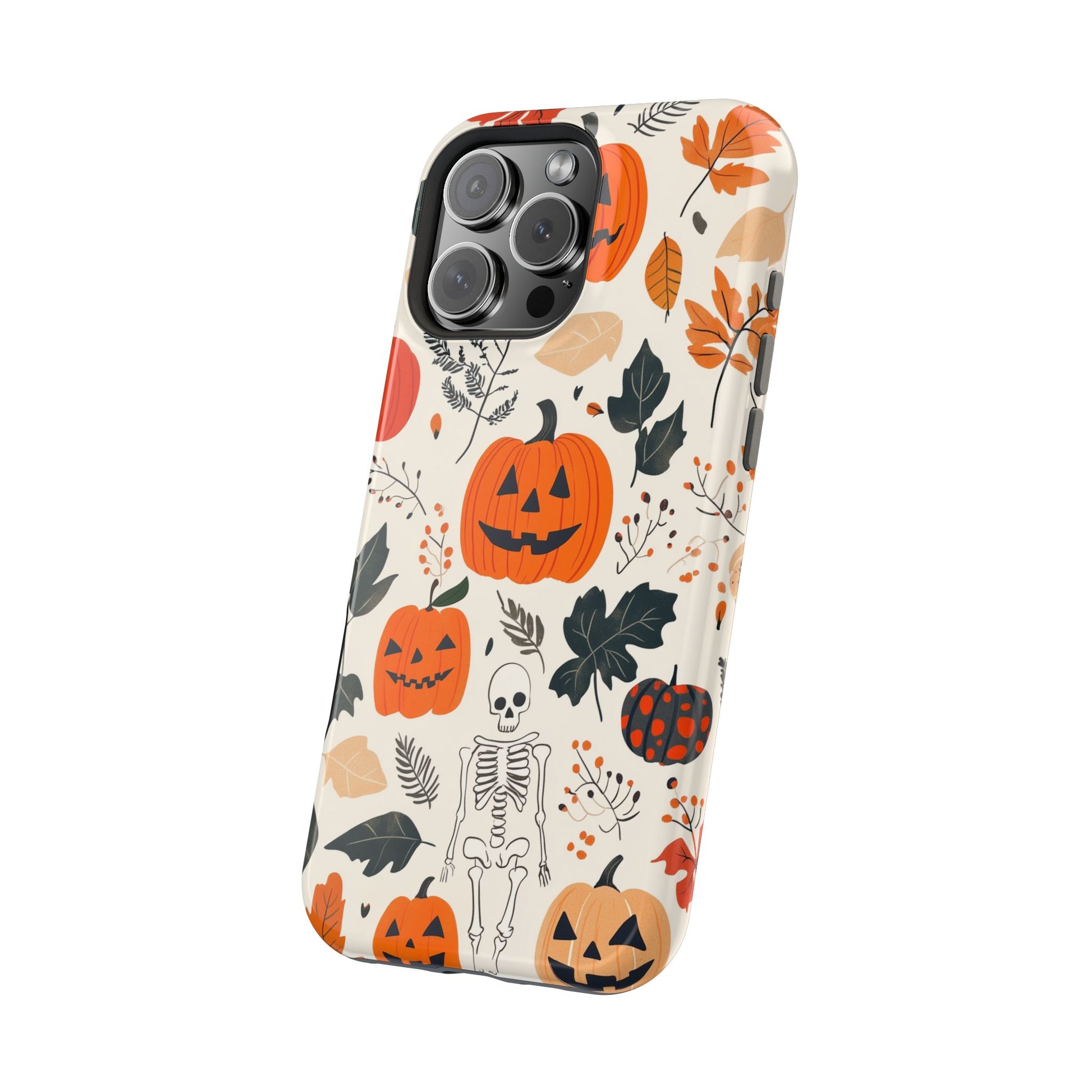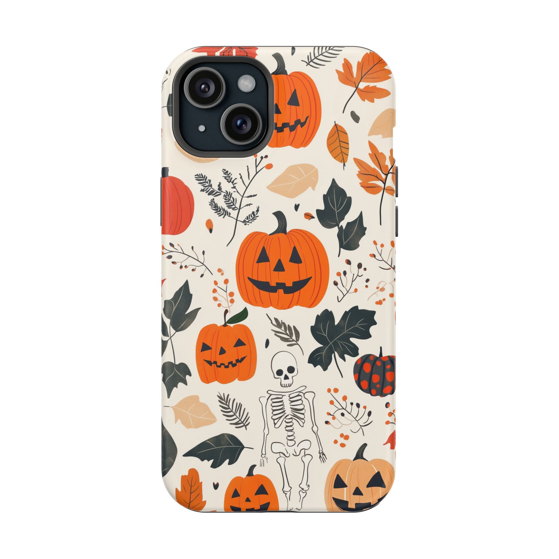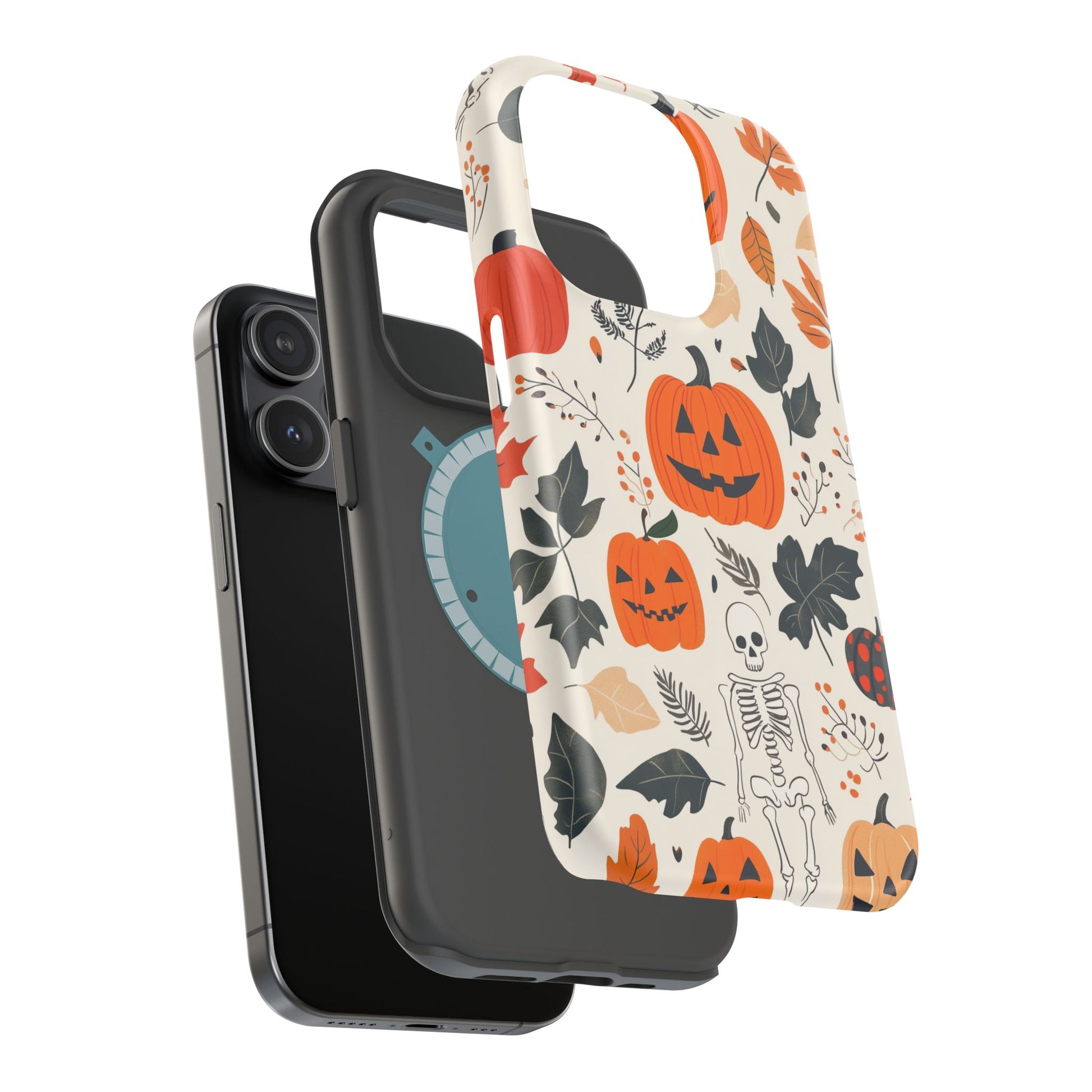 Spooky Pumpkin & Skeleton MagSafe iPhone Case – Halloween Jack-O'-Lantern Design