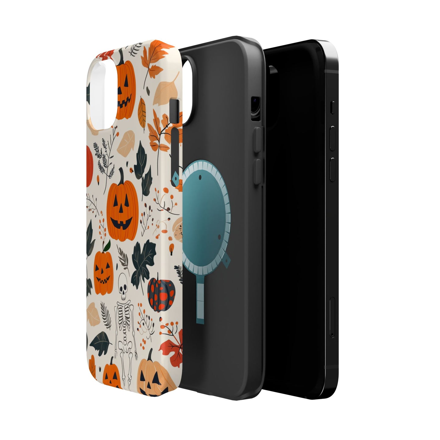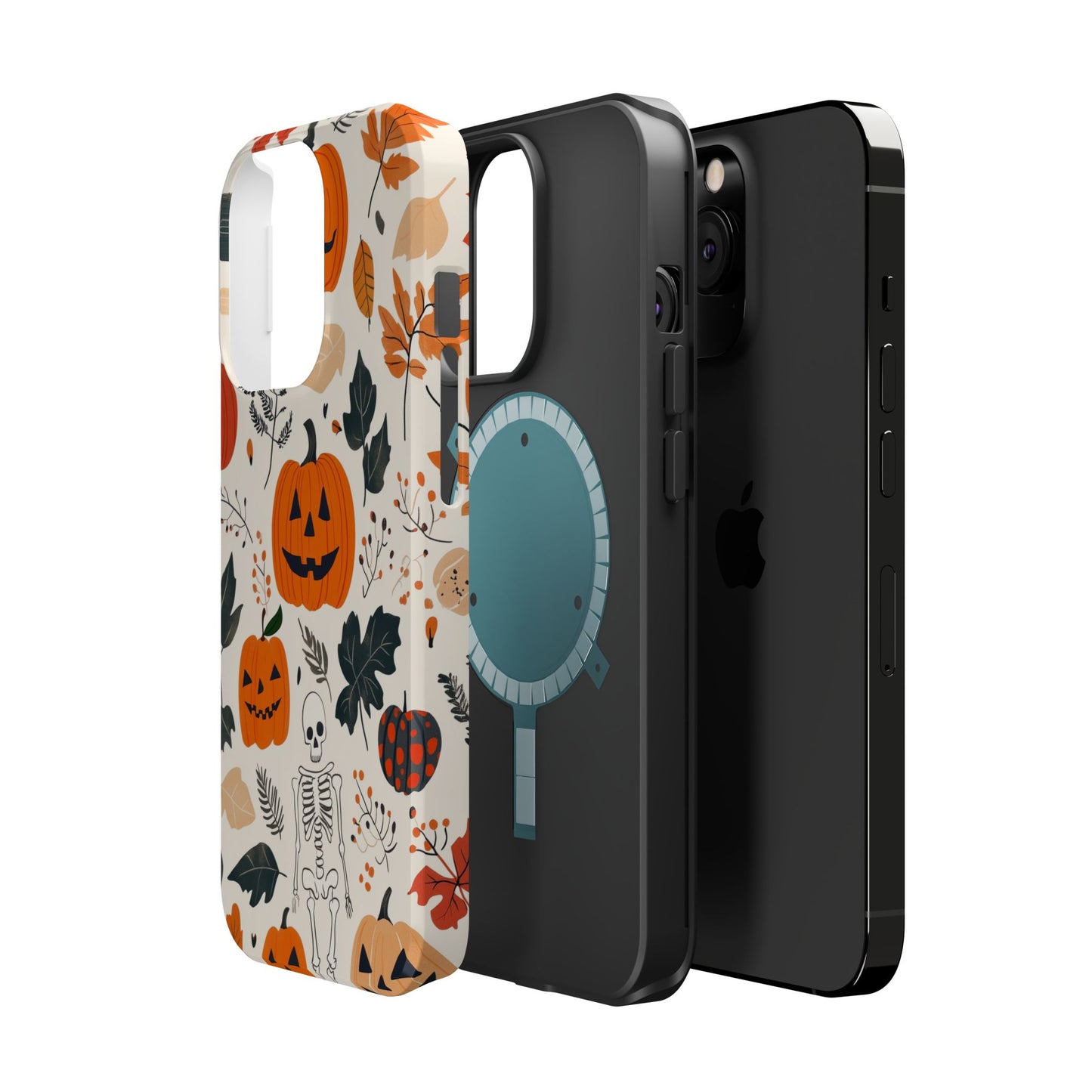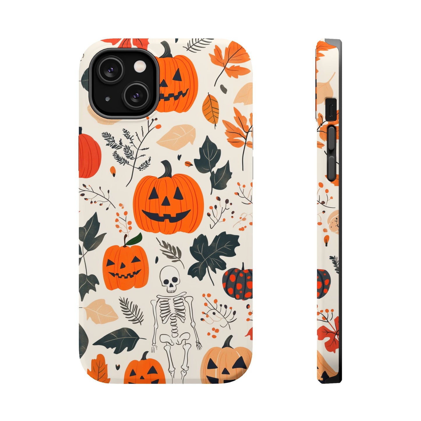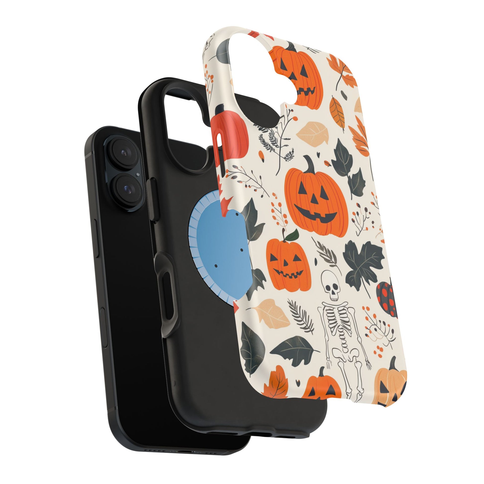 Spooky Pumpkin & Skeleton MagSafe iPhone Case – Halloween Jack-O'-Lantern Design