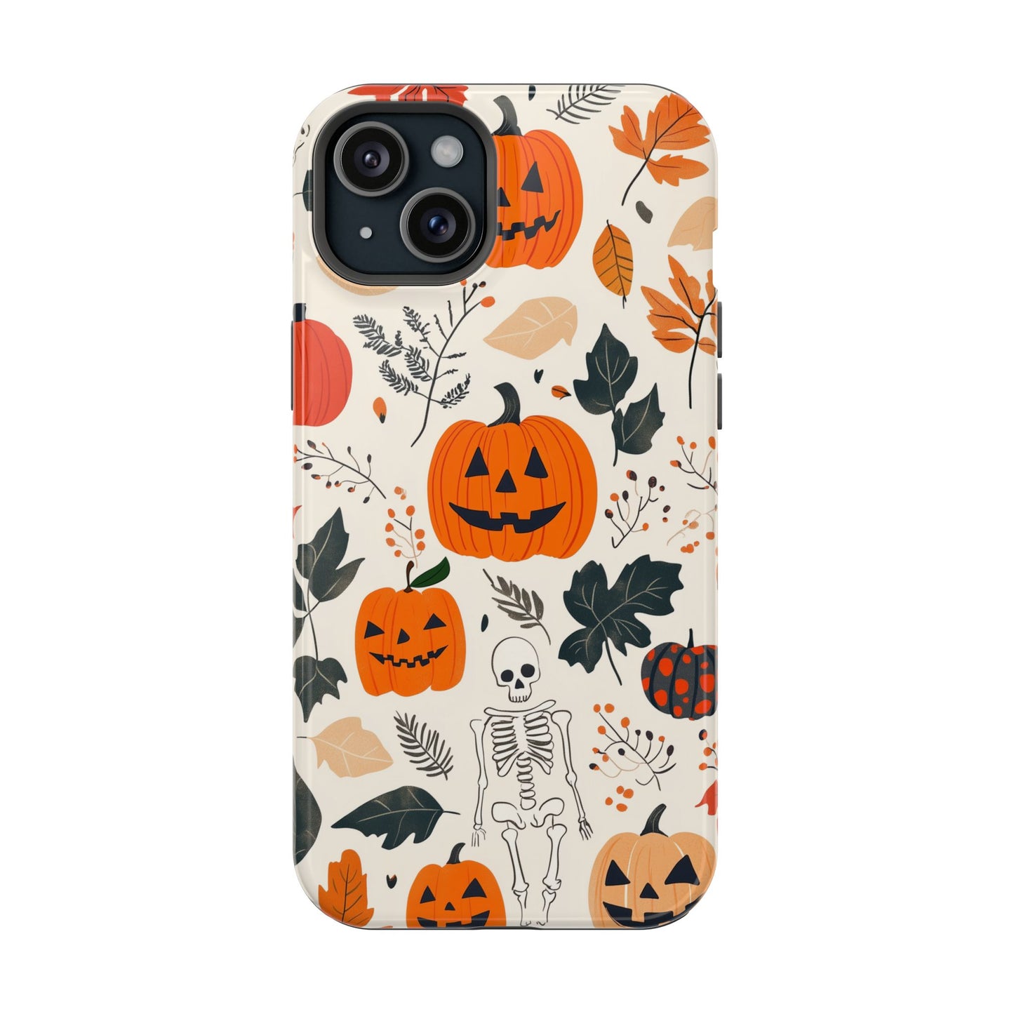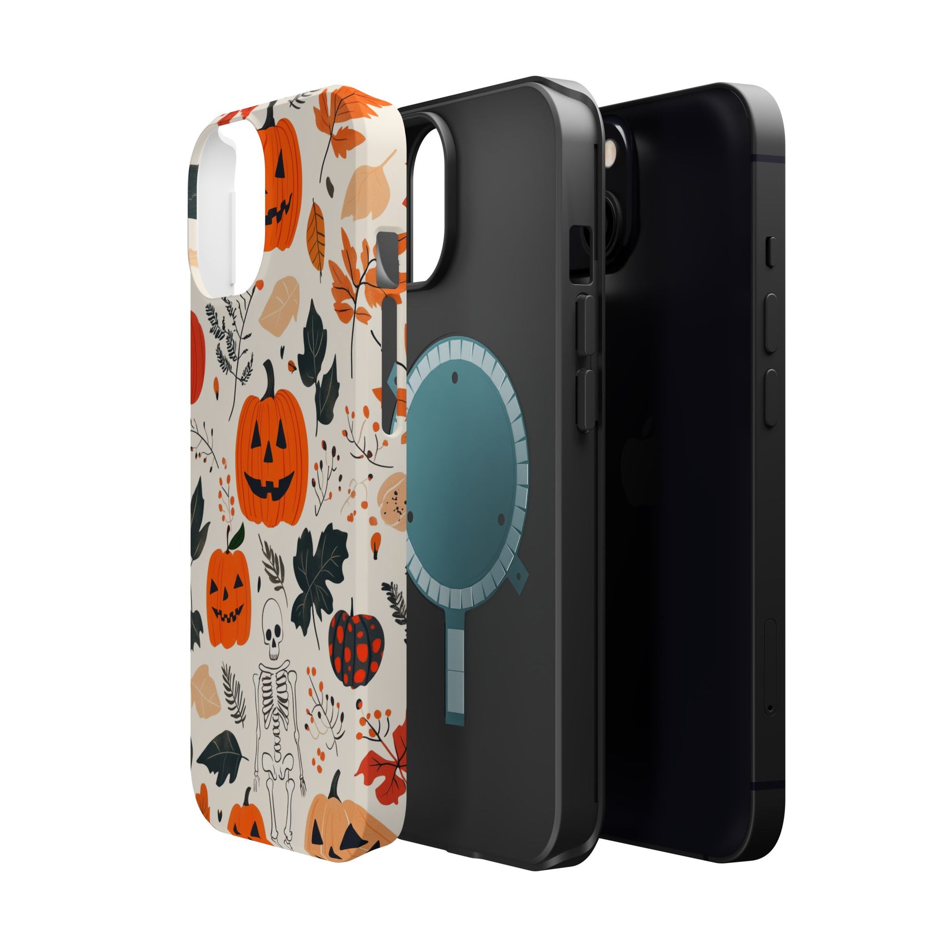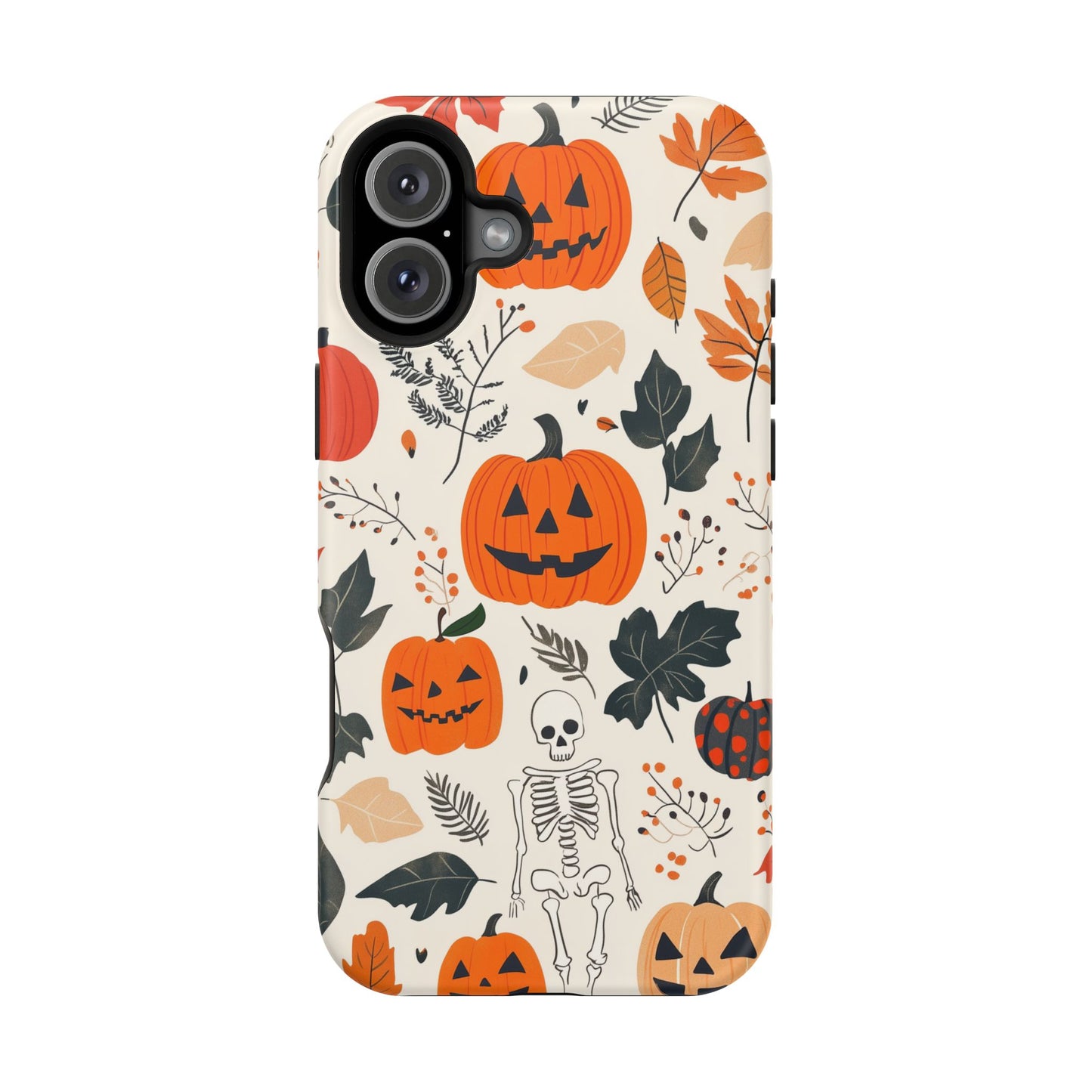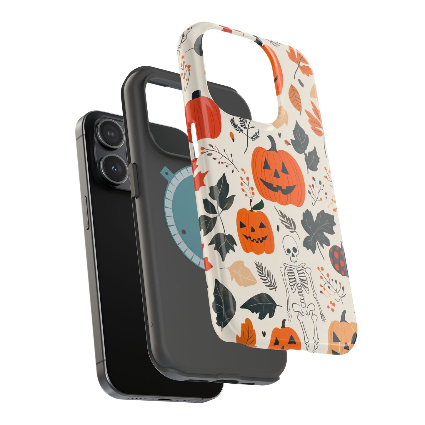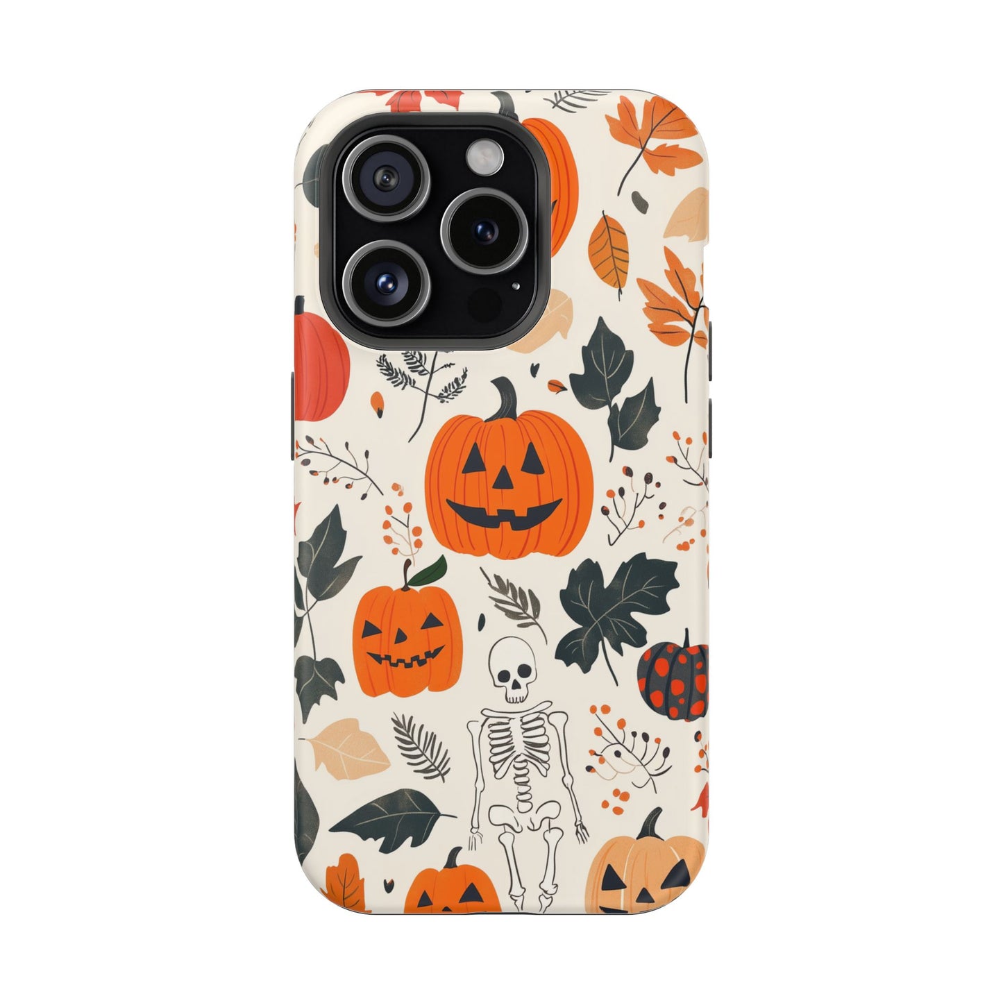 Spooky Pumpkin & Skeleton MagSafe iPhone Case – Halloween Jack-O'-Lantern Design