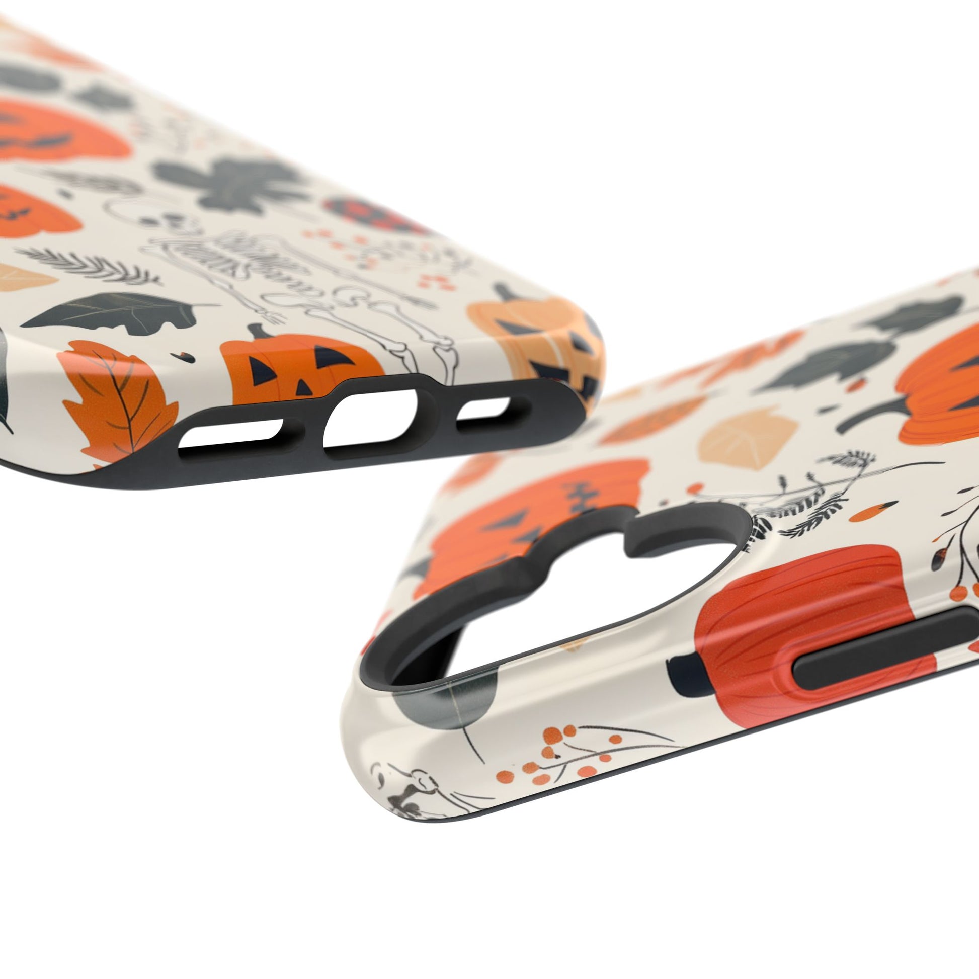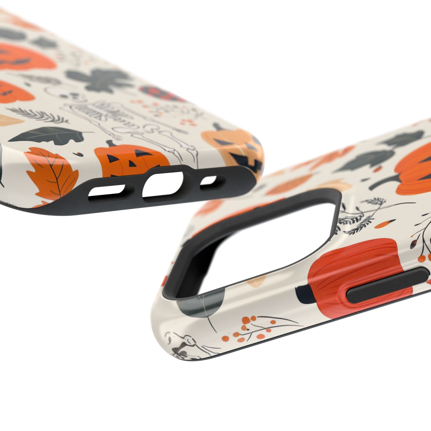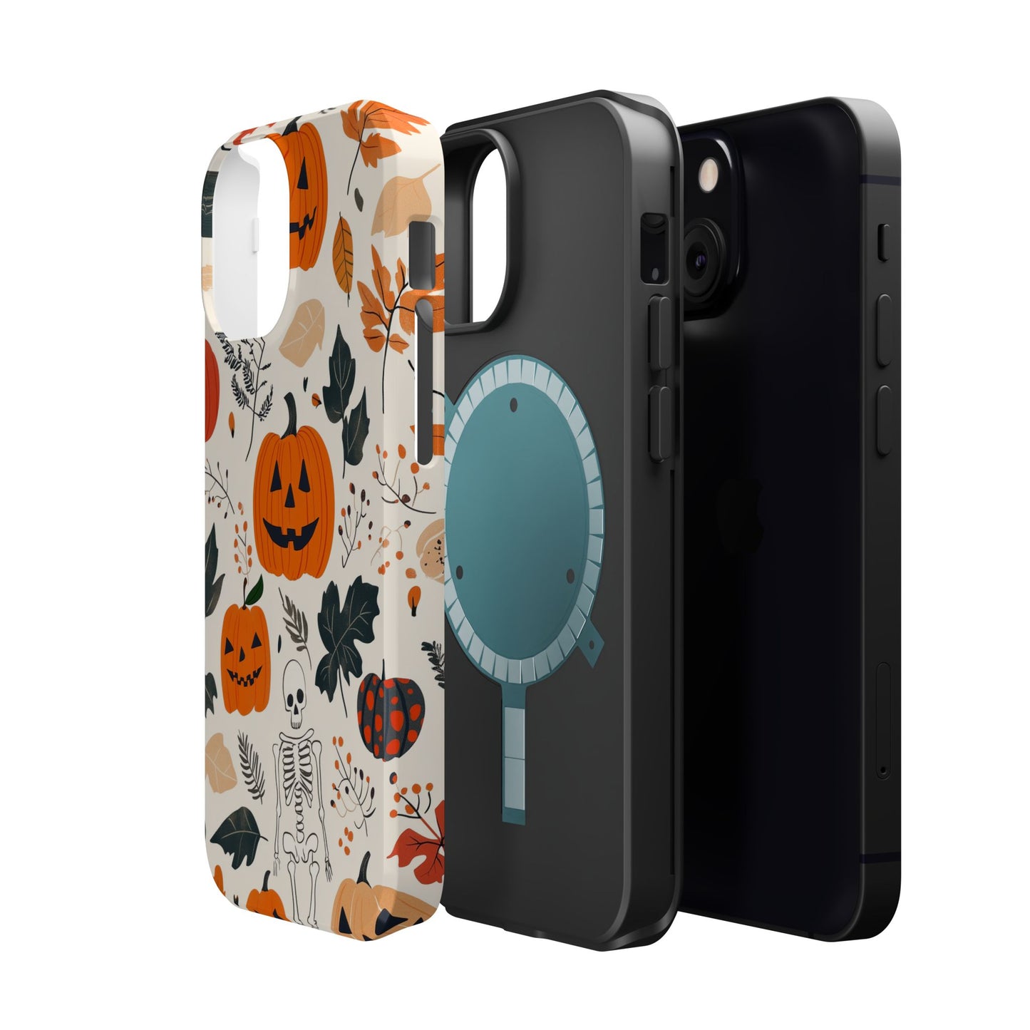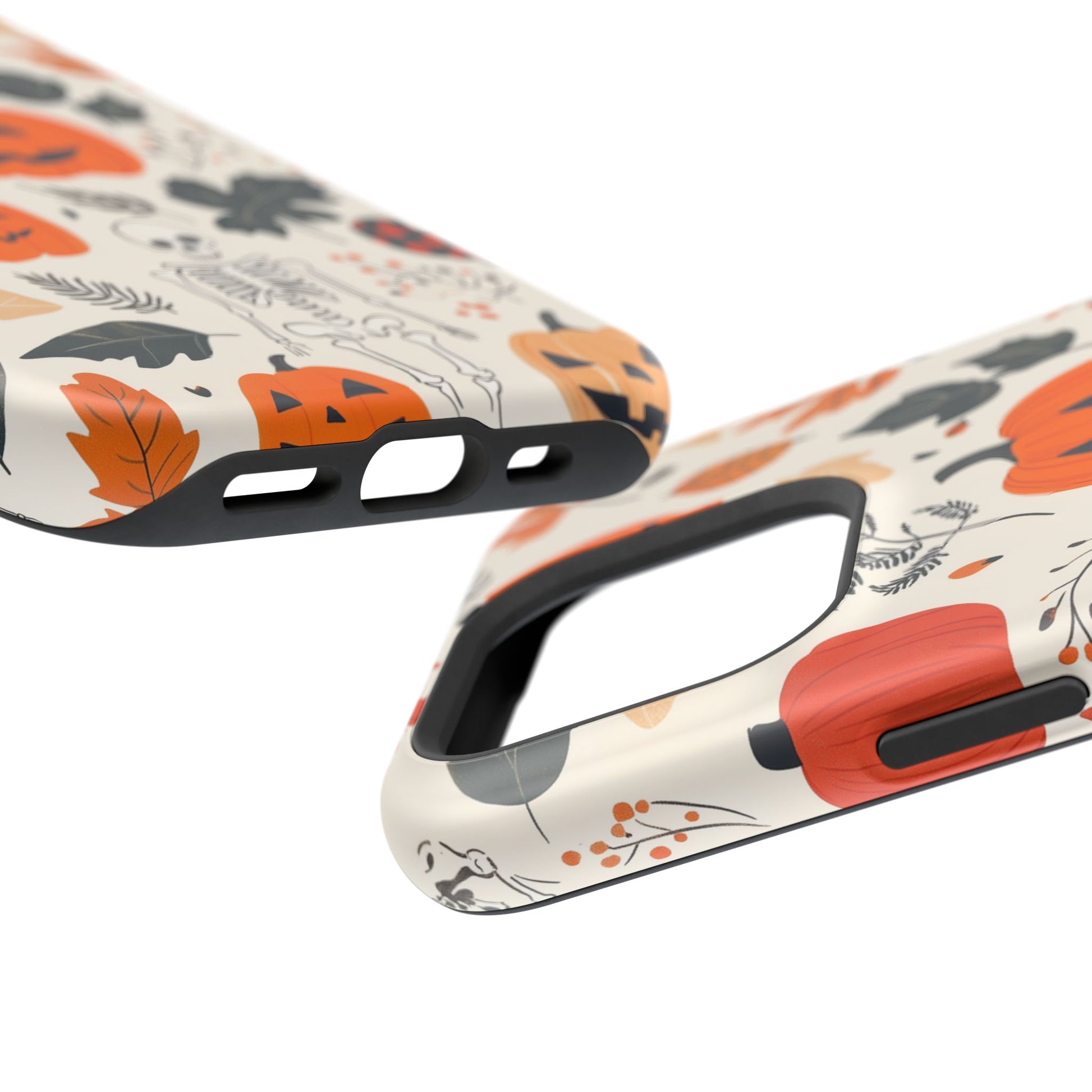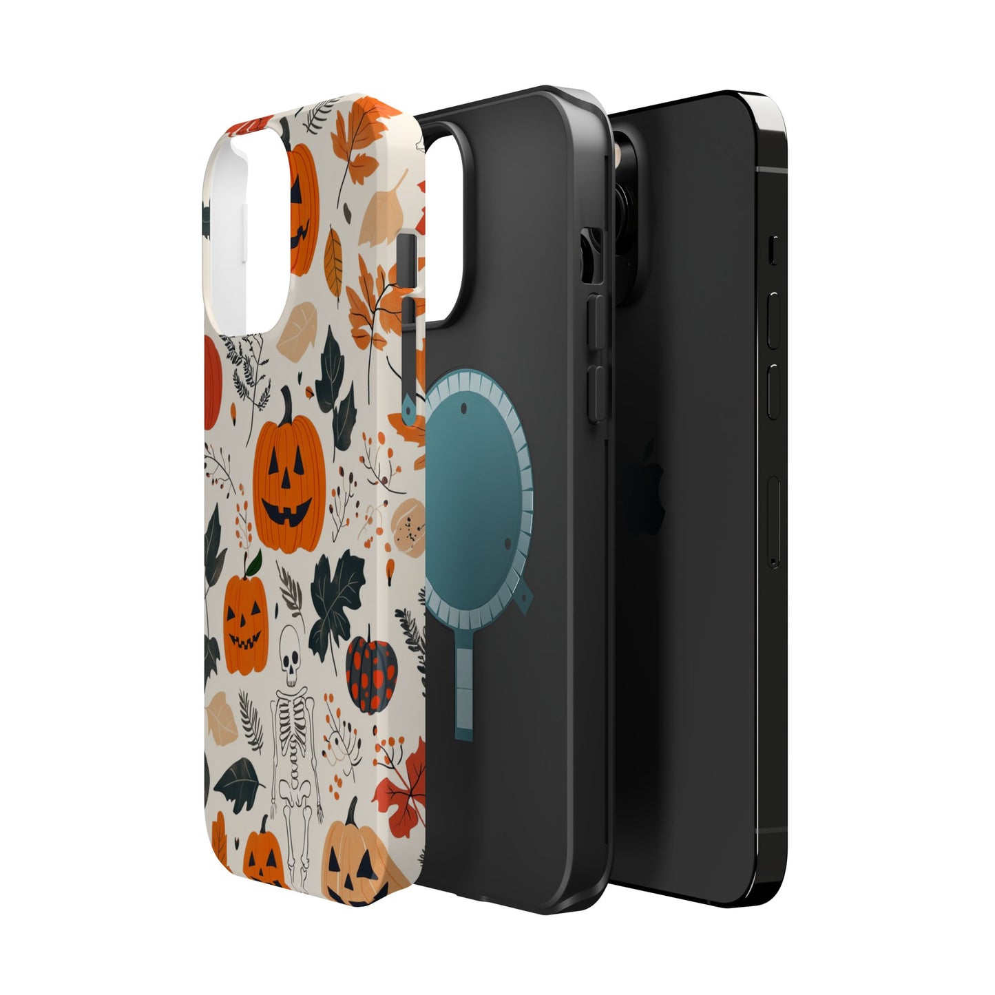 Spooky Pumpkin & Skeleton MagSafe iPhone Case – Halloween Jack-O'-Lantern Design