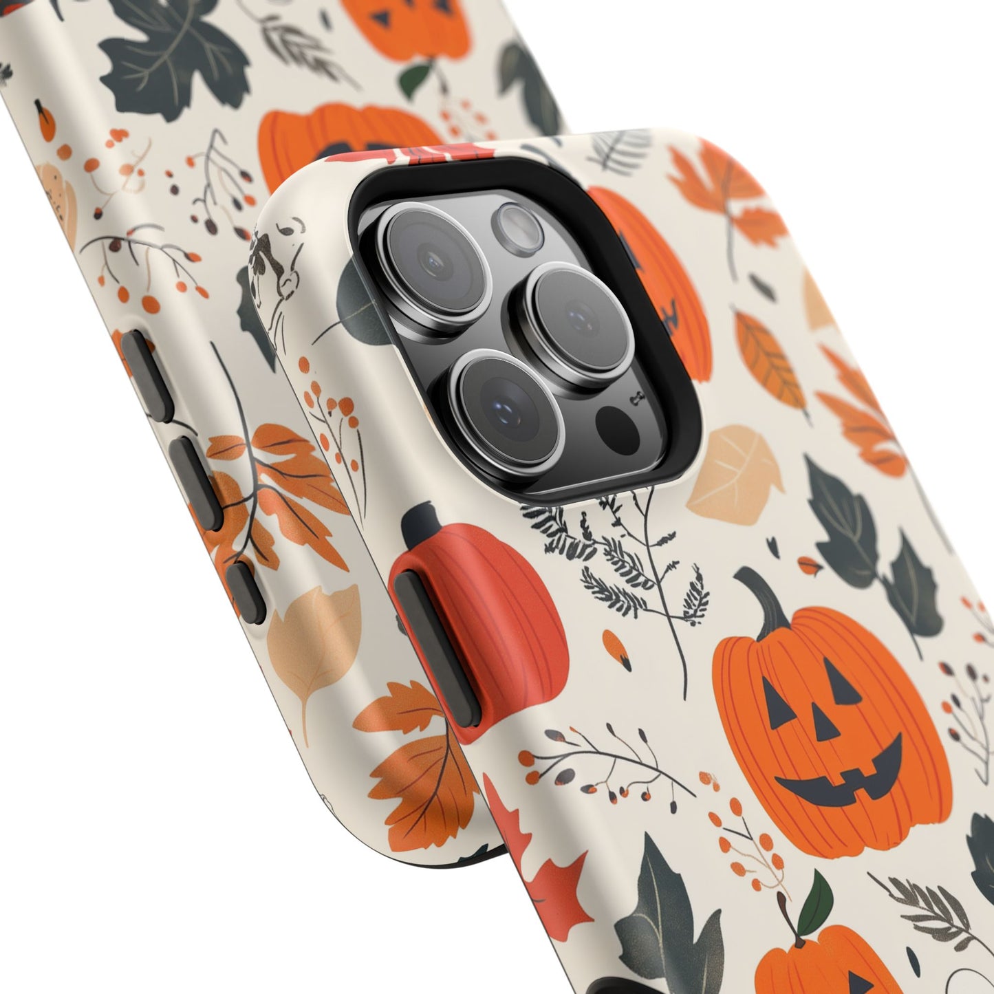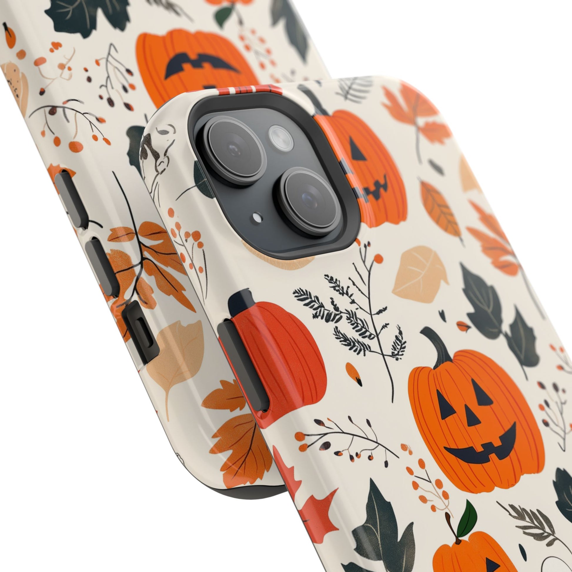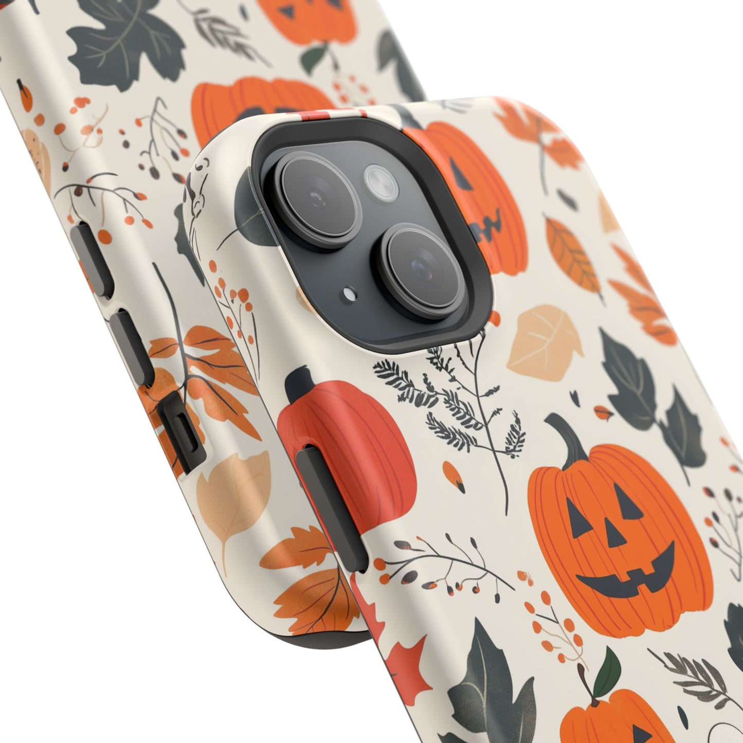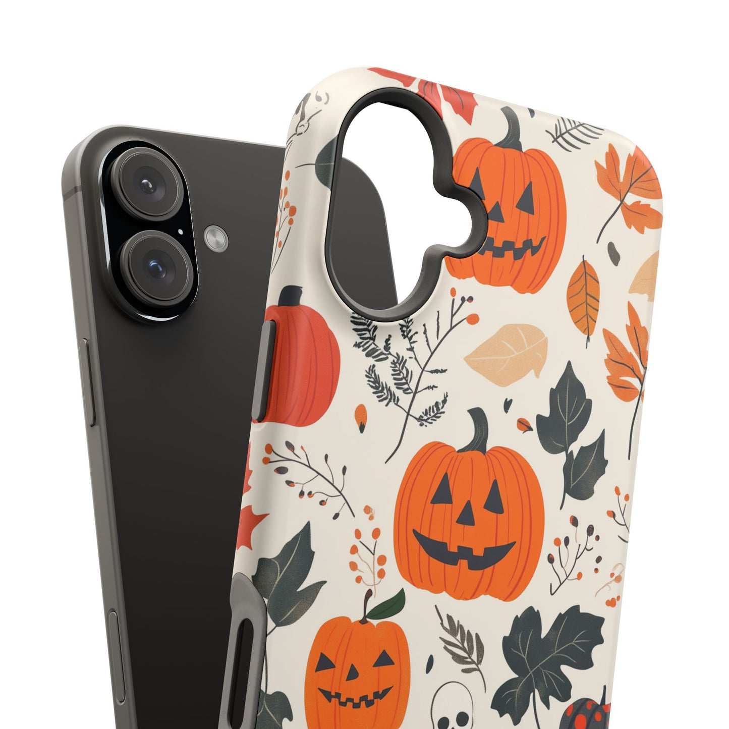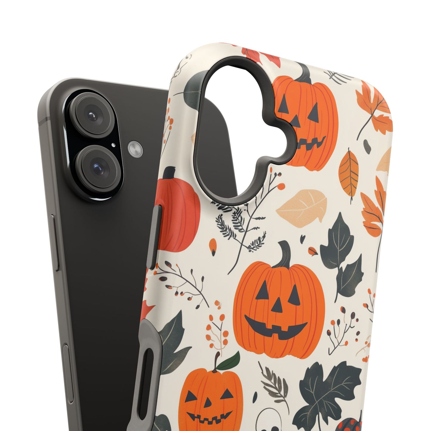 Spooky Pumpkin & Skeleton MagSafe iPhone Case – Halloween Jack-O'-Lantern Design