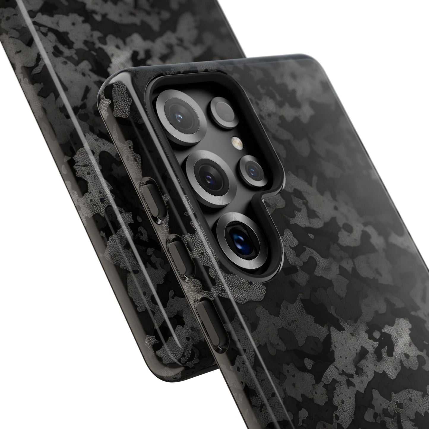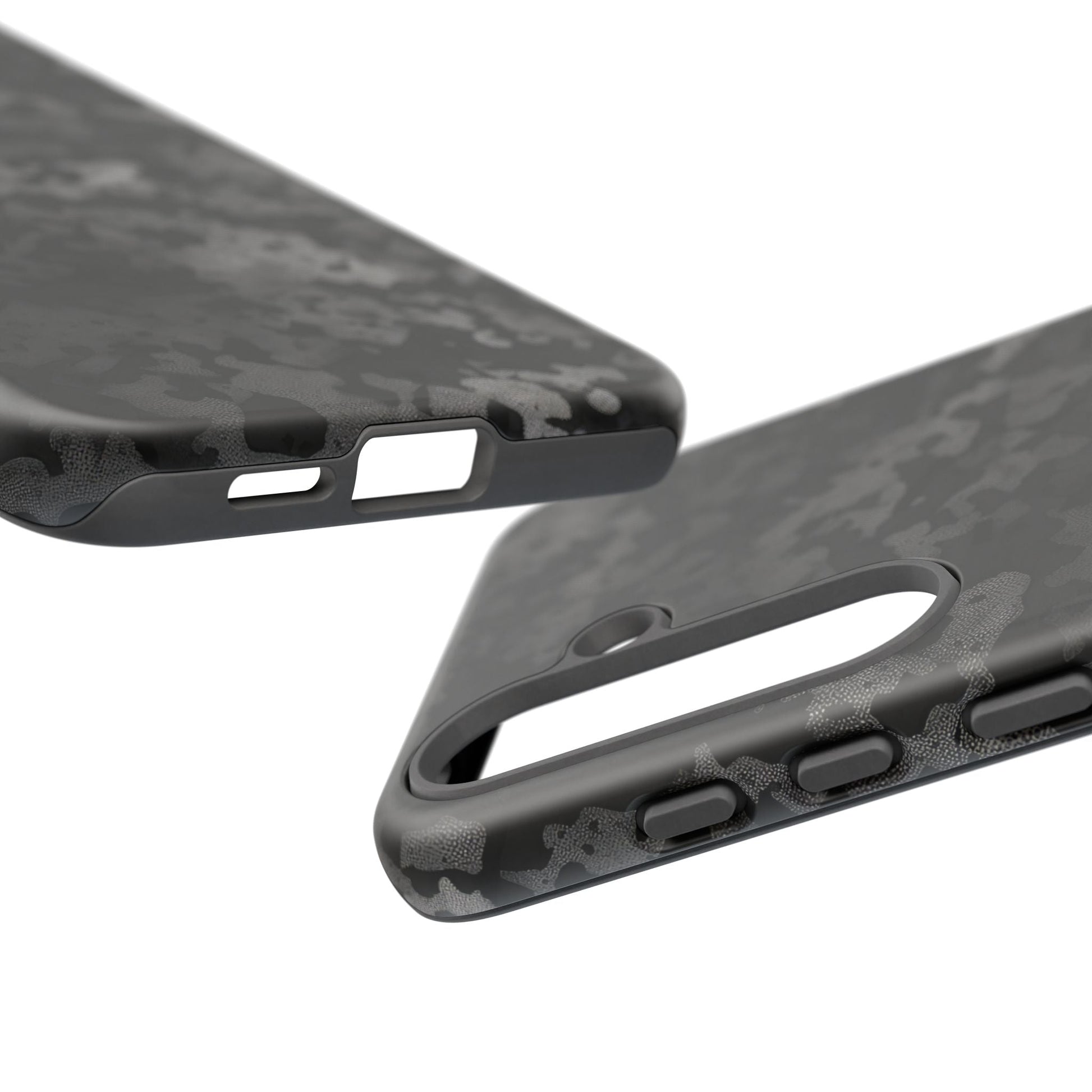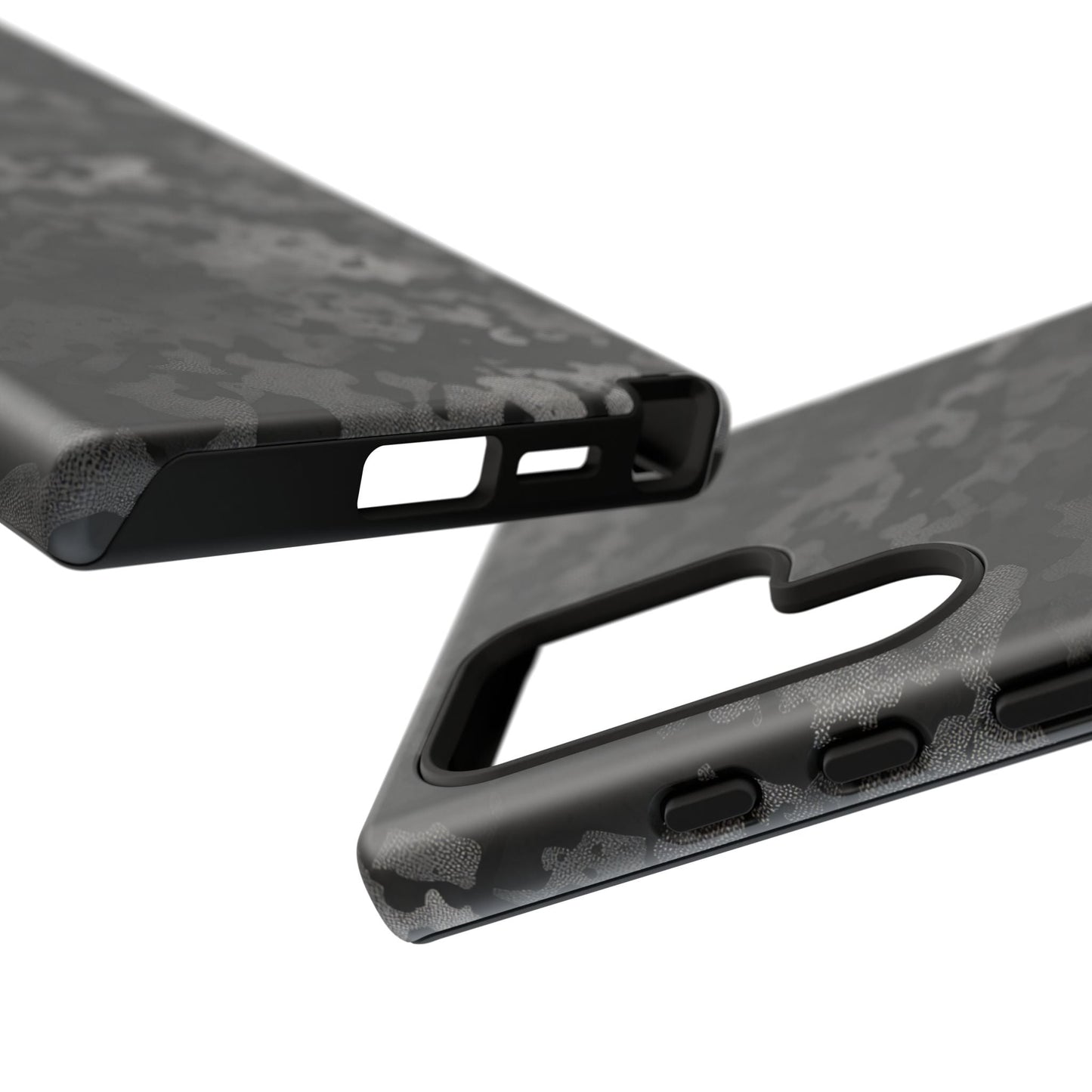 Go sleek and tactical with the Stealth Black Camo Samsung Case! Featuring a dark grayscale camouflage pattern, this case is perfect for those who love a minimalist yet rugged look. Whether you're into urban fashion or military aesthetics, this case adds a bold, edgy vibe while keeping your phone protected from drops and scratches.