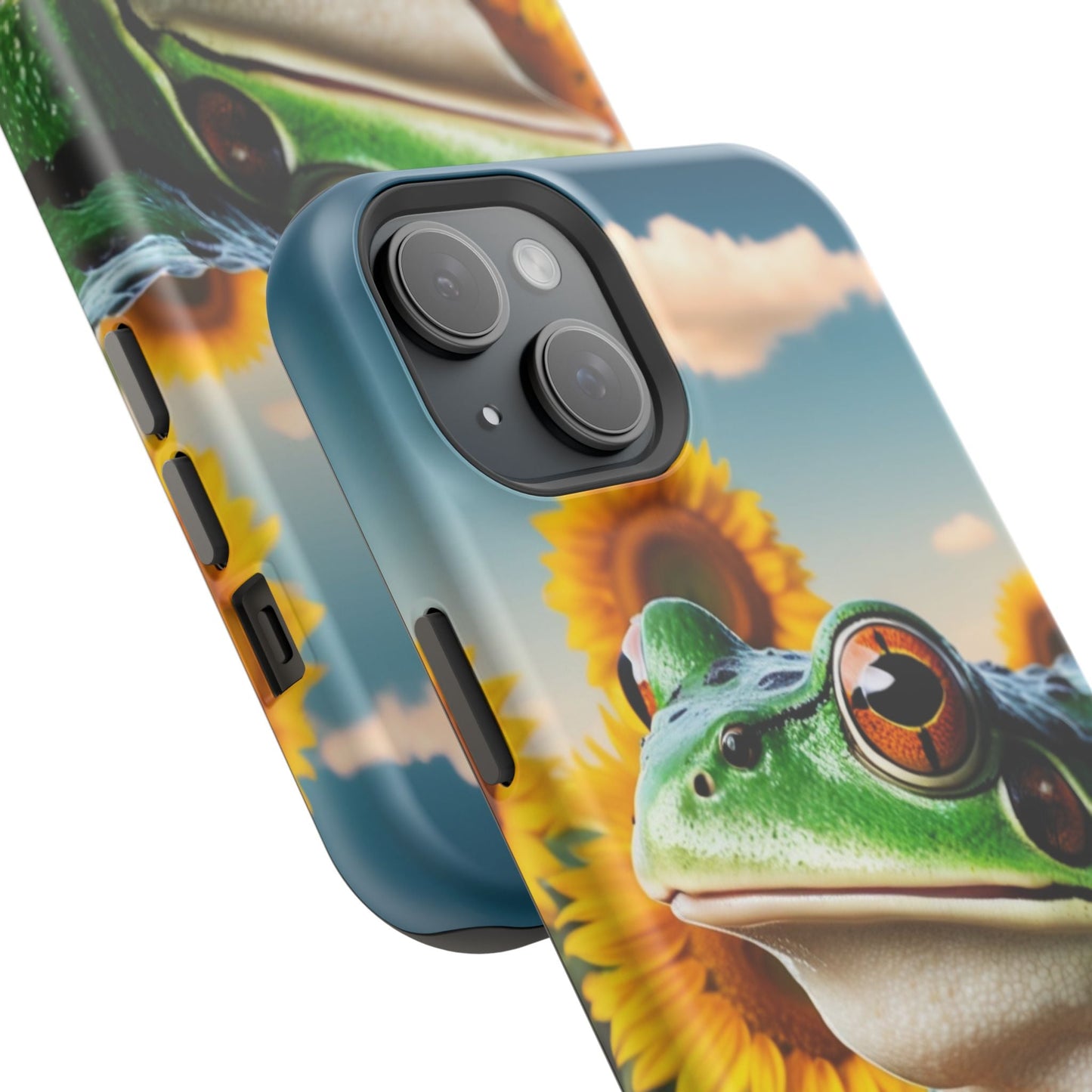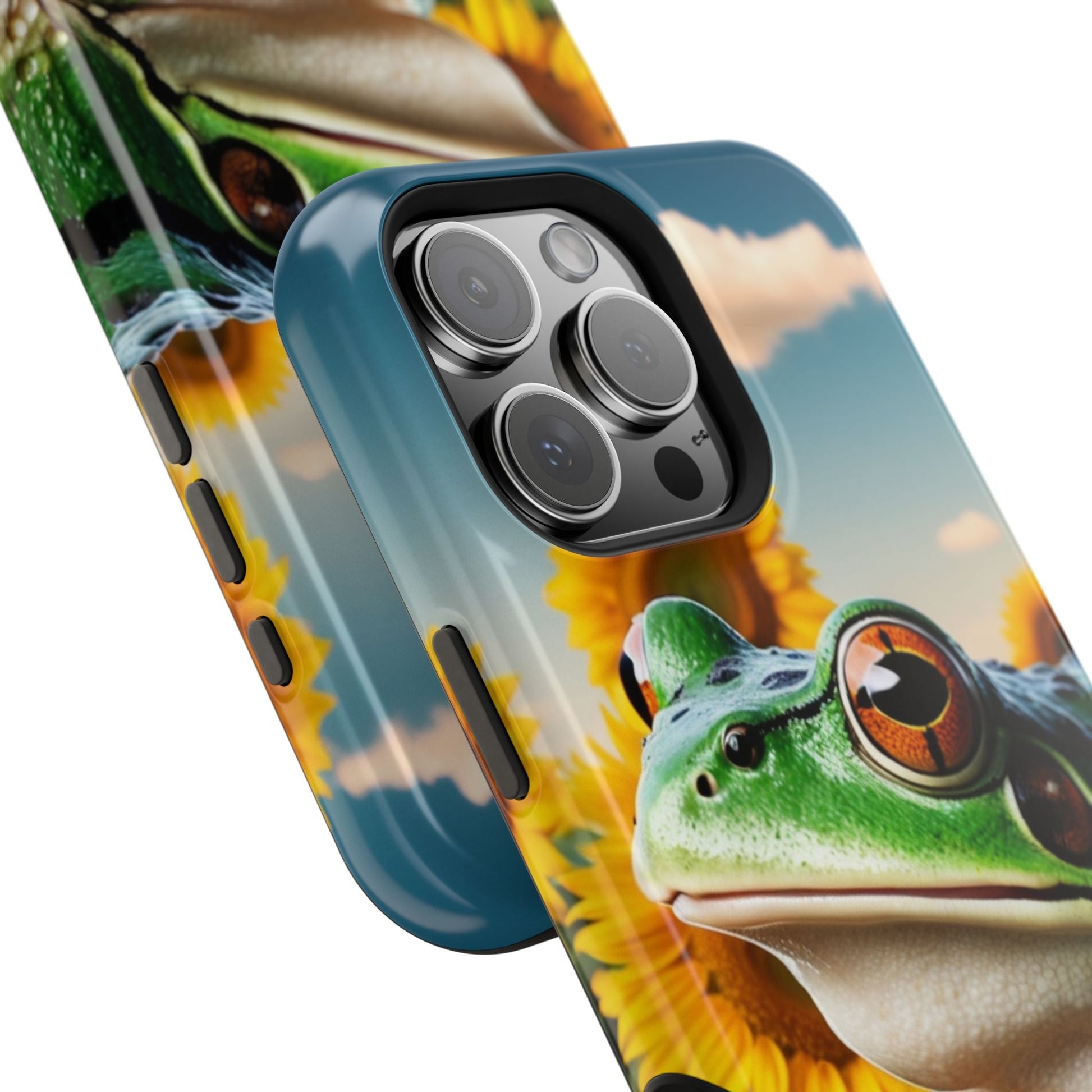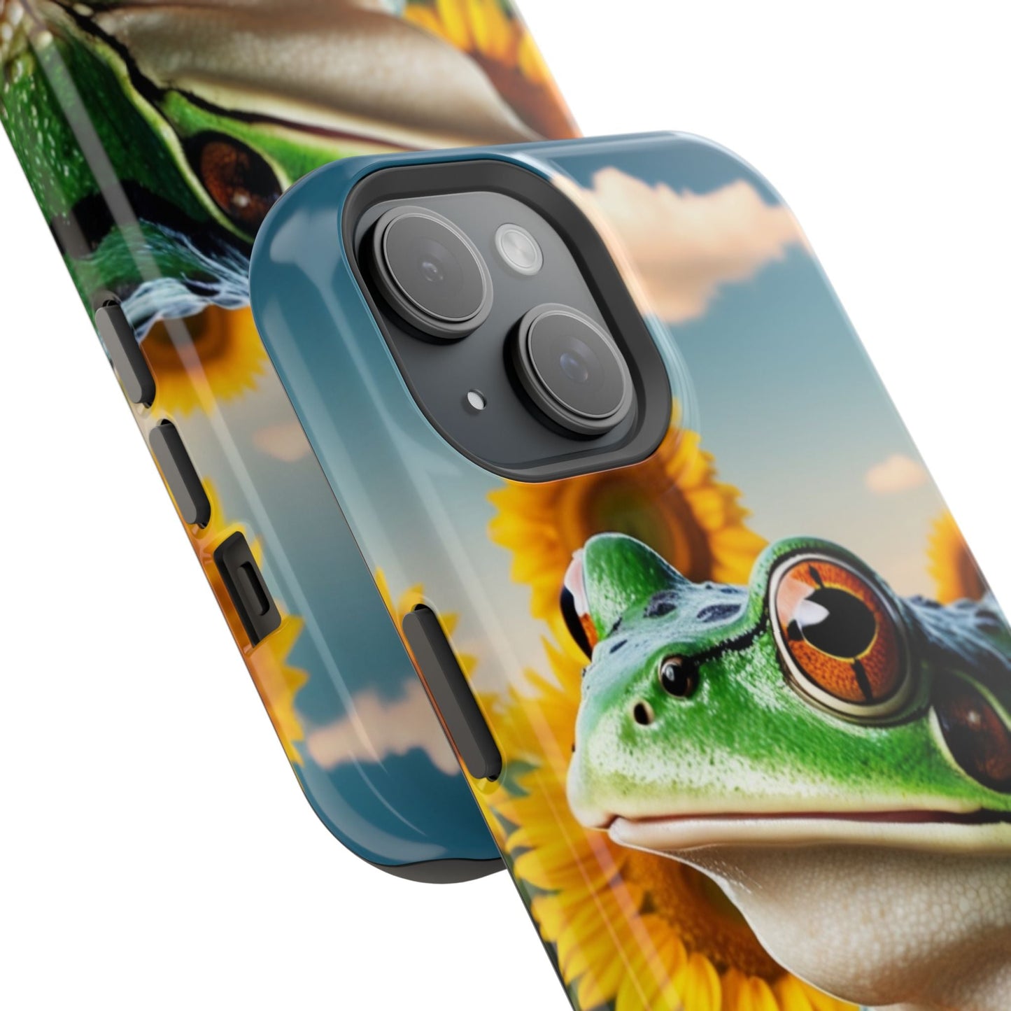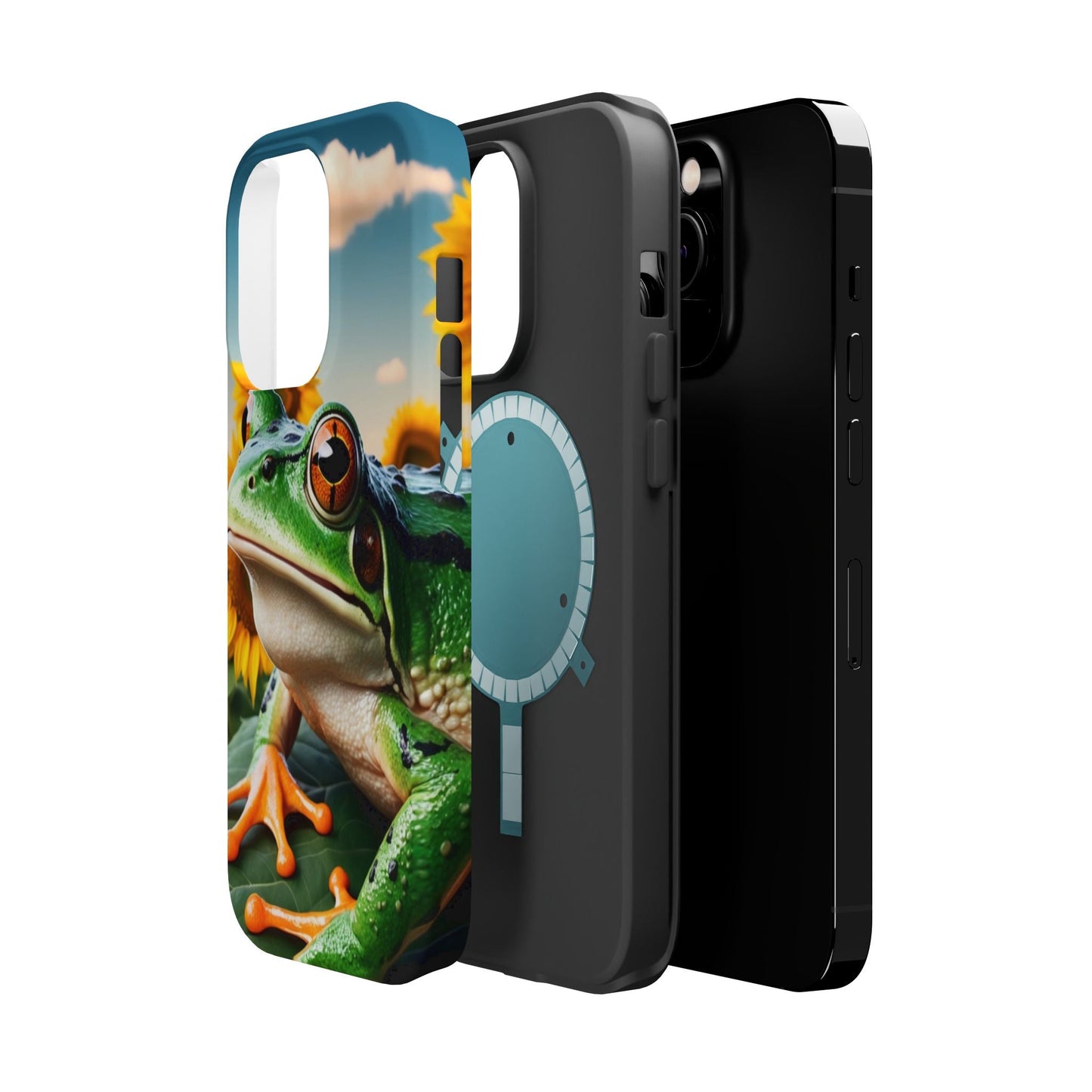 Let nature and sunshine inspire your daily vibe with the Sunflower Frog Aesthetic MagSafe iPhone Case! This beautifully detailed case showcases a lush, golden sunflower field with a realistic tree frog sitting among the leaves, bringing a whimsical yet elegant touch to your phone. Built with MagSafe-compatible magnets, it allows for fast, easy wireless charging while the shock-absorbing TPU bumper and raised edges keep your phone safe from drops and scratches.