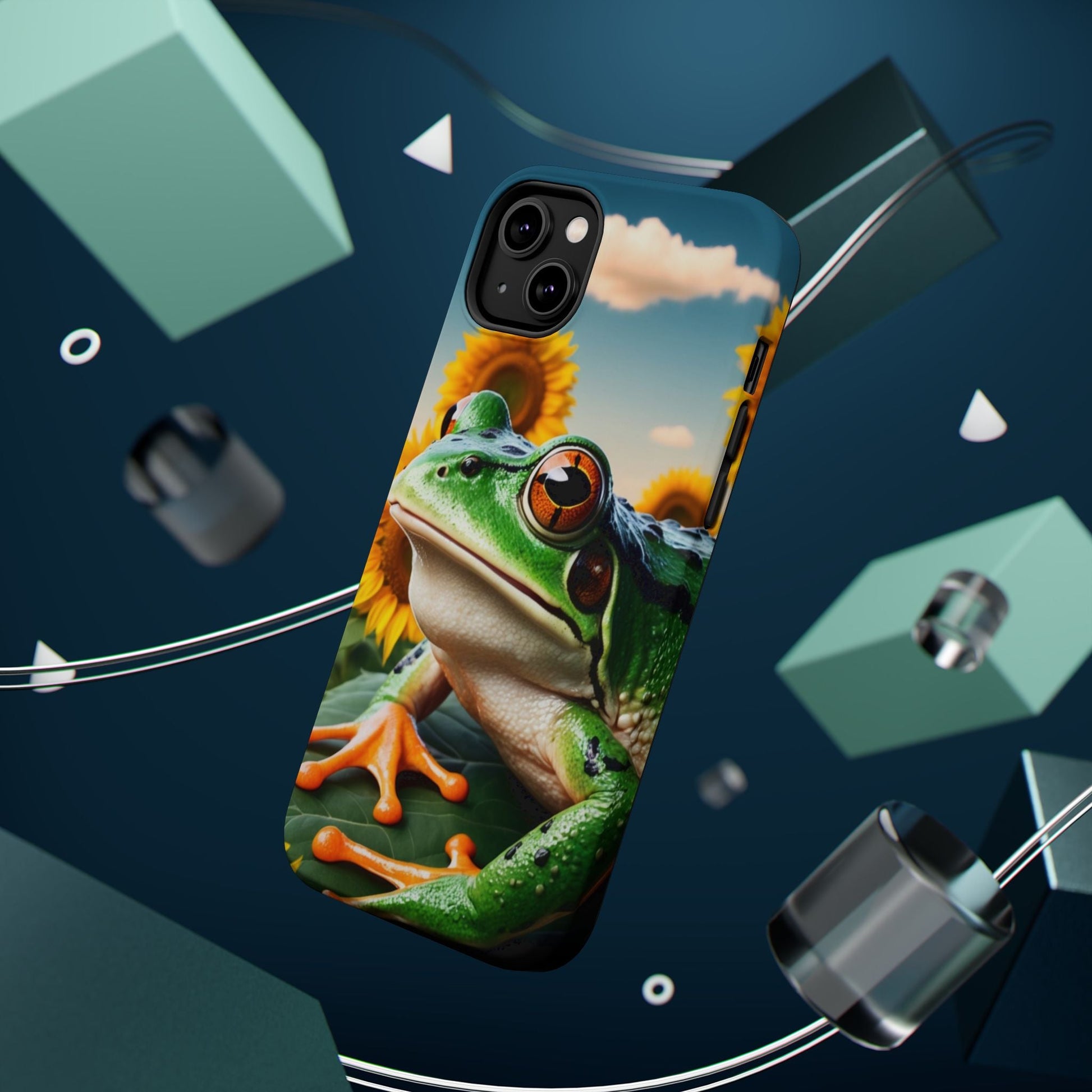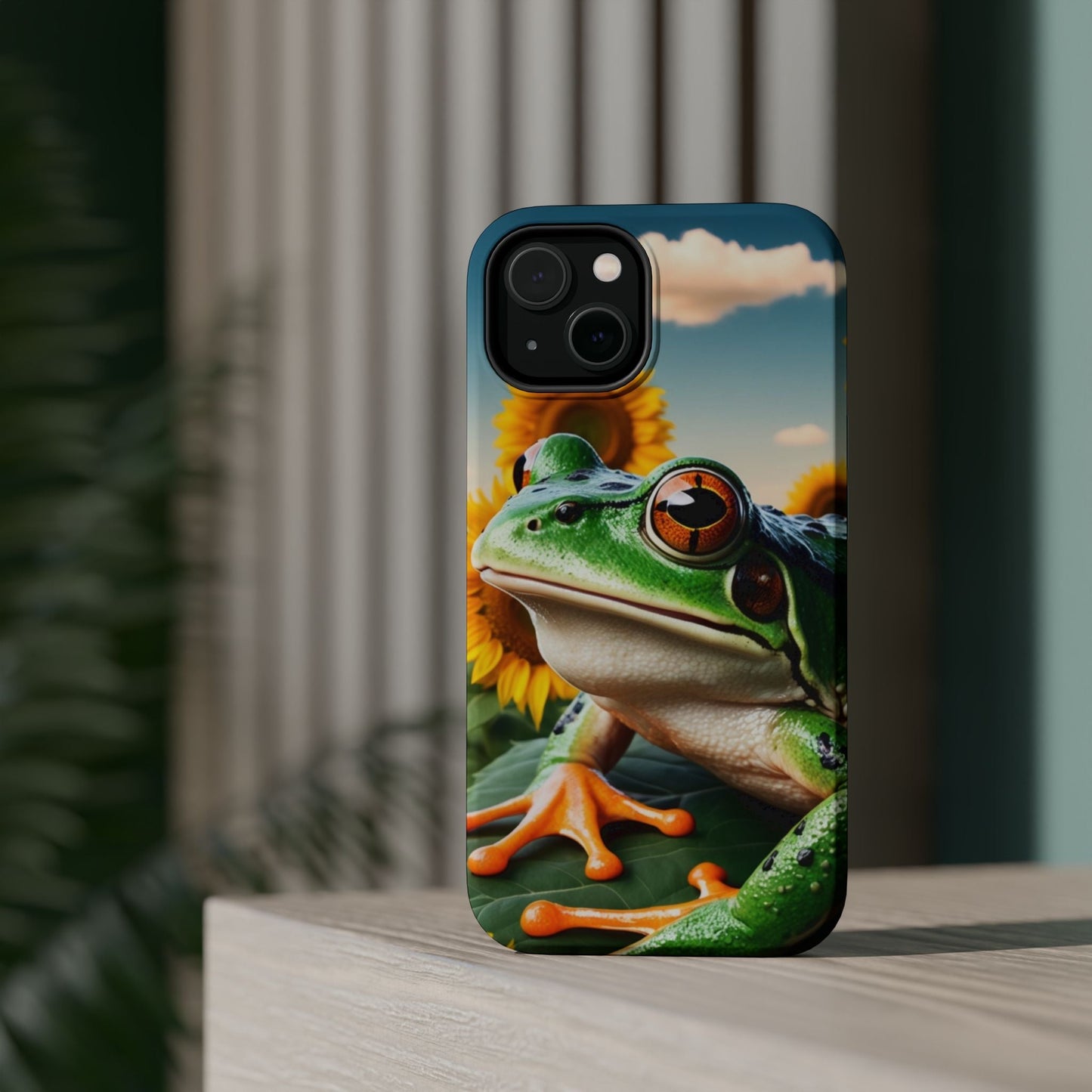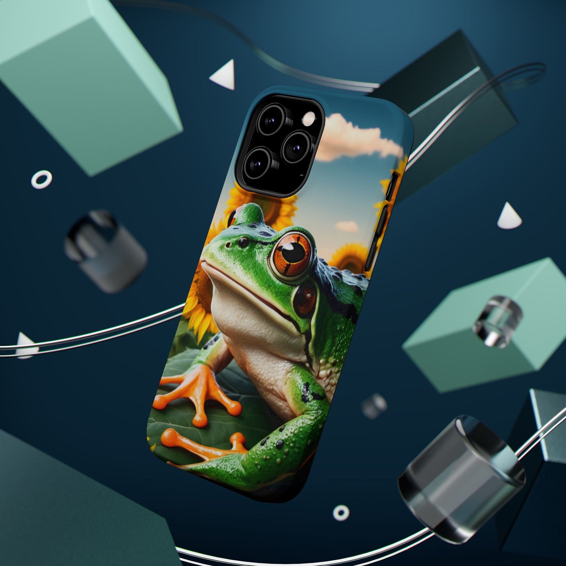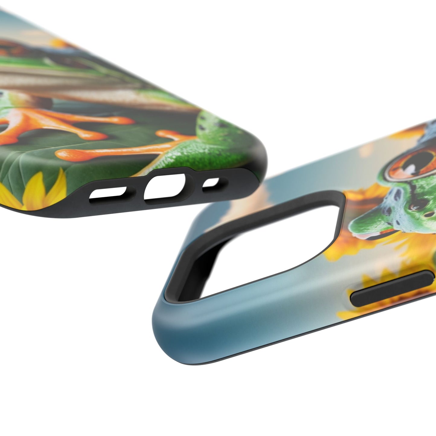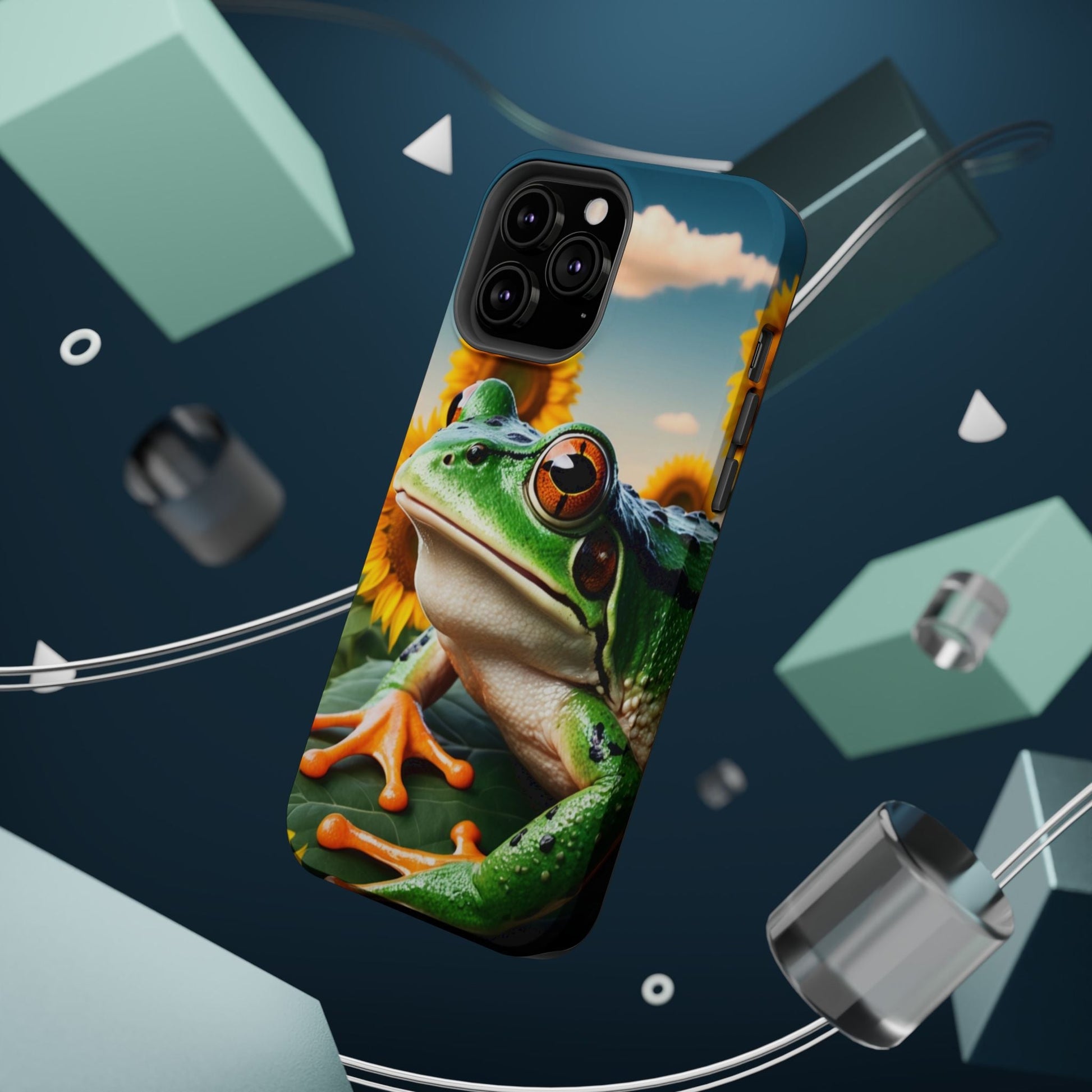 Let nature and sunshine inspire your daily vibe with the Sunflower Frog Aesthetic MagSafe iPhone Case! This beautifully detailed case showcases a lush, golden sunflower field with a realistic tree frog sitting among the leaves, bringing a whimsical yet elegant touch to your phone. Built with MagSafe-compatible magnets, it allows for fast, easy wireless charging while the shock-absorbing TPU bumper and raised edges keep your phone safe from drops and scratches.