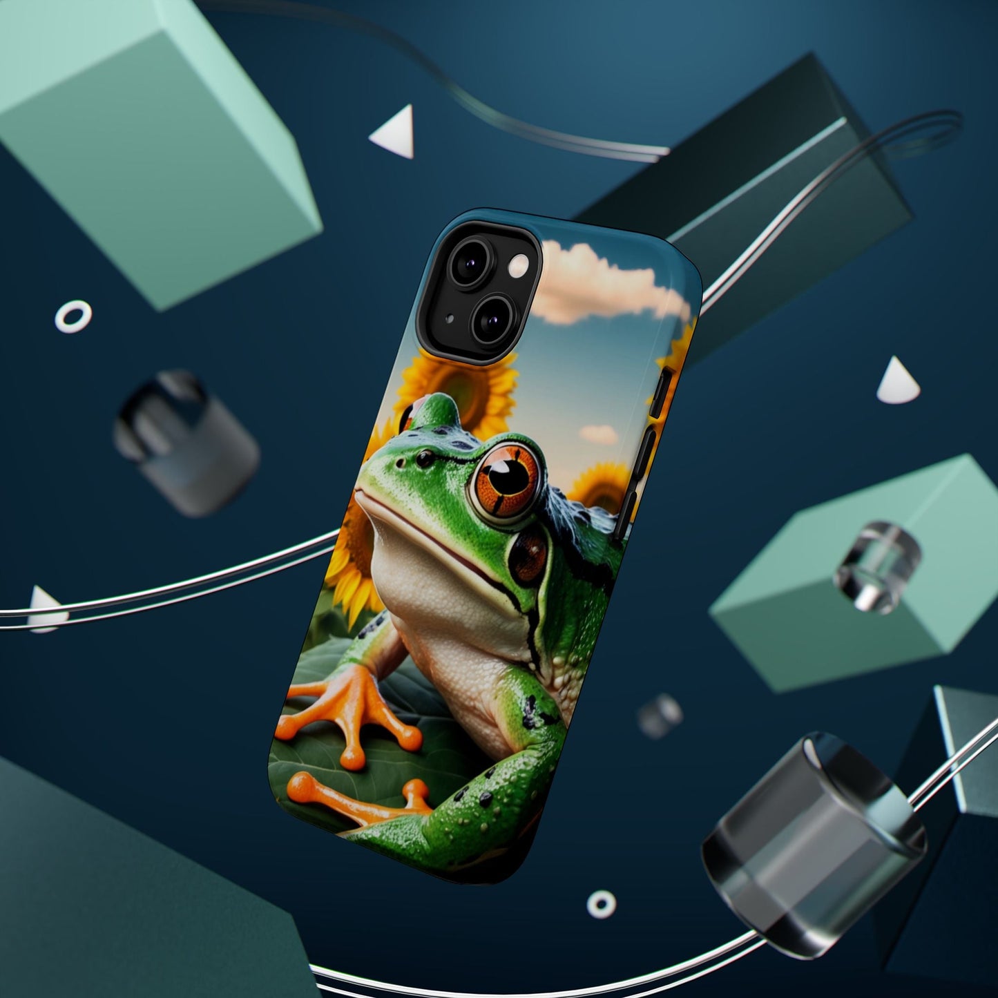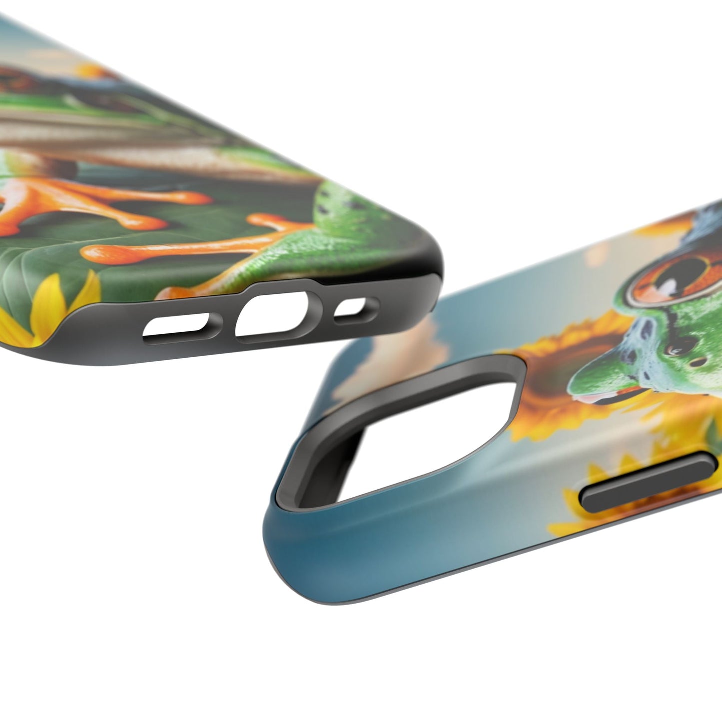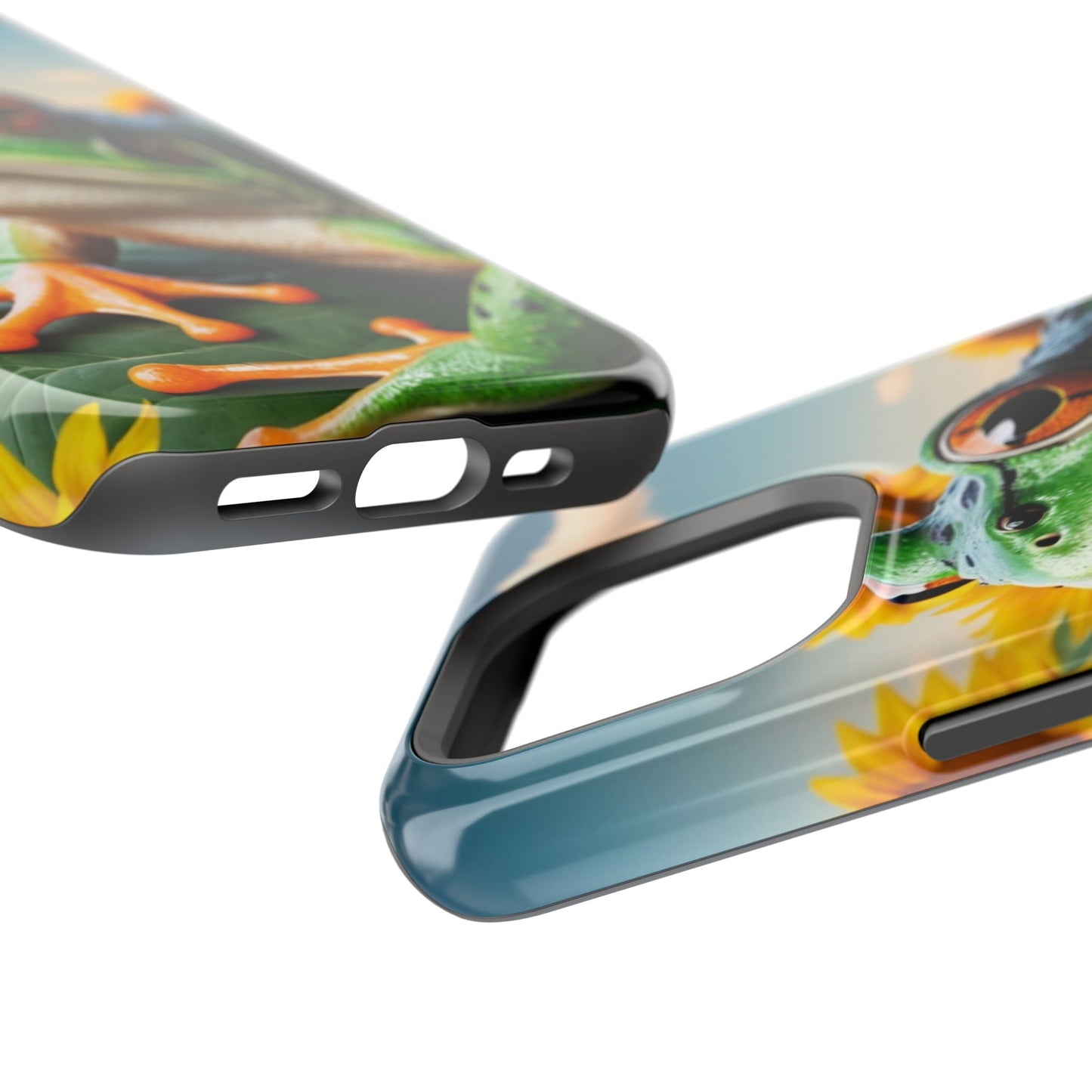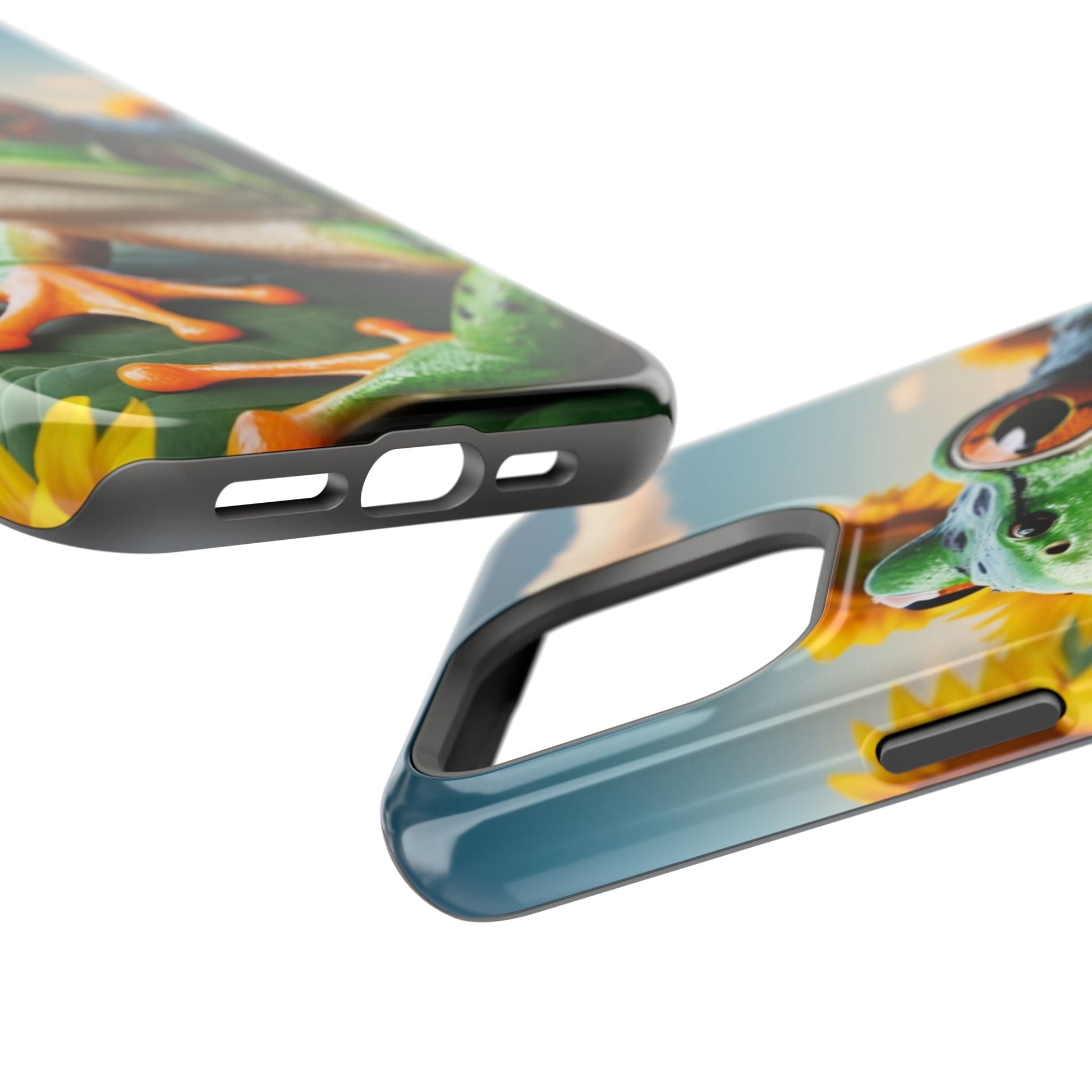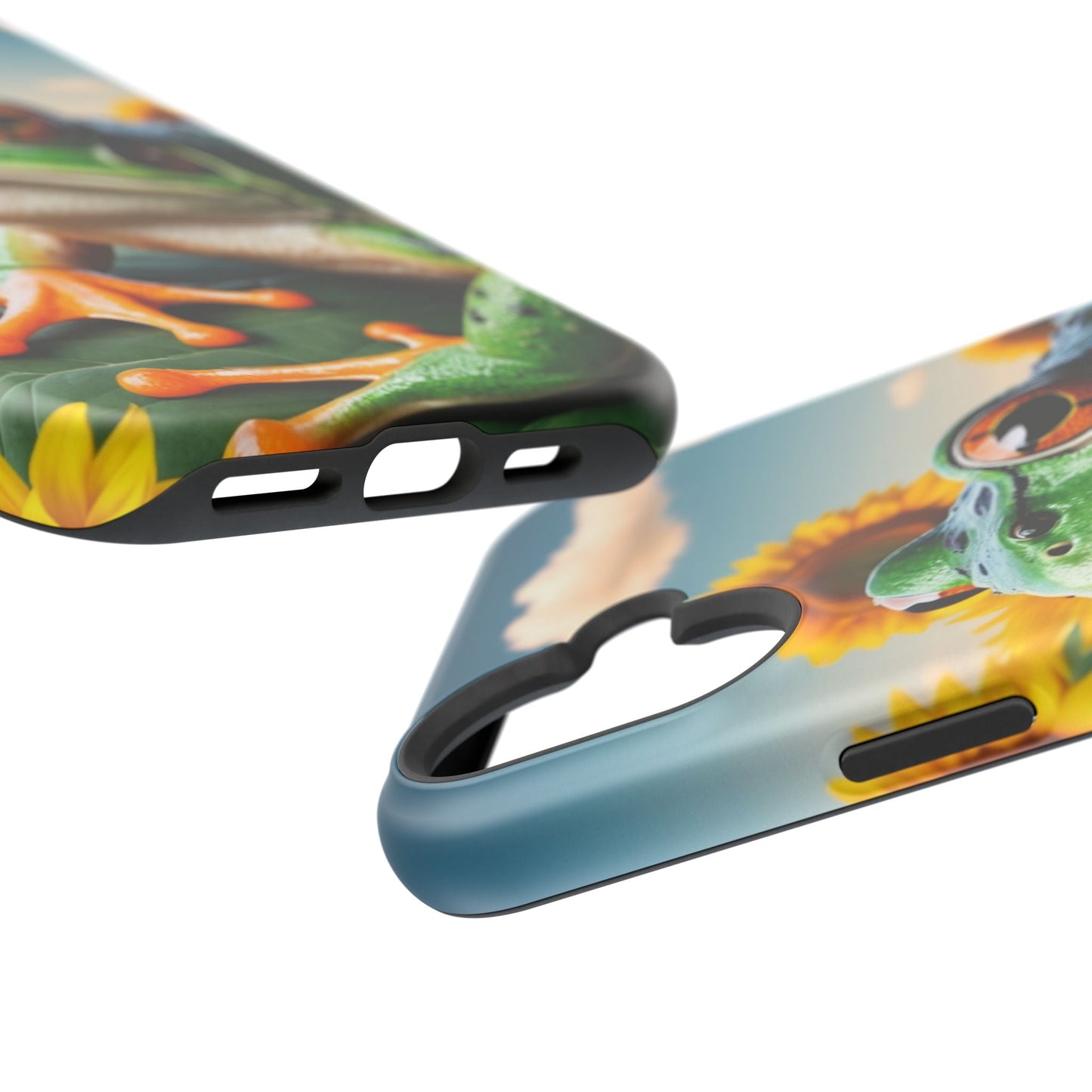 Let nature and sunshine inspire your daily vibe with the Sunflower Frog Aesthetic MagSafe iPhone Case! This beautifully detailed case showcases a lush, golden sunflower field with a realistic tree frog sitting among the leaves, bringing a whimsical yet elegant touch to your phone. Built with MagSafe-compatible magnets, it allows for fast, easy wireless charging while the shock-absorbing TPU bumper and raised edges keep your phone safe from drops and scratches.