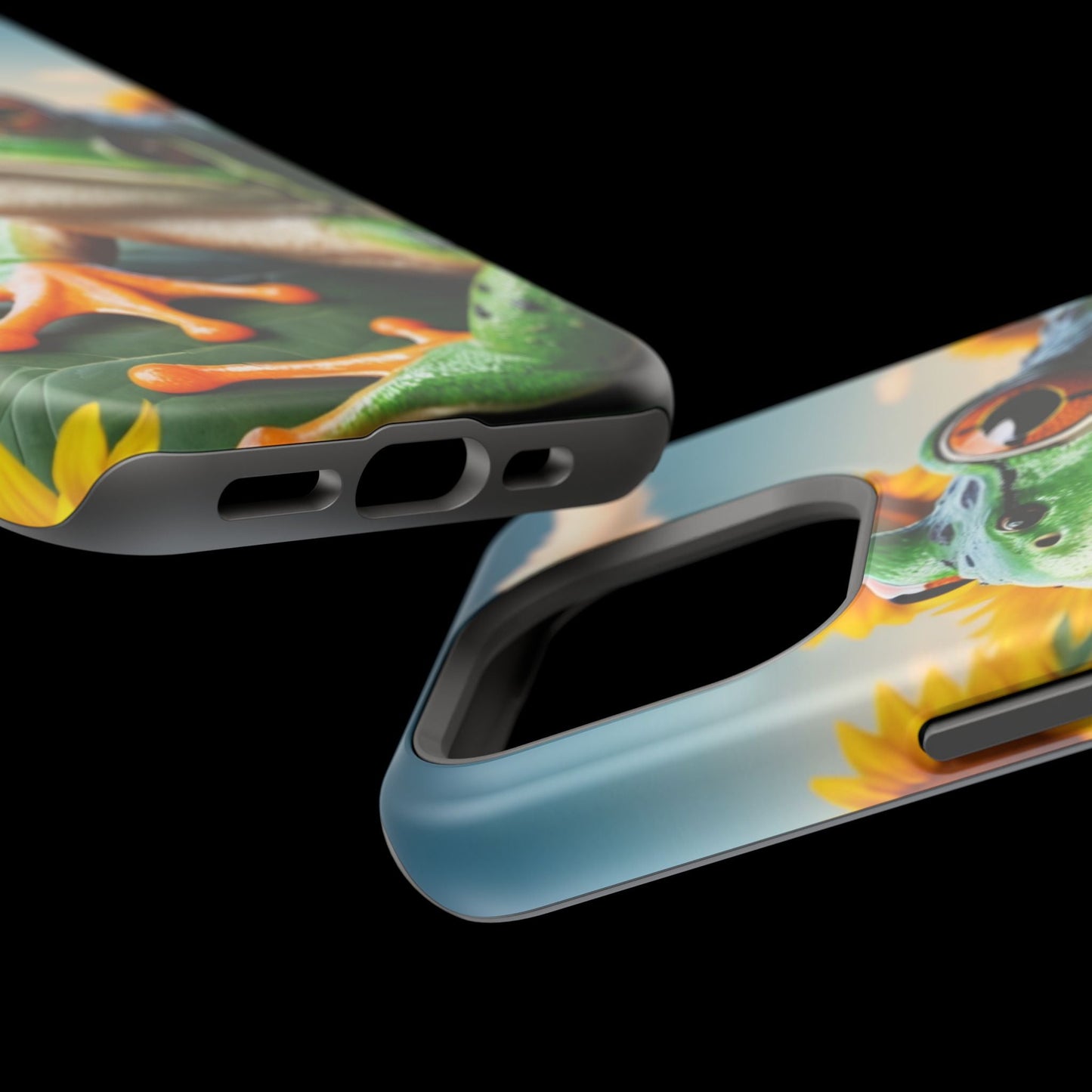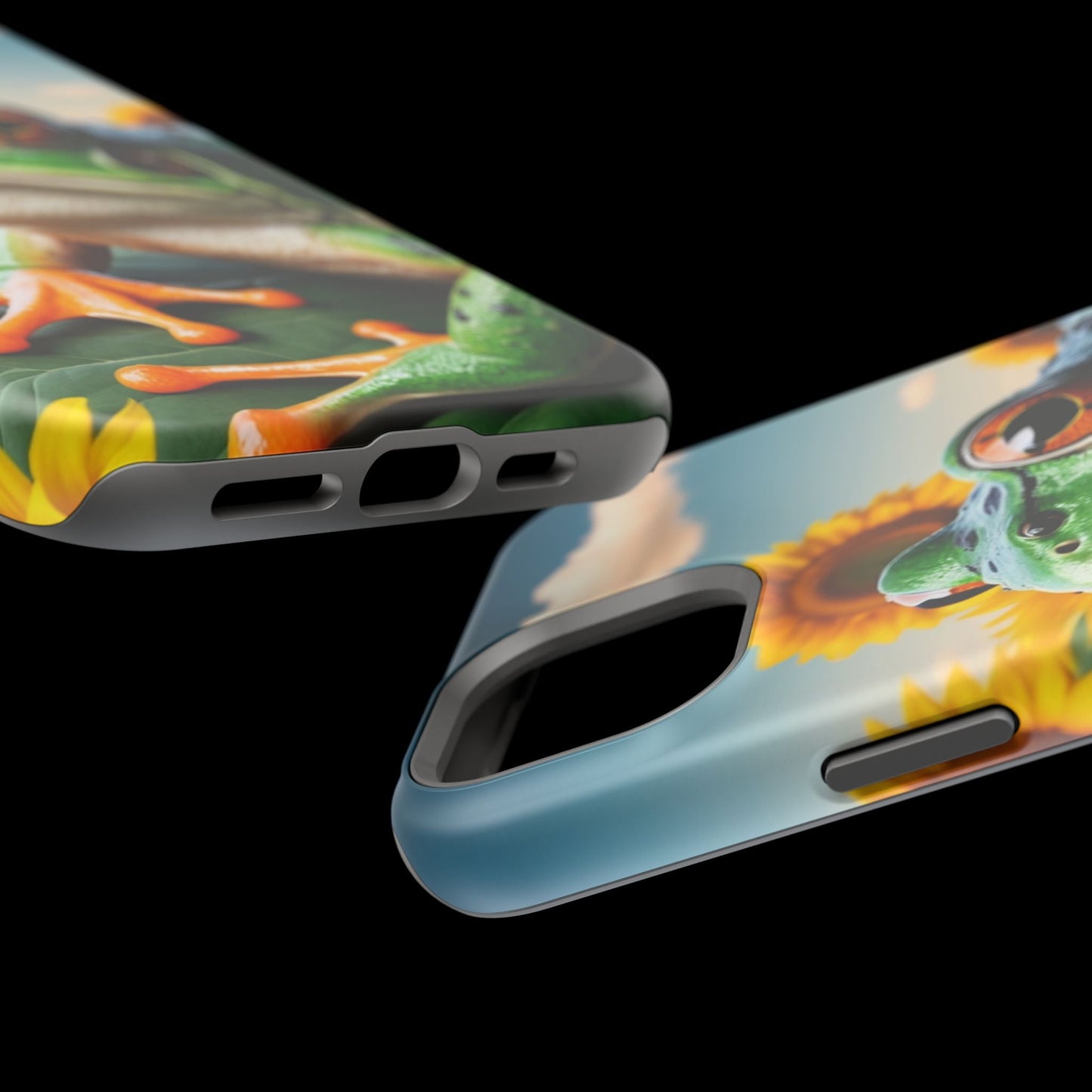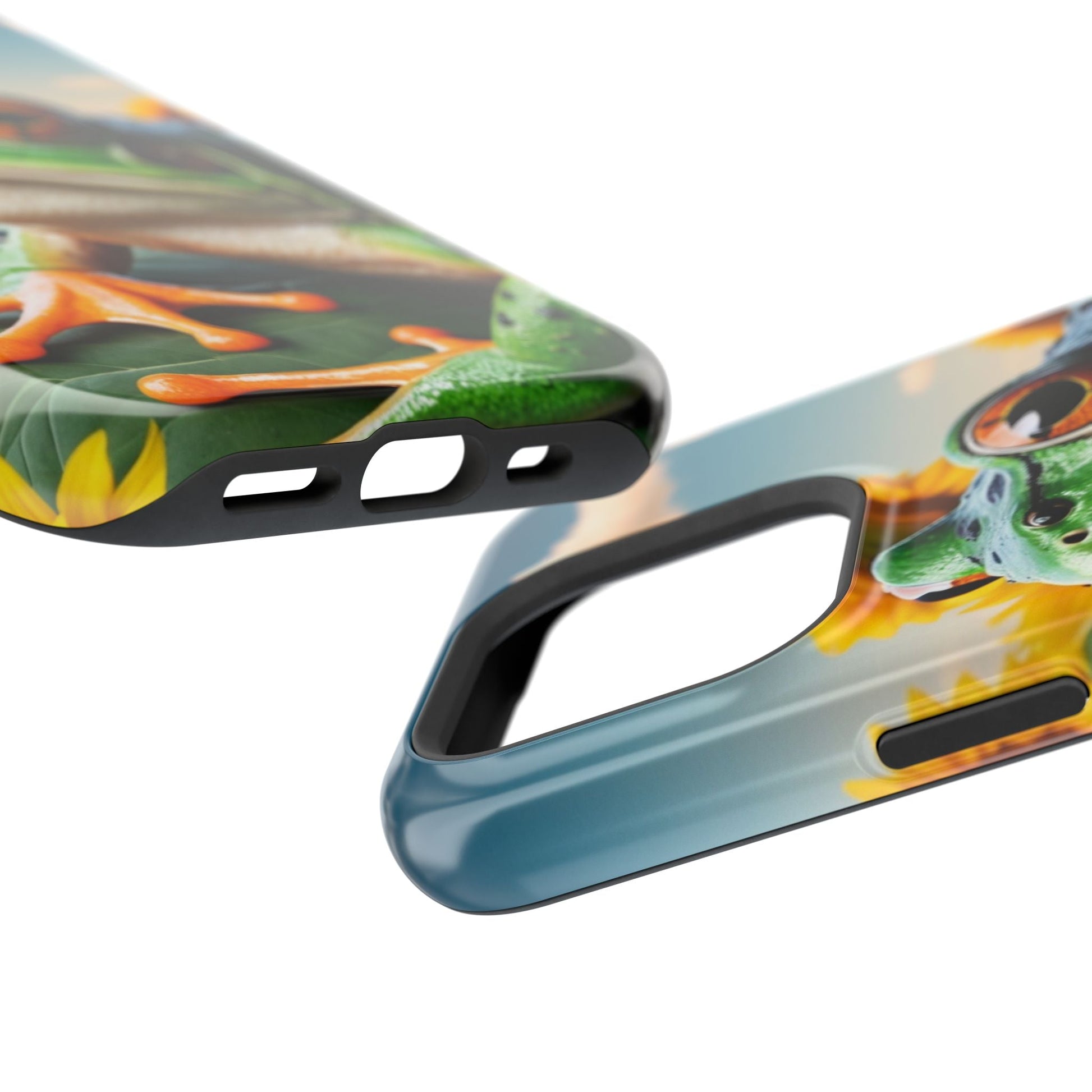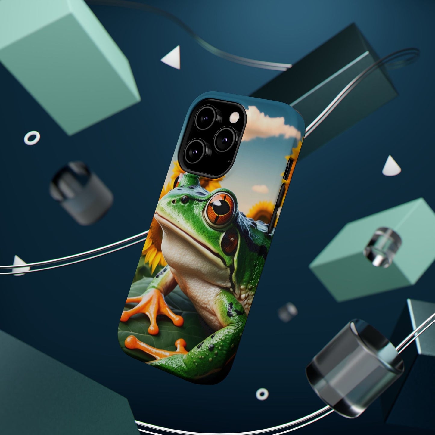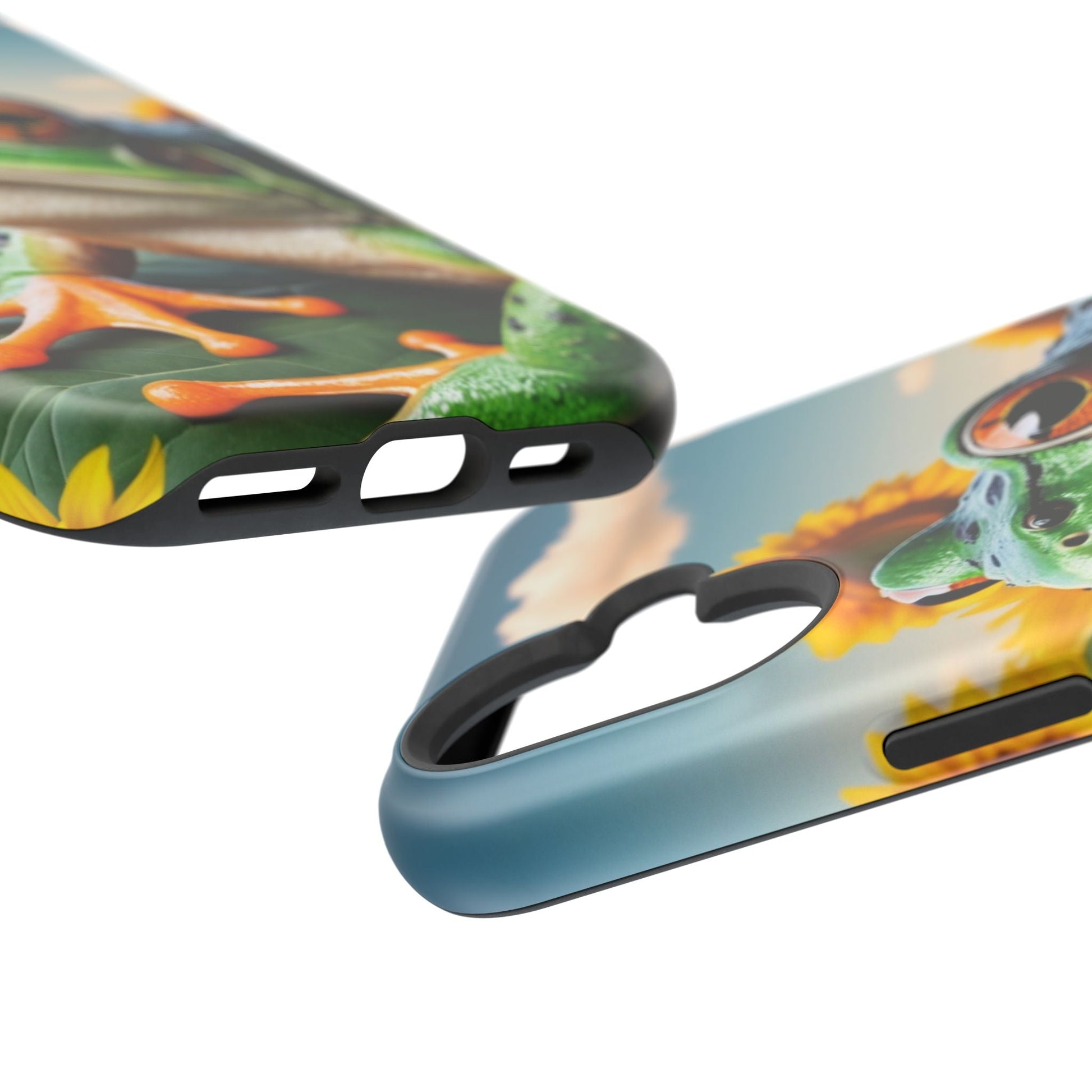 Let nature and sunshine inspire your daily vibe with the Sunflower Frog Aesthetic MagSafe iPhone Case! This beautifully detailed case showcases a lush, golden sunflower field with a realistic tree frog sitting among the leaves, bringing a whimsical yet elegant touch to your phone. Built with MagSafe-compatible magnets, it allows for fast, easy wireless charging while the shock-absorbing TPU bumper and raised edges keep your phone safe from drops and scratches.