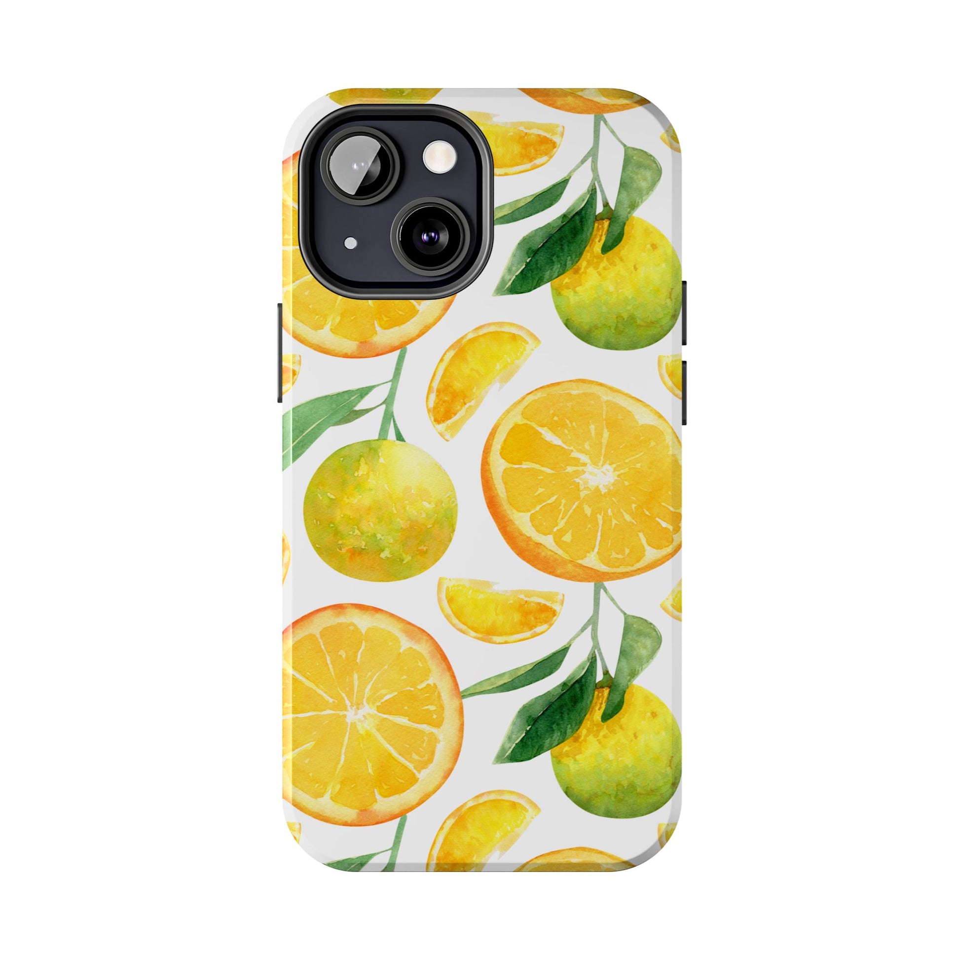 Sunny Citrus Grove Tough iPhone Case – Watercolor Orange Design, Dual-Layer Protection