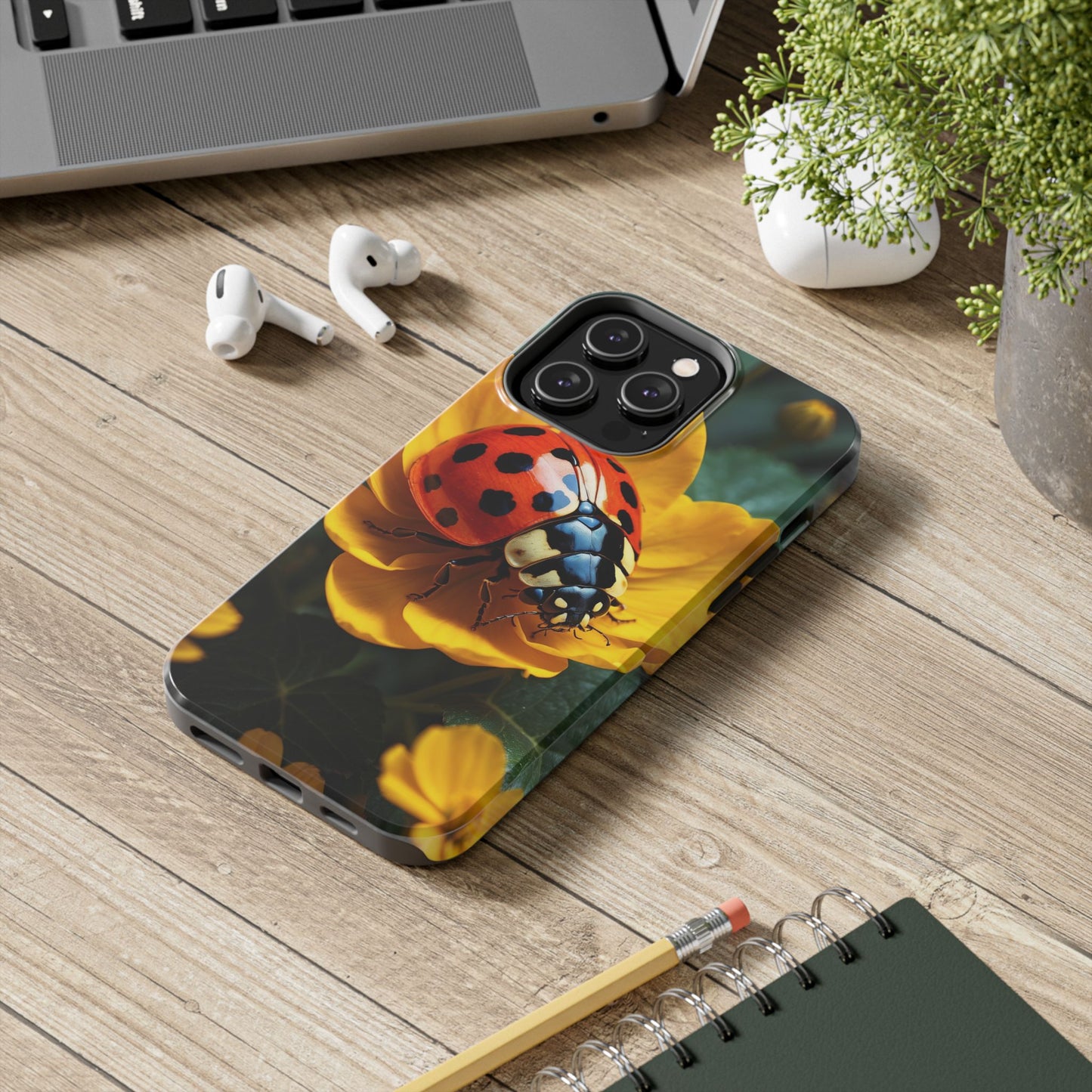 Bring cheerful vibes to your phone with the Sunny Garden Bug Delight iPhone Case. Featuring a gorgeous yellow floral scene with a charming ladybug detail, this case is a perfect mix of style and practicality. Built for durability, this case shields your iPhone from everyday accidents while sho...