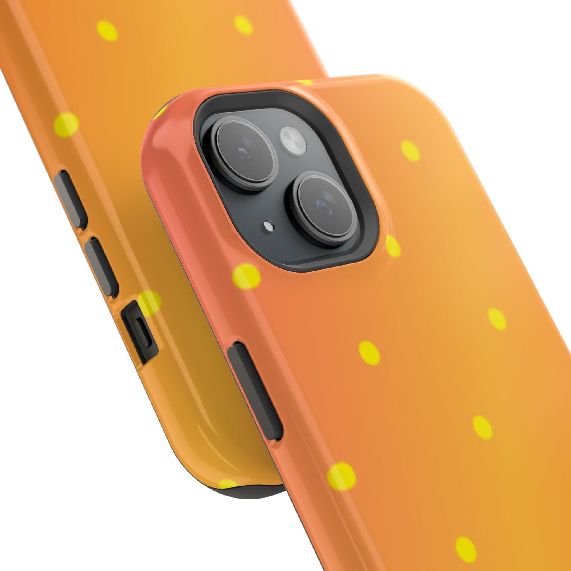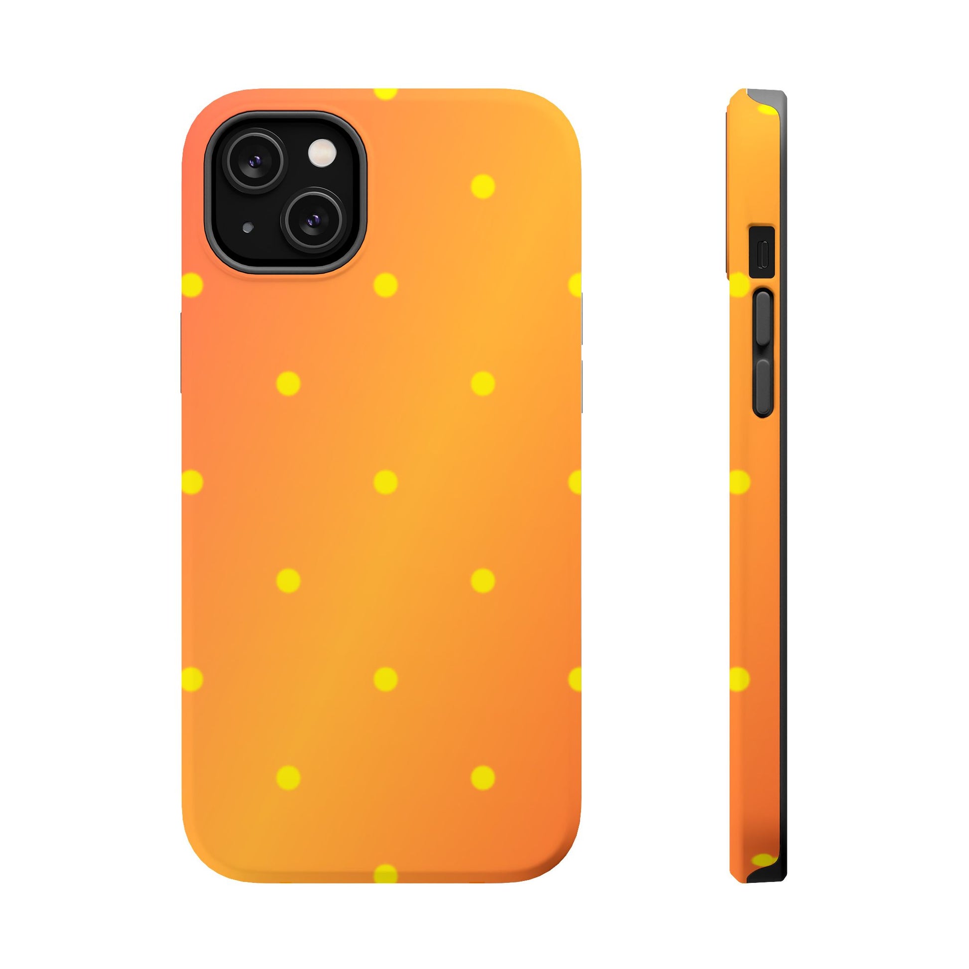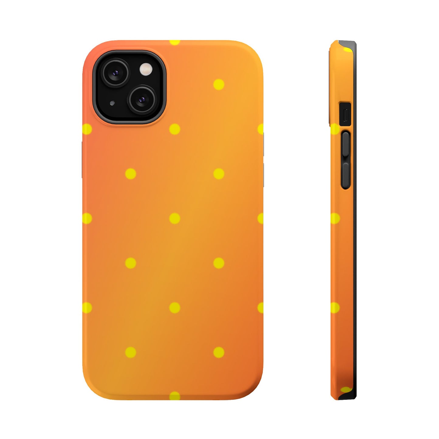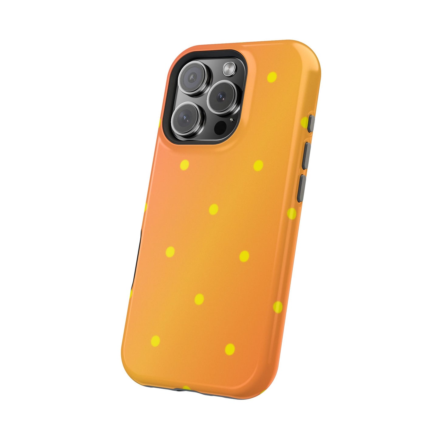 Brighten your day with our Sunset Gradient Polka Dots MagSafe iPhone Case, designed to add a burst of vibrant color to your phone. This case features a lively gradient blend of warm oranges, yellows, and hints of pink, creating a stunning sunset effect. Accentuated by playful yellow polka dots, it’s perfect for those who love a cheerful, retro-inspired vibe. Built with dual-layer protection, this case keeps your phone safe from bumps and scratches while looking effortlessly stylish.
