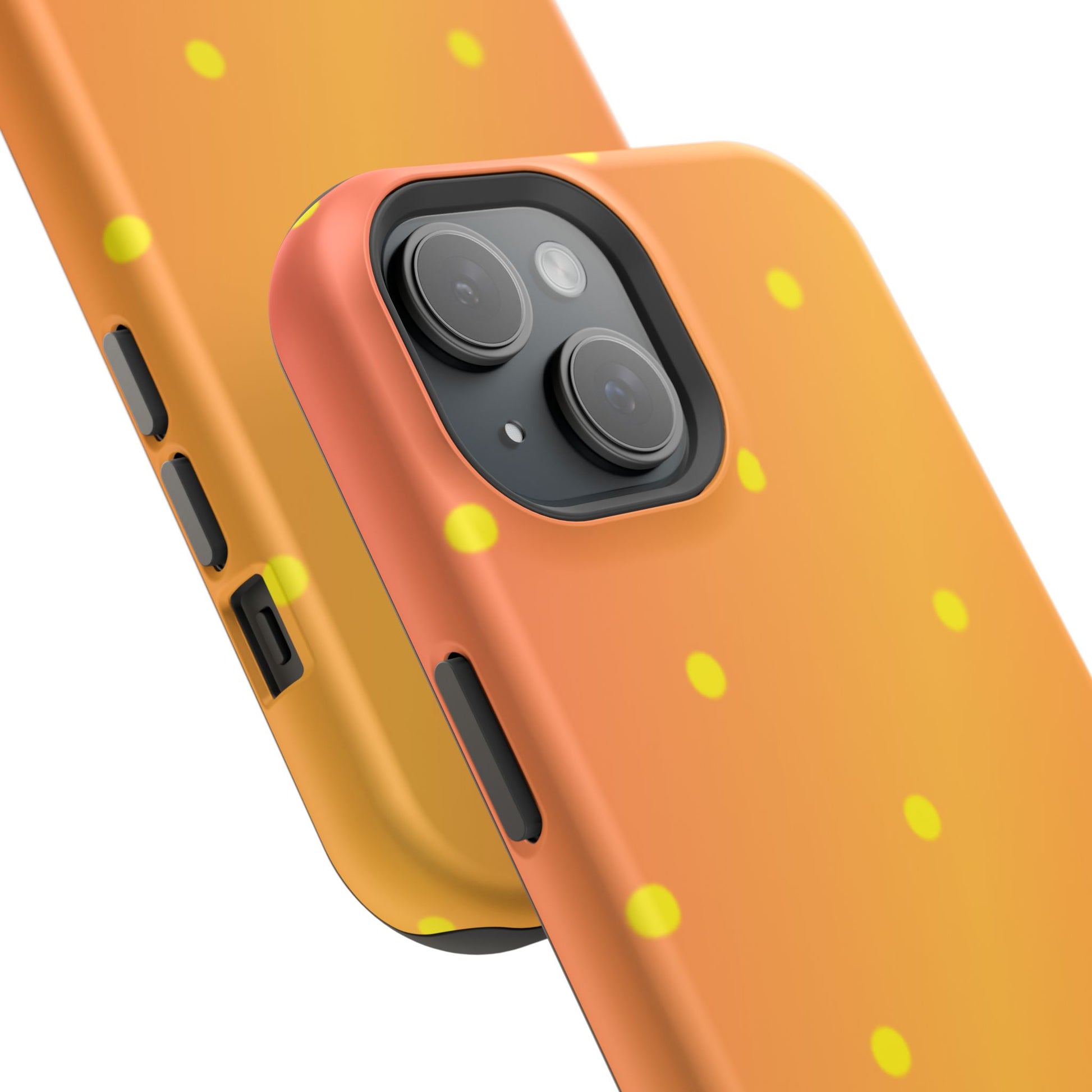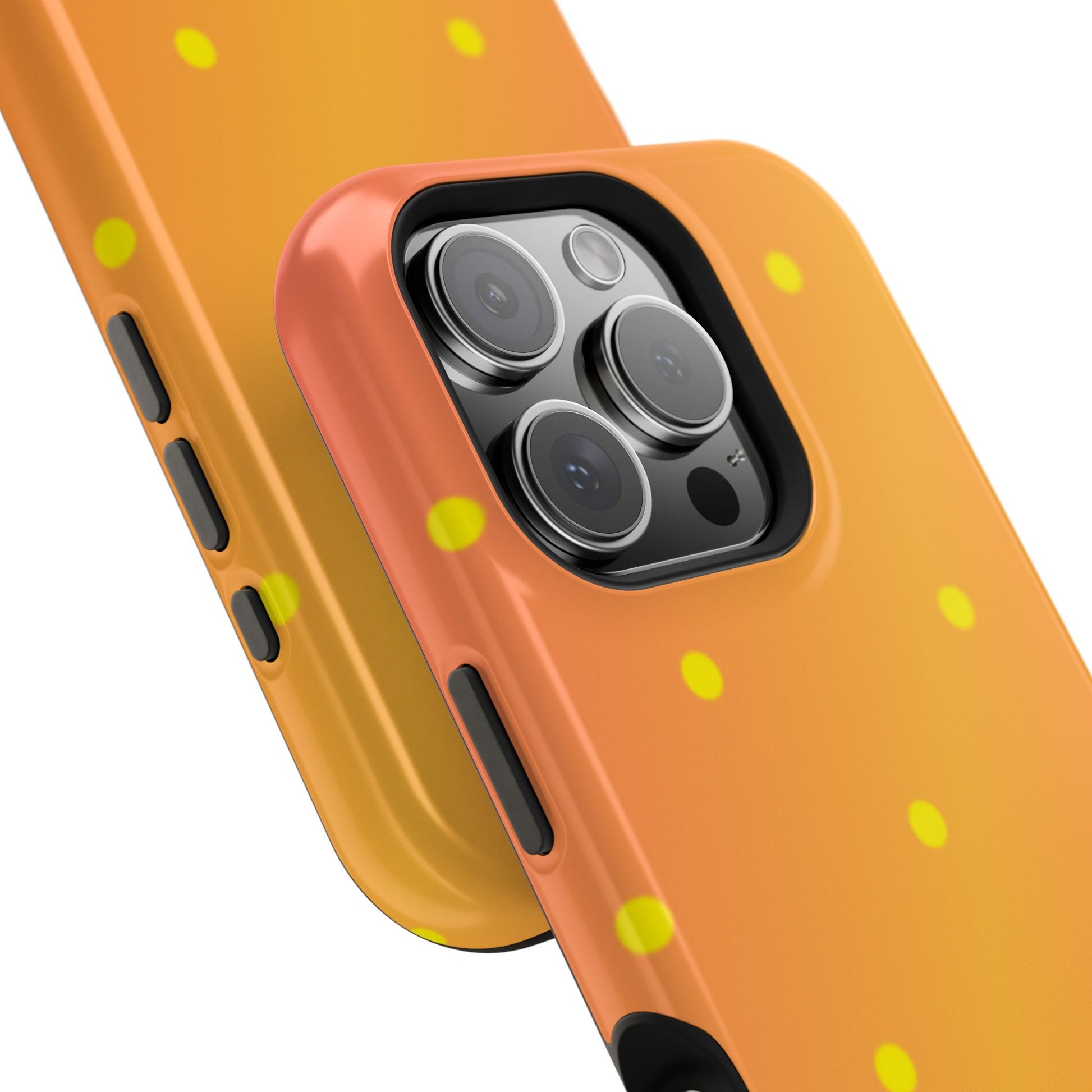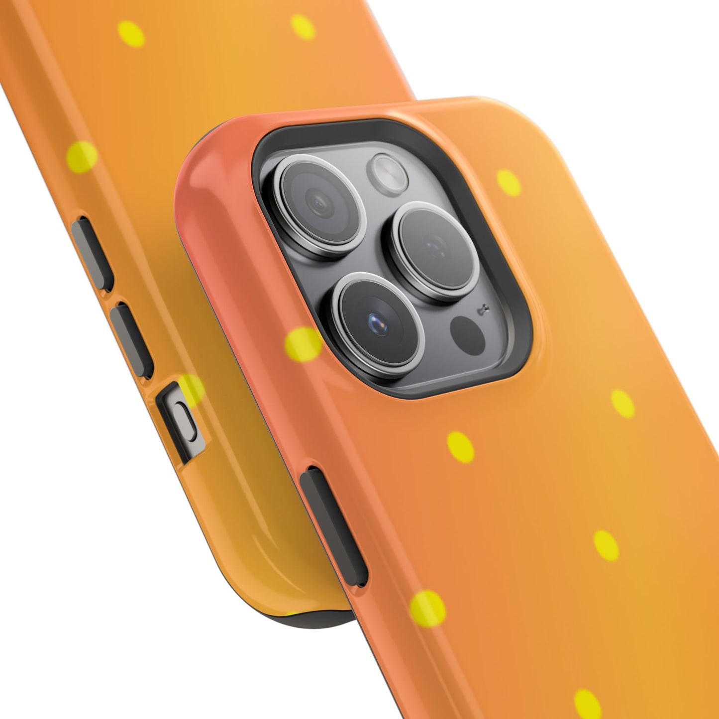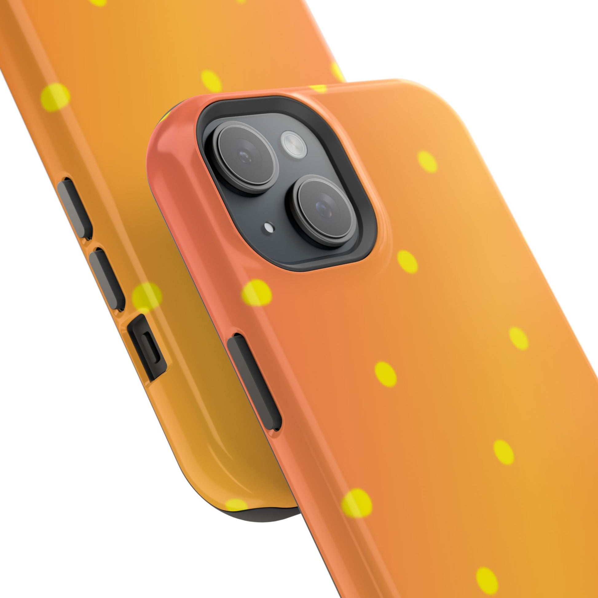 Brighten your day with our Sunset Gradient Polka Dots MagSafe iPhone Case, designed to add a burst of vibrant color to your phone. This case features a lively gradient blend of warm oranges, yellows, and hints of pink, creating a stunning sunset effect. Accentuated by playful yellow polka dots, it’s perfect for those who love a cheerful, retro-inspired vibe. Built with dual-layer protection, this case keeps your phone safe from bumps and scratches while looking effortlessly stylish.