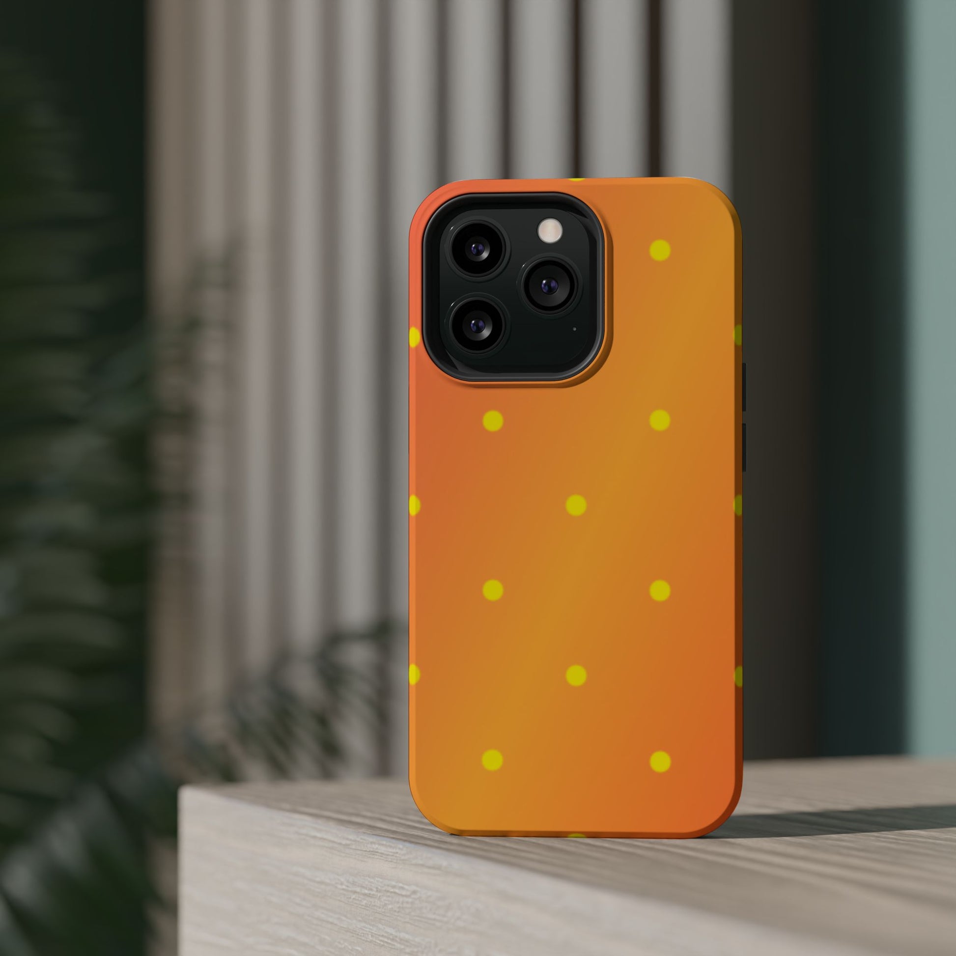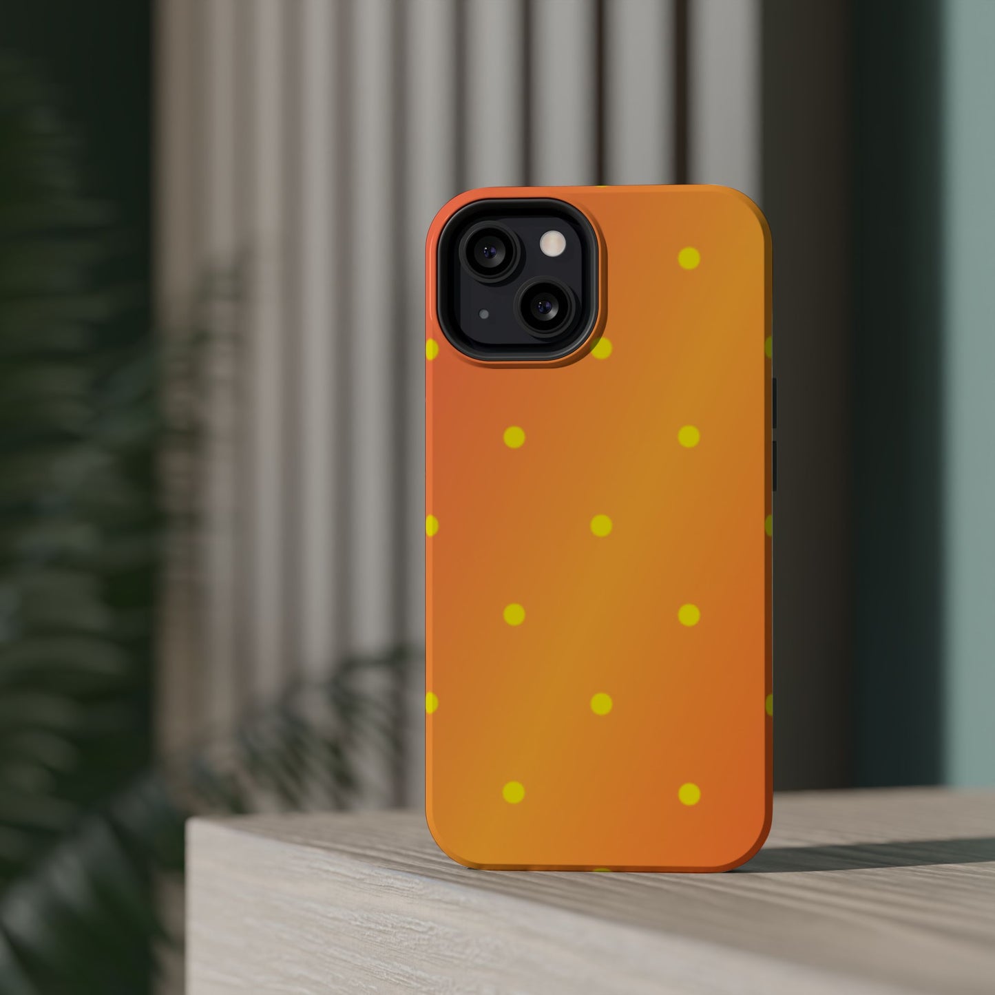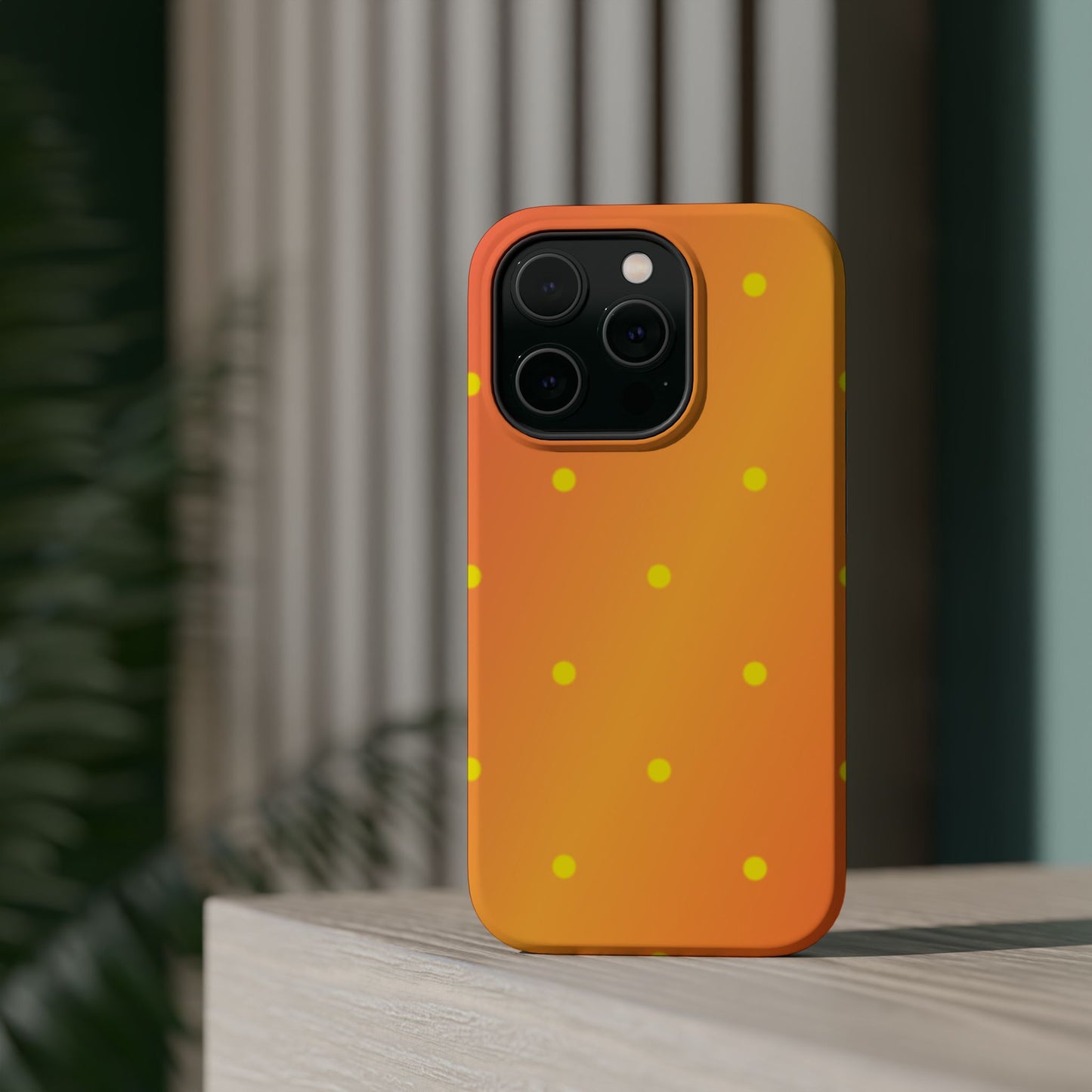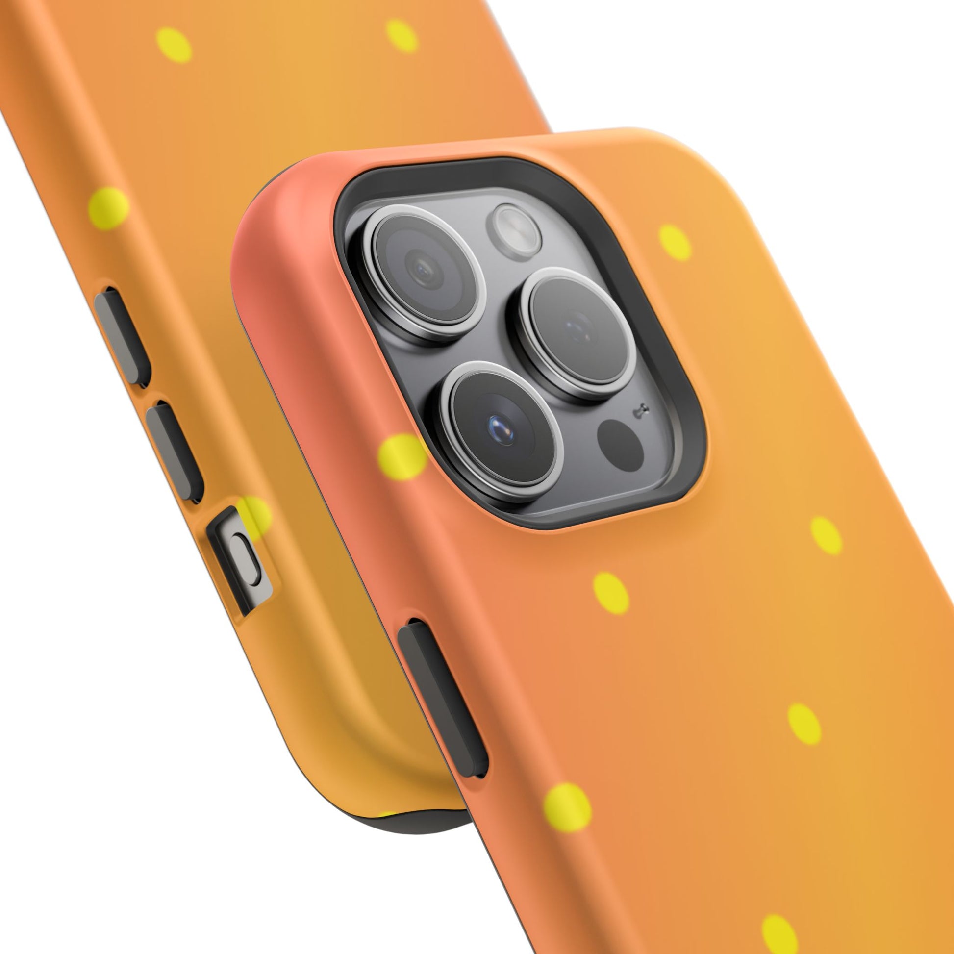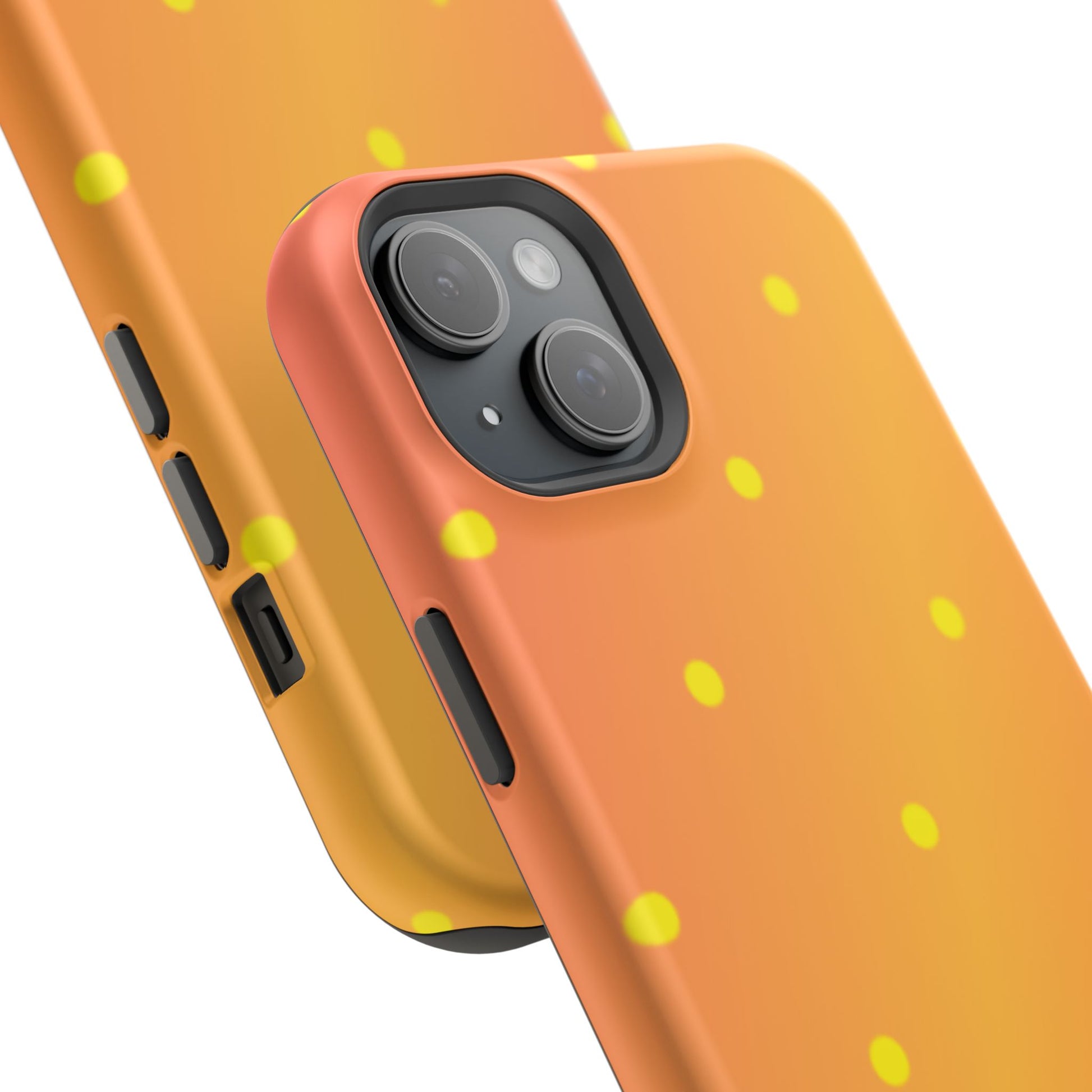 Brighten your day with our Sunset Gradient Polka Dots MagSafe iPhone Case, designed to add a burst of vibrant color to your phone. This case features a lively gradient blend of warm oranges, yellows, and hints of pink, creating a stunning sunset effect. Accentuated by playful yellow polka dots, it’s perfect for those who love a cheerful, retro-inspired vibe. Built with dual-layer protection, this case keeps your phone safe from bumps and scratches while looking effortlessly stylish.