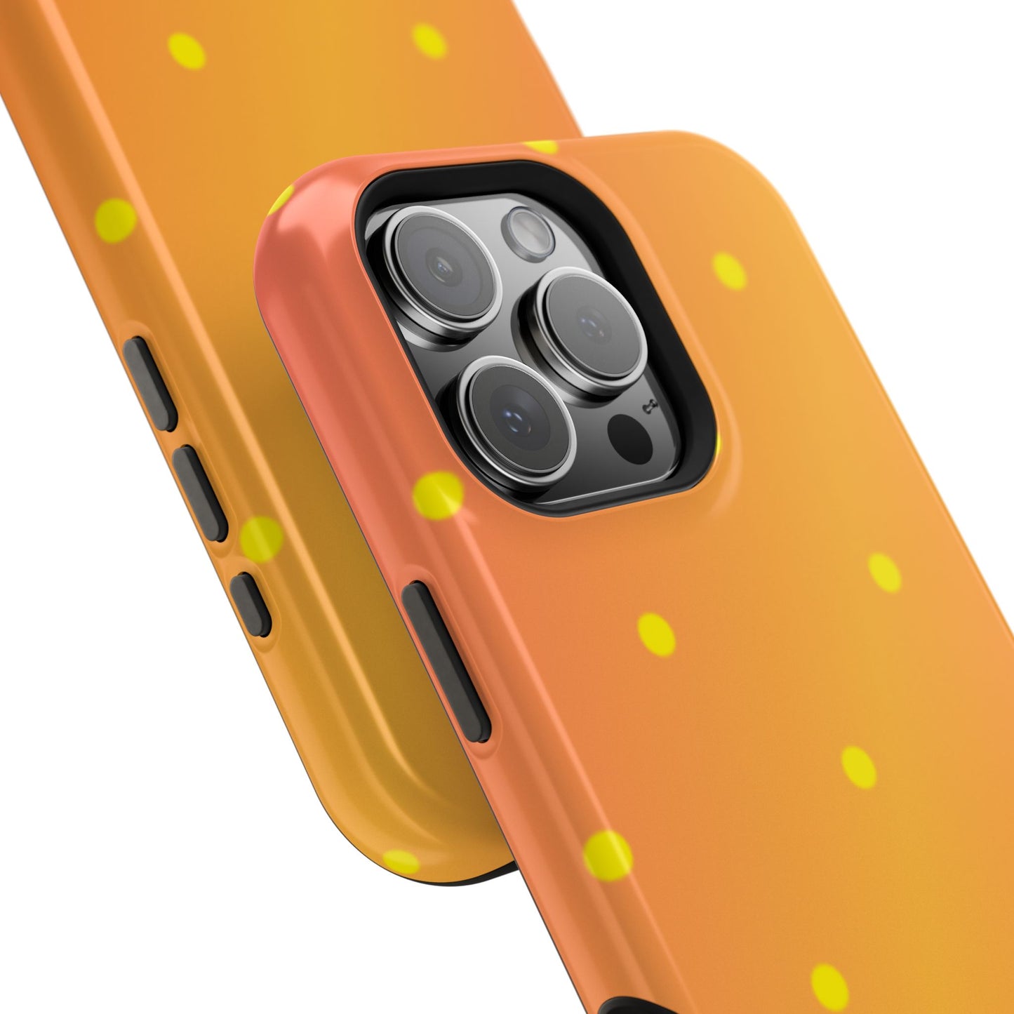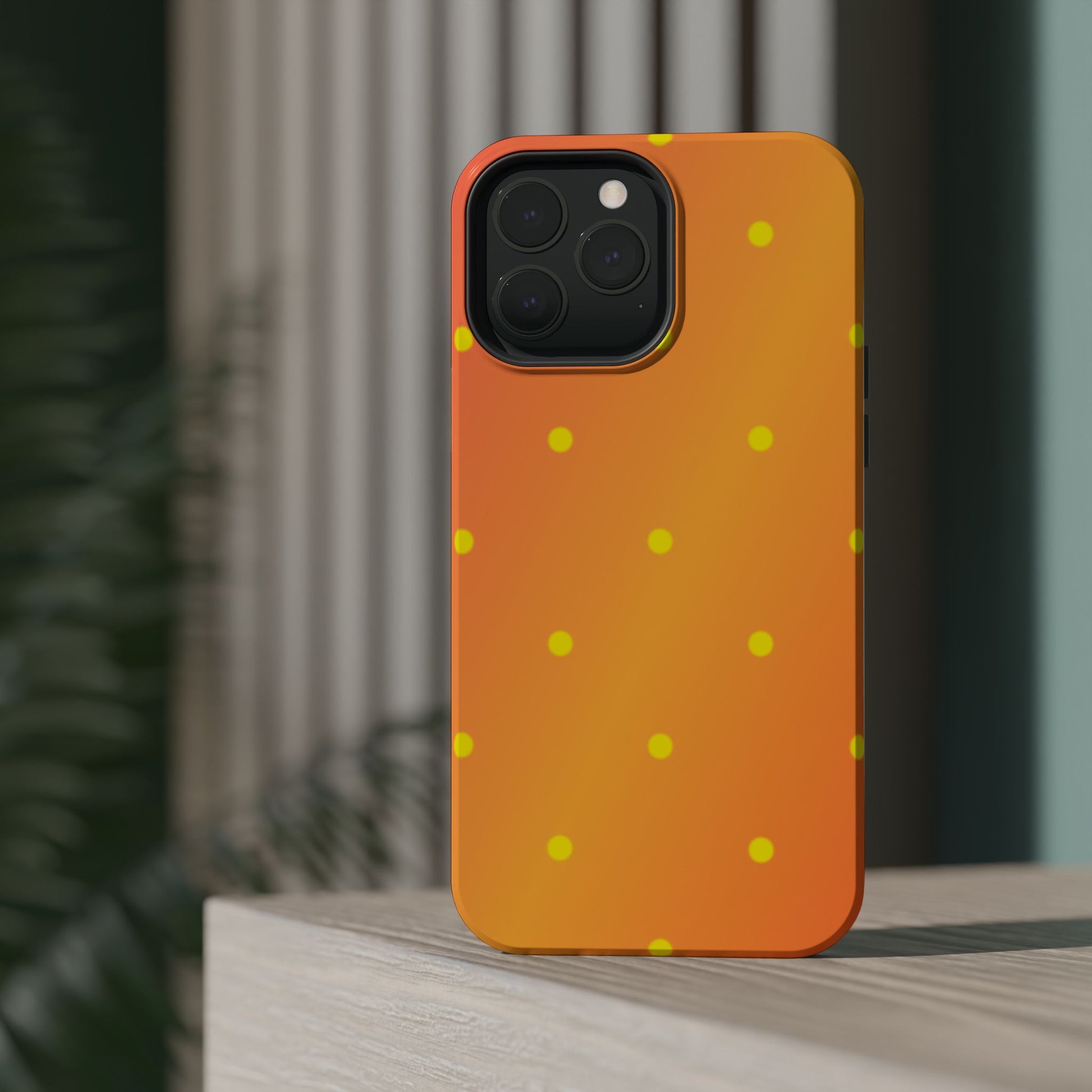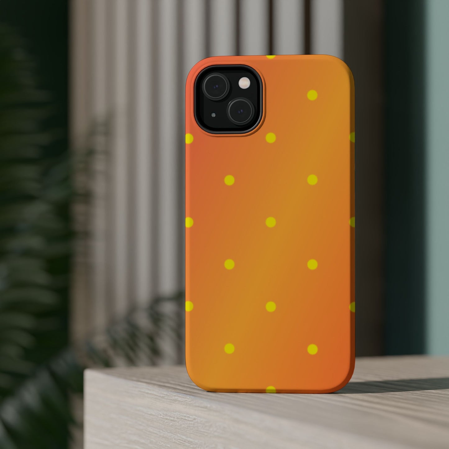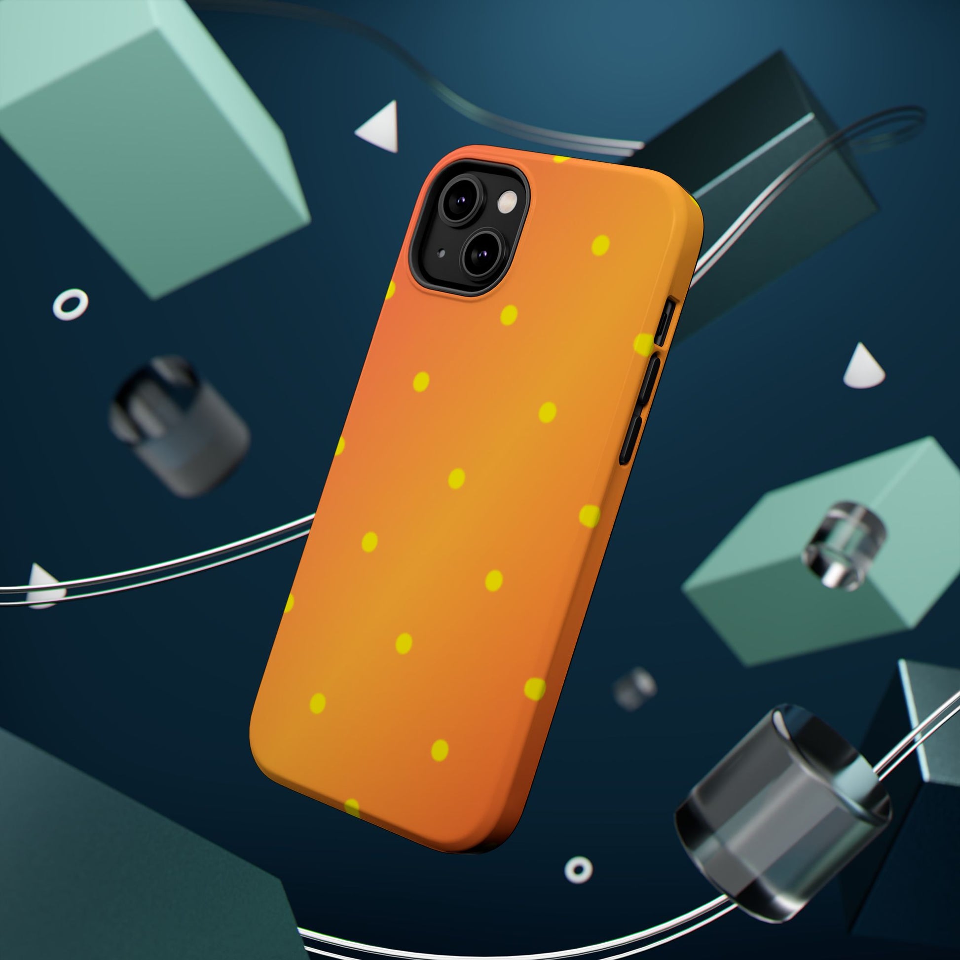 Brighten your day with our Sunset Gradient Polka Dots MagSafe iPhone Case, designed to add a burst of vibrant color to your phone. This case features a lively gradient blend of warm oranges, yellows, and hints of pink, creating a stunning sunset effect. Accentuated by playful yellow polka dots, it’s perfect for those who love a cheerful, retro-inspired vibe. Built with dual-layer protection, this case keeps your phone safe from bumps and scratches while looking effortlessly stylish.