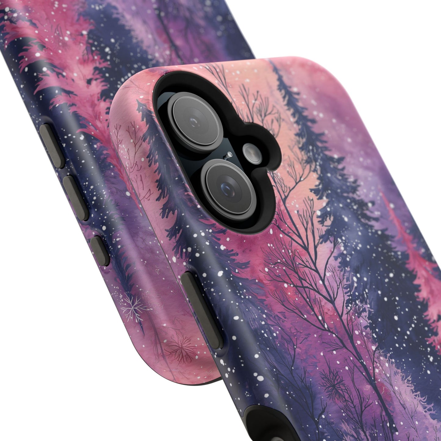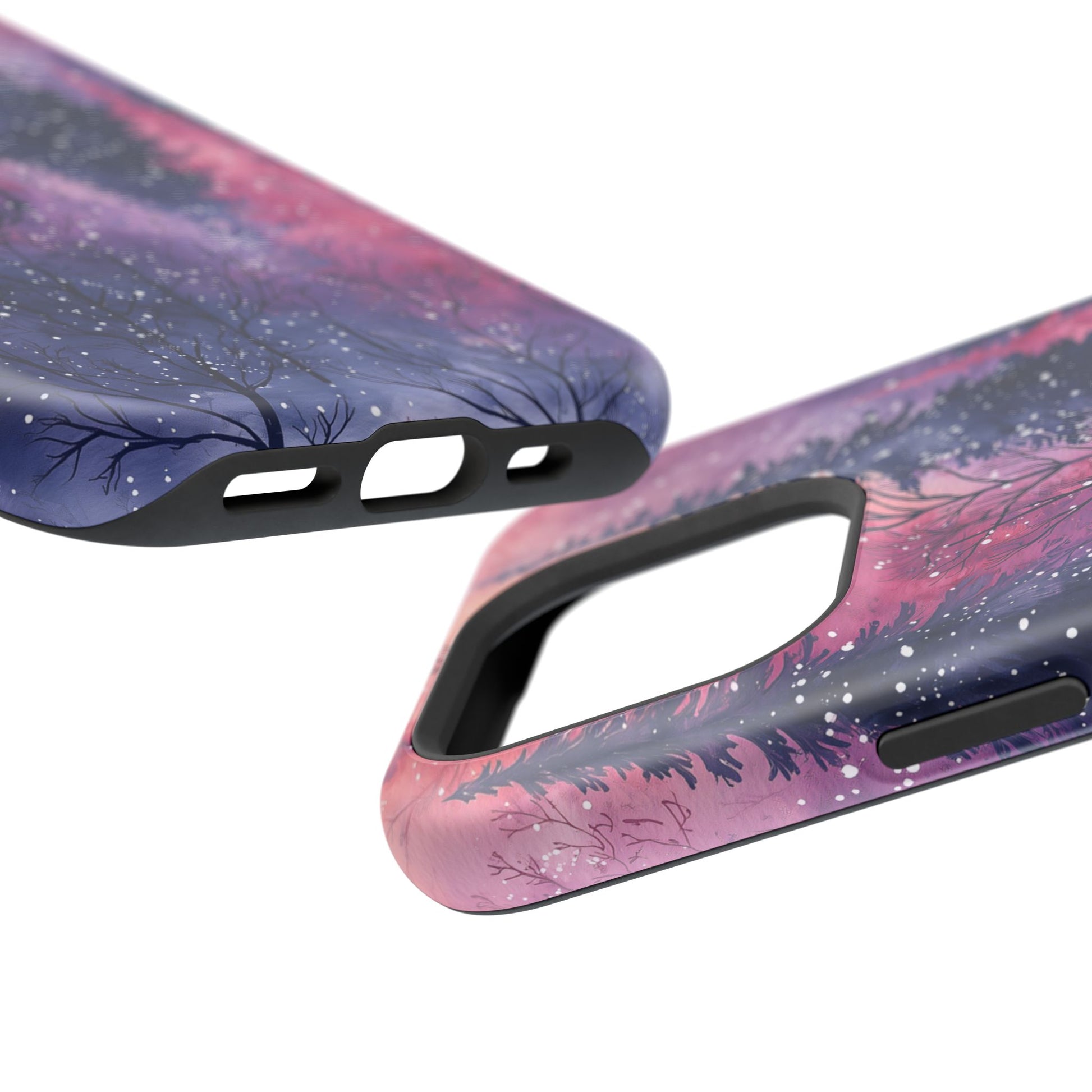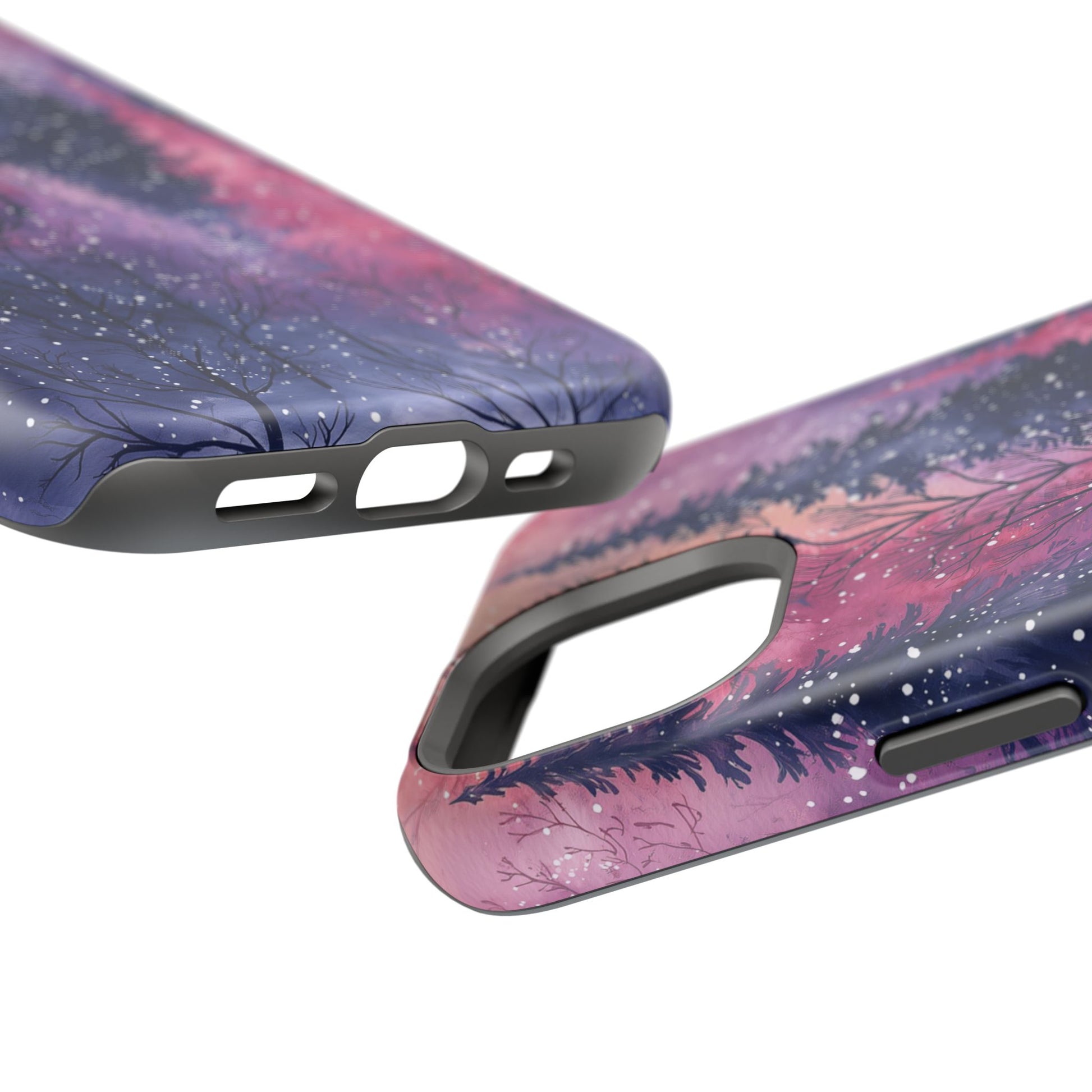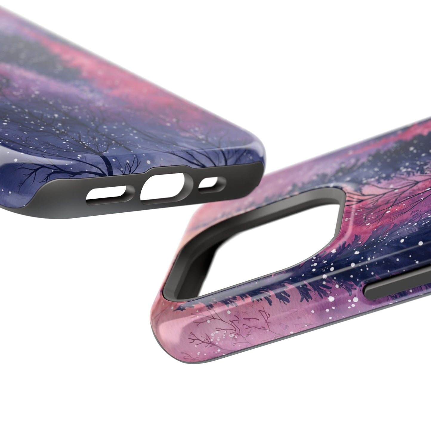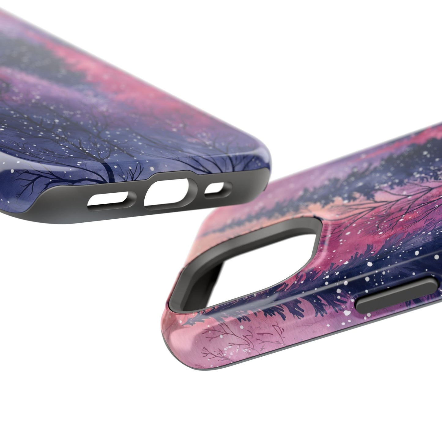 Bring the breathtaking beauty of a winter sunset to your phone with our Sunset Snow Forest MagSafe iPhone Case. Featuring an enchanting landscape of snow-covered trees in rich hues of pink, purple, and deep indigo, this case captures the magic of a twilight forest blanketed in snow. Perfect for nature lovers and dreamers, this case provides rugged protection in a slim, stylish profile. Its artistic, watercolor-inspired design adds a splash of winter romance to your phone, making it a unique accessory you'll love showing off.