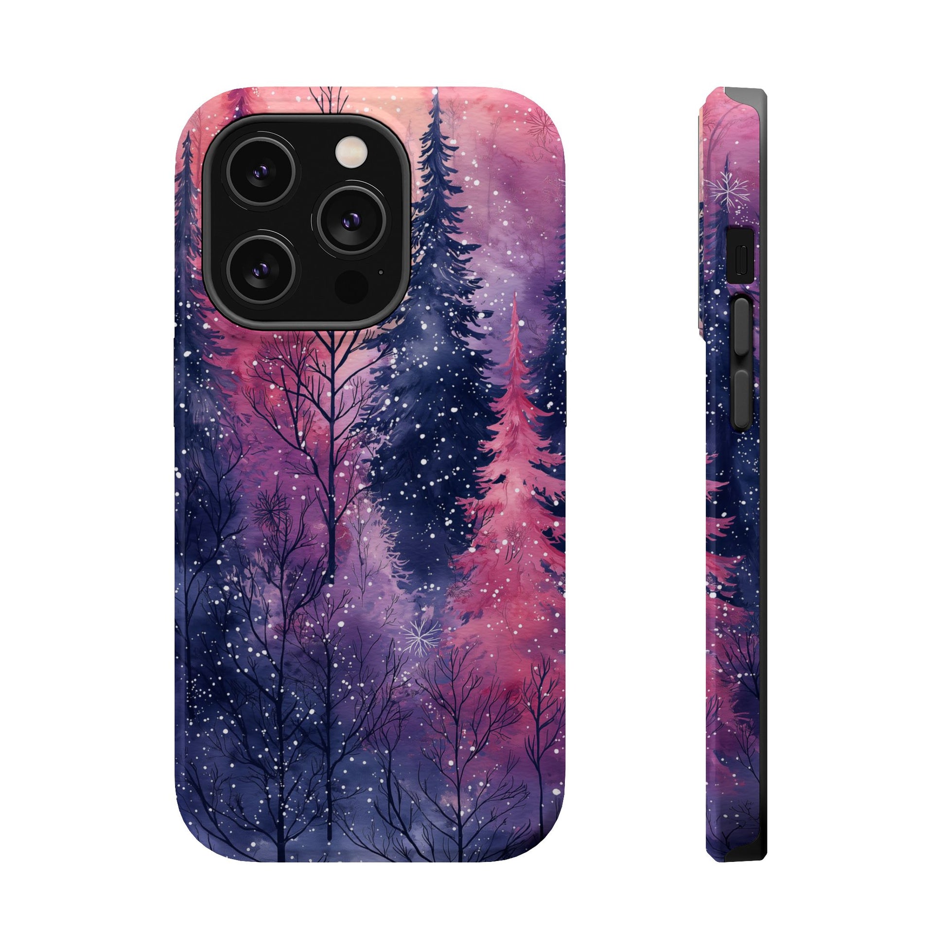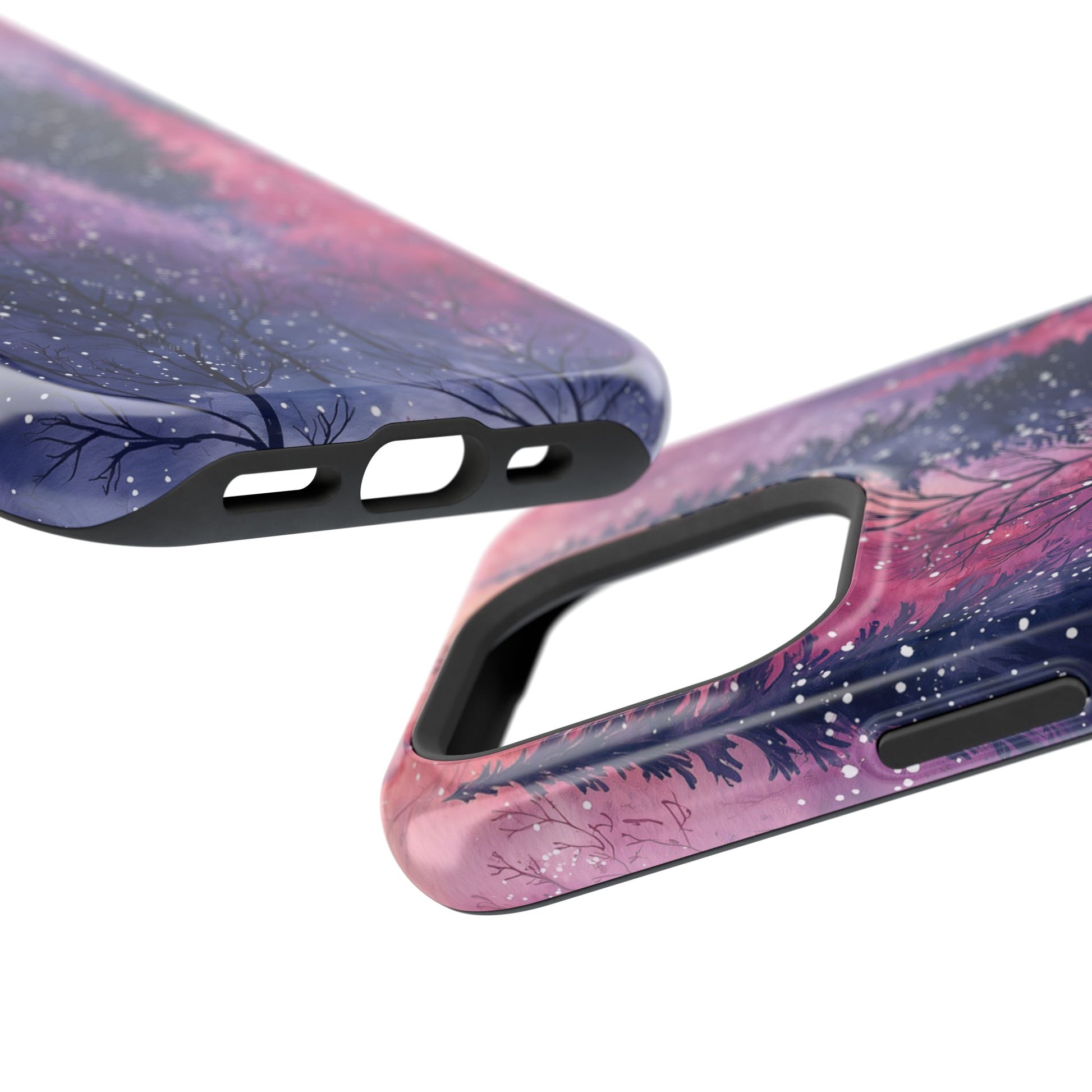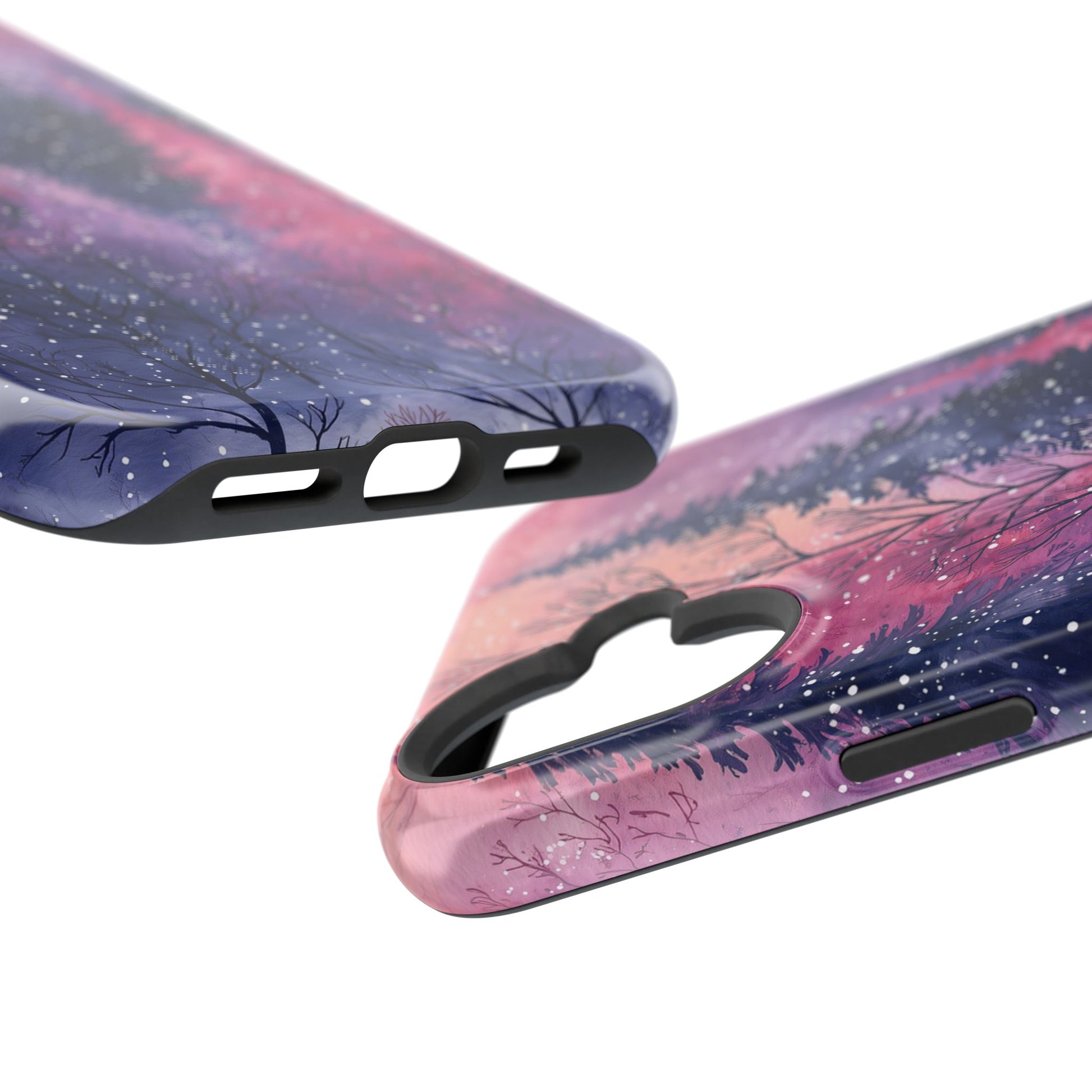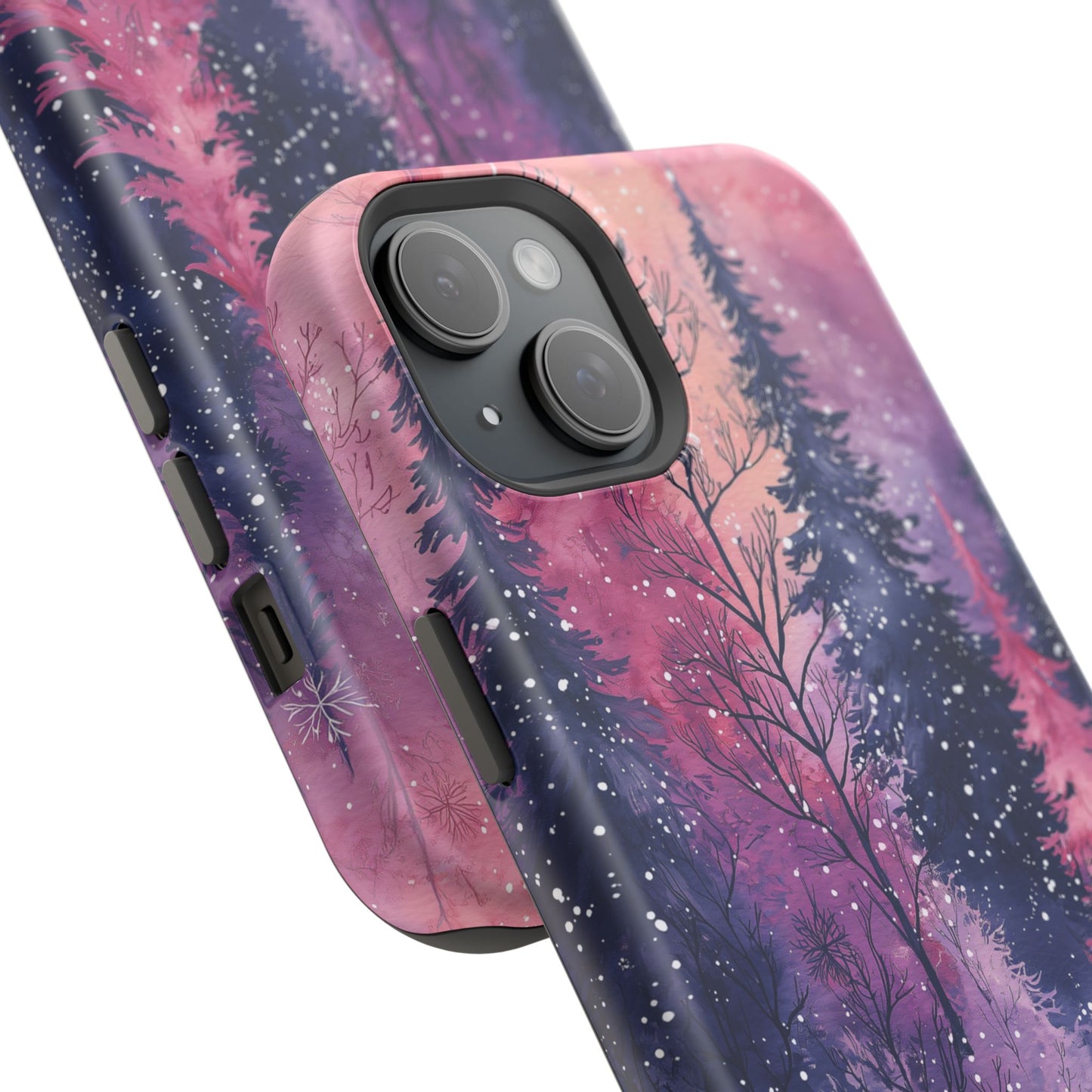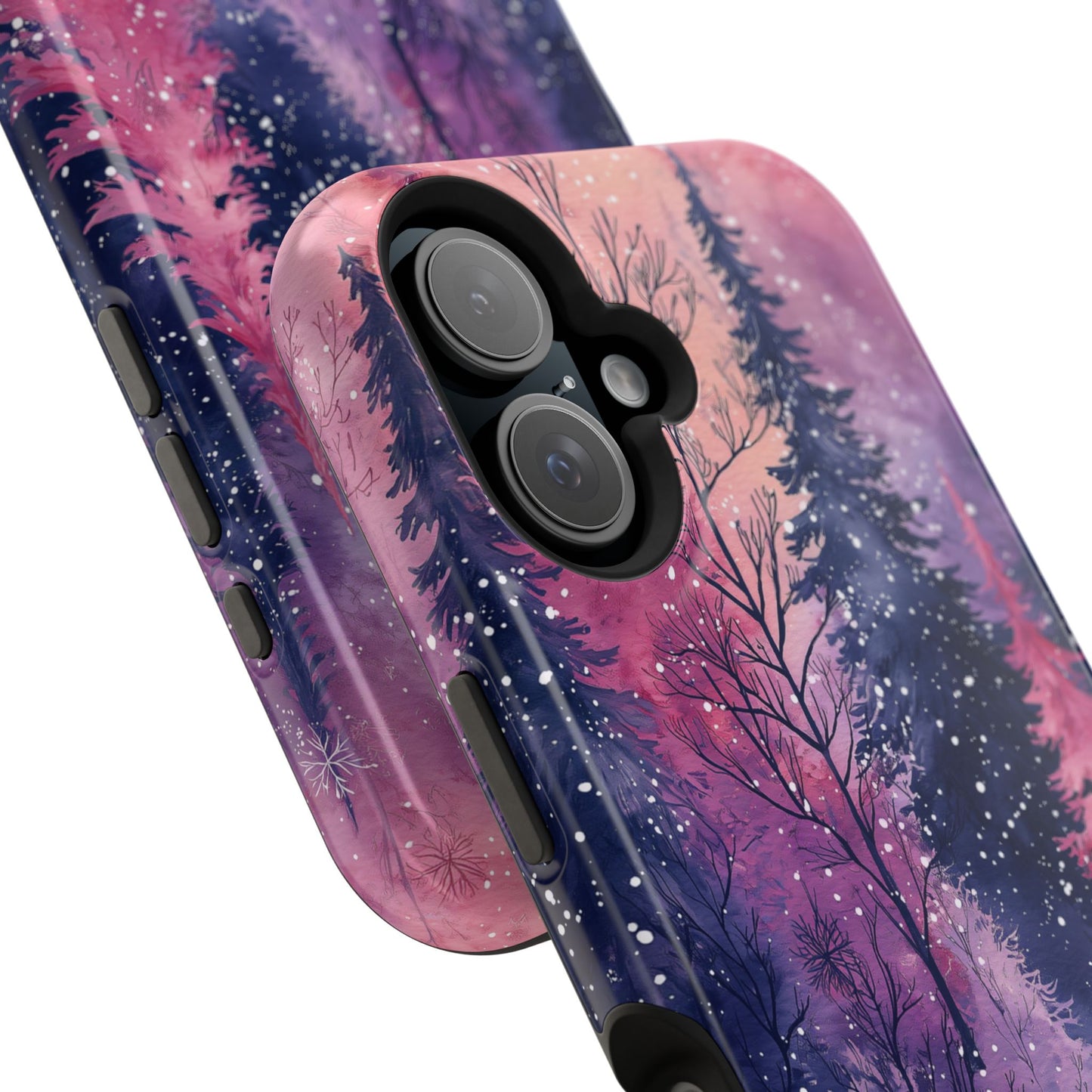 Bring the breathtaking beauty of a winter sunset to your phone with our Sunset Snow Forest MagSafe iPhone Case. Featuring an enchanting landscape of snow-covered trees in rich hues of pink, purple, and deep indigo, this case captures the magic of a twilight forest blanketed in snow. Perfect for nature lovers and dreamers, this case provides rugged protection in a slim, stylish profile. Its artistic, watercolor-inspired design adds a splash of winter romance to your phone, making it a unique accessory you'll love showing off.