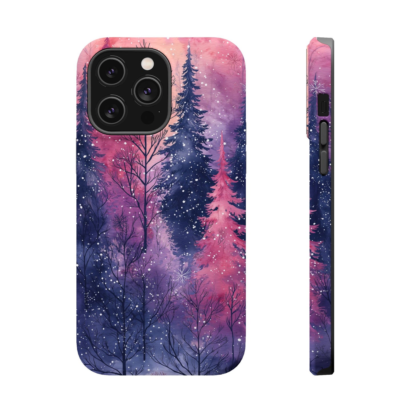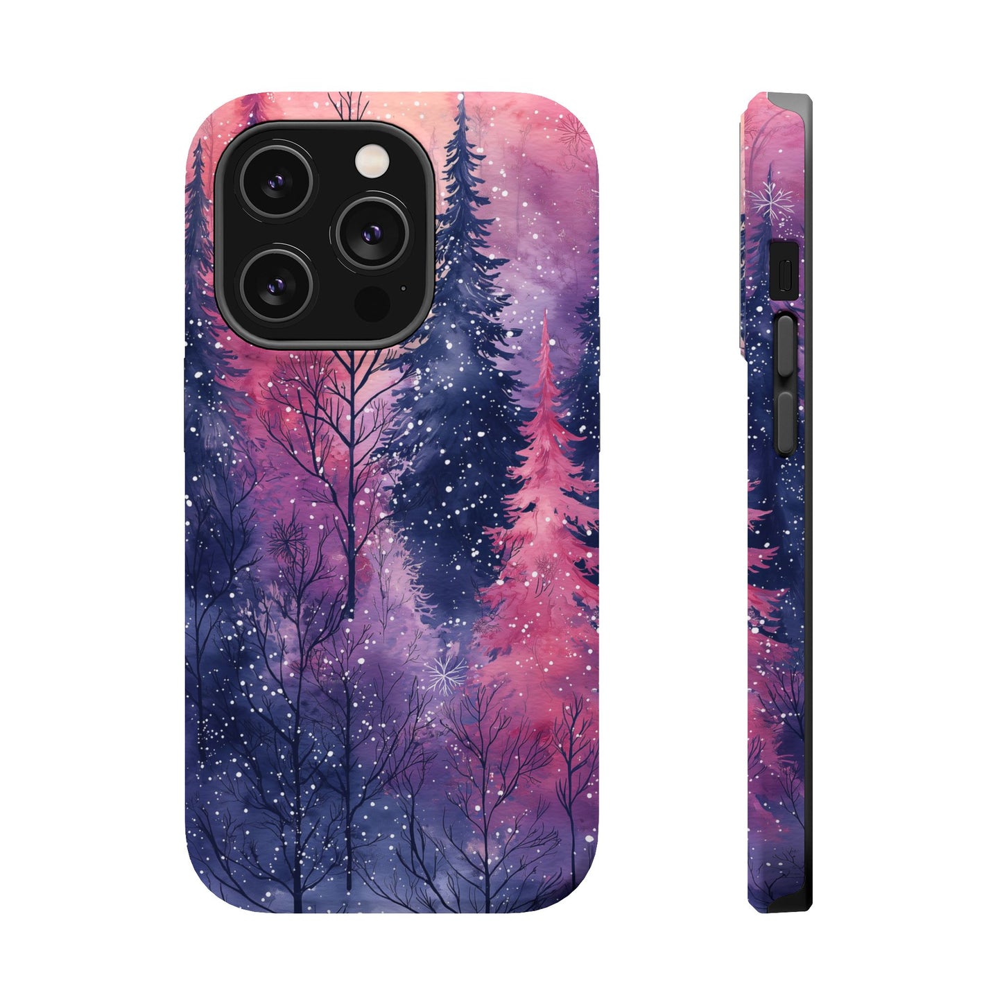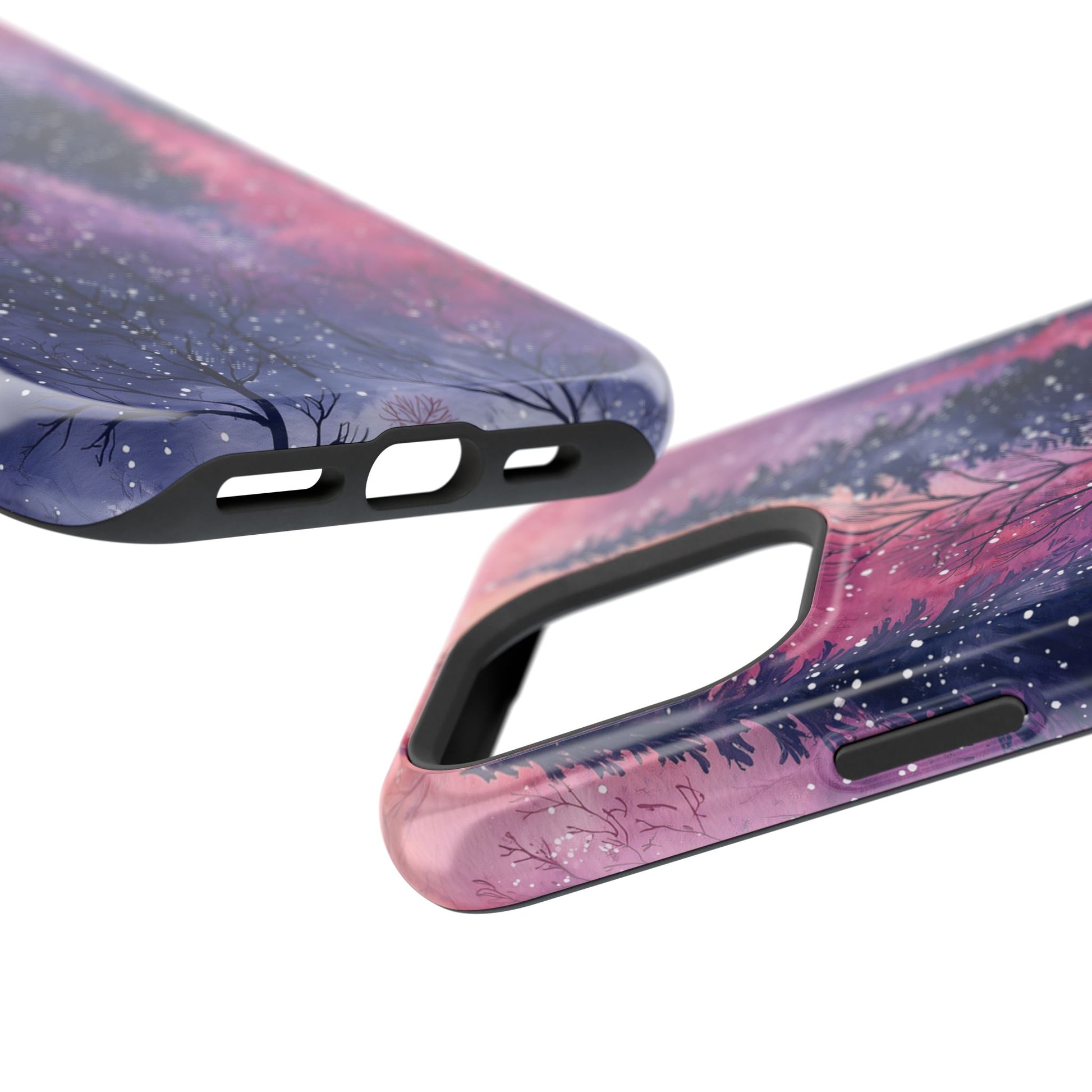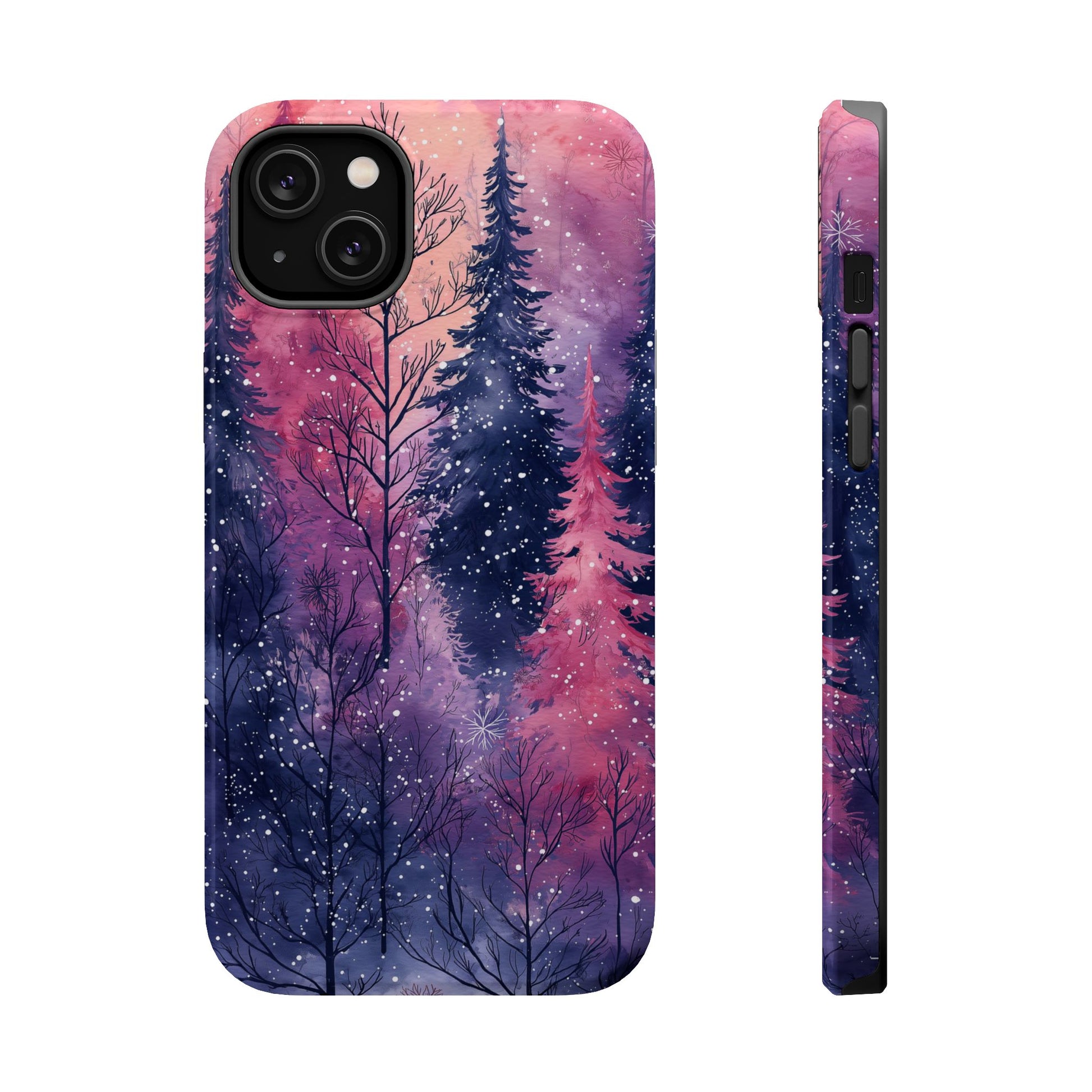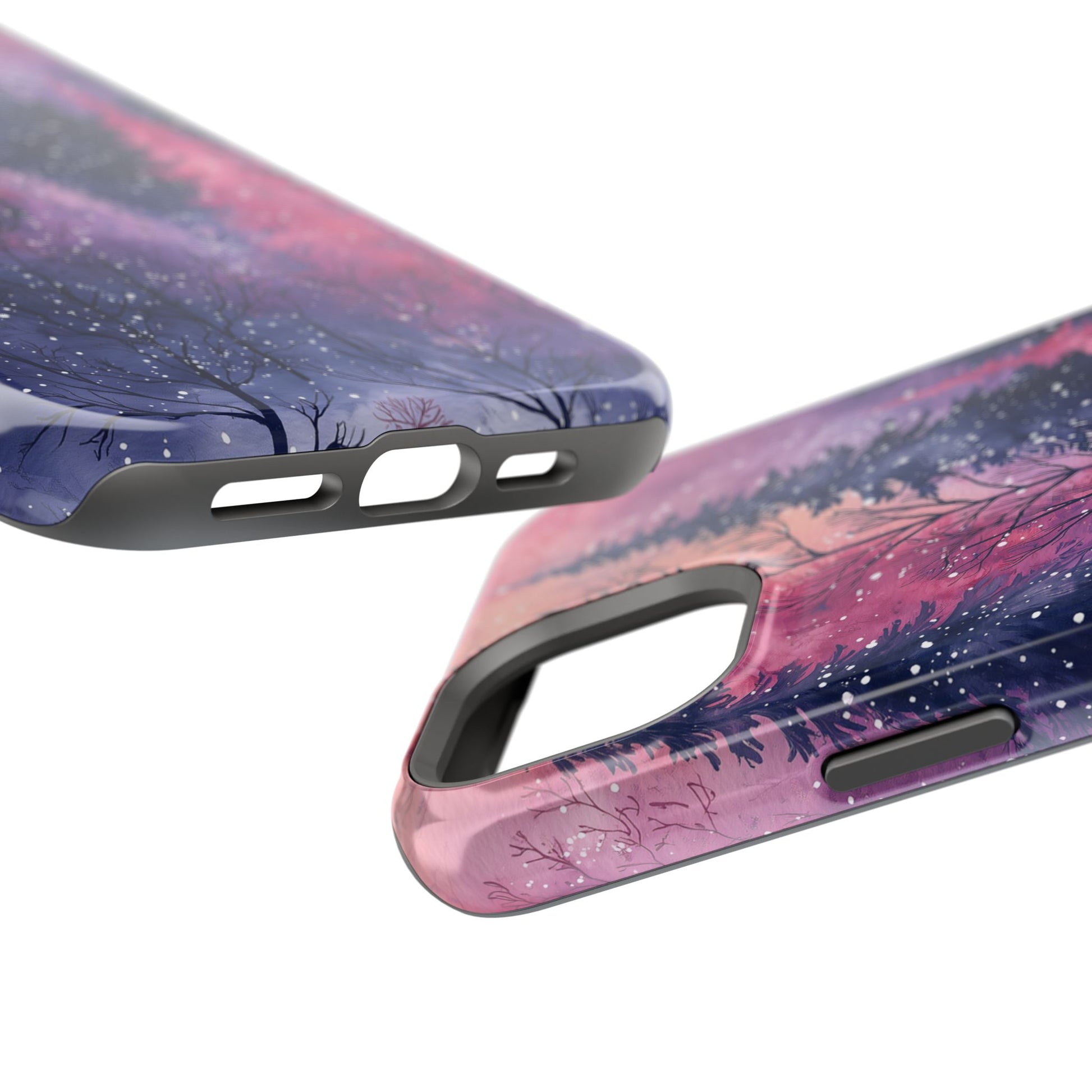 Bring the breathtaking beauty of a winter sunset to your phone with our Sunset Snow Forest MagSafe iPhone Case. Featuring an enchanting landscape of snow-covered trees in rich hues of pink, purple, and deep indigo, this case captures the magic of a twilight forest blanketed in snow. Perfect for nature lovers and dreamers, this case provides rugged protection in a slim, stylish profile. Its artistic, watercolor-inspired design adds a splash of winter romance to your phone, making it a unique accessory you'll love showing off.