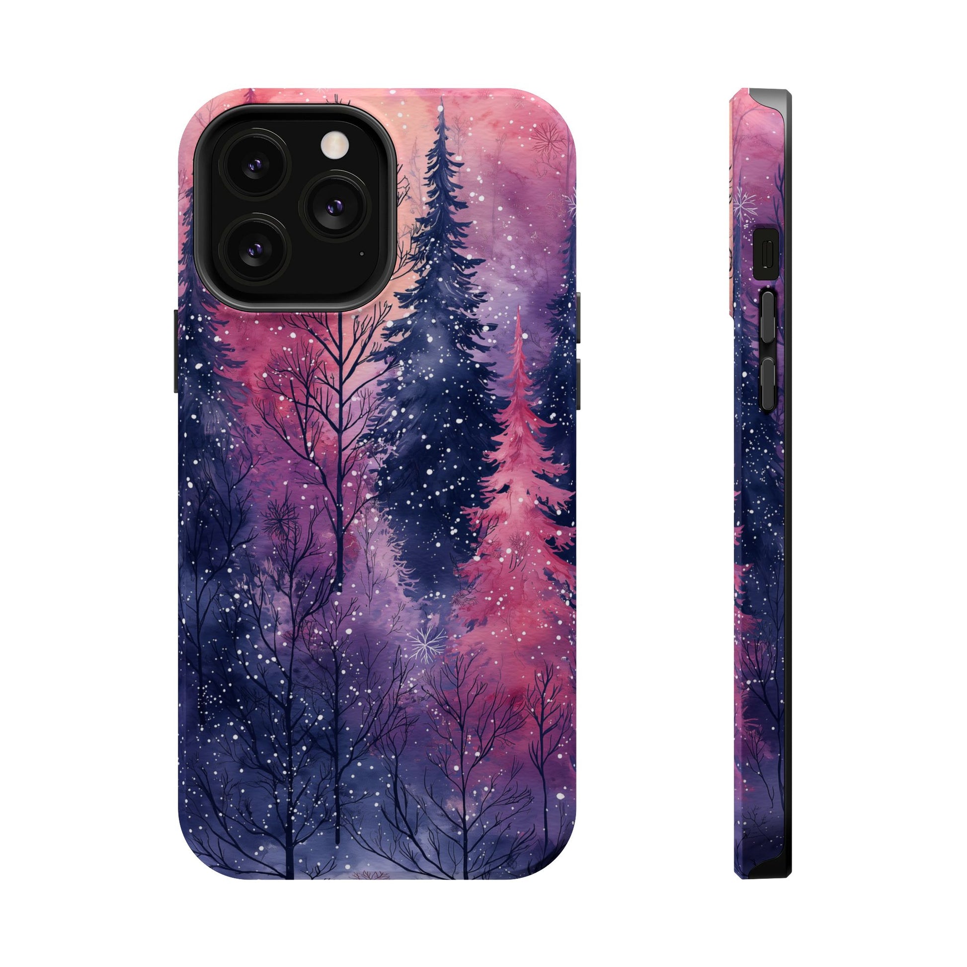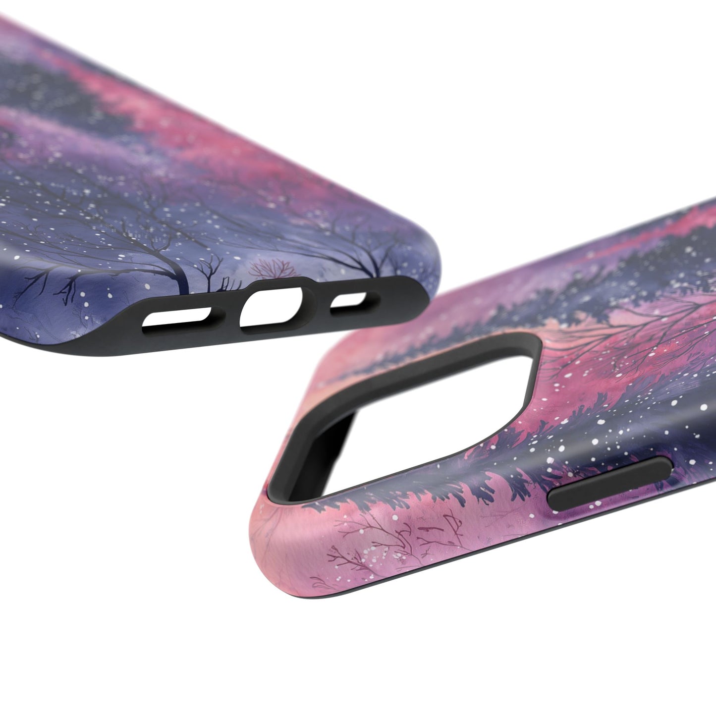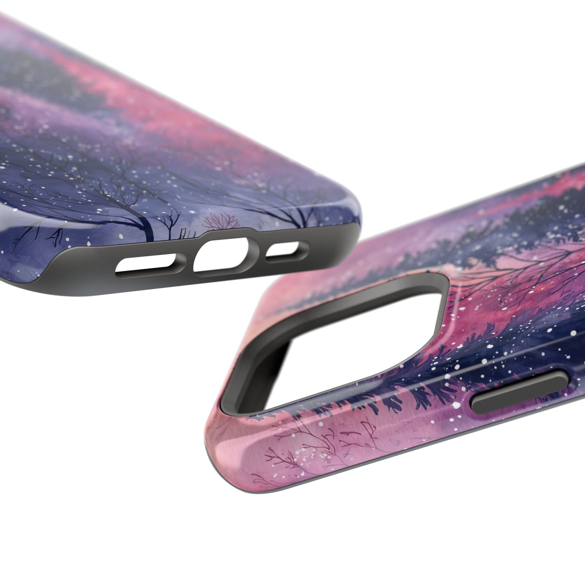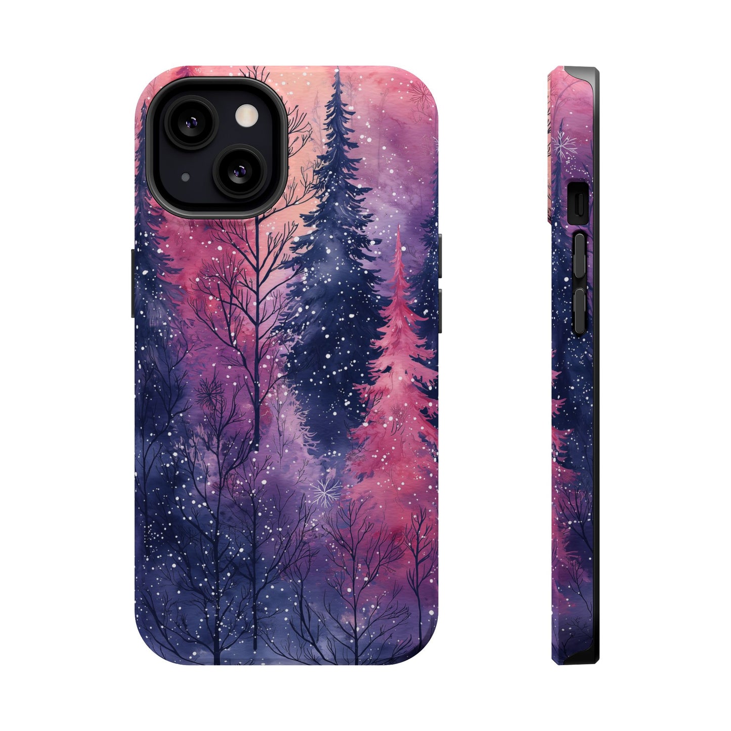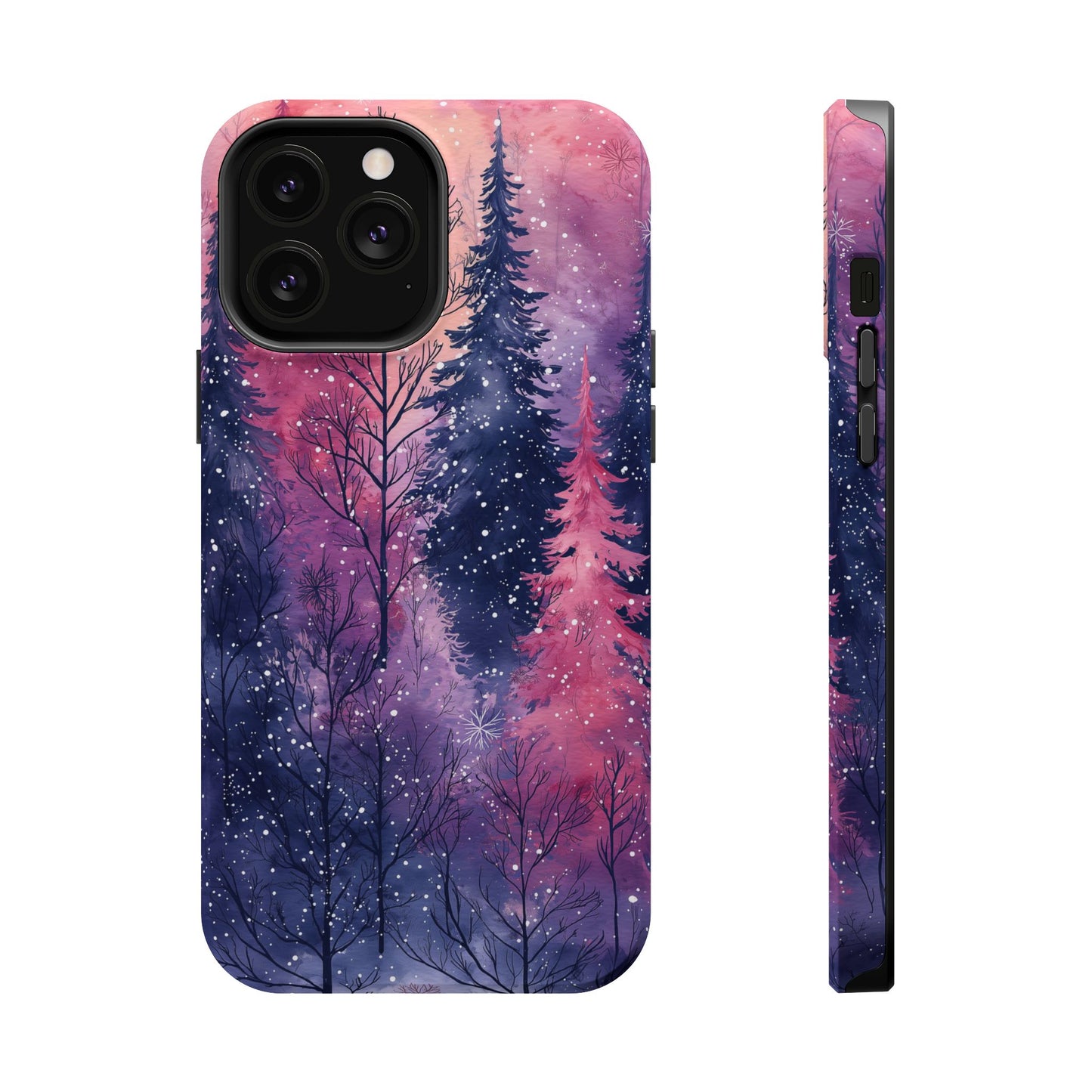 Bring the breathtaking beauty of a winter sunset to your phone with our Sunset Snow Forest MagSafe iPhone Case. Featuring an enchanting landscape of snow-covered trees in rich hues of pink, purple, and deep indigo, this case captures the magic of a twilight forest blanketed in snow. Perfect for nature lovers and dreamers, this case provides rugged protection in a slim, stylish profile. Its artistic, watercolor-inspired design adds a splash of winter romance to your phone, making it a unique accessory you'll love showing off.