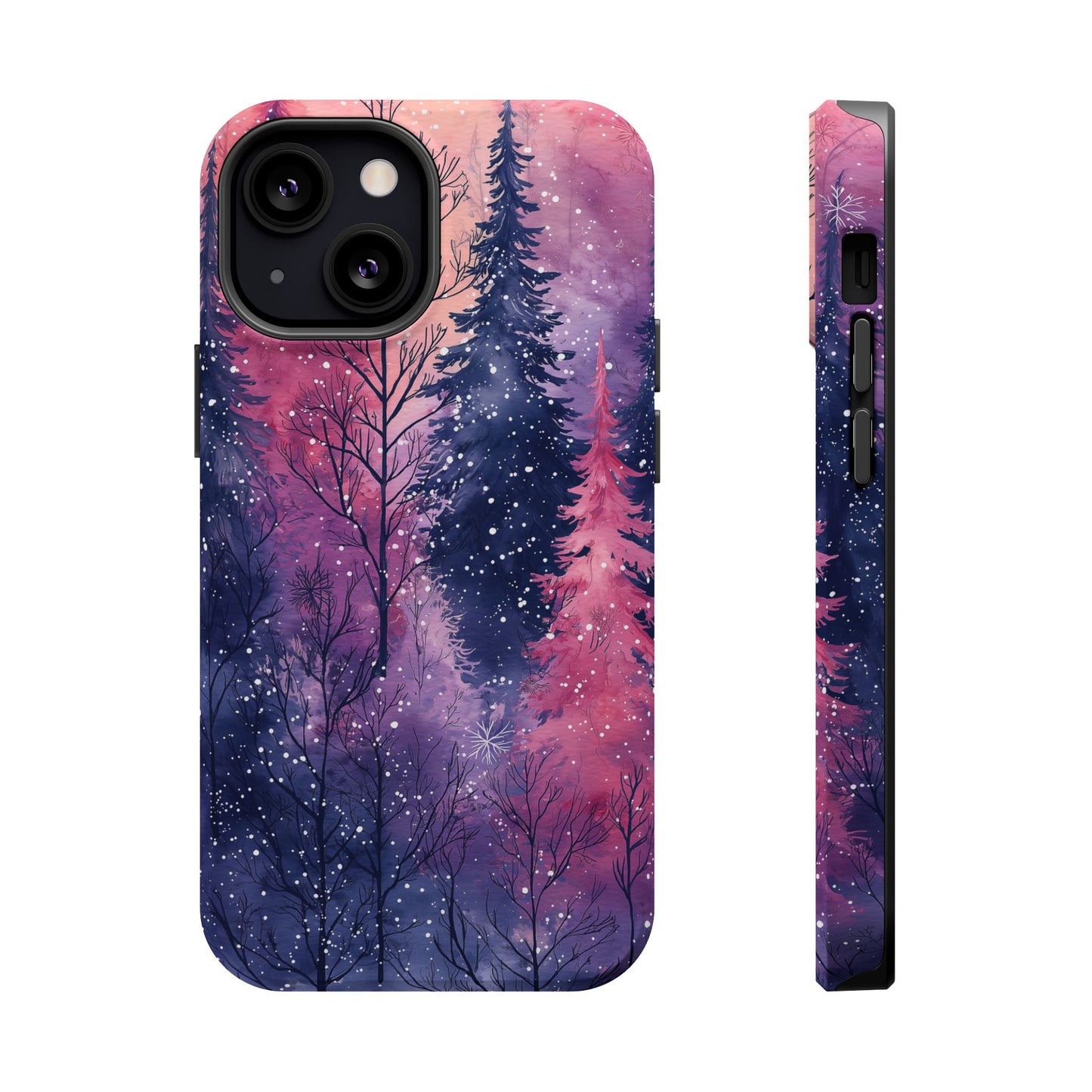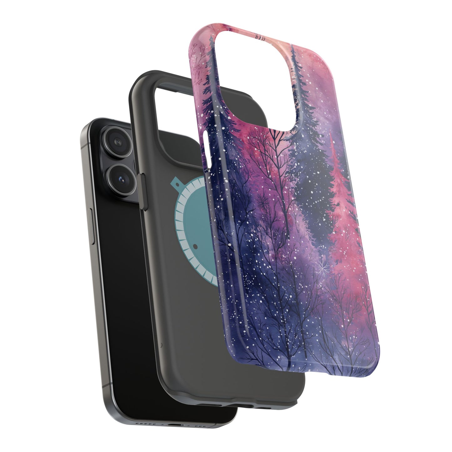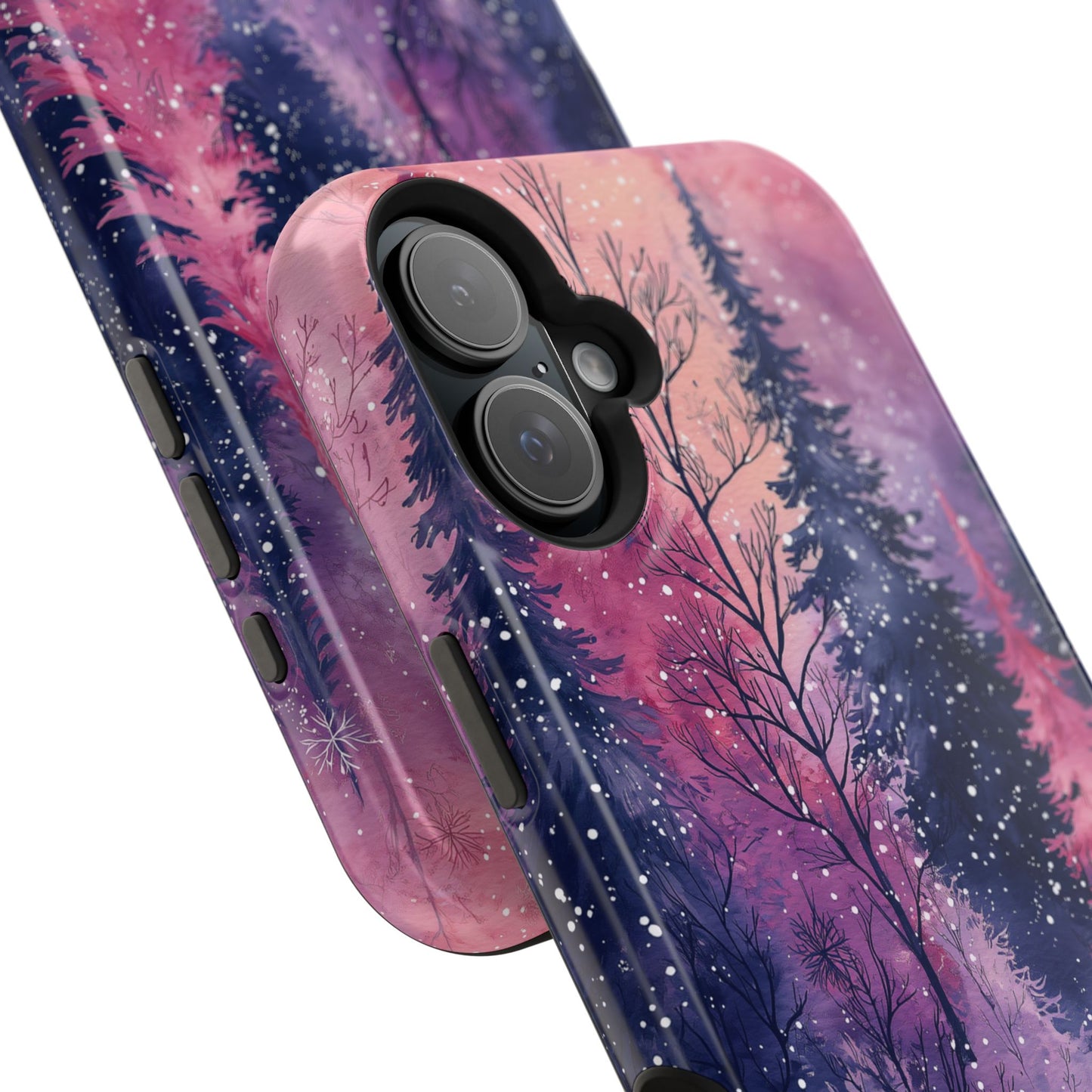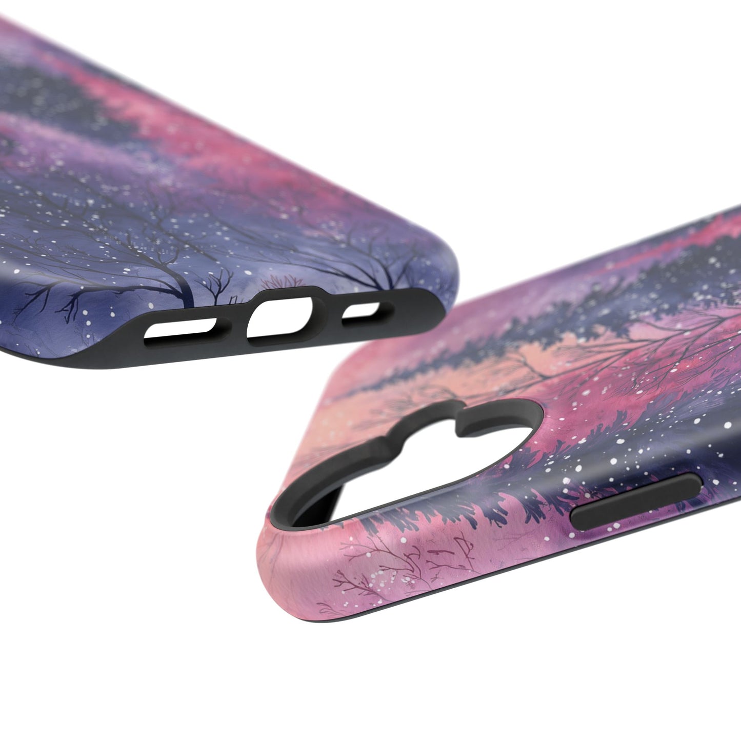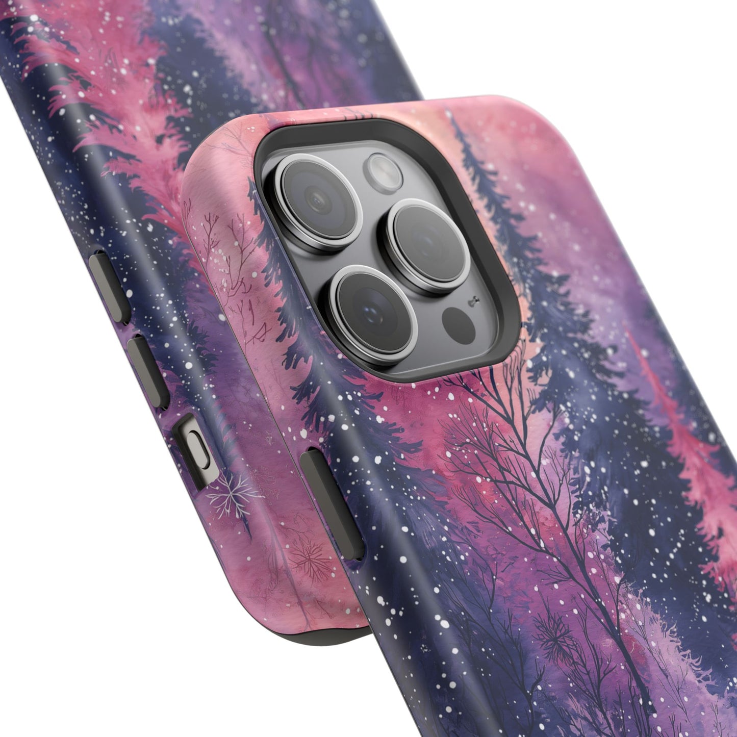 Bring the breathtaking beauty of a winter sunset to your phone with our Sunset Snow Forest MagSafe iPhone Case. Featuring an enchanting landscape of snow-covered trees in rich hues of pink, purple, and deep indigo, this case captures the magic of a twilight forest blanketed in snow. Perfect for nature lovers and dreamers, this case provides rugged protection in a slim, stylish profile. Its artistic, watercolor-inspired design adds a splash of winter romance to your phone, making it a unique accessory you'll love showing off.