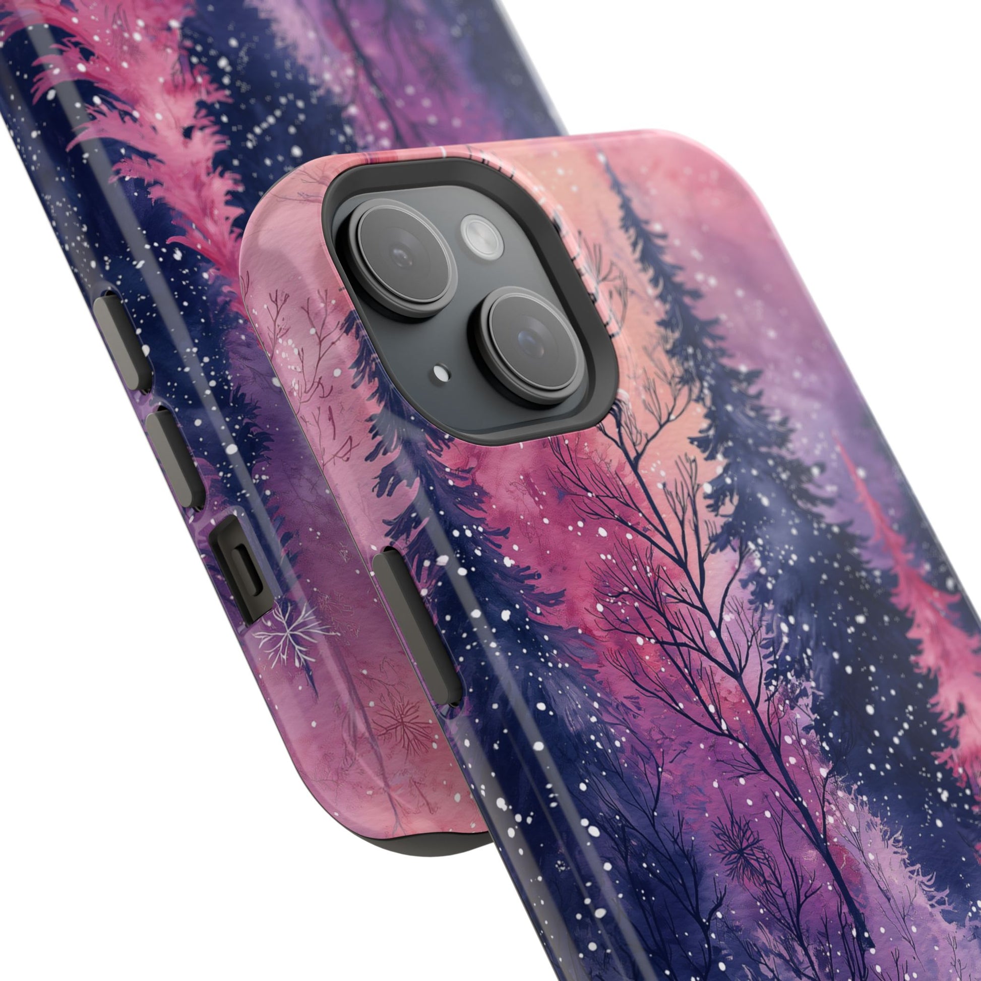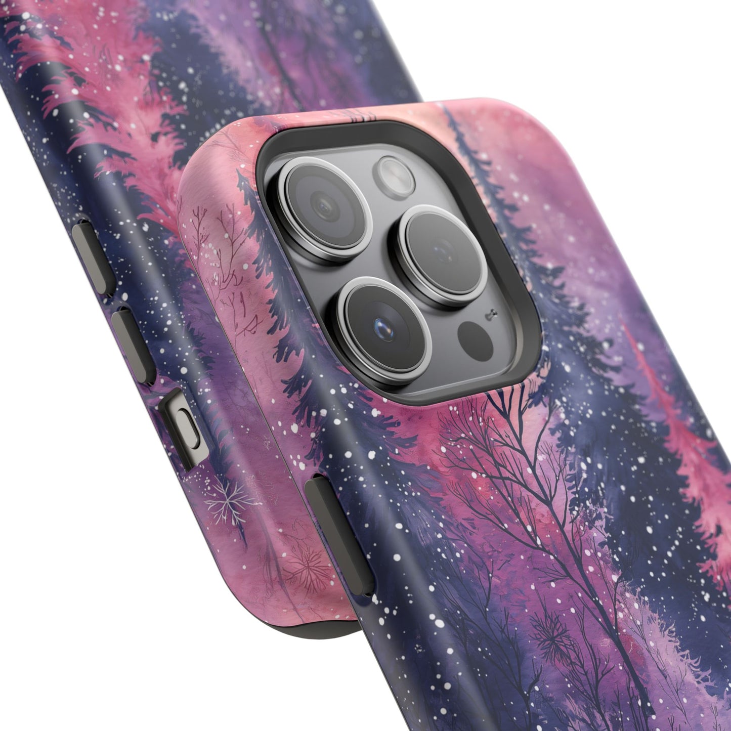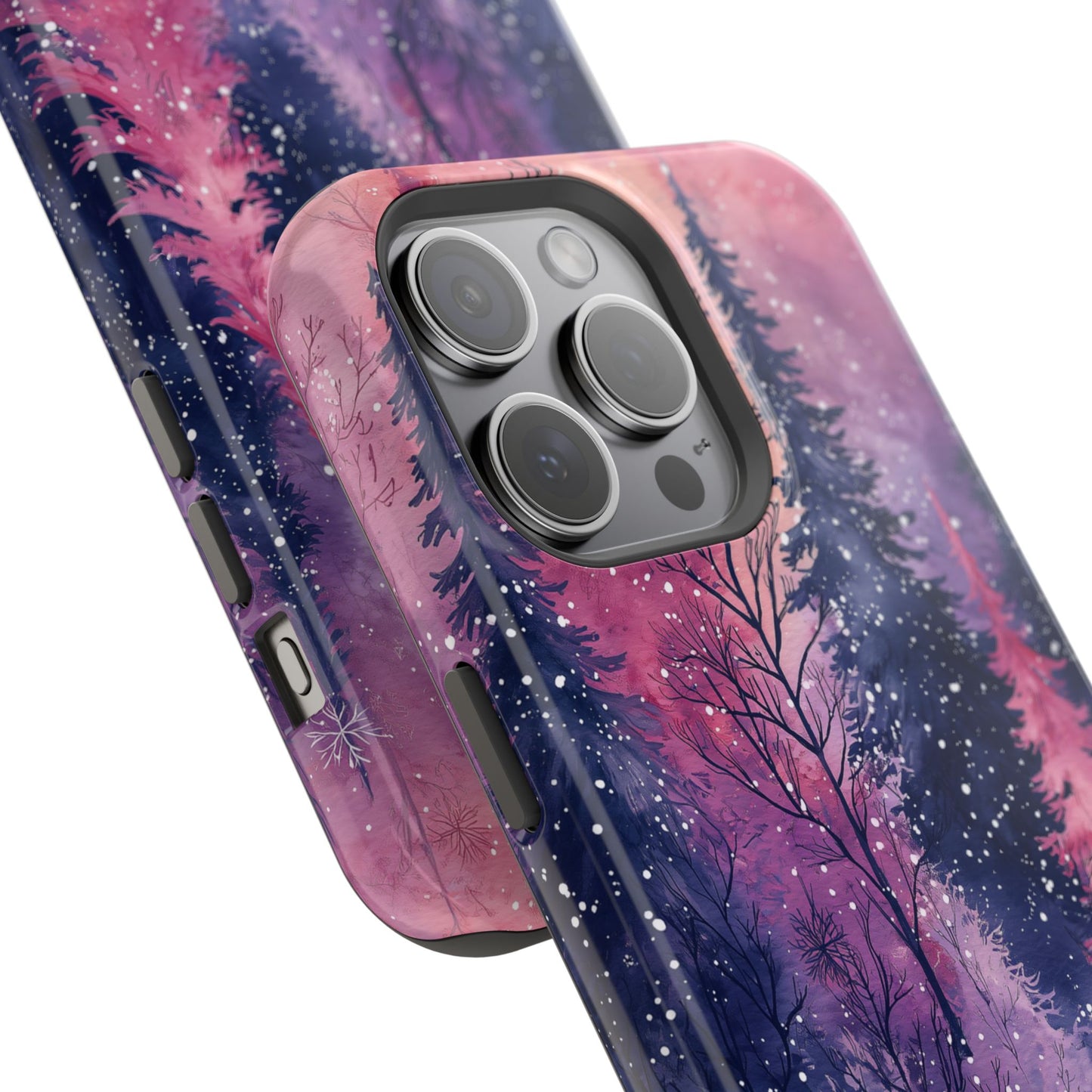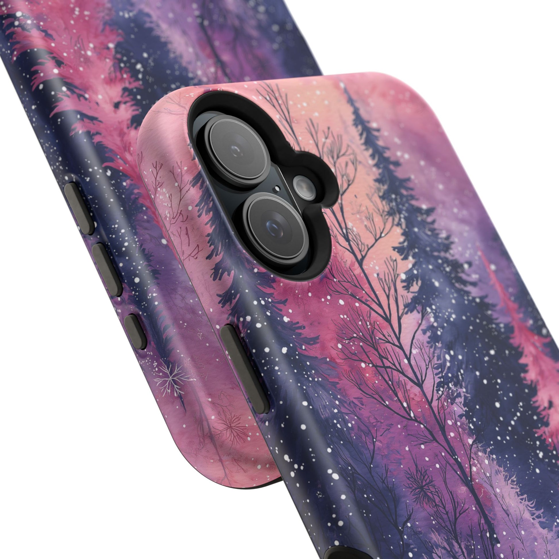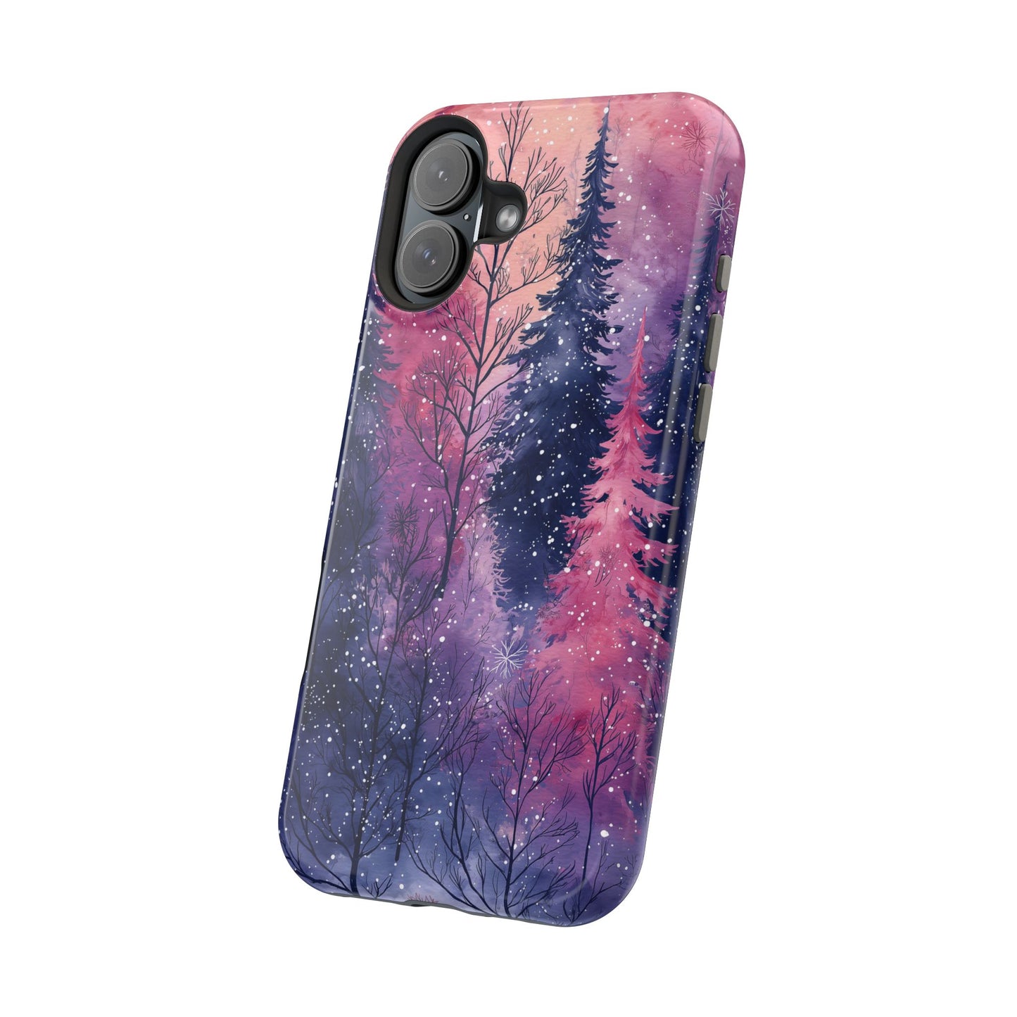 Bring the breathtaking beauty of a winter sunset to your phone with our Sunset Snow Forest MagSafe iPhone Case. Featuring an enchanting landscape of snow-covered trees in rich hues of pink, purple, and deep indigo, this case captures the magic of a twilight forest blanketed in snow. Perfect for nature lovers and dreamers, this case provides rugged protection in a slim, stylish profile. Its artistic, watercolor-inspired design adds a splash of winter romance to your phone, making it a unique accessory you'll love showing off.