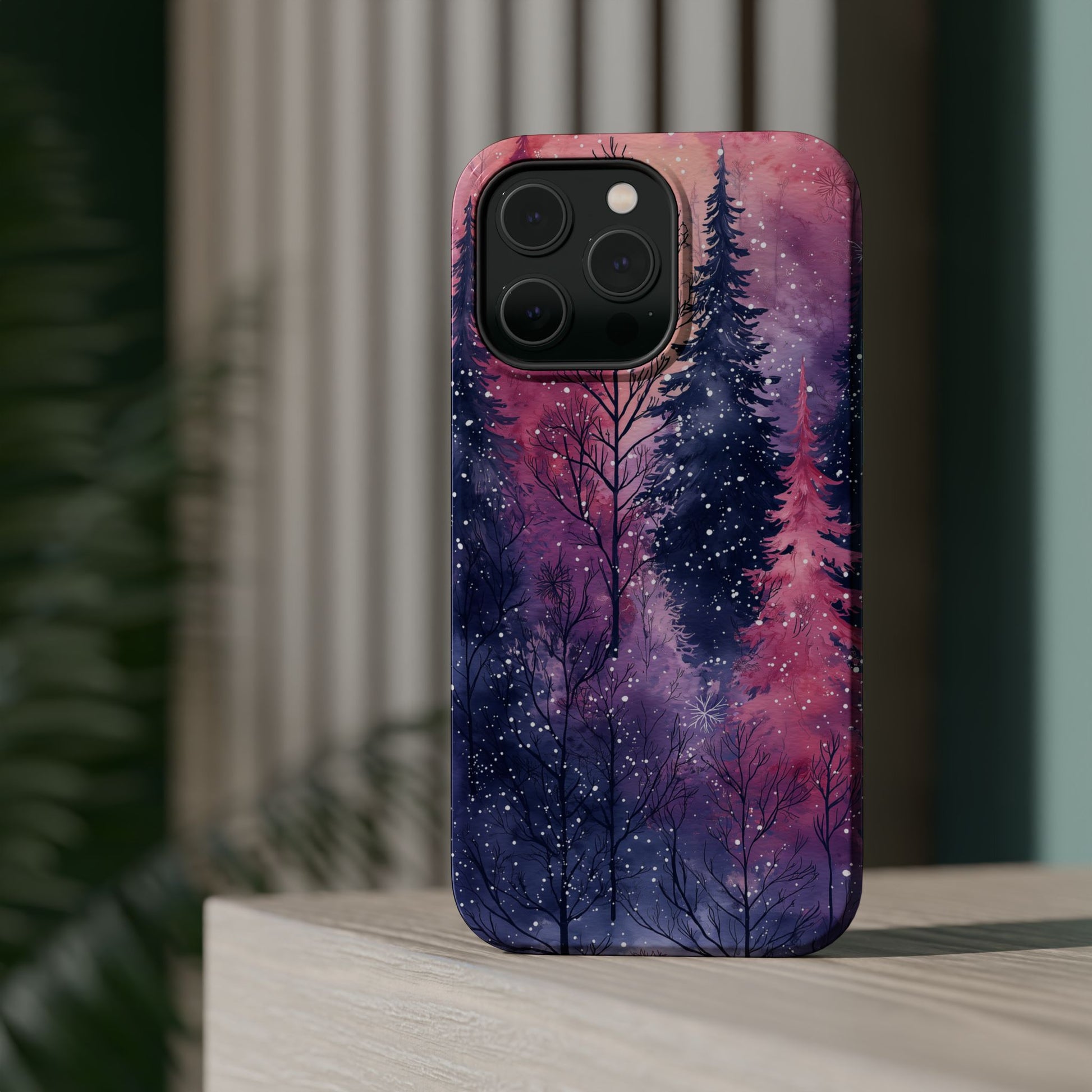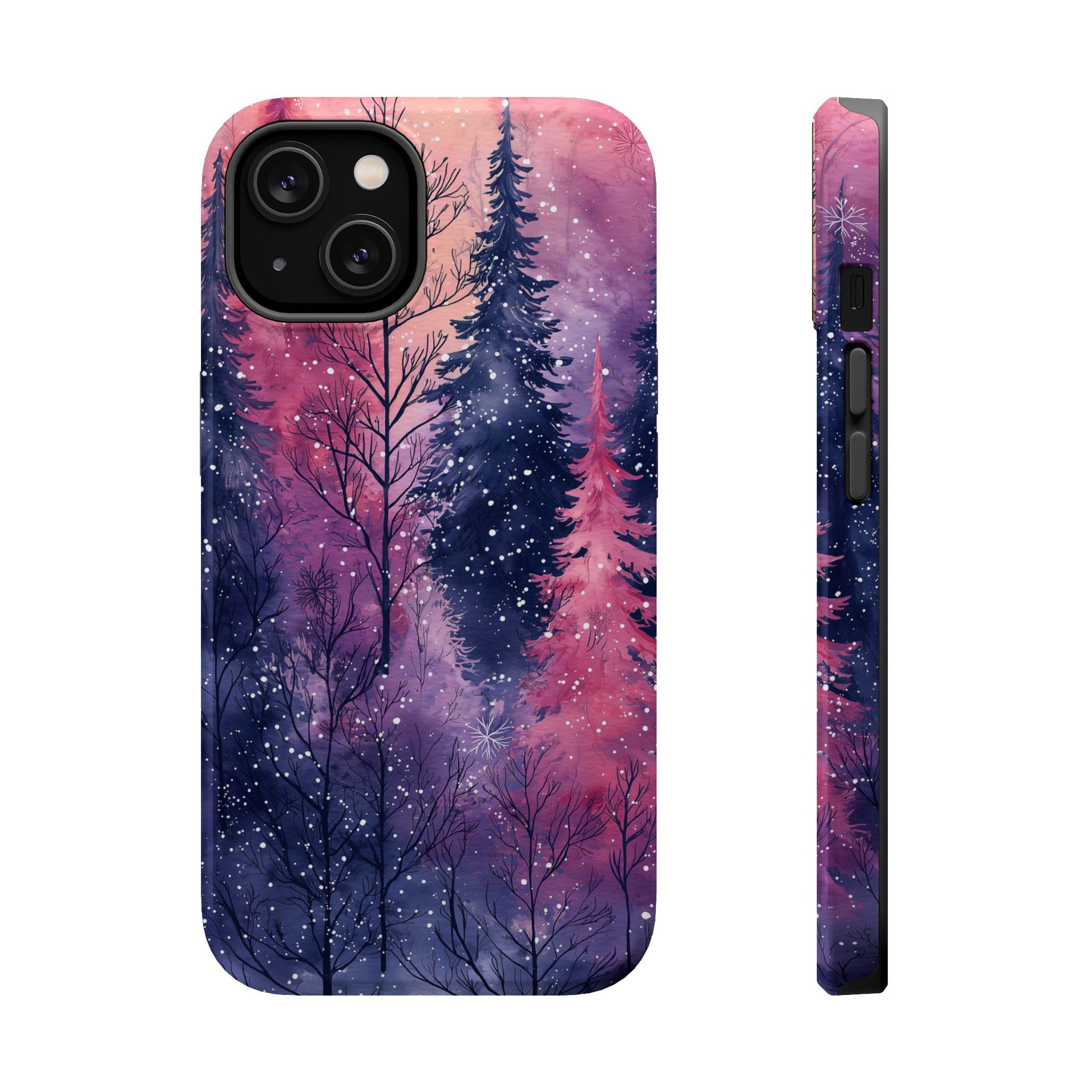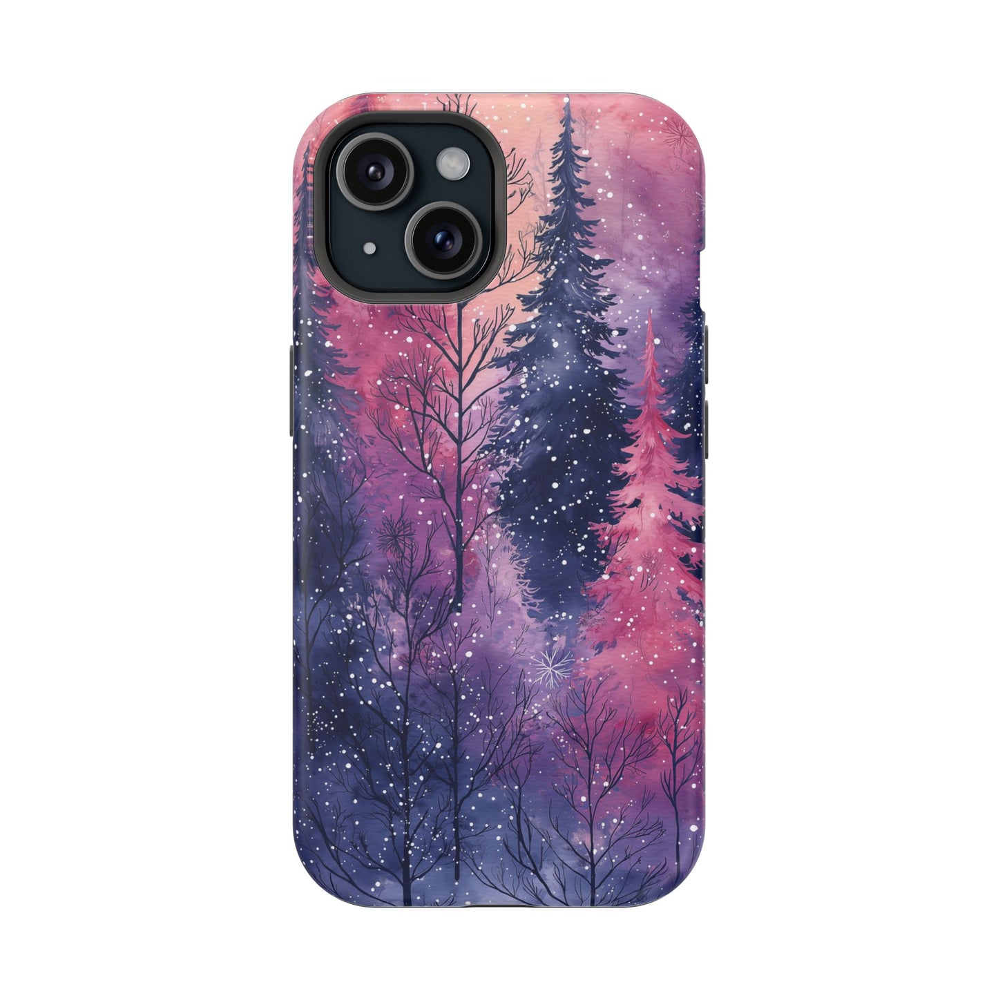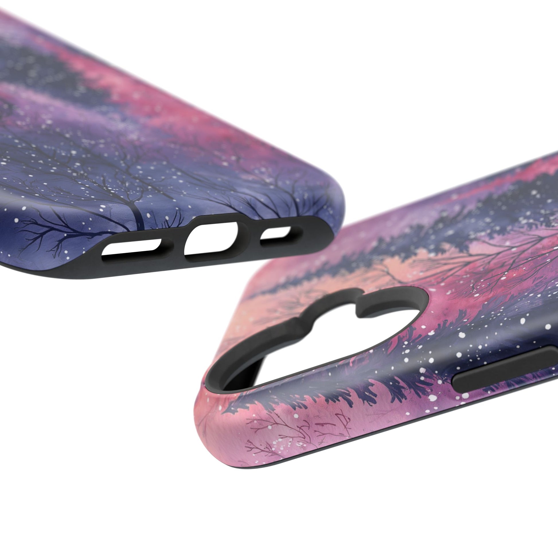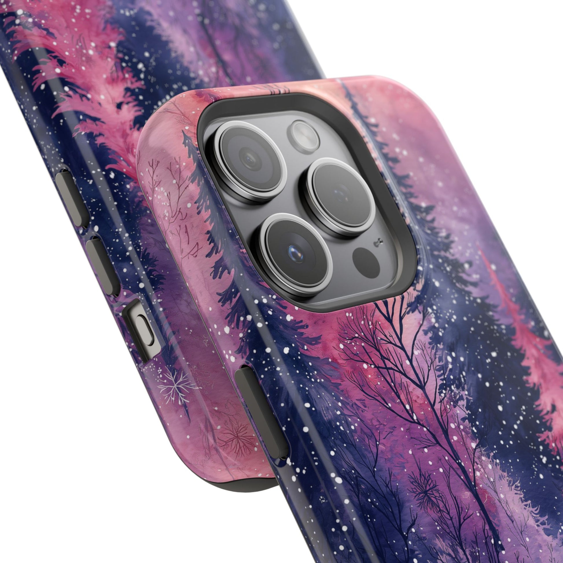 Bring the breathtaking beauty of a winter sunset to your phone with our Sunset Snow Forest MagSafe iPhone Case. Featuring an enchanting landscape of snow-covered trees in rich hues of pink, purple, and deep indigo, this case captures the magic of a twilight forest blanketed in snow. Perfect for nature lovers and dreamers, this case provides rugged protection in a slim, stylish profile. Its artistic, watercolor-inspired design adds a splash of winter romance to your phone, making it a unique accessory you'll love showing off.